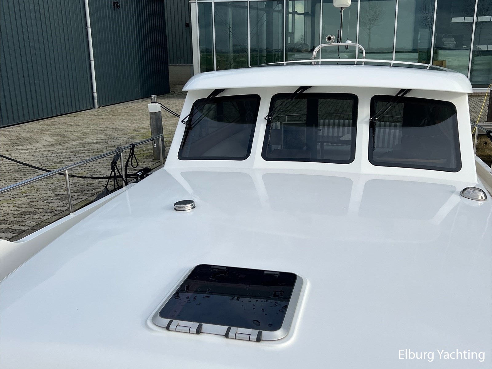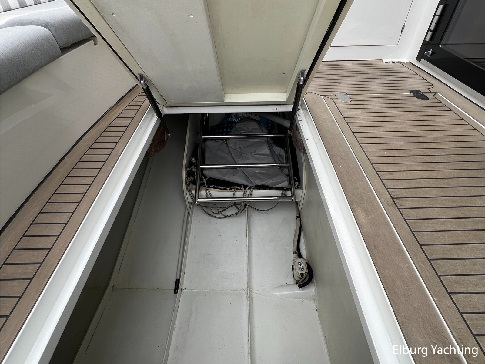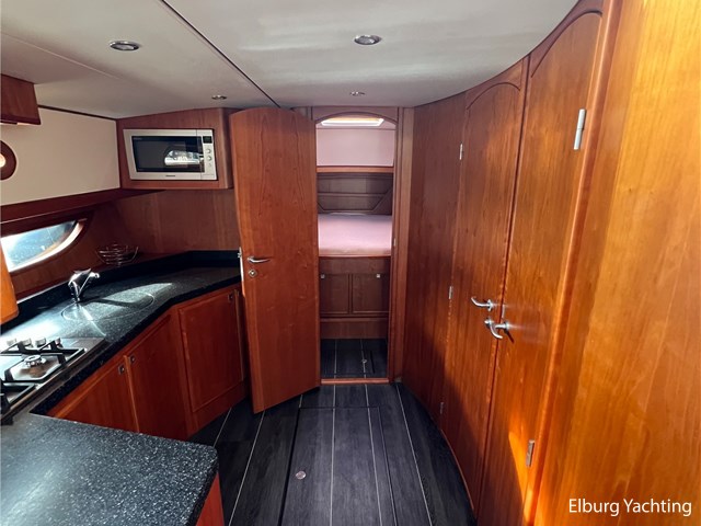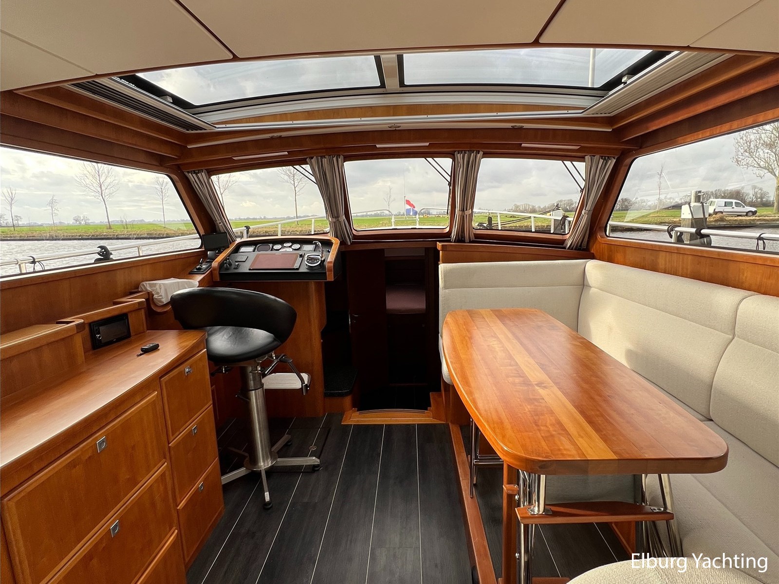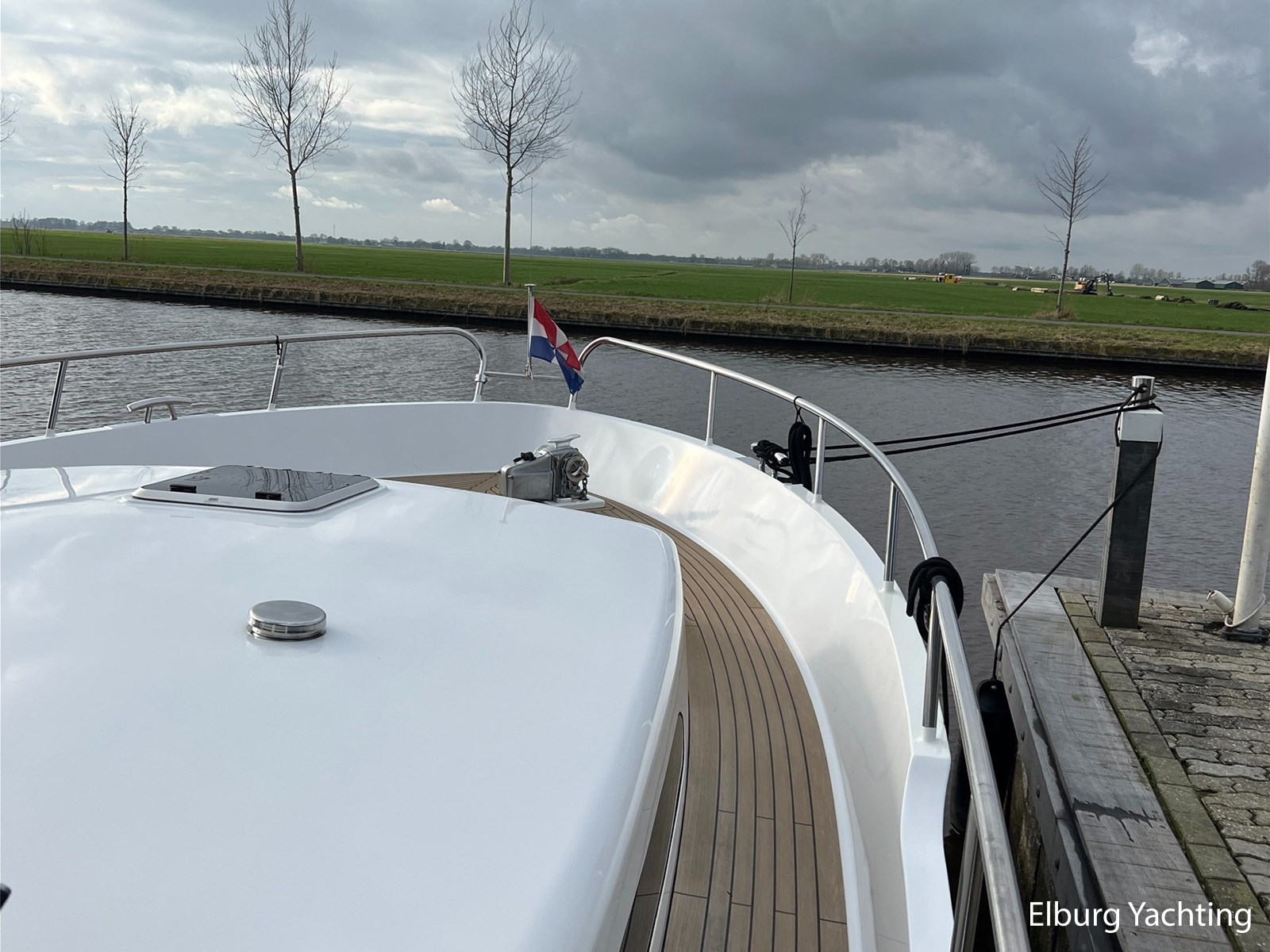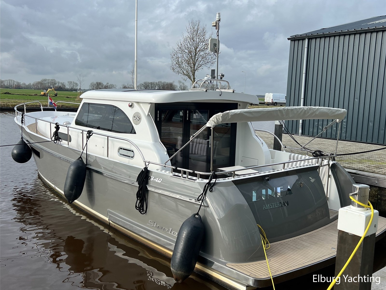 Beautifully lined Steeler NG40 built in 2013 by the renowned Steeler Yachts yard in Steenwijk. This timeless model is known for its comfortable open cockpit with the ground-level passage to the saloon + wheelhouse. All around, the yacht is fitted with a luxurious stainless steel sea railing. The cockpit floor, the integrated swimming platform, the spacious gangways and the foredeck are fitted with a Flexiteek deck. Inside, a chic wooden interior has been chosen in combination with a dark marine floor with light upholstery, this choice creates contrast in the interior. The yacht is equipped with a Follow-up steering system, preparation for the possible installation of a steering wheel has been made. Further forward in the yacht, the galley with Corian worktop is situated on the port side, guest cabin and wet room are placed to starboard and the owner's cabin is located at the front of the spacious yacht. The large windows + electrically opening roof hatch in the yacht provide plenty of natural light on board. Furthermore, the yacht comes with, among other things, Siemens wash/dry combination (under the stairs to the galley), TV lift built-in with remote control, Digitenne connected to the TV, wine cooler, alumium window frames, portholes with mosquito screen, r. v.s. deck ventilation, r.v.s. folding mast, r.v.s. baffle plate for anchor with electric windlass, high-quality Awl Grip paint system, Bimini top over cockpit, generous cockpit table, spacious storage hatch in cockpit. For questions and/or to make an appointment, you are welcome 7 days a week at Elburg Yachting.