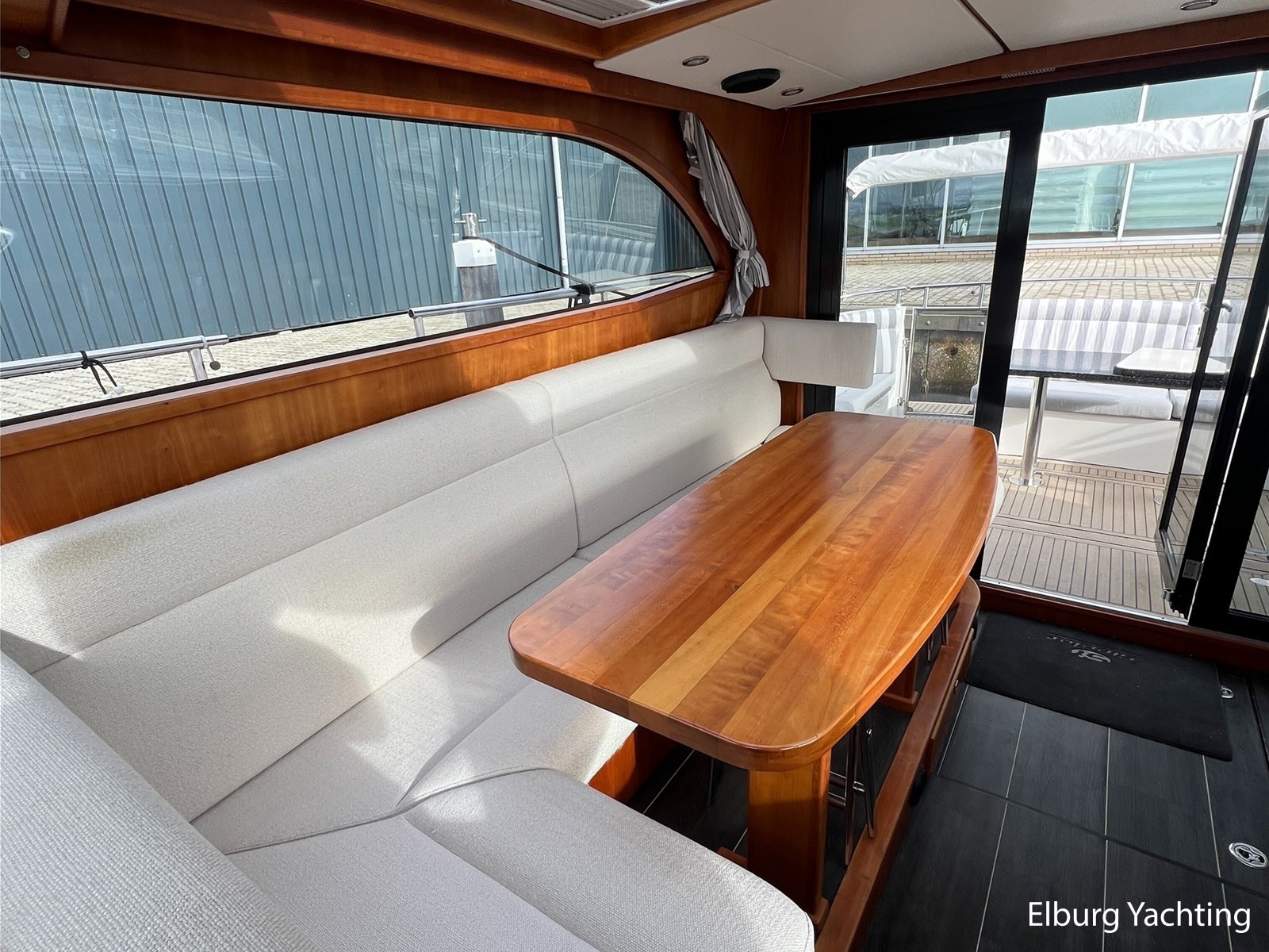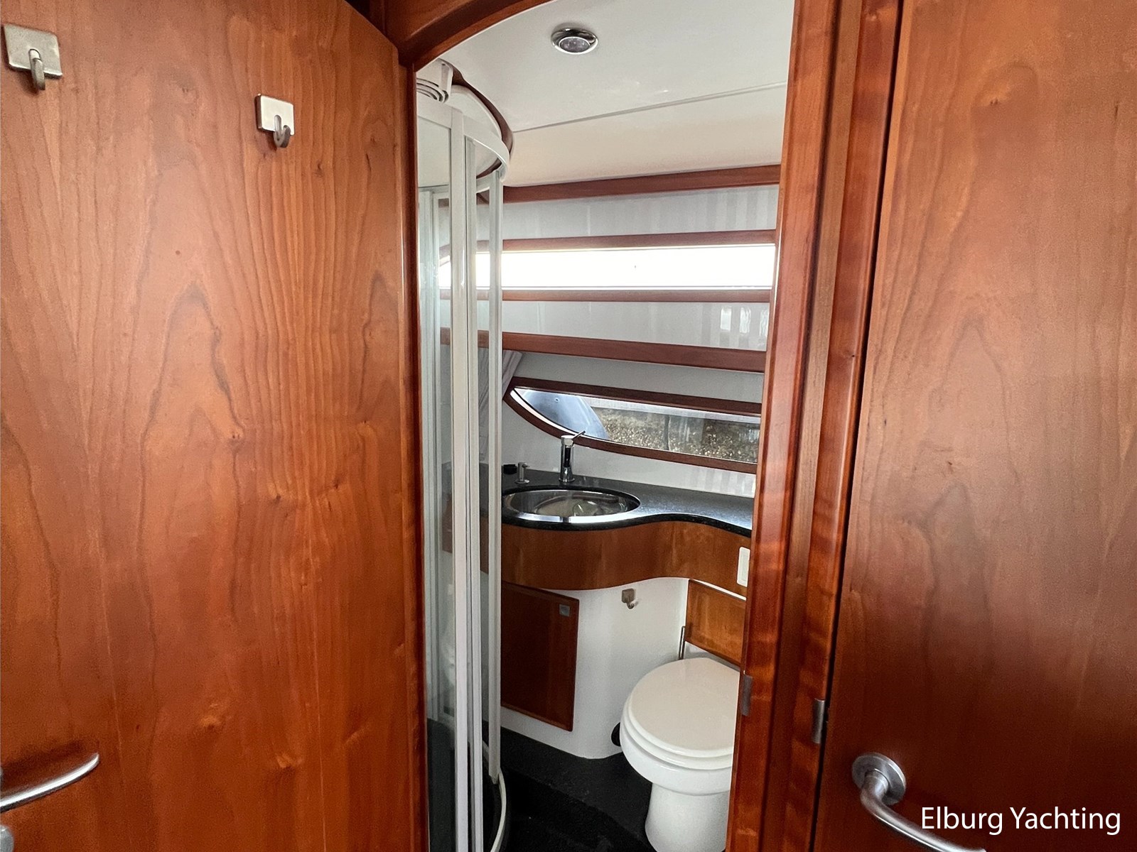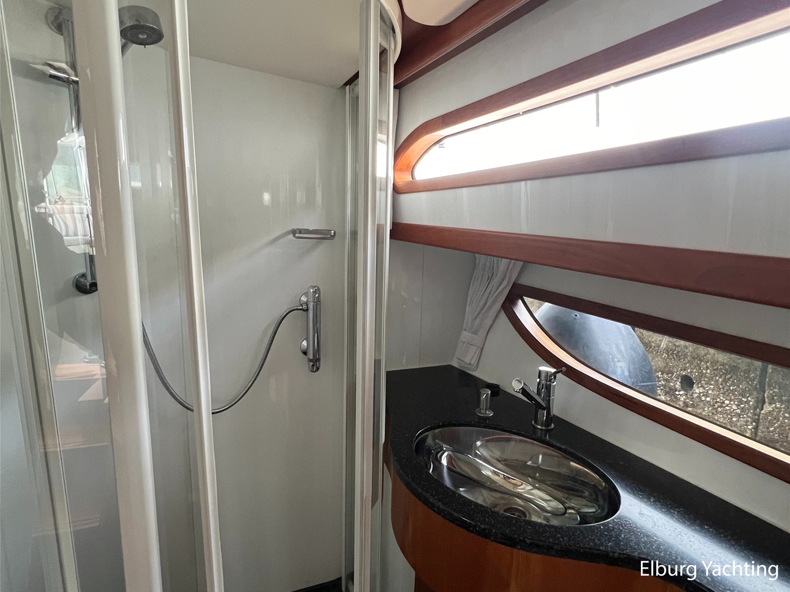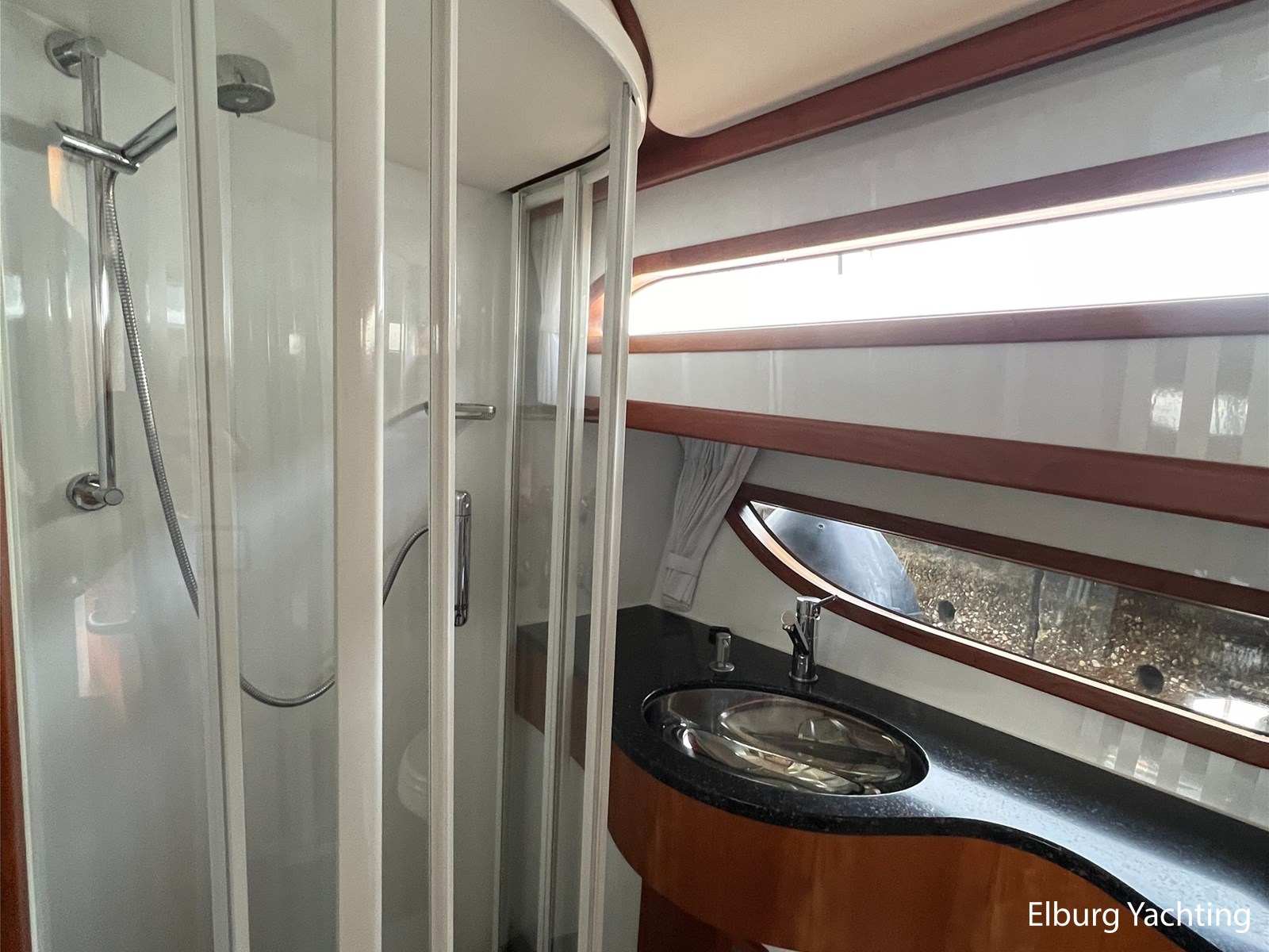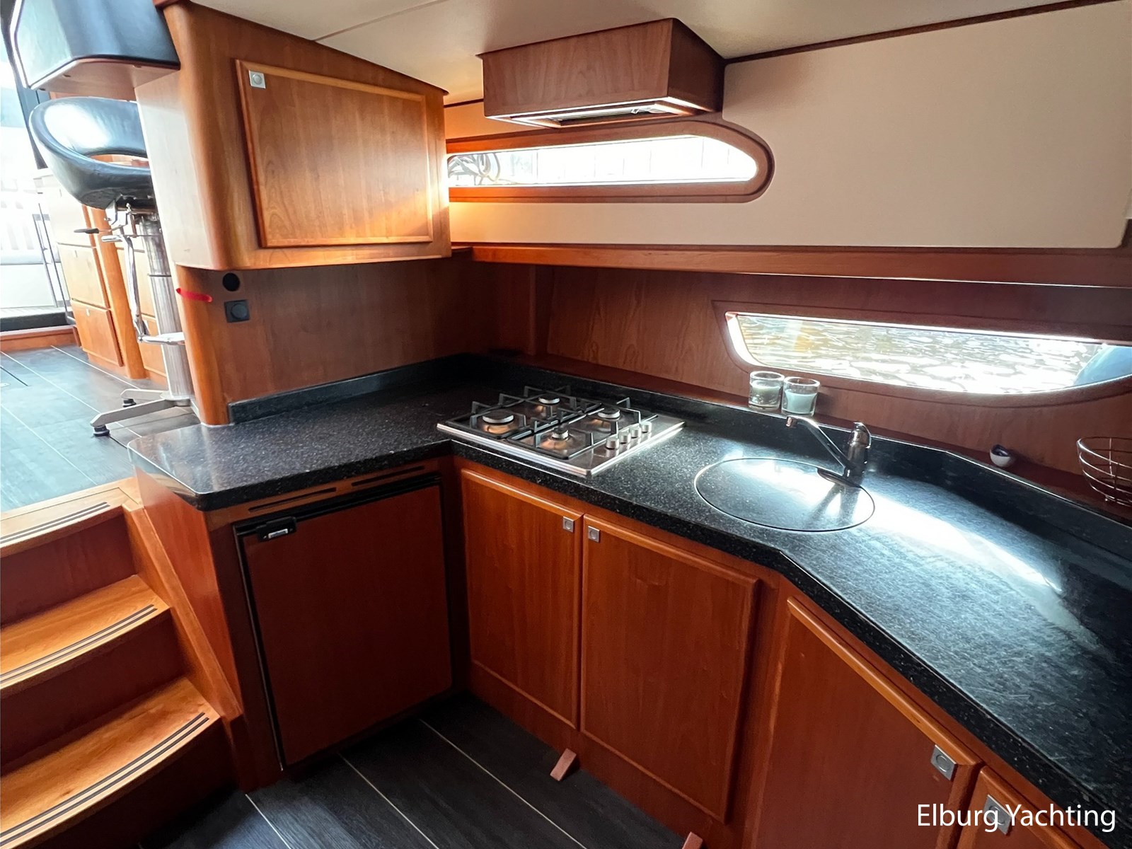 Beautifully lined Steeler NG40 built in 2013 by the renowned Steeler Yachts yard in Steenwijk. This timeless model is known for its comfortable open cockpit with the ground-level passage to the saloon + wheelhouse. All around, the yacht is fitted with a luxurious stainless steel sea railing. The cockpit floor, the integrated swimming platform, the spacious gangways and the foredeck are fitted with a Flexiteek deck. Inside, a chic wooden interior has been chosen in combination with a dark marine floor with light upholstery, this choice creates contrast in the interior. The yacht is equipped with a Follow-up steering system, preparation for the possible installation of a steering wheel has been made. Further forward in the yacht, the galley with Corian worktop is situated on the port side, guest cabin and wet room are placed to starboard and the owner's cabin is located at the front of the spacious yacht. The large windows + electrically opening roof hatch in the yacht provide plenty of natural light on board. Furthermore, the yacht comes with, among other things, Siemens wash/dry combination (under the stairs to the galley), TV lift built-in with remote control, Digitenne connected to the TV, wine cooler, alumium window frames, portholes with mosquito screen, r. v.s. deck ventilation, r.v.s. folding mast, r.v.s. baffle plate for anchor with electric windlass, high-quality Awl Grip paint system, Bimini top over cockpit, generous cockpit table, spacious storage hatch in cockpit. For questions and/or to make an appointment, you are welcome 7 days a week at Elburg Yachting.