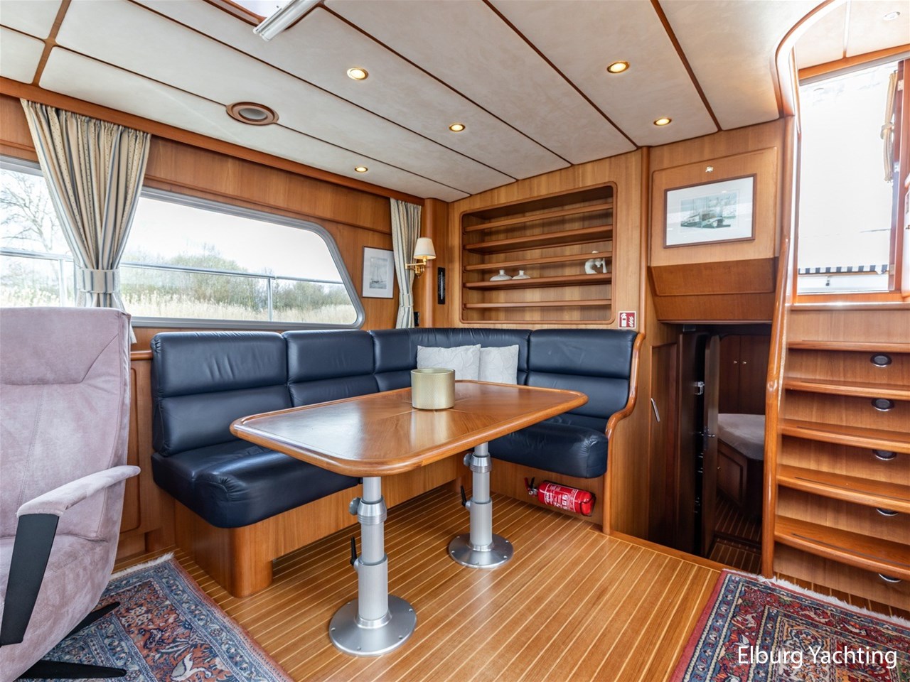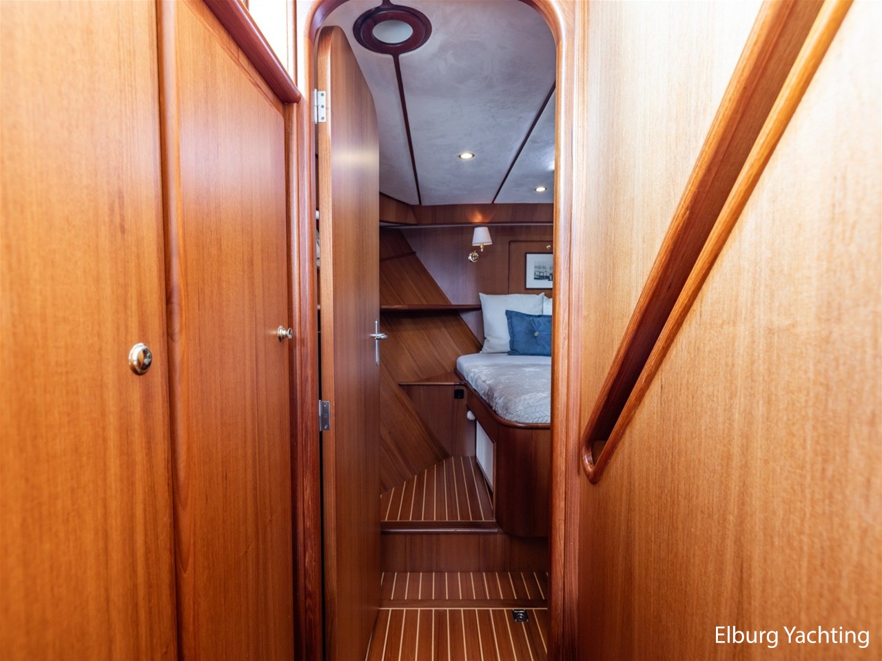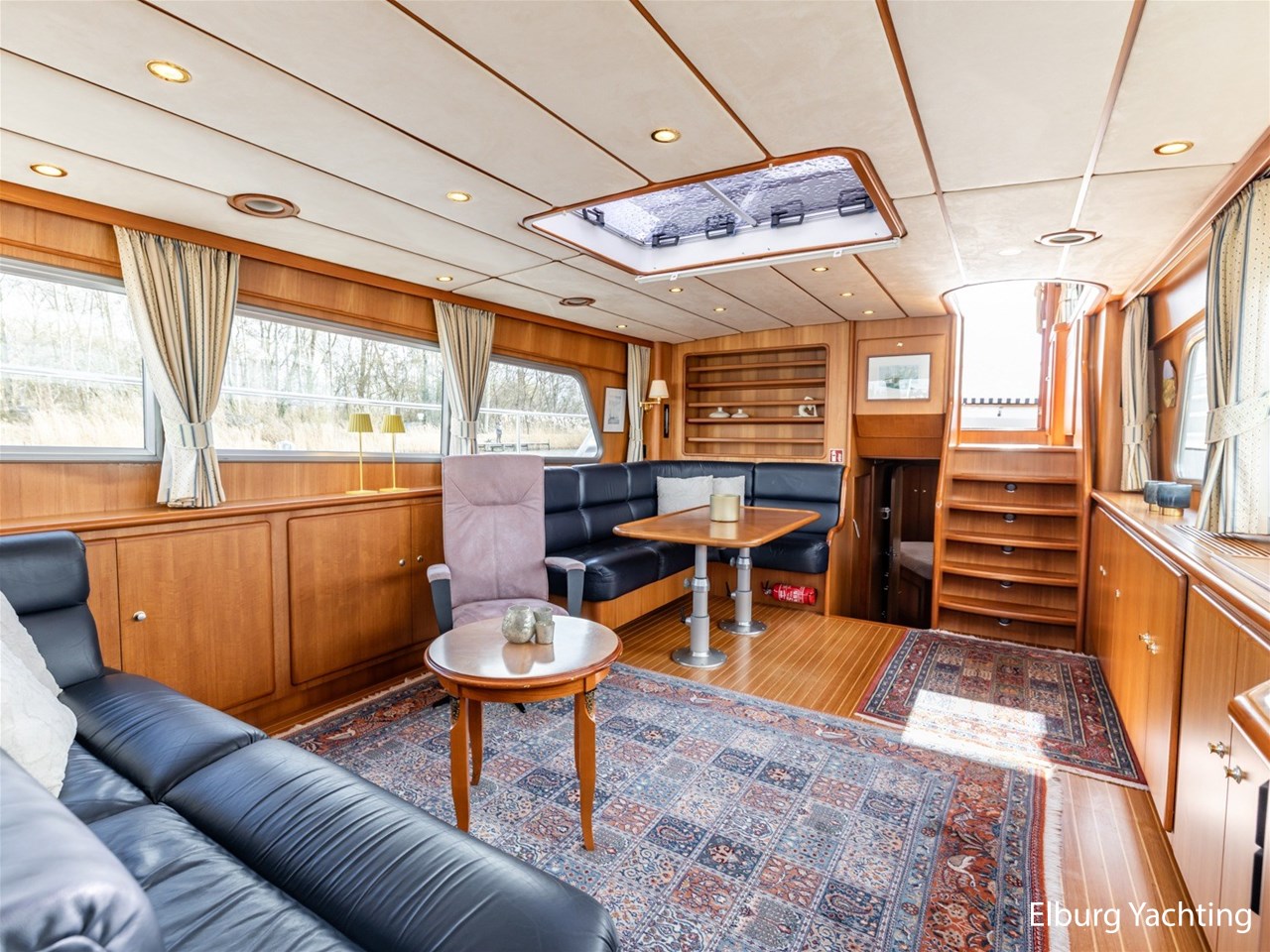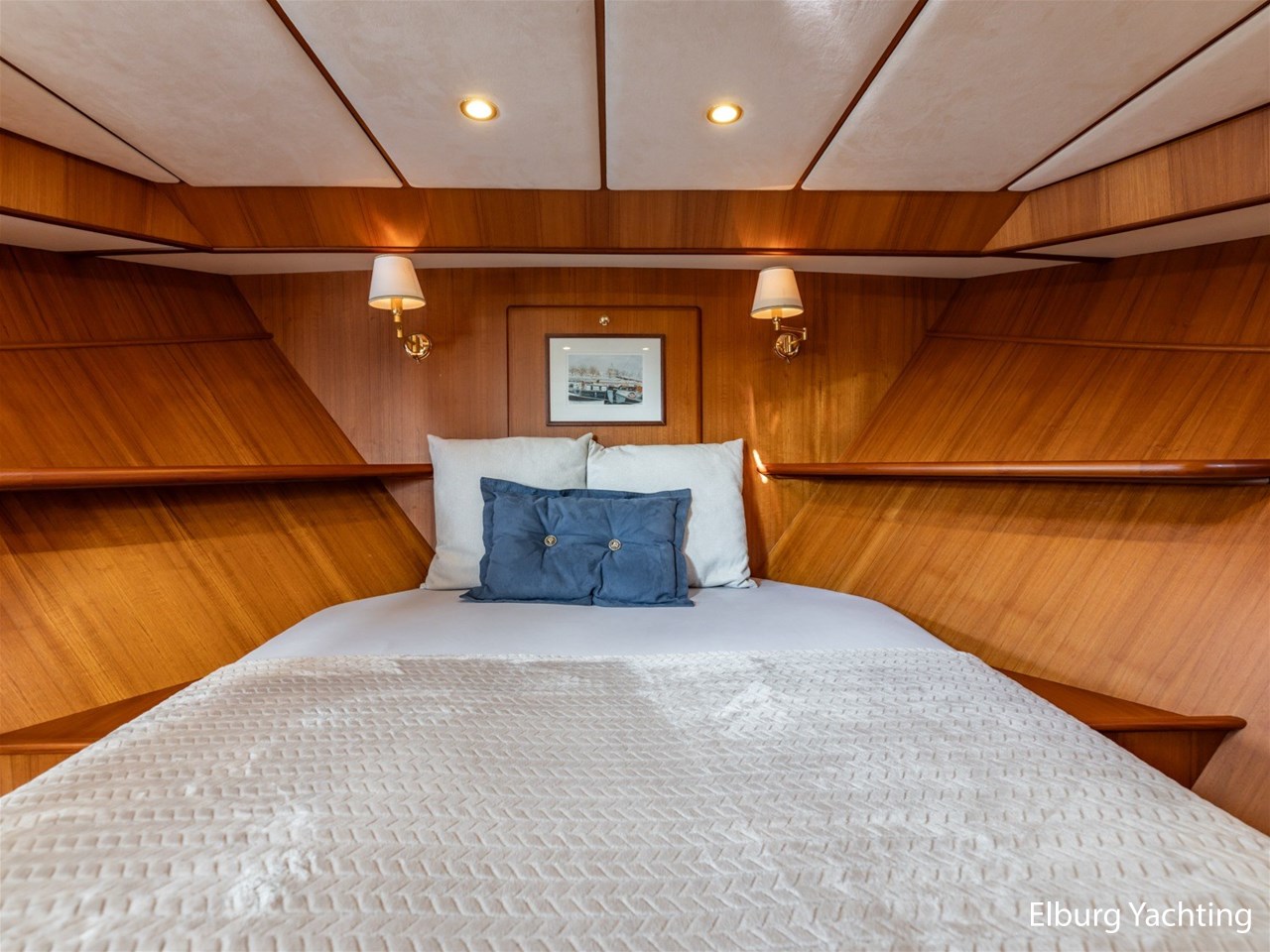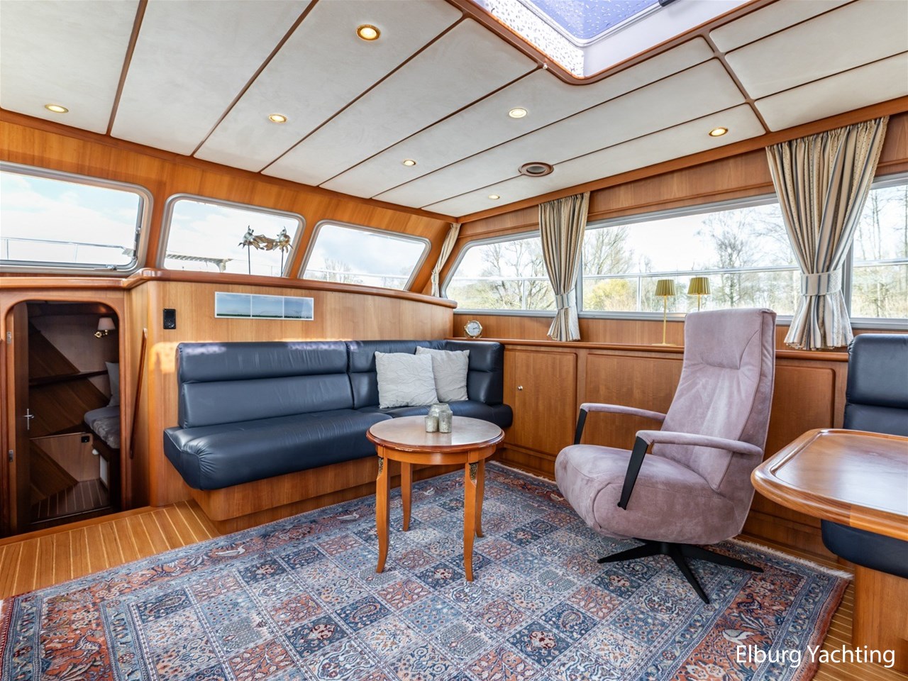 Sturier 520 AC (aft cabin) with raised wheelhouse provides maximum all-round visibility and good contact with people on deck. The saloon is very spacious with lots of natural light and not only has a ship's character but also immediately creates a living room atmosphere. The galley is accessible from the saloon and is fully equipped with modern equipment. The fore and aft cabin each have a double freestanding bed with a en-suite bathroom. The ship has more than proven itself on beautiful seagoing trips in and around Northern Europe. Refit work carried out: Hull in Majestic Blue and superstructure in Matterhorn White repainted in 2022, 6 x Mastervolt Gel batteries 220Ah / Mastervolt Easy 5 display / Mastervolt Mass Combi 24V 3500W 100Amp inverter renewed in 2022, complete dashboard renewed and modernized with Simrad equipment in 2021 and various smaller renewings on board. The Sturier 520 AC 'Blue Sky' is equipped with: double varnished teak door to the wheelhouse, Bosch dishwasher, Eumenia washer/dryer in bathroom front cabin, stainless steel towel heaters in both bathrooms, electric Morsche engine control with engine synchronization function, 5-blade propellers, Hydronautica remote control with which mooring and unmooring becomes child's play by operating the bow and stern thrusters and also the main engine stationary forwards and backwards, KVH TracVision TV3 dome, TV in saloon on lift, WiFi router on board (SIM card not included), 2 x sliding windows in wheelhouse, deck wash connection on SB + BB, fly screens for hatches and portholes and fly screen door in wheelhouse, hydraulically foldable mast, clearance height with mast up approx. 6.60m and with folded mast approx. 4.10m. The maximum speed is approximately 9 knots, the cruising speed is approximately 7.5 knots with a total consumption of approximately 15 litres p/hour. For questions and/or to make an appointment, you are welcome at Elburg Yachting 7 days a week.