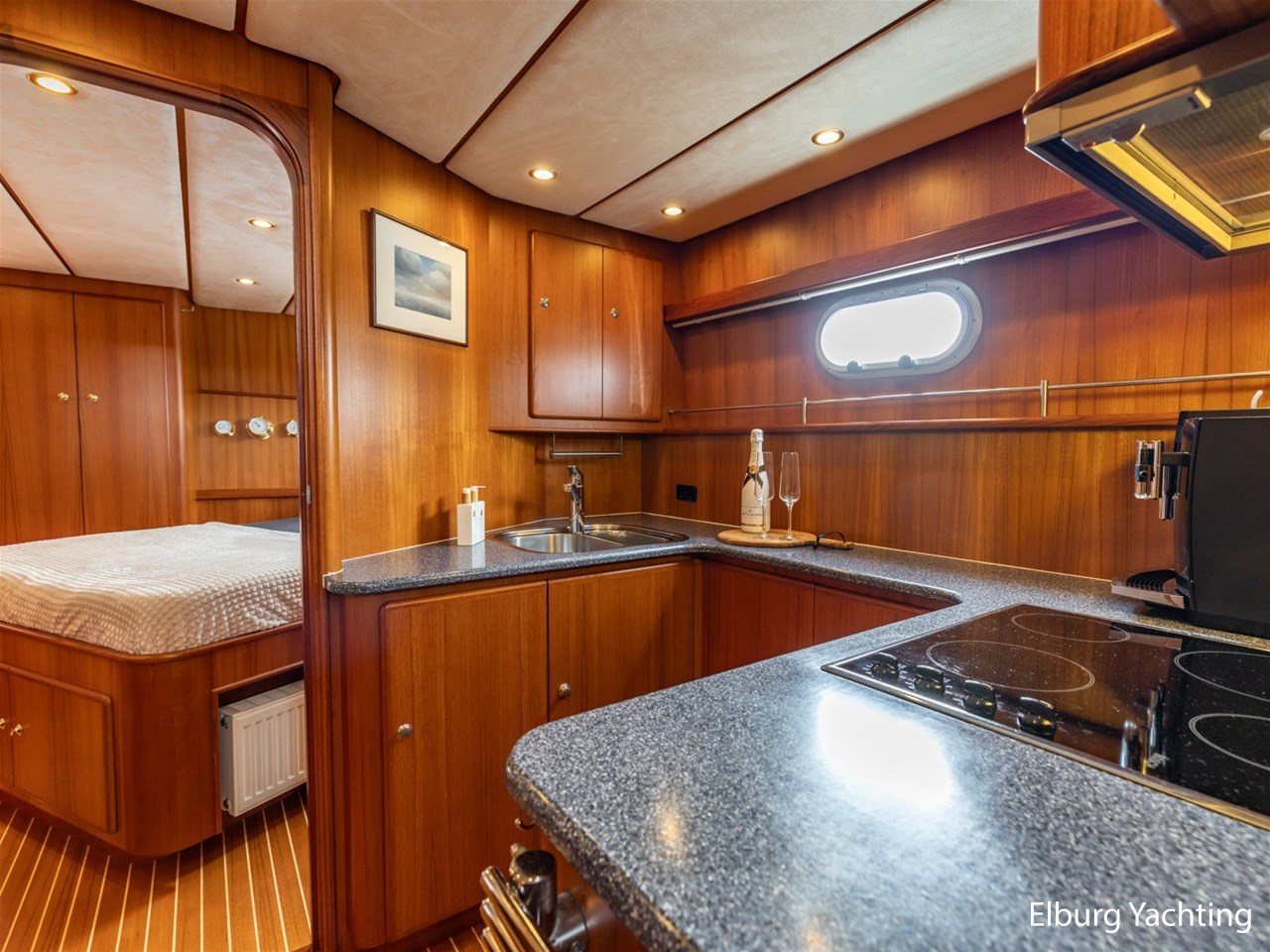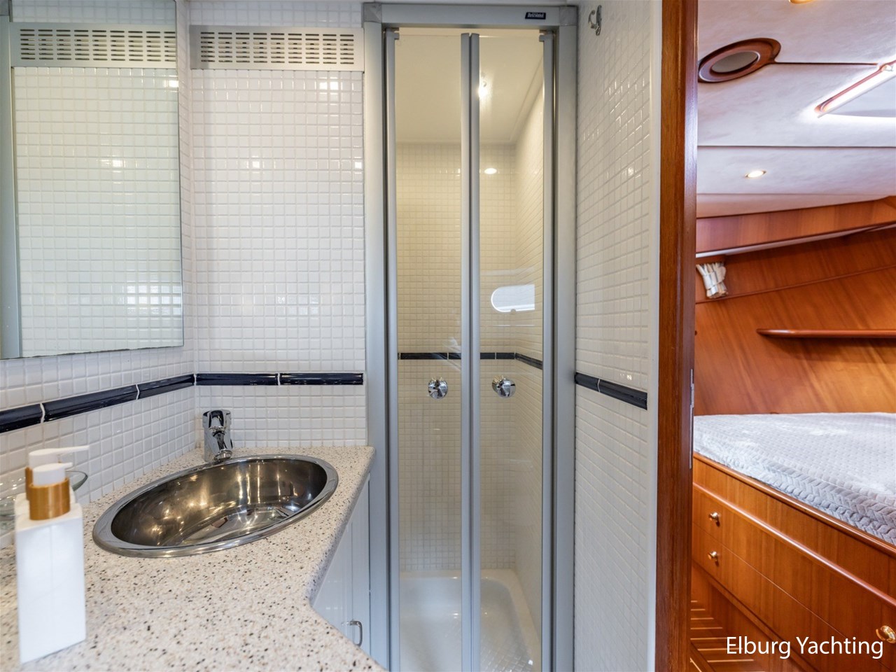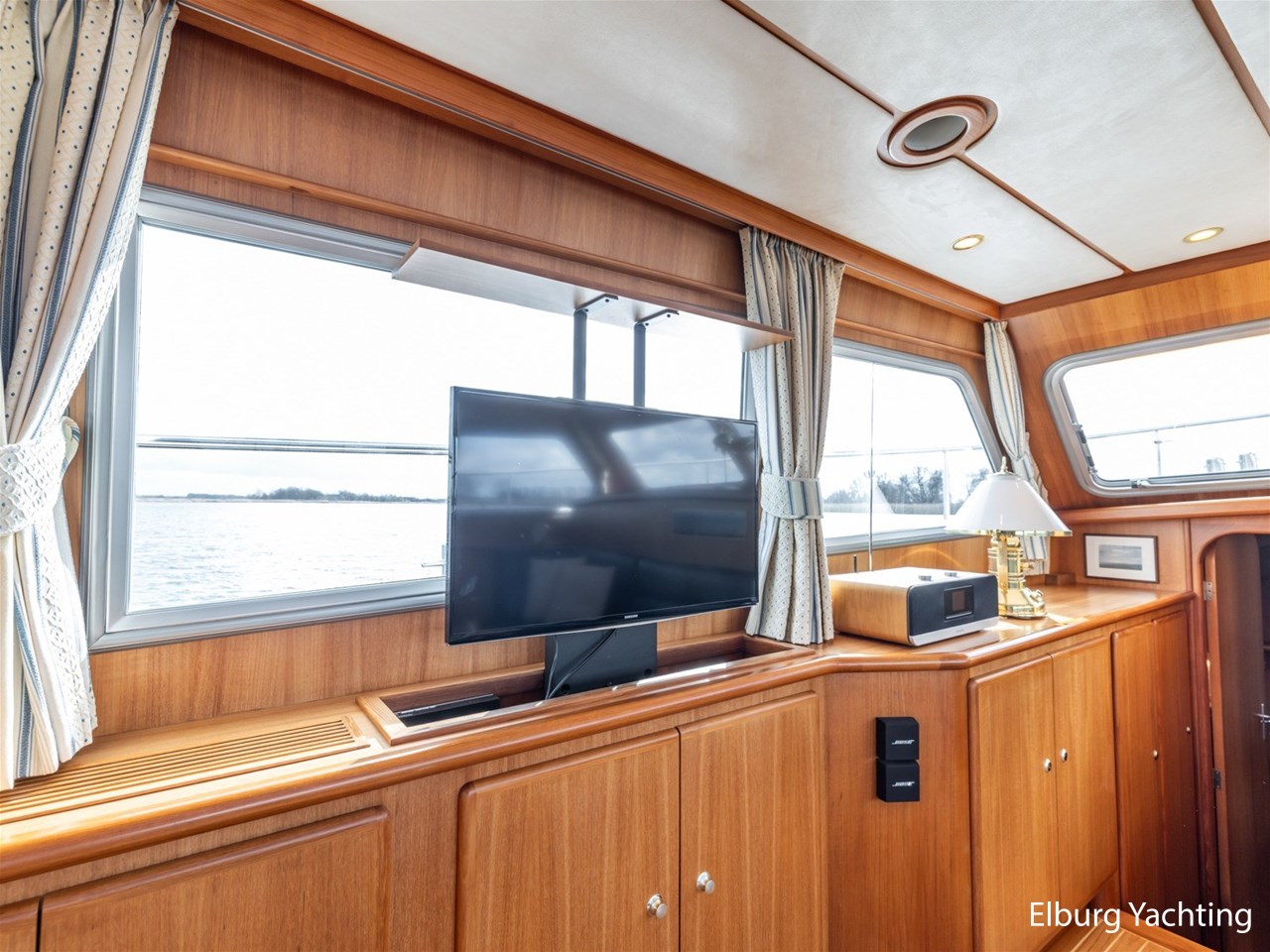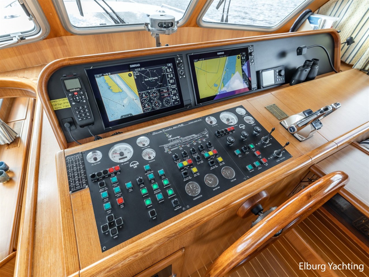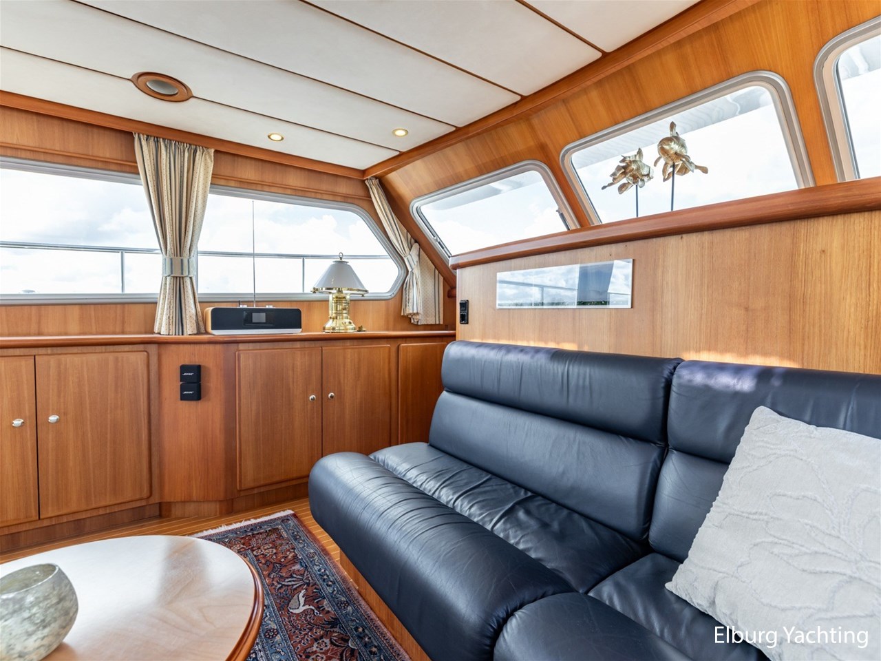 Sturier 520 AC (aft cabin) with raised wheelhouse provides maximum all-round visibility and good contact with people on deck. The saloon is very spacious with lots of natural light and not only has a ship's character but also immediately creates a living room atmosphere. The galley is accessible from the saloon and is fully equipped with modern equipment. The fore and aft cabin each have a double freestanding bed with a en-suite bathroom. The ship has more than proven itself on beautiful seagoing trips in and around Northern Europe. Refit work carried out: Hull in Majestic Blue and superstructure in Matterhorn White repainted in 2022, 6 x Mastervolt Gel batteries 220Ah / Mastervolt Easy 5 display / Mastervolt Mass Combi 24V 3500W 100Amp inverter renewed in 2022, complete dashboard renewed and modernized with Simrad equipment in 2021 and various smaller renewings on board. The Sturier 520 AC 'Blue Sky' is equipped with: double varnished teak door to the wheelhouse, Bosch dishwasher, Eumenia washer/dryer in bathroom front cabin, stainless steel towel heaters in both bathrooms, electric Morsche engine control with engine synchronization function, 5-blade propellers, Hydronautica remote control with which mooring and unmooring becomes child's play by operating the bow and stern thrusters and also the main engine stationary forwards and backwards, KVH TracVision TV3 dome, TV in saloon on lift, WiFi router on board (SIM card not included), 2 x sliding windows in wheelhouse, deck wash connection on SB + BB, fly screens for hatches and portholes and fly screen door in wheelhouse, hydraulically foldable mast, clearance height with mast up approx. 6.60m and with folded mast approx. 4.10m. The maximum speed is approximately 9 knots, the cruising speed is approximately 7.5 knots with a total consumption of approximately 15 litres p/hour. For questions and/or to make an appointment, you are welcome at Elburg Yachting 7 days a week.