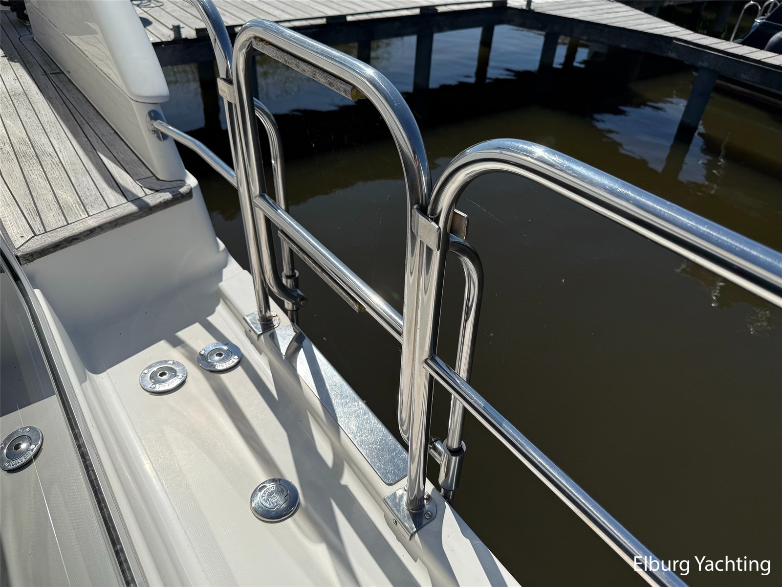 - Integrated + teak + stainless steel ladder
