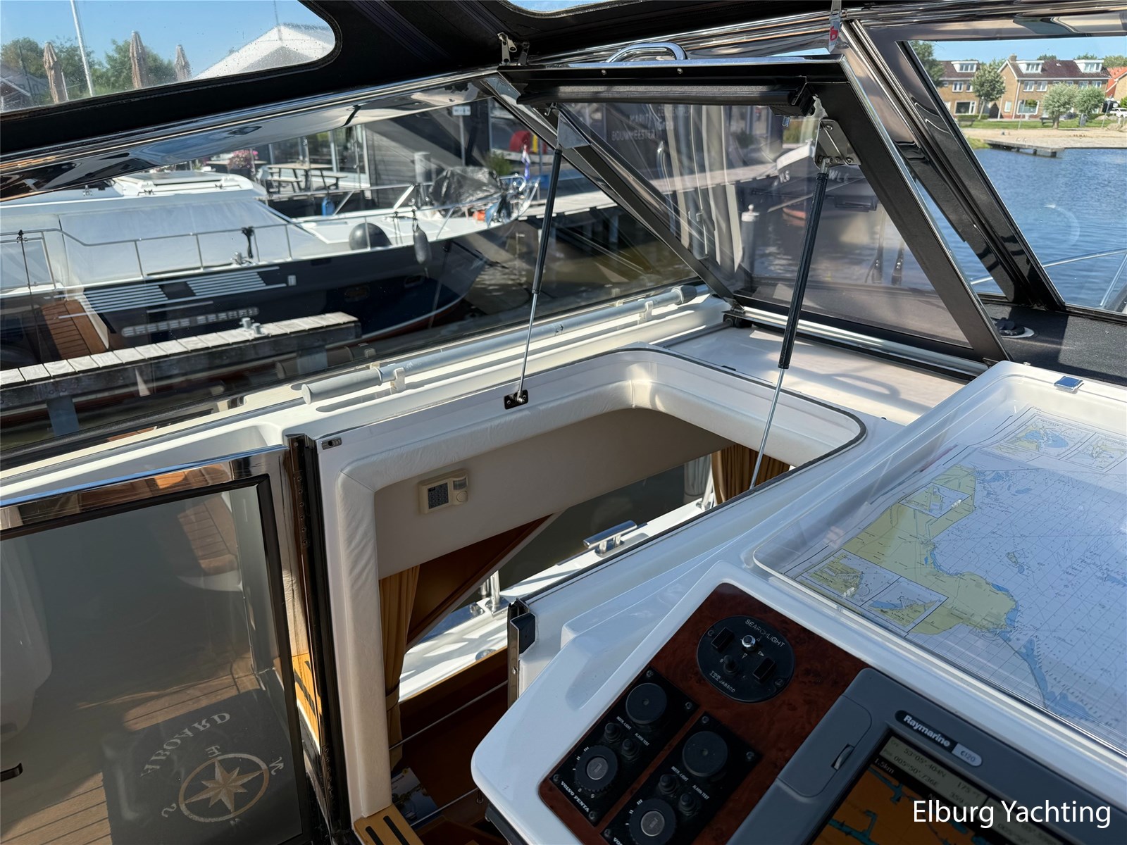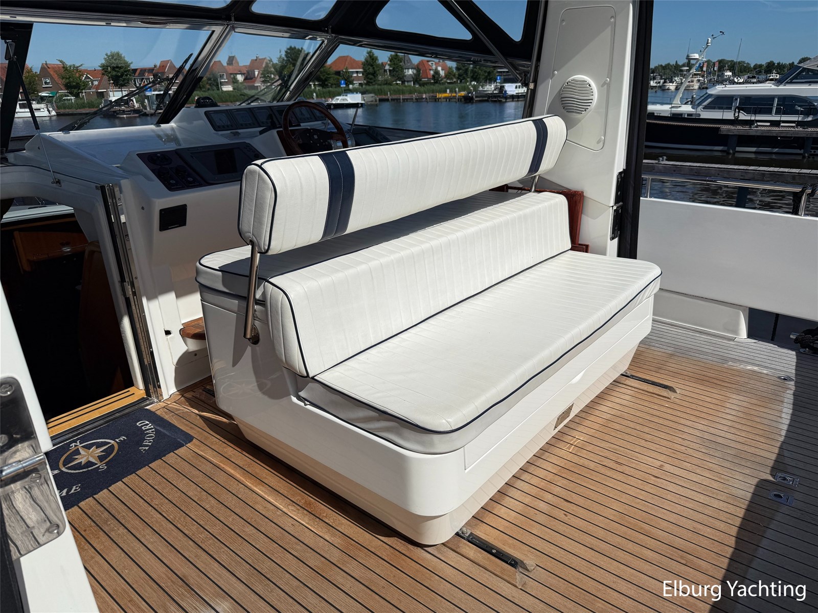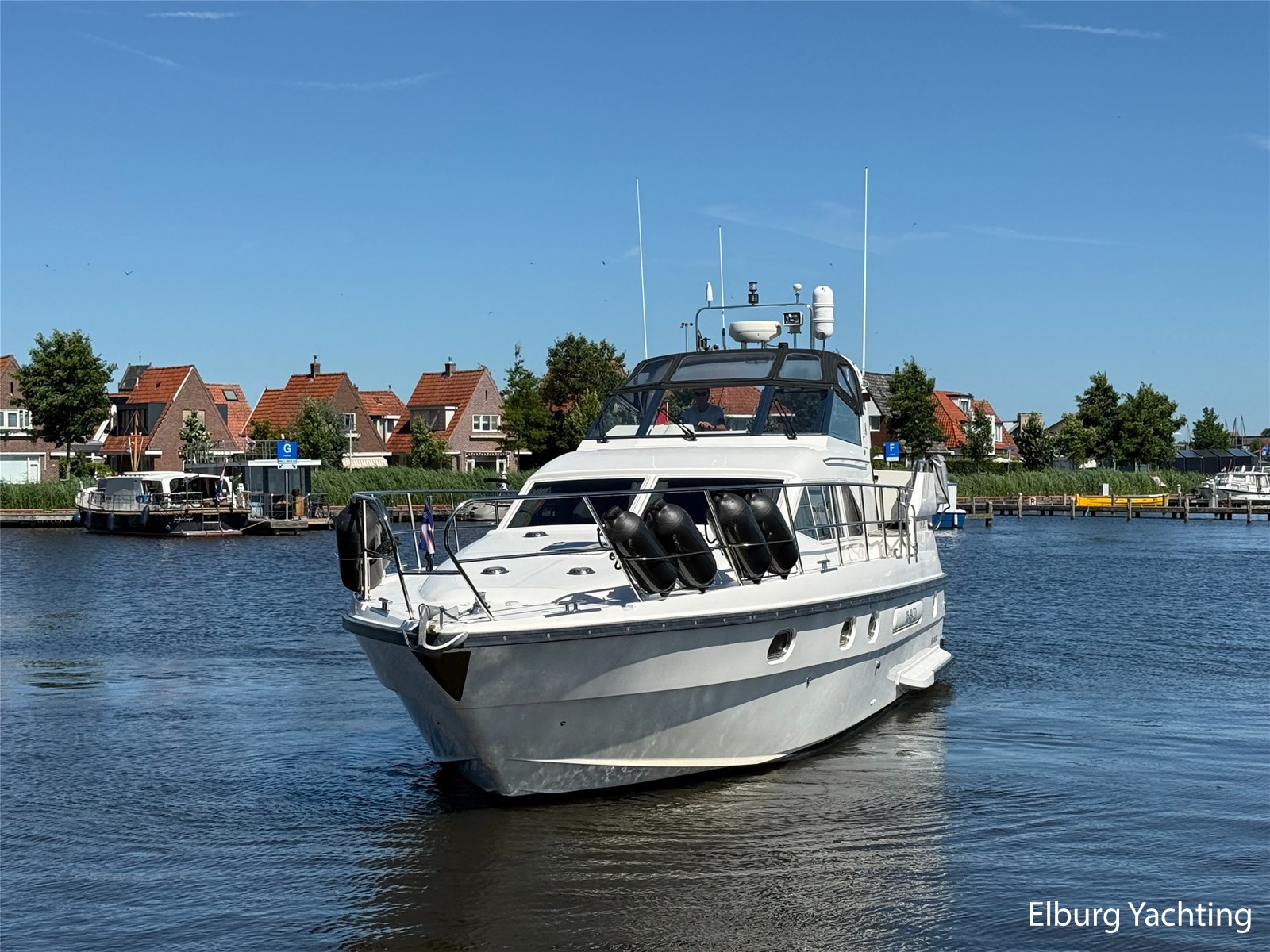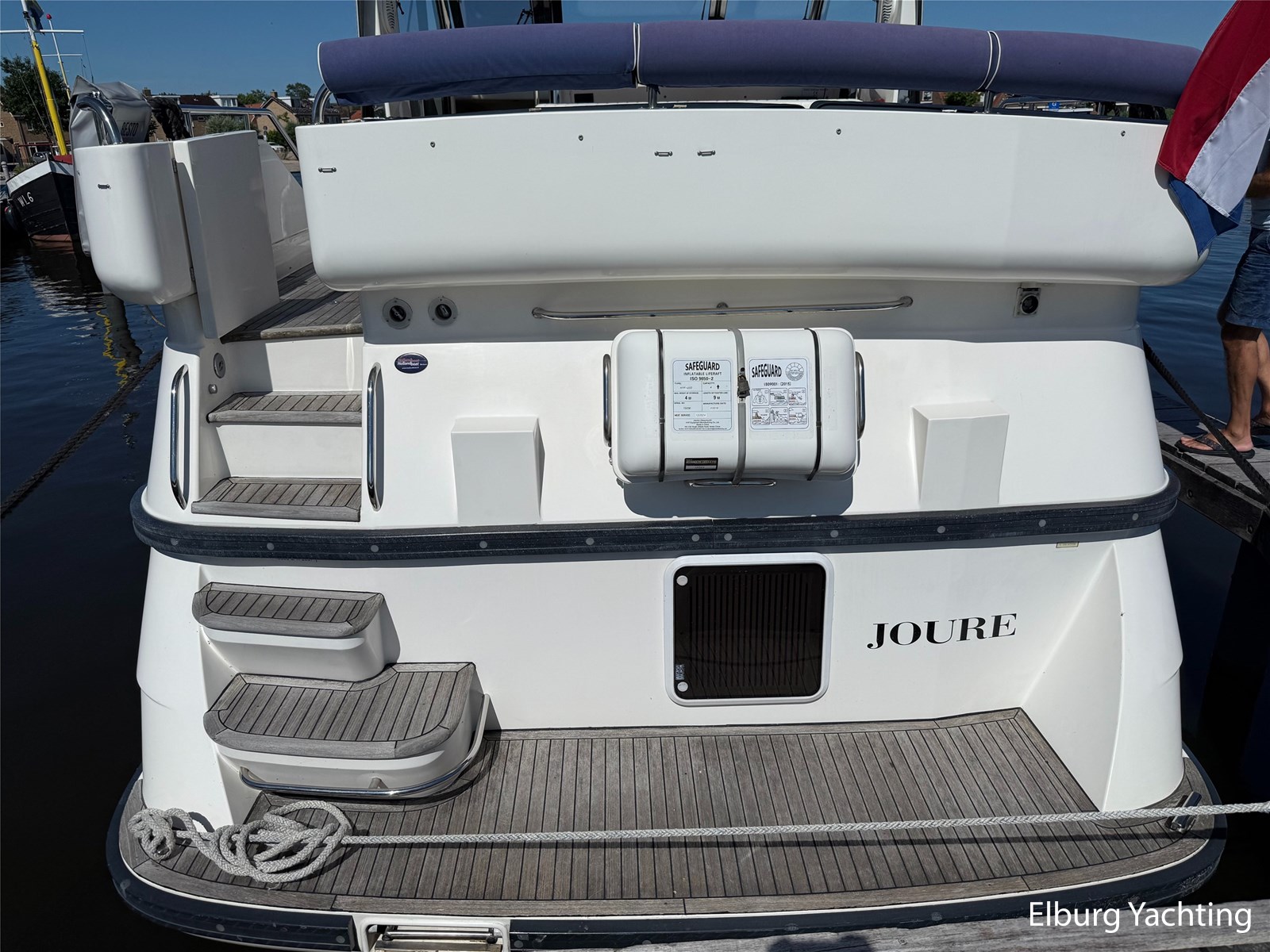 Stainless steel railing, biminitop over aft deck, integrated couch on aft deck, synthetic bumper, electric searchlight, 3 x double armed window wipers, GRP radar arch, steering couch, Corian worktops, dishwasher, flight/ventilation hatches, shower/toilet separate, stainless steel fender holders, washing/drying combination, heating in steering position.