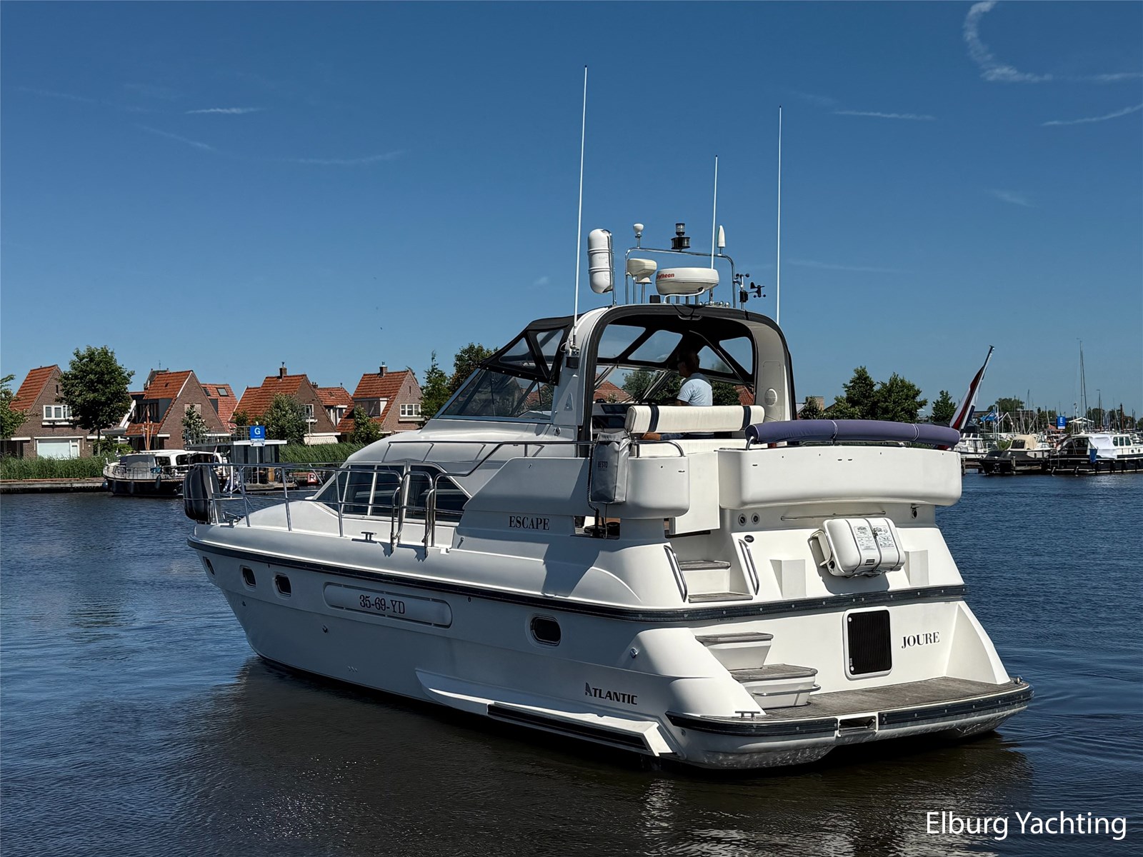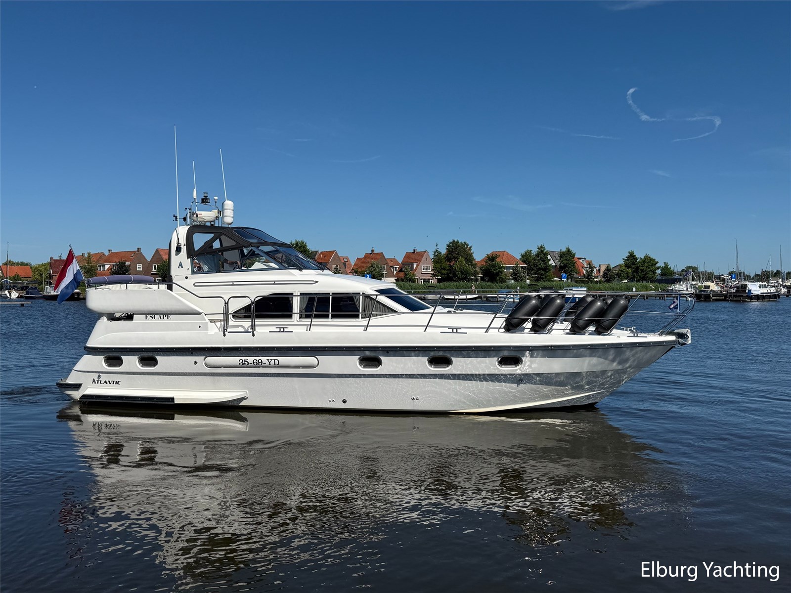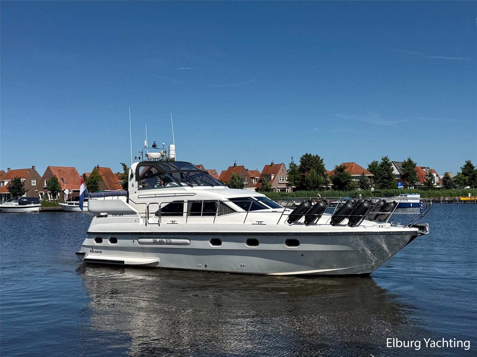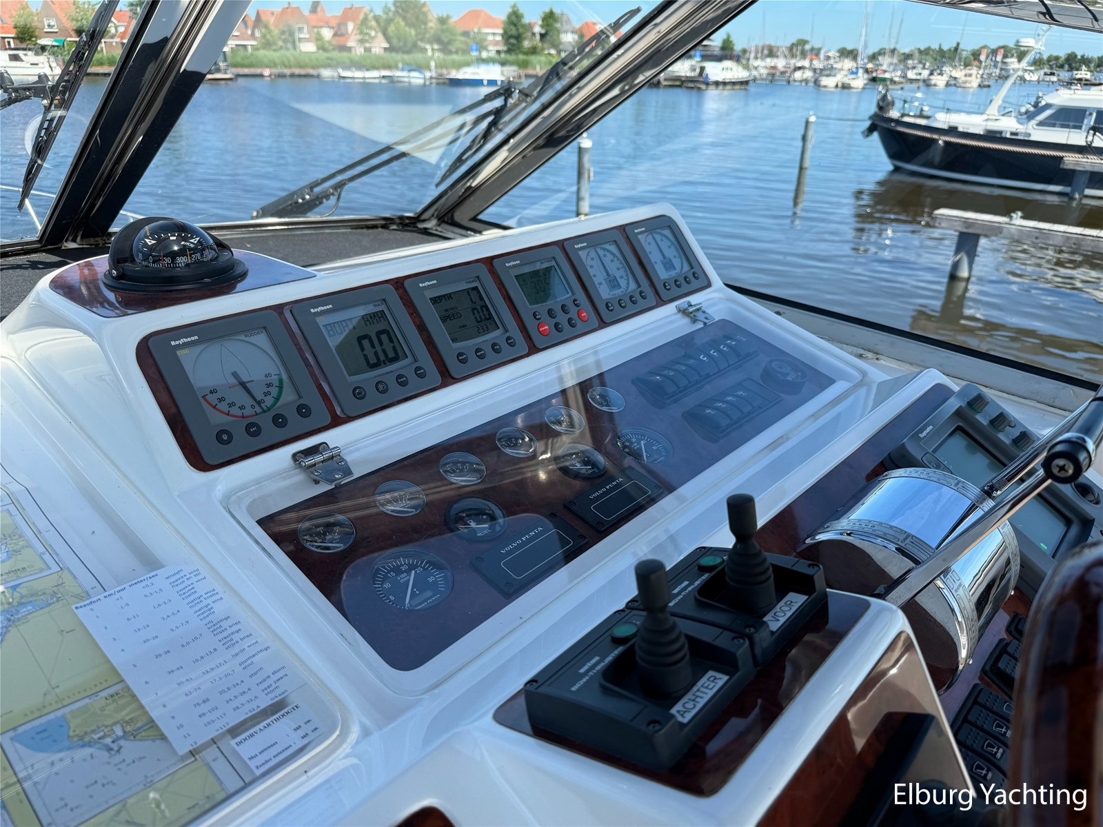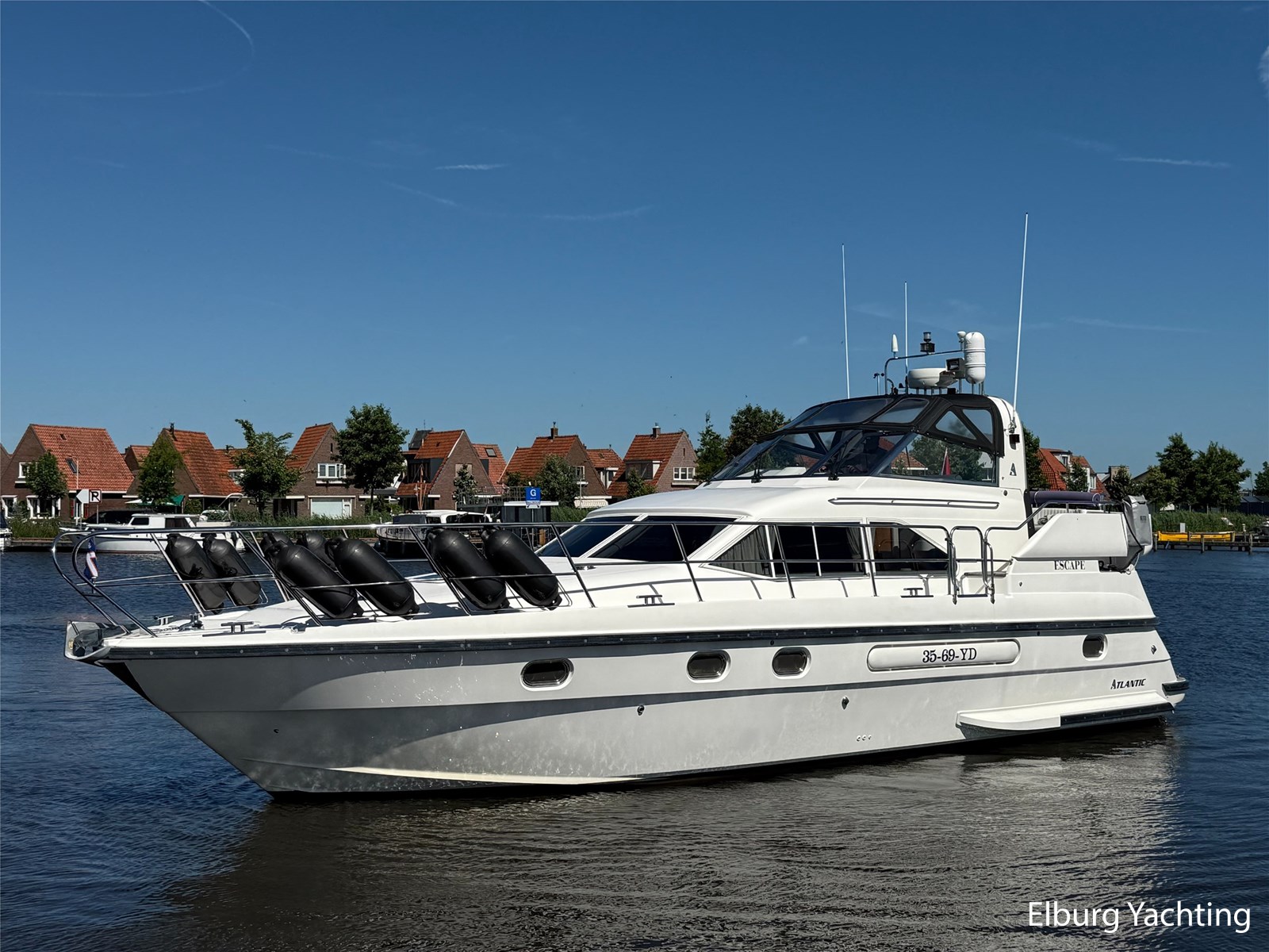 Stainless steel railing, biminitop over aft deck, integrated couch on aft deck, synthetic bumper, electric searchlight, 3 x double armed window wipers, GRP radar arch, steering couch, Corian worktops, dishwasher, flight/ventilation hatches, shower/toilet separate, stainless steel fender holders, washing/drying combination, heating in steering position.