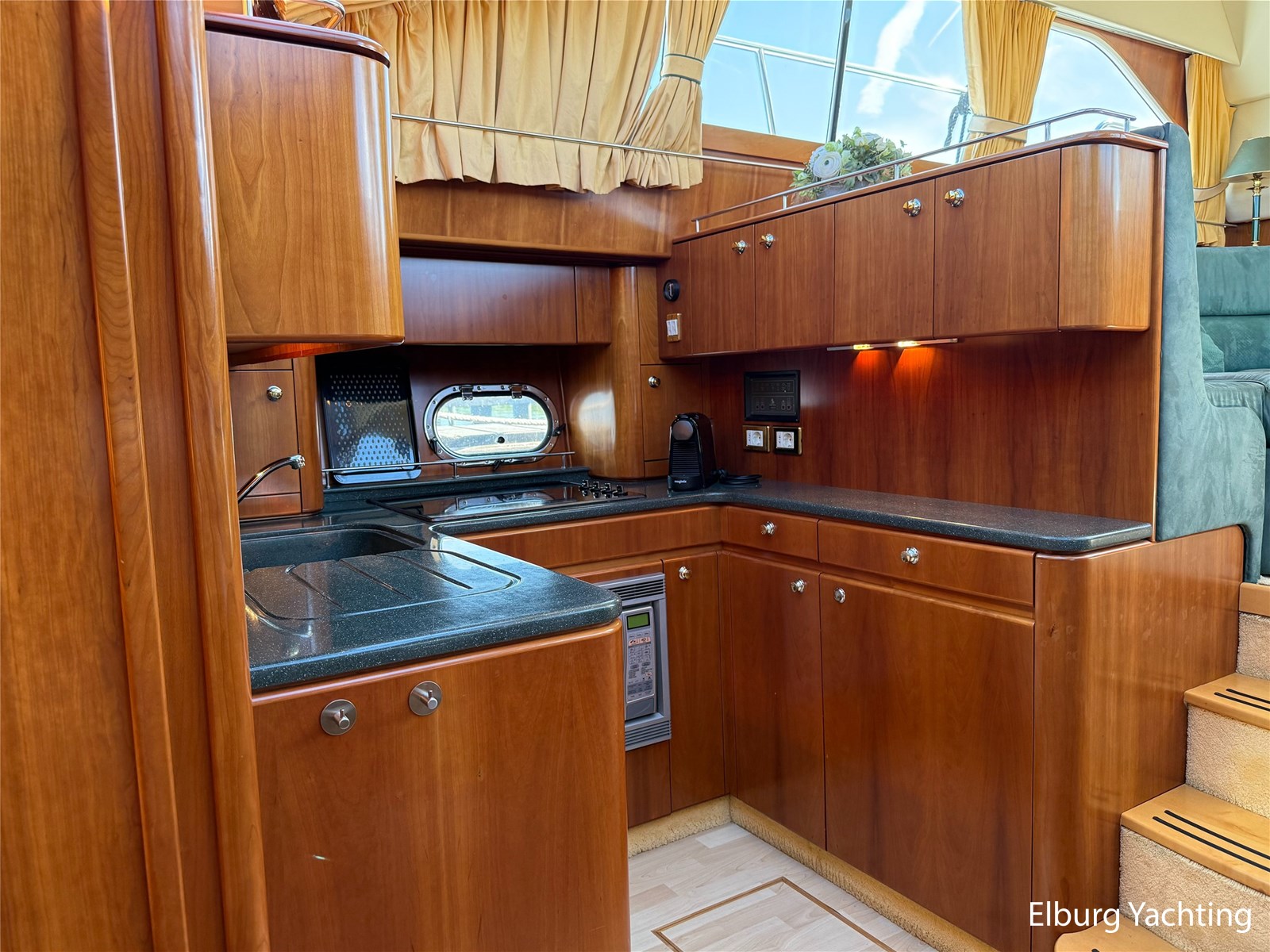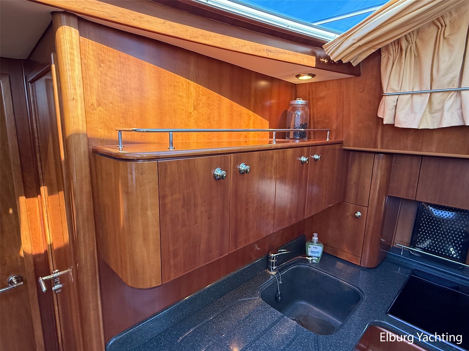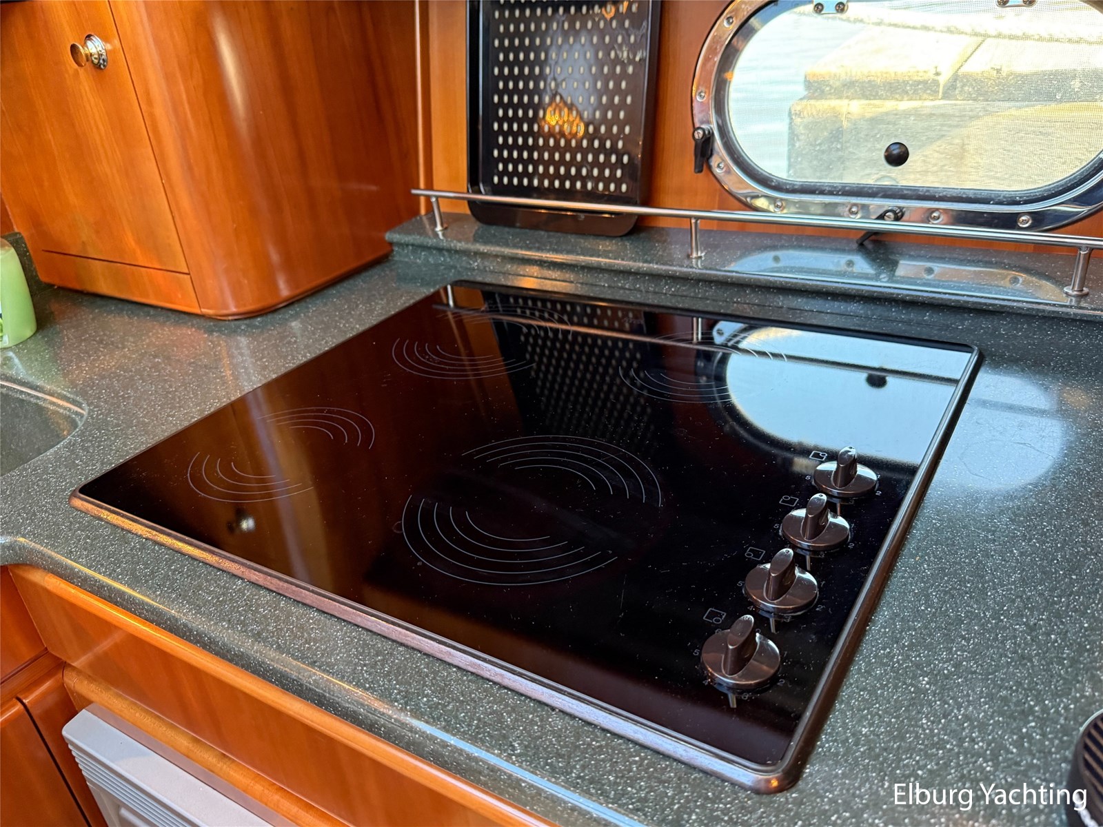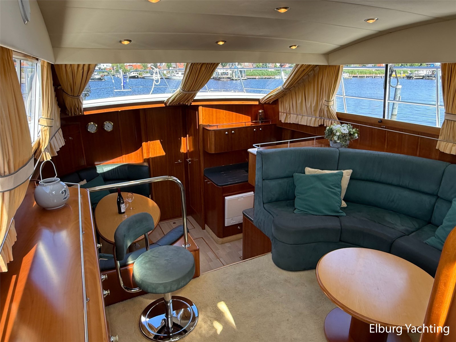 Stainless steel railing, biminitop over aft deck, integrated couch on aft deck, synthetic bumper, electric searchlight, 3 x double armed window wipers, GRP radar arch, steering couch, Corian worktops, dishwasher, flight/ventilation hatches, shower/toilet separate, stainless steel fender holders, washing/drying combination, heating in steering position.