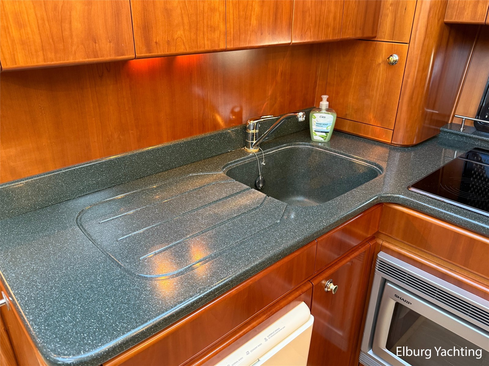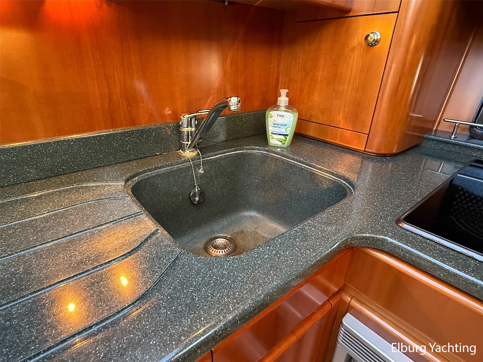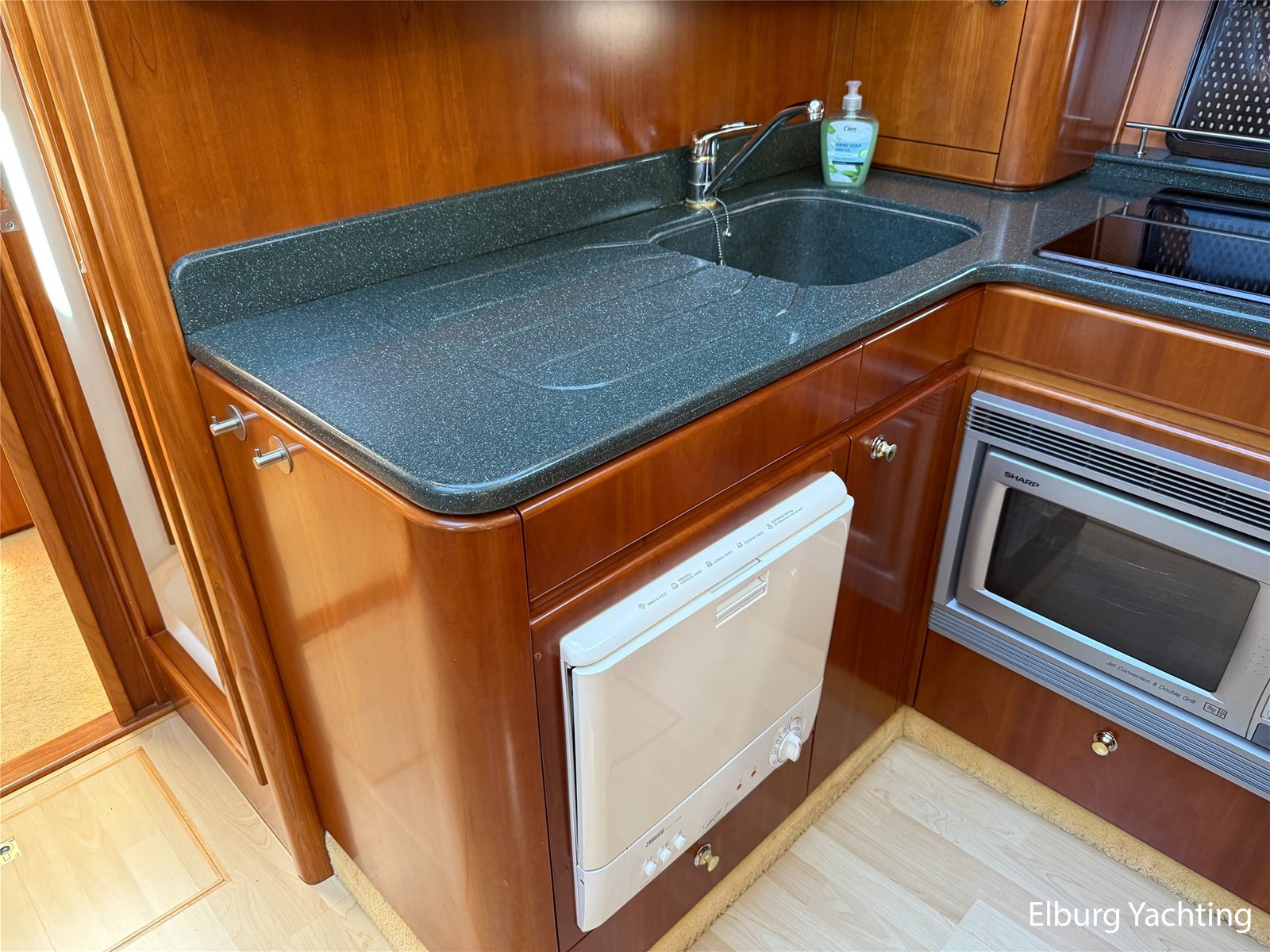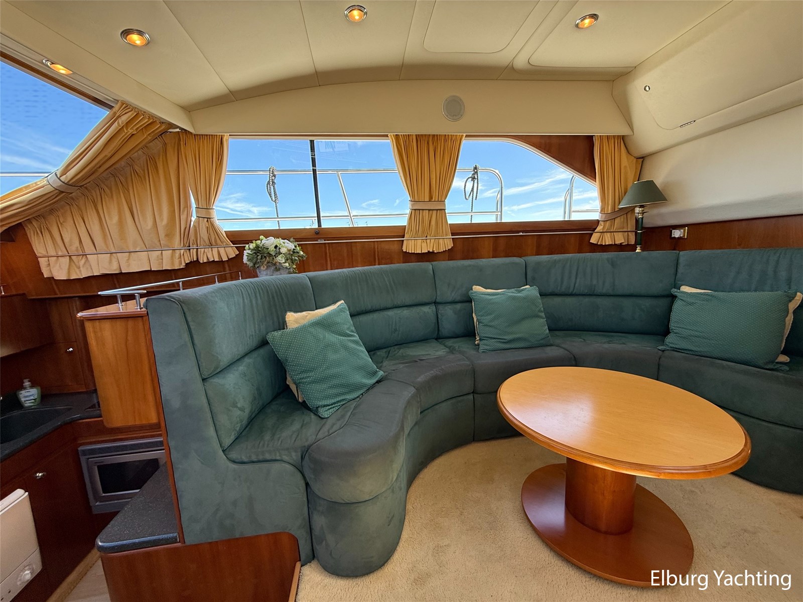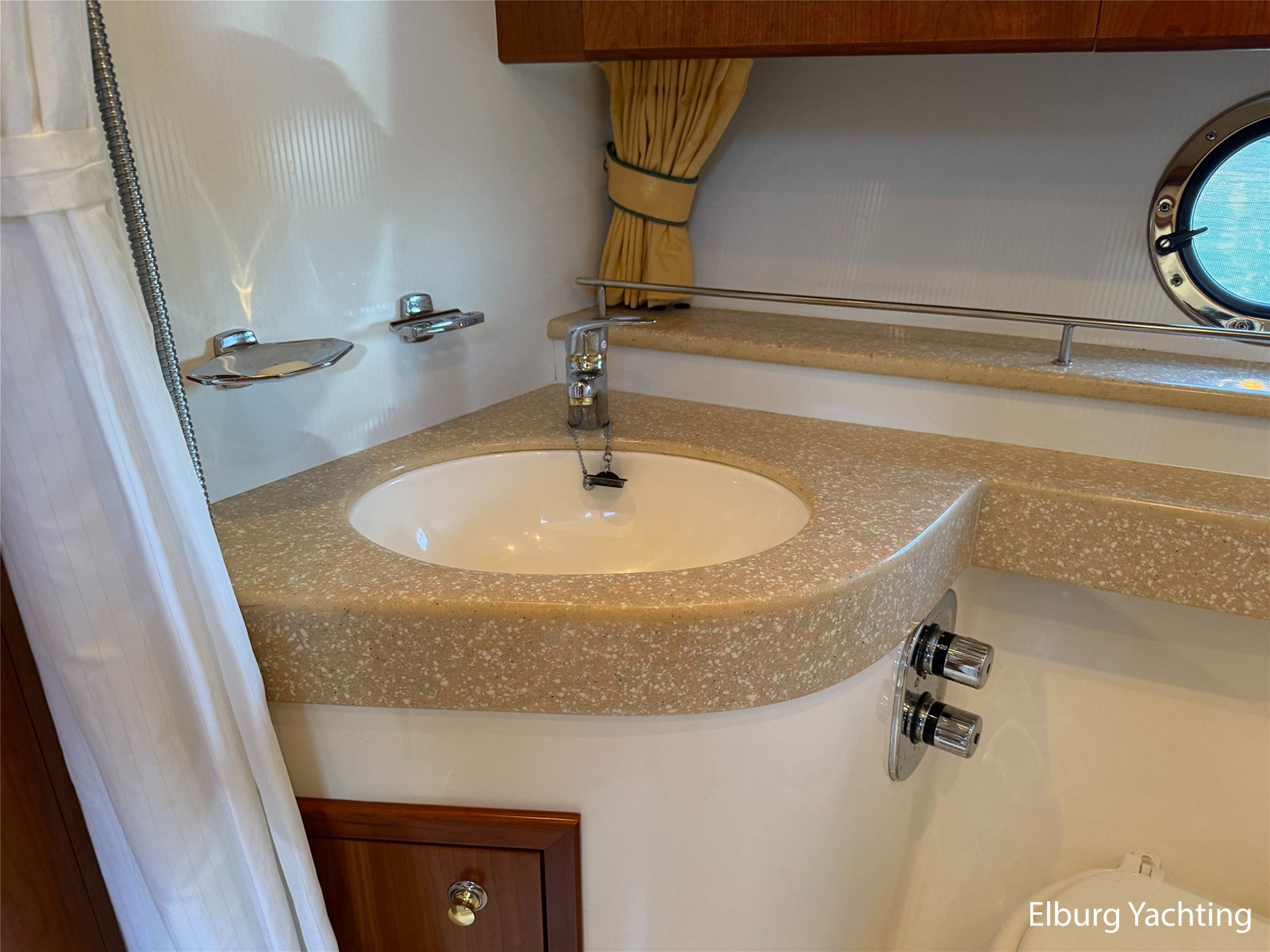 Stainless steel railing, biminitop over aft deck, integrated couch on aft deck, synthetic bumper, electric searchlight, 3 x double armed window wipers, GRP radar arch, steering couch, Corian worktops, dishwasher, flight/ventilation hatches, shower/toilet separate, stainless steel fender holders, washing/drying combination, heating in steering position.