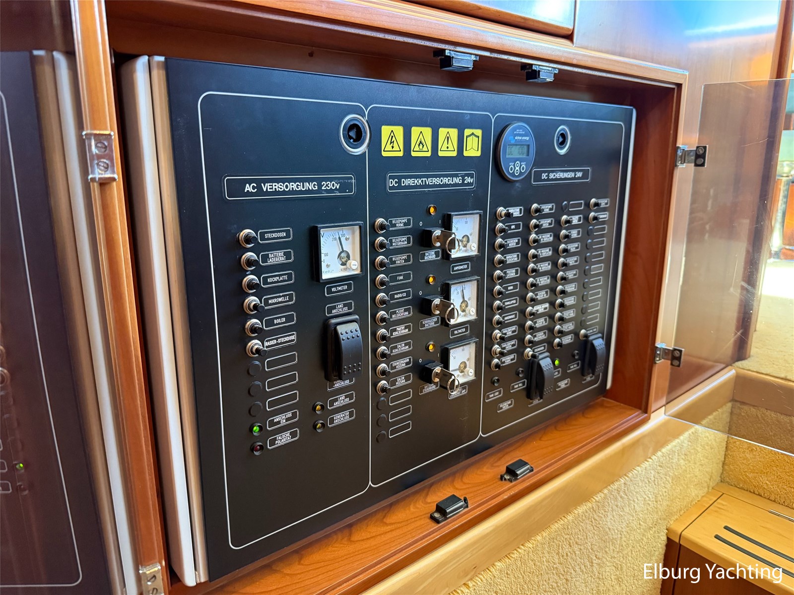 - Victron Multiplus 24/3000/70 + separate chager for starter batteries and bow- and stern thruster batteries.