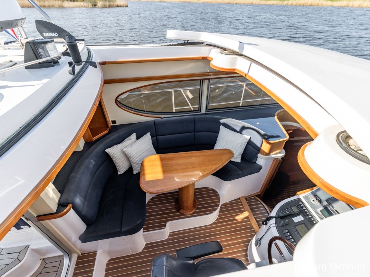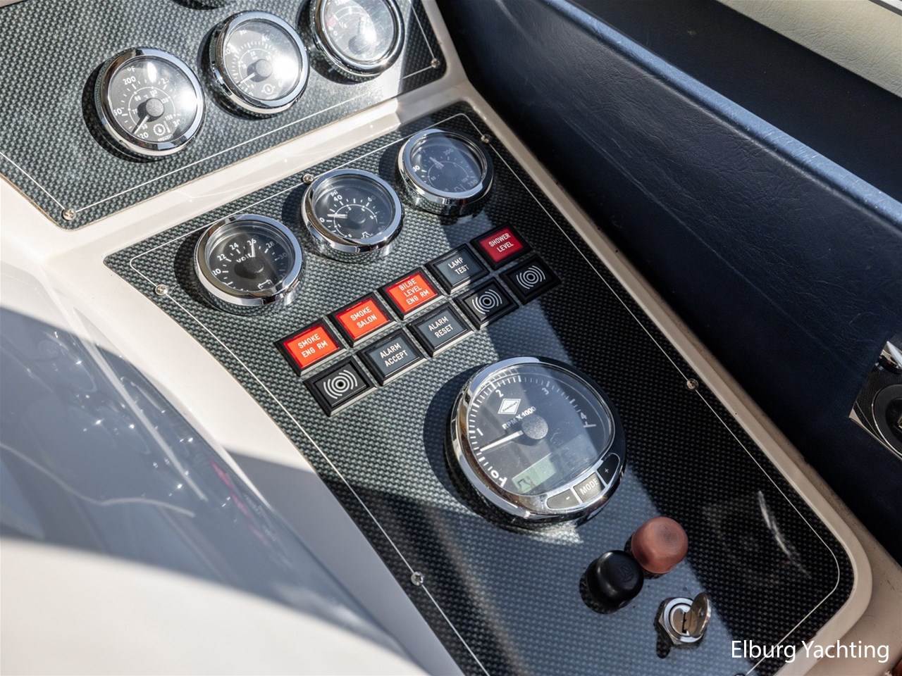 - 1 x hydraulic with remote control for engine and bow and stern thruster and air-suspended helm seat