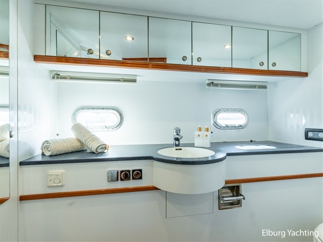 This Elling E4 has always been well maintained and is in very good condition. A yacht that is suitable for long cruises at sea and comfortable stays on board. A yacht you can enjoy with an eye for luxury, details and seaworthiness thanks to her CE-A certification. The spacious aft deck and long teak swimming platform offer extra convenience. The interior is finished in high-quality high-gloss cherry wood. The saloon features a comfortable seating area and 2 armchairs, long galley with plenty of workspace and worktops, spacious owner's cabin with double freestanding bed,