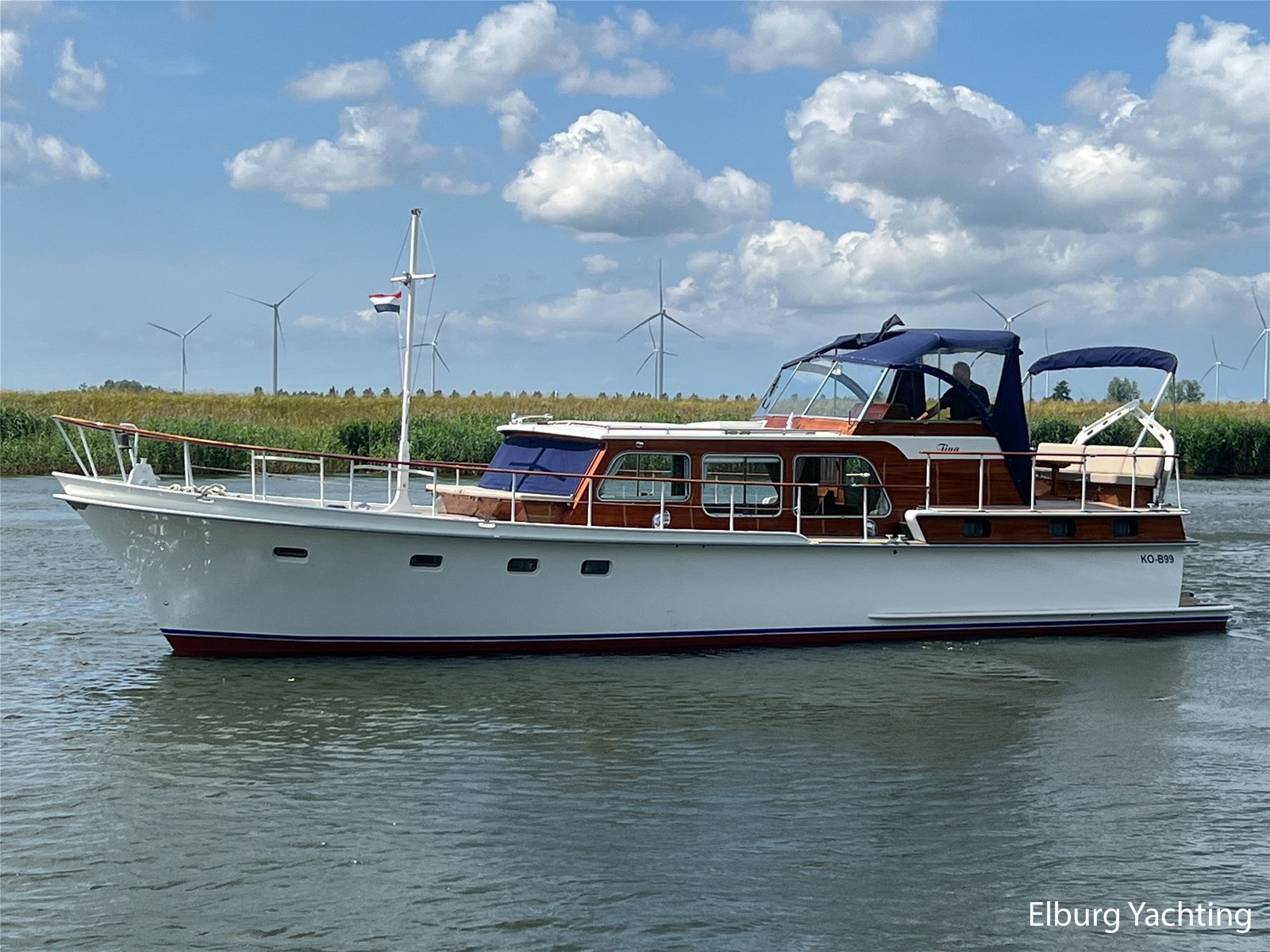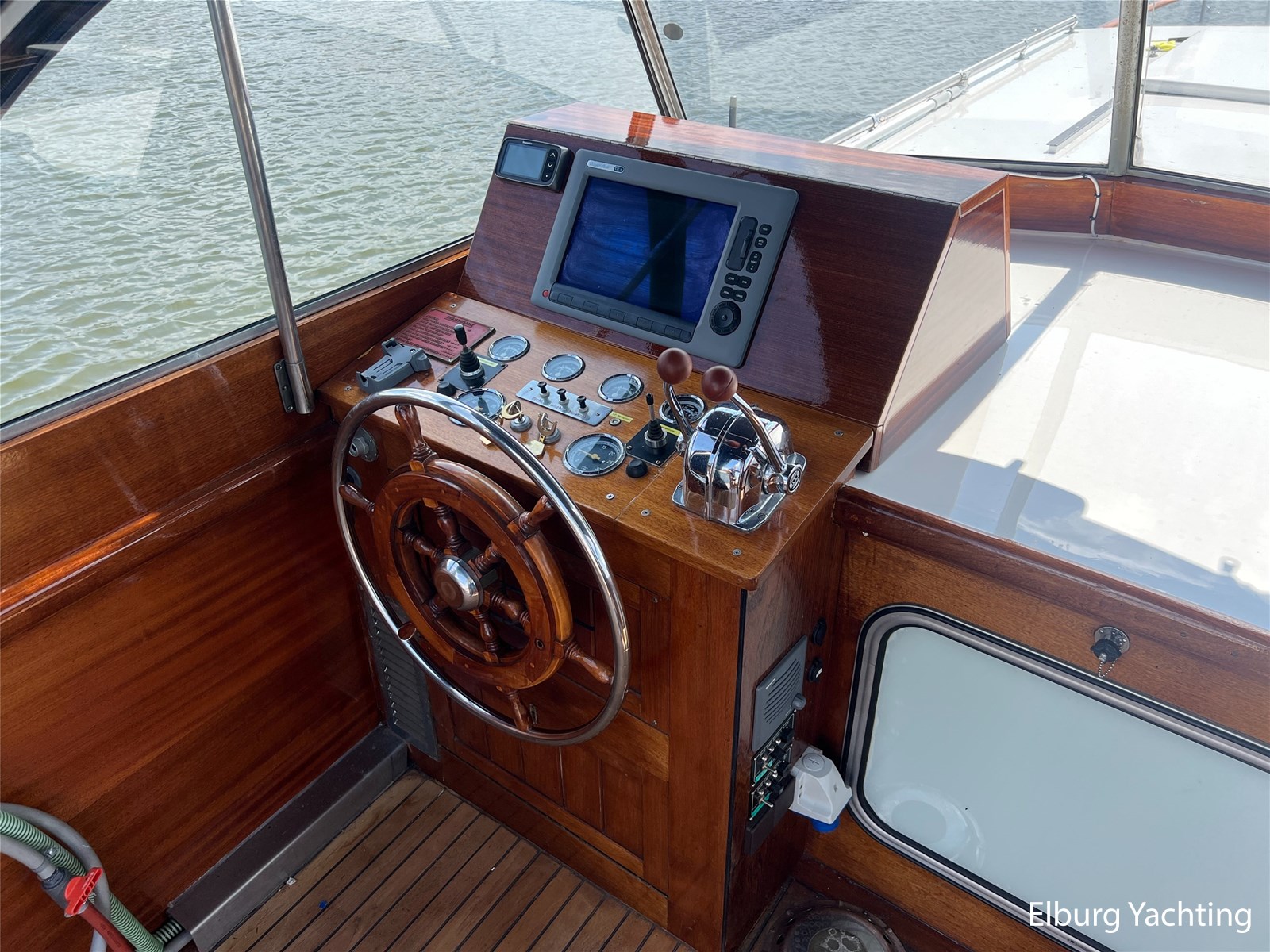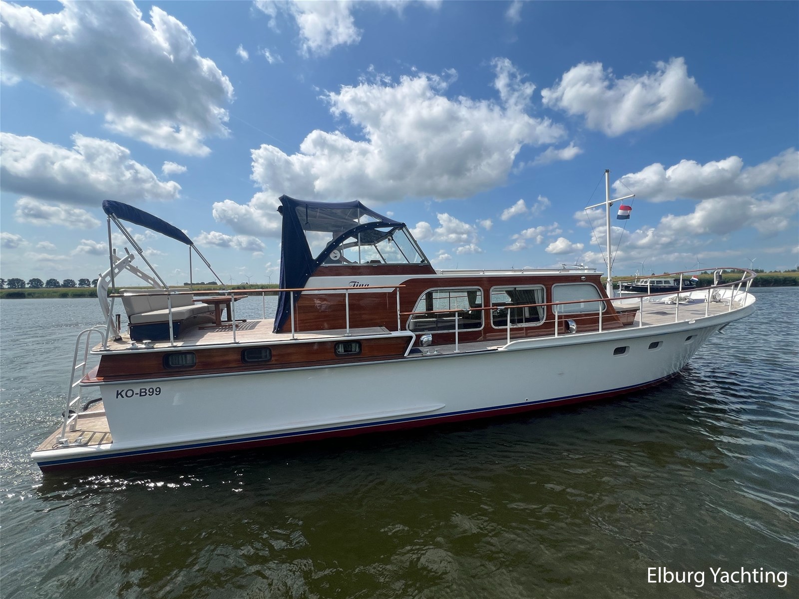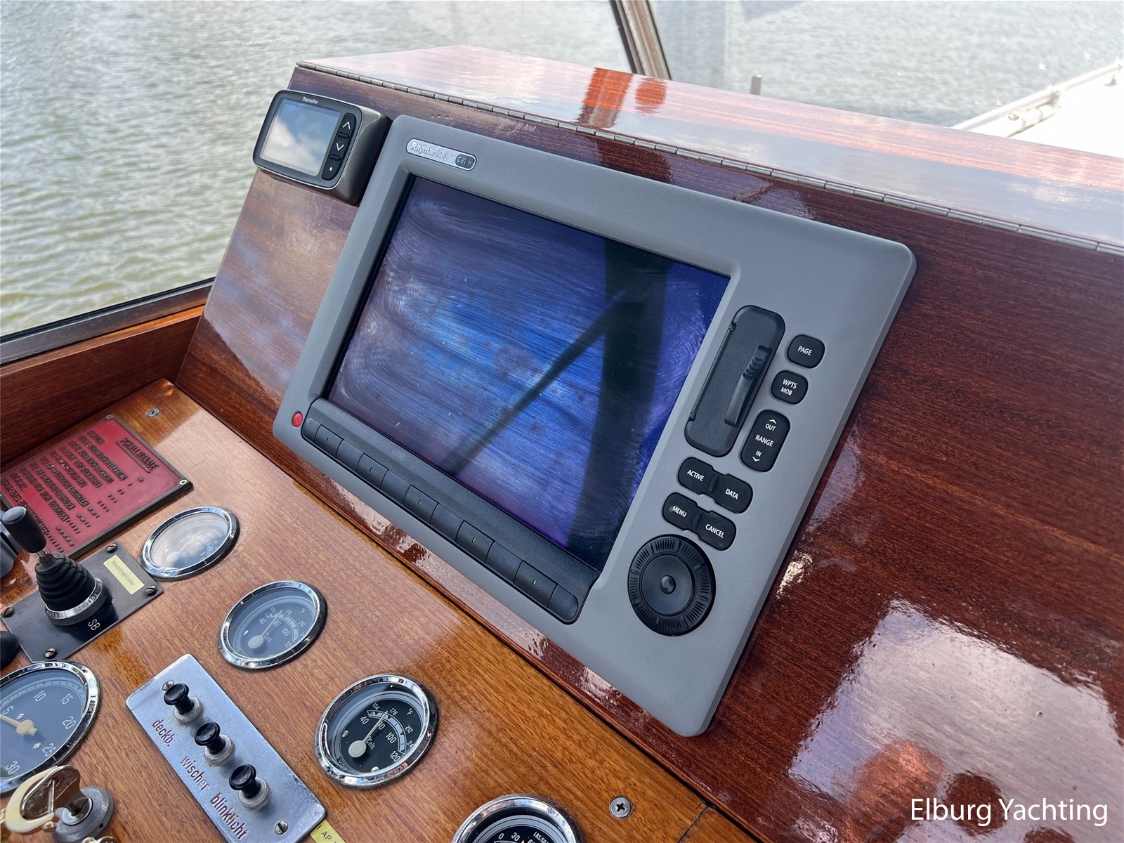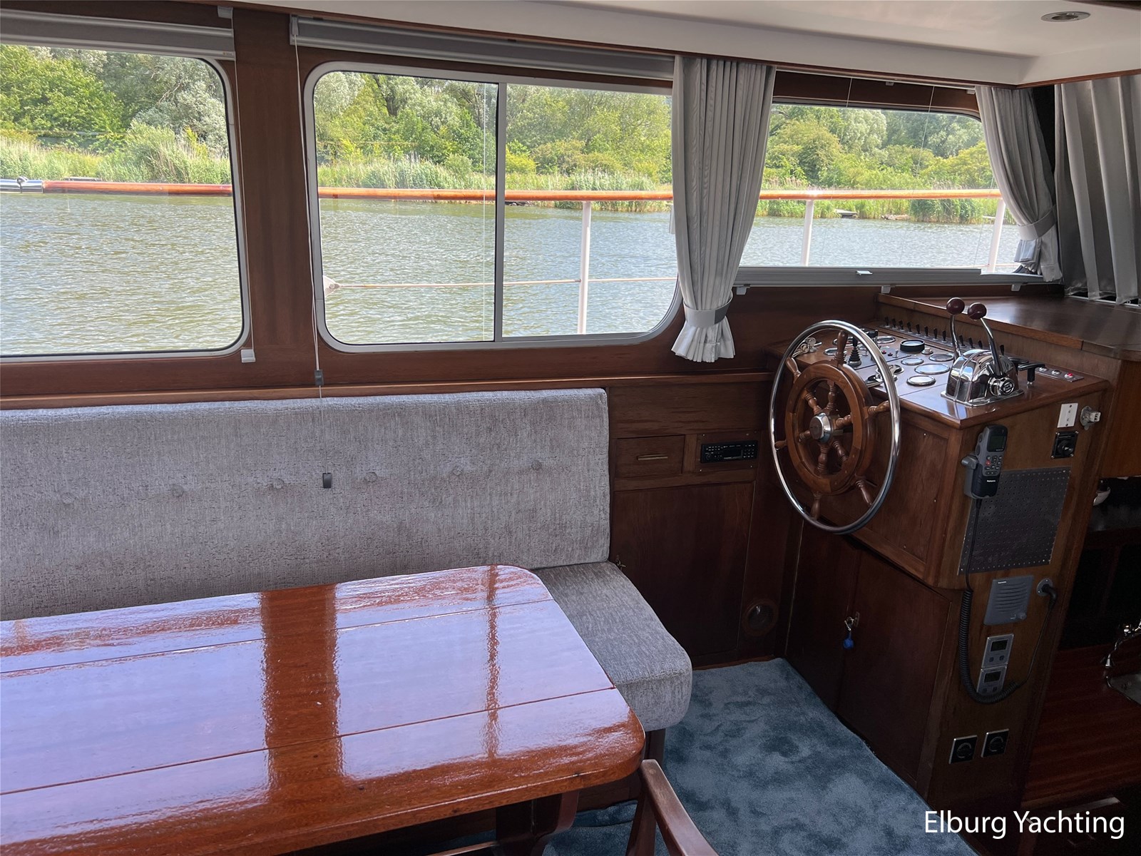 This beautiful Super van Craft 13.80 with her beautiful classic line is an elegant appearance on the water. Due to her low crawl height, the ship is suitable for sailing through the French canals. The Super van Craft 13.80 has a spacious L-dinette in the saloon with 2 chairs, sliding hatch in saloon, ship's wooden interior, U-dinette opposite the galley, two beds in the owner's cabin with recently renewed mattresses, electric cooking, guest cabin with a separate toilet, complete with bow and stern thruster, recently renewed upholstery and carpeting, recently renewed tent over the aft deck, complete winter tent for over the superstructure available. For questions and/or to make an appointment, you are welcome 7 days a week at Elburg Yachting.