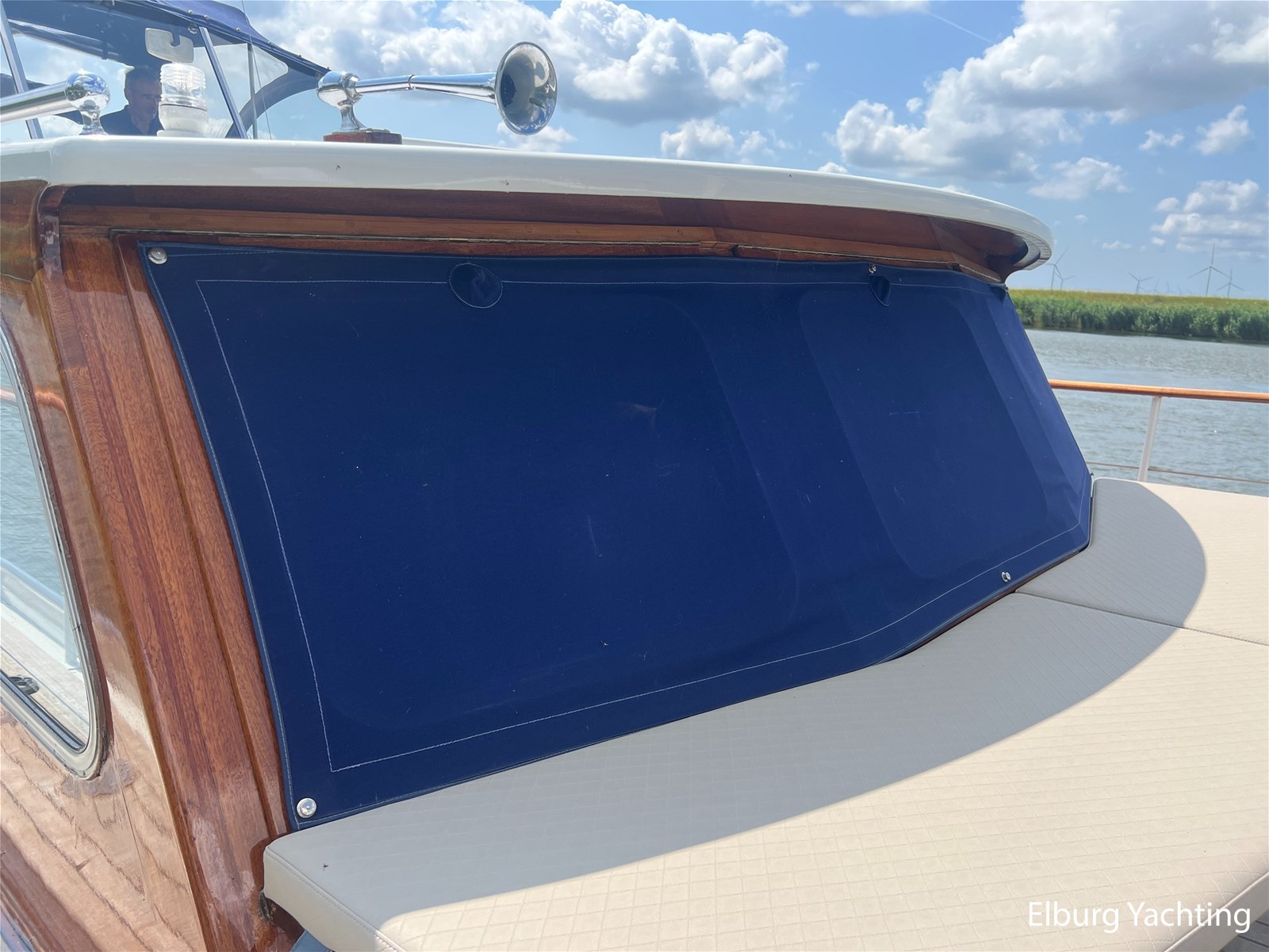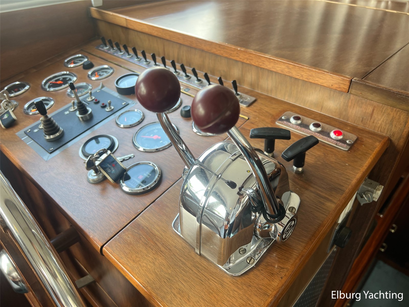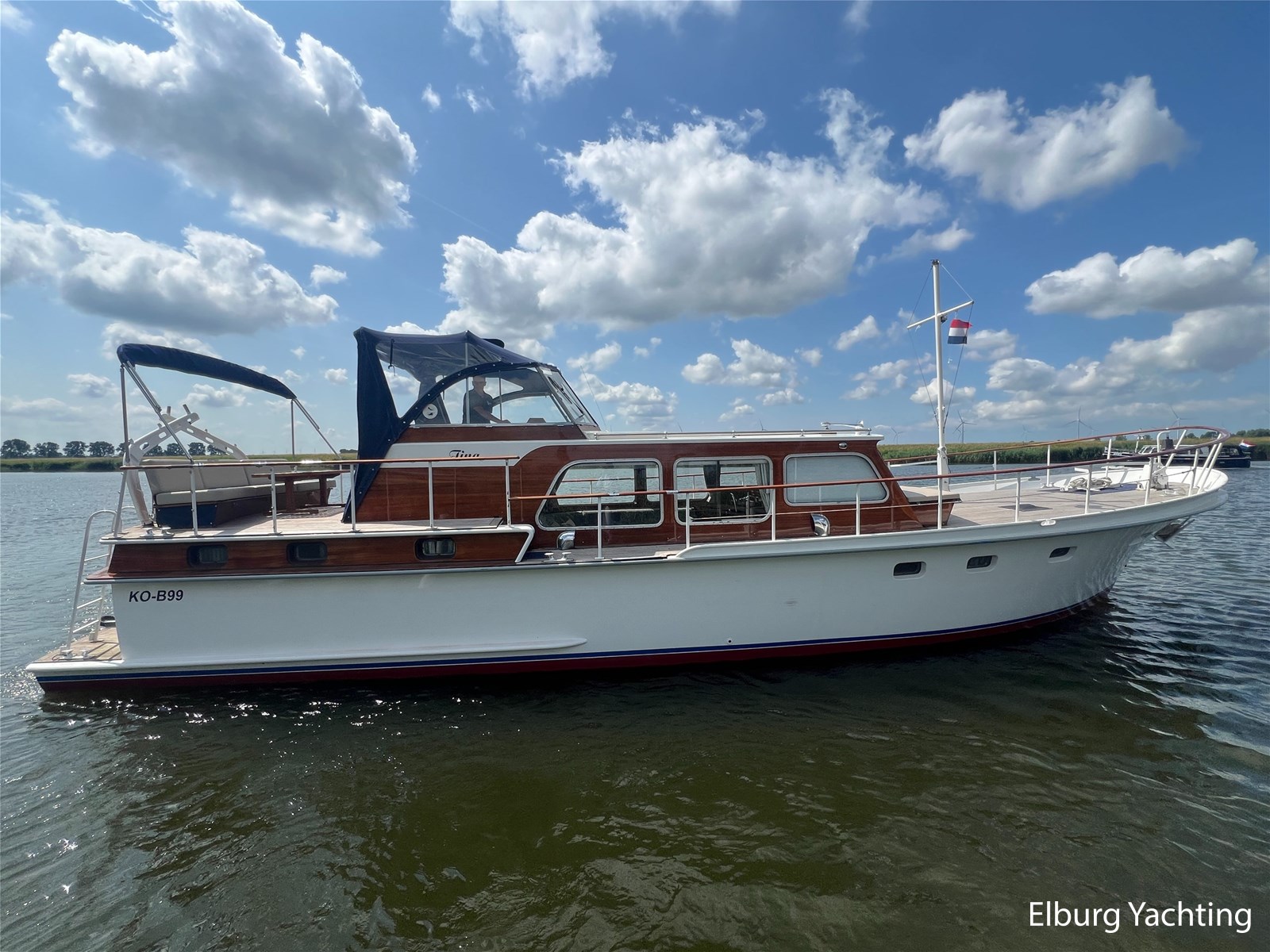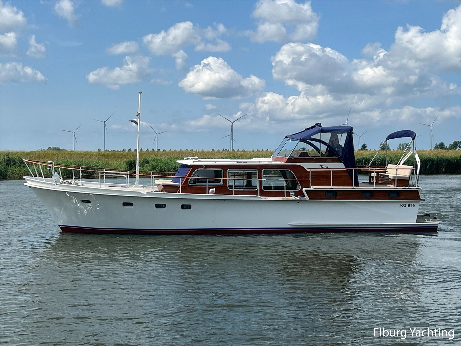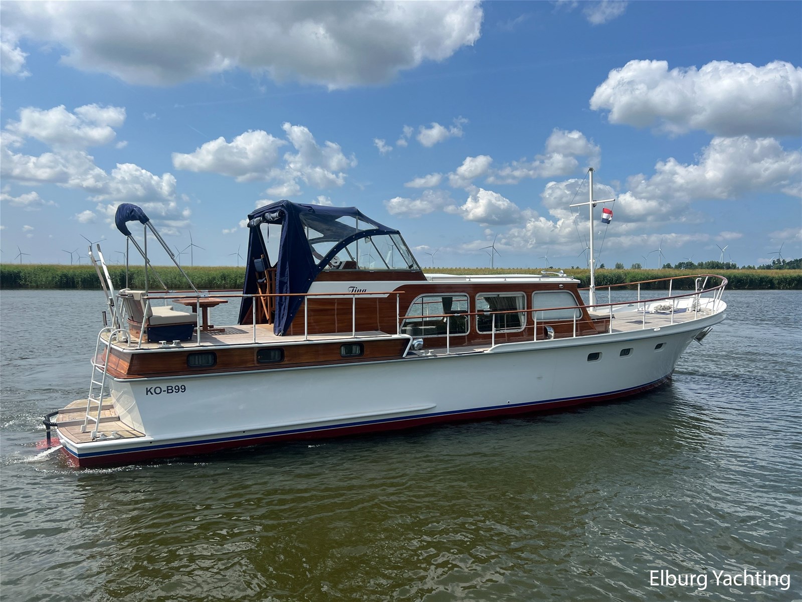 This beautiful Super van Craft 13.80 with her beautiful classic line is an elegant appearance on the water. Due to her low crawl height, the ship is suitable for sailing through the French canals. The Super van Craft 13.80 has a spacious L-dinette in the saloon with 2 chairs, sliding hatch in saloon, ship's wooden interior, U-dinette opposite the galley, two beds in the owner's cabin with recently renewed mattresses, electric cooking, guest cabin with a separate toilet, complete with bow and stern thruster, recently renewed upholstery and carpeting, recently renewed tent over the aft deck, complete winter tent for over the superstructure available. For questions and/or to make an appointment, you are welcome 7 days a week at Elburg Yachting.