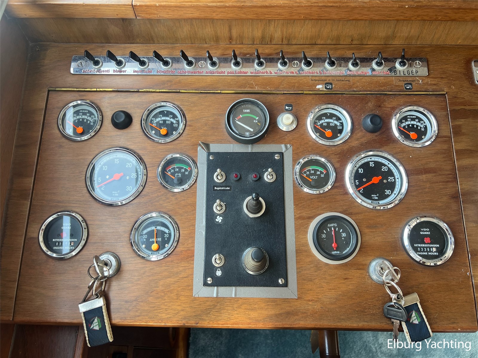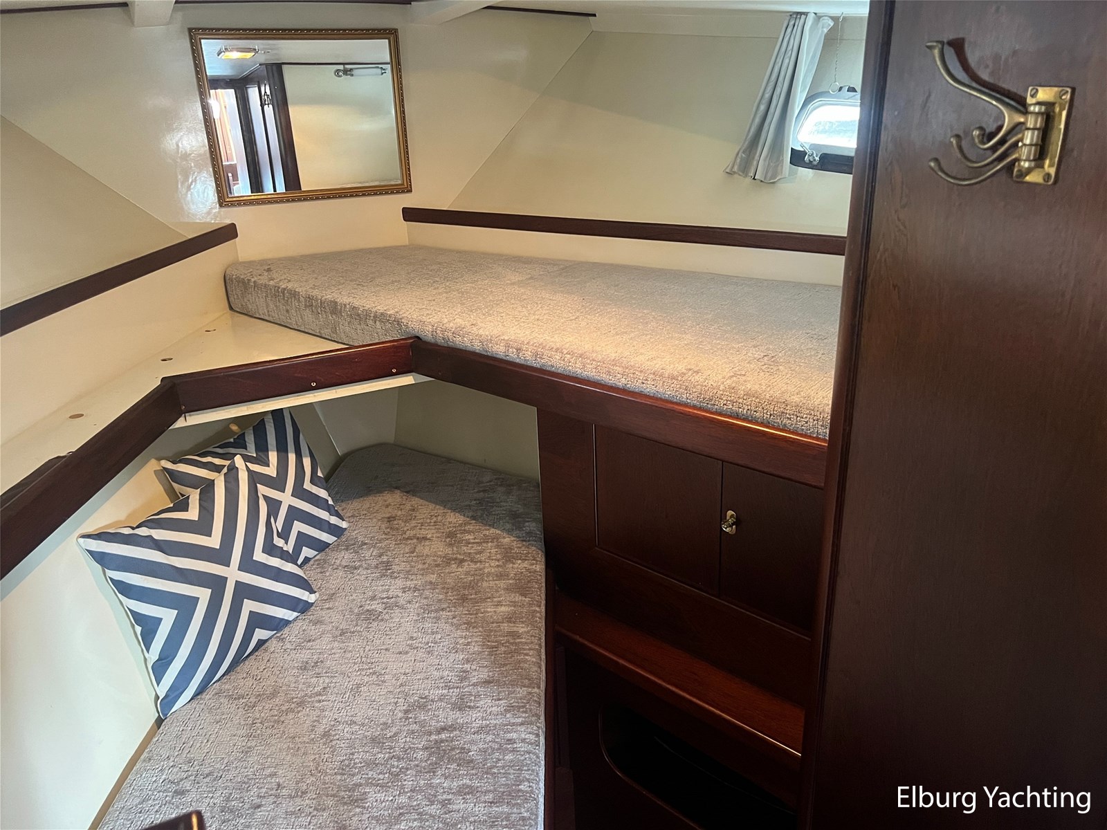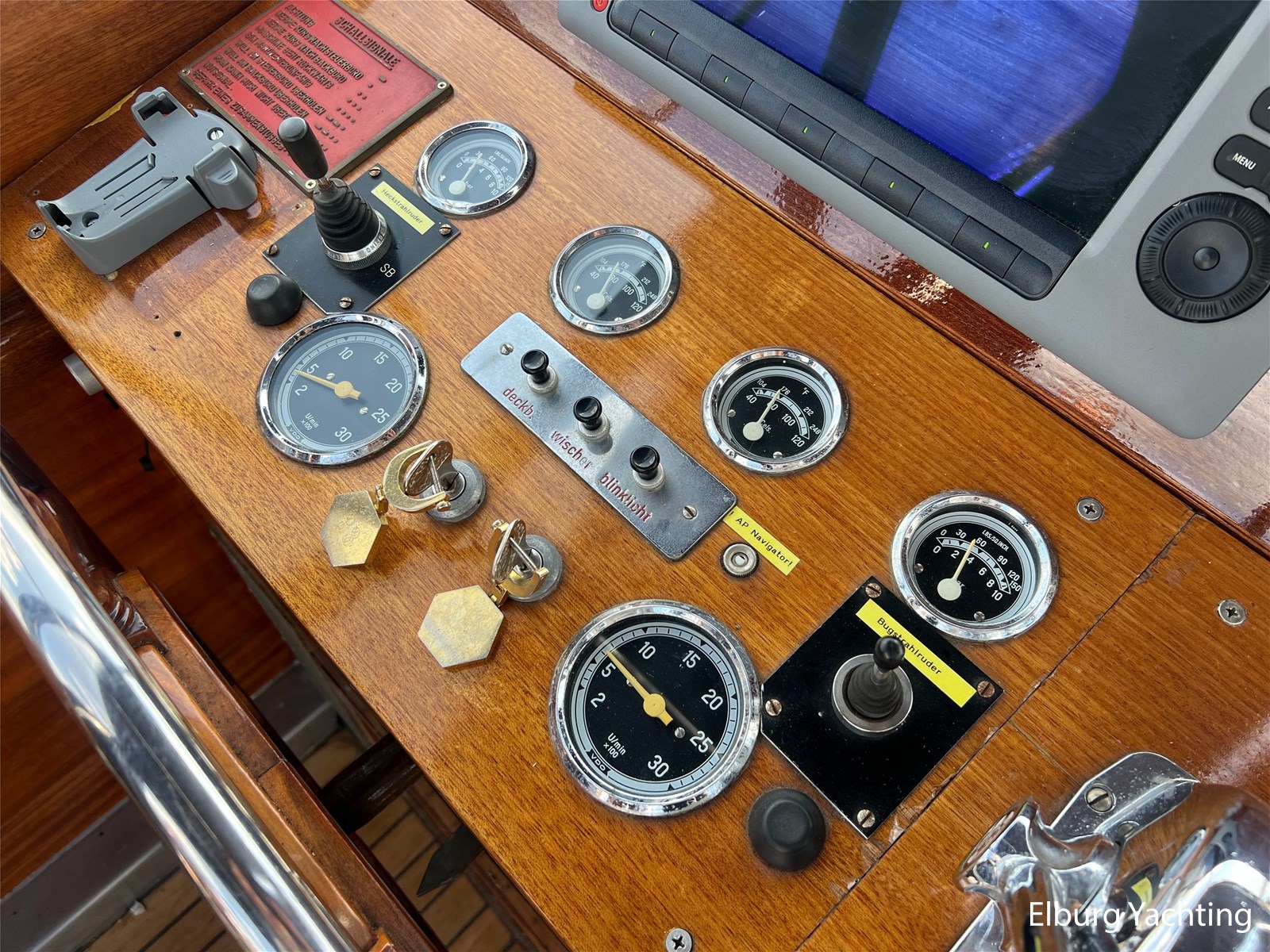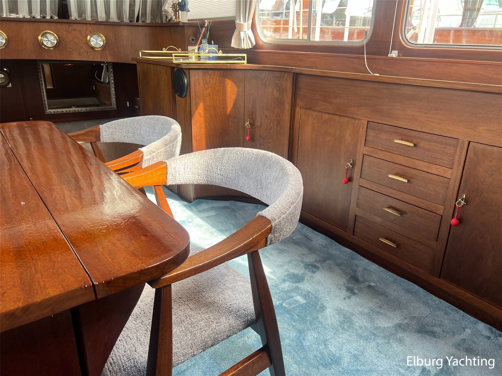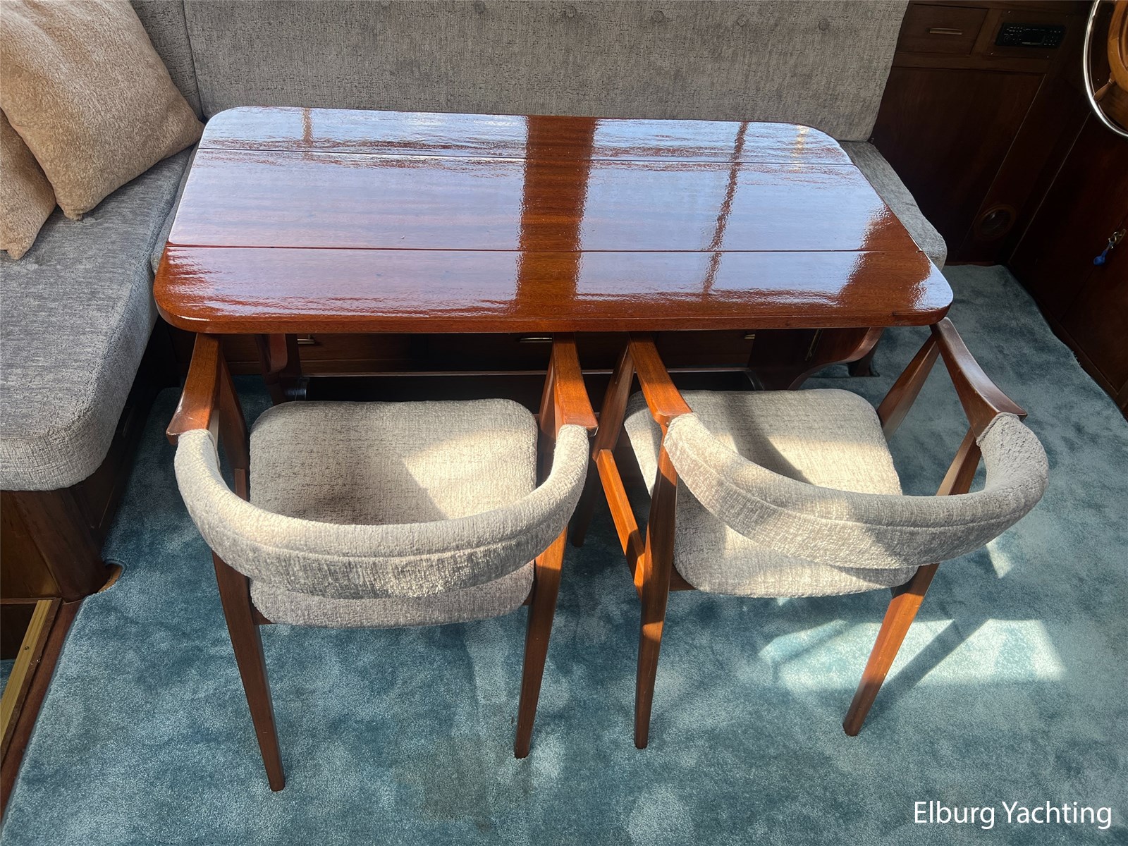This beautiful Super van Craft 13.80 with her beautiful classic line is an elegant appearance on the water. Due to her low crawl height, the ship is suitable for sailing through the French canals. The Super van Craft 13.80 has a spacious L-dinette in the saloon with 2 chairs, sliding hatch in saloon, ship's wooden interior, U-dinette opposite the galley, two beds in the owner's cabin with recently renewed mattresses, electric cooking, guest cabin with a separate toilet, complete with bow and stern thruster, recently renewed upholstery and carpeting, recently renewed tent over the aft deck, complete winter tent for over the superstructure available. For questions and/or to make an appointment, you are welcome 7 days a week at Elburg Yachting.