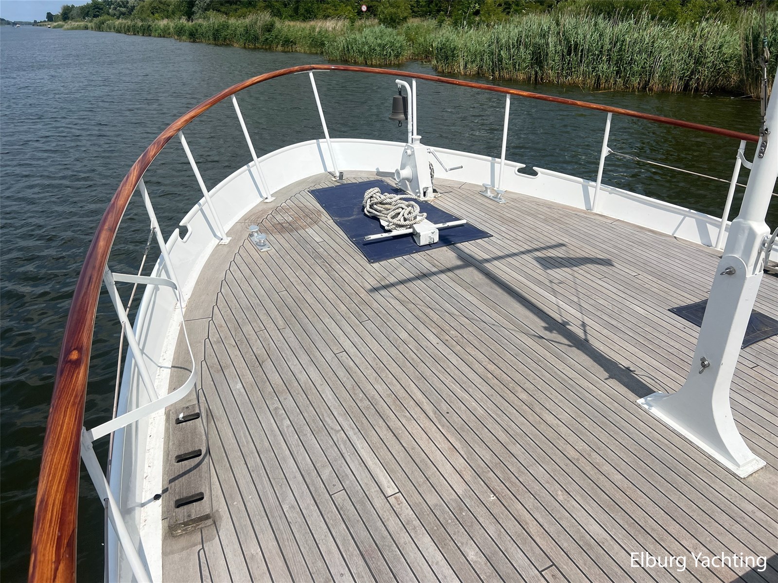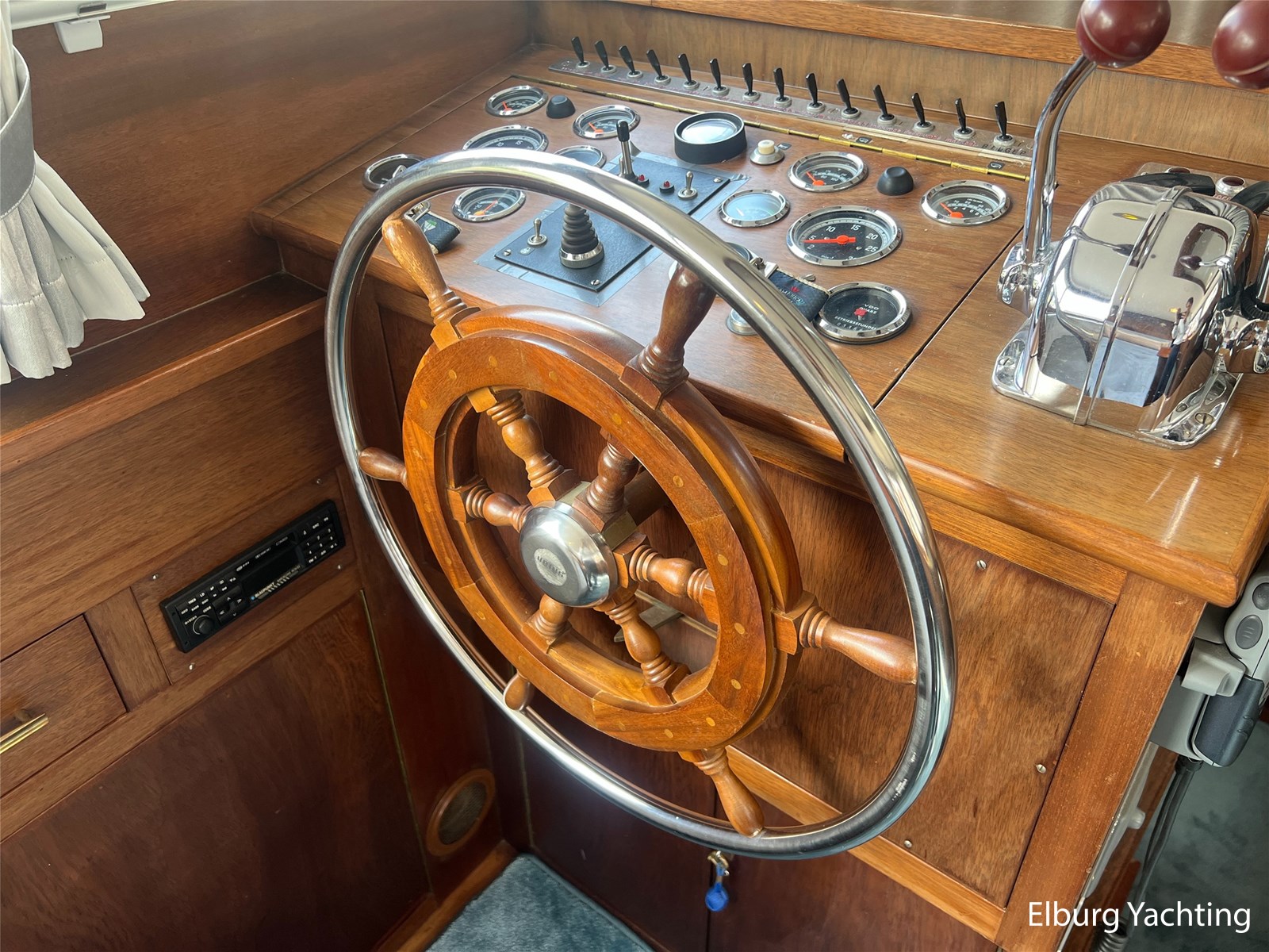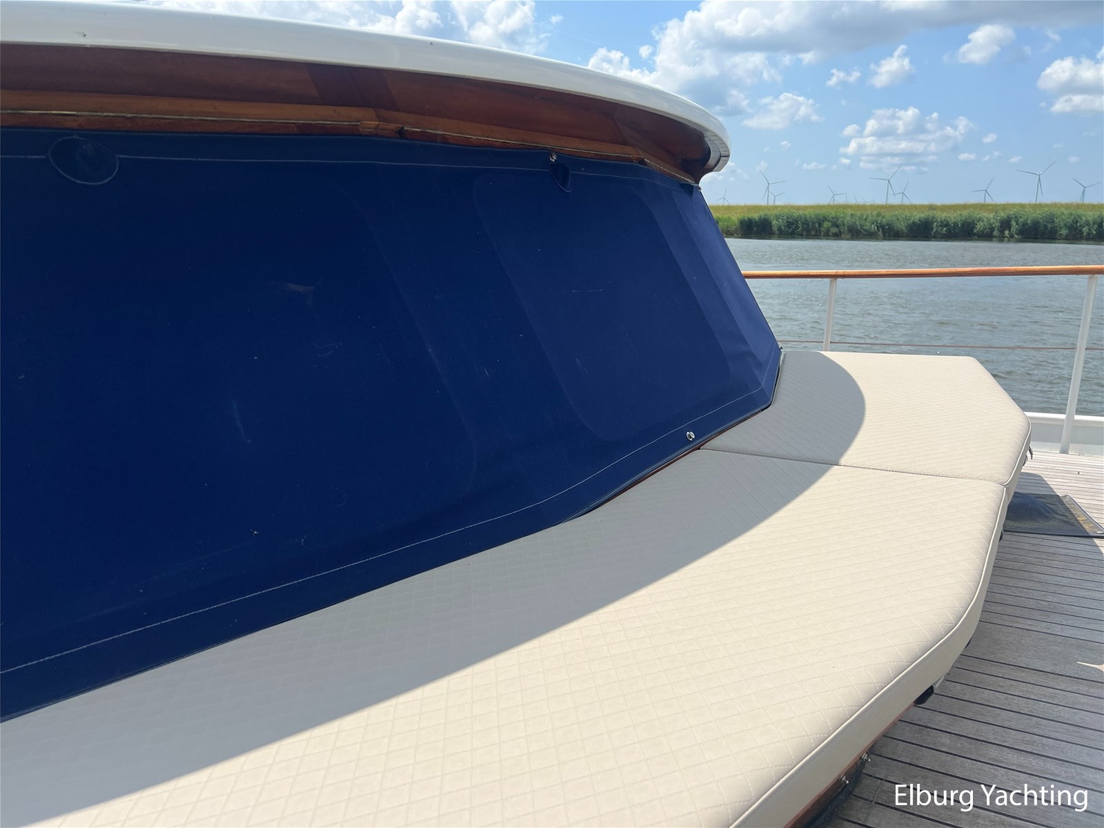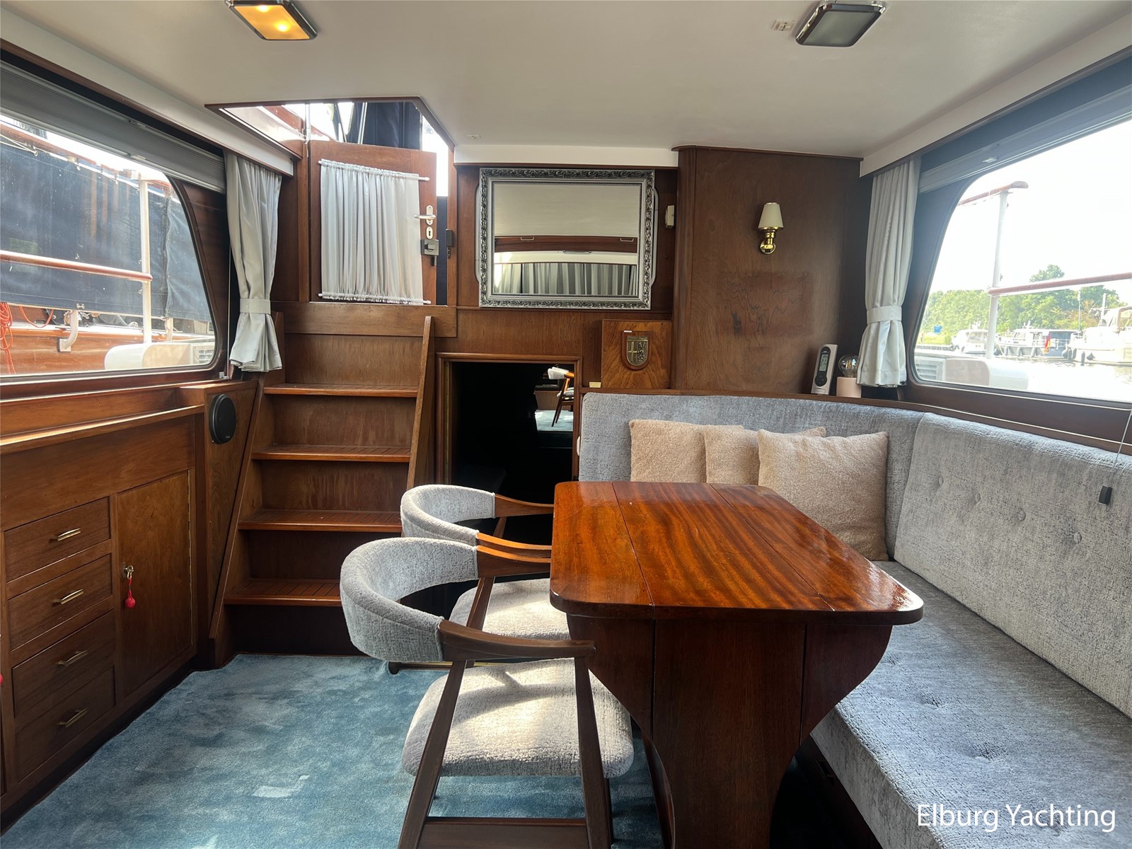 This beautiful Super van Craft 13.80 with her beautiful classic line is an elegant appearance on the water. Due to her low crawl height, the ship is suitable for sailing through the French canals. The Super van Craft 13.80 has a spacious L-dinette in the saloon with 2 chairs, sliding hatch in saloon, ship's wooden interior, U-dinette opposite the galley, two beds in the owner's cabin with recently renewed mattresses, electric cooking, guest cabin with a separate toilet, complete with bow and stern thruster, recently renewed upholstery and carpeting, recently renewed tent over the aft deck, complete winter tent for over the superstructure available. For questions and/or to make an appointment, you are welcome 7 days a week at Elburg Yachting.