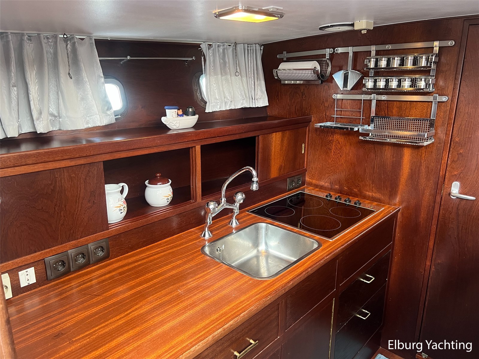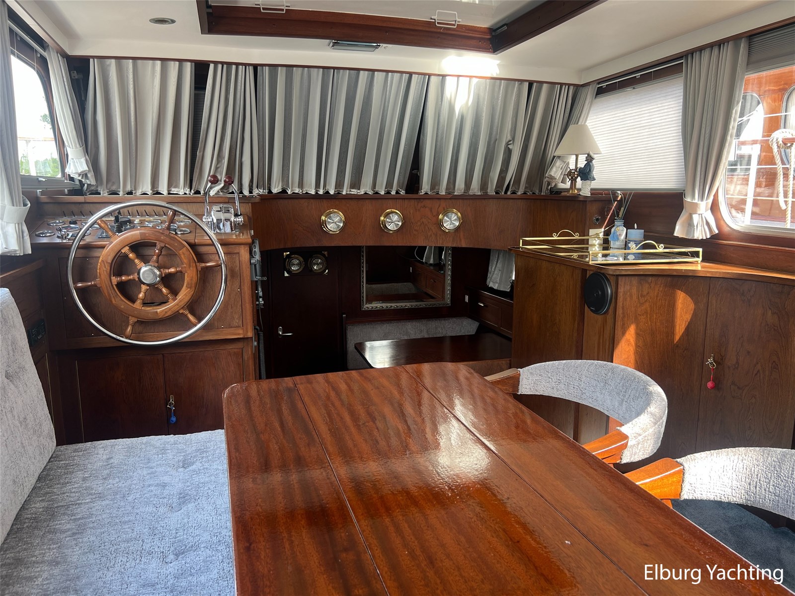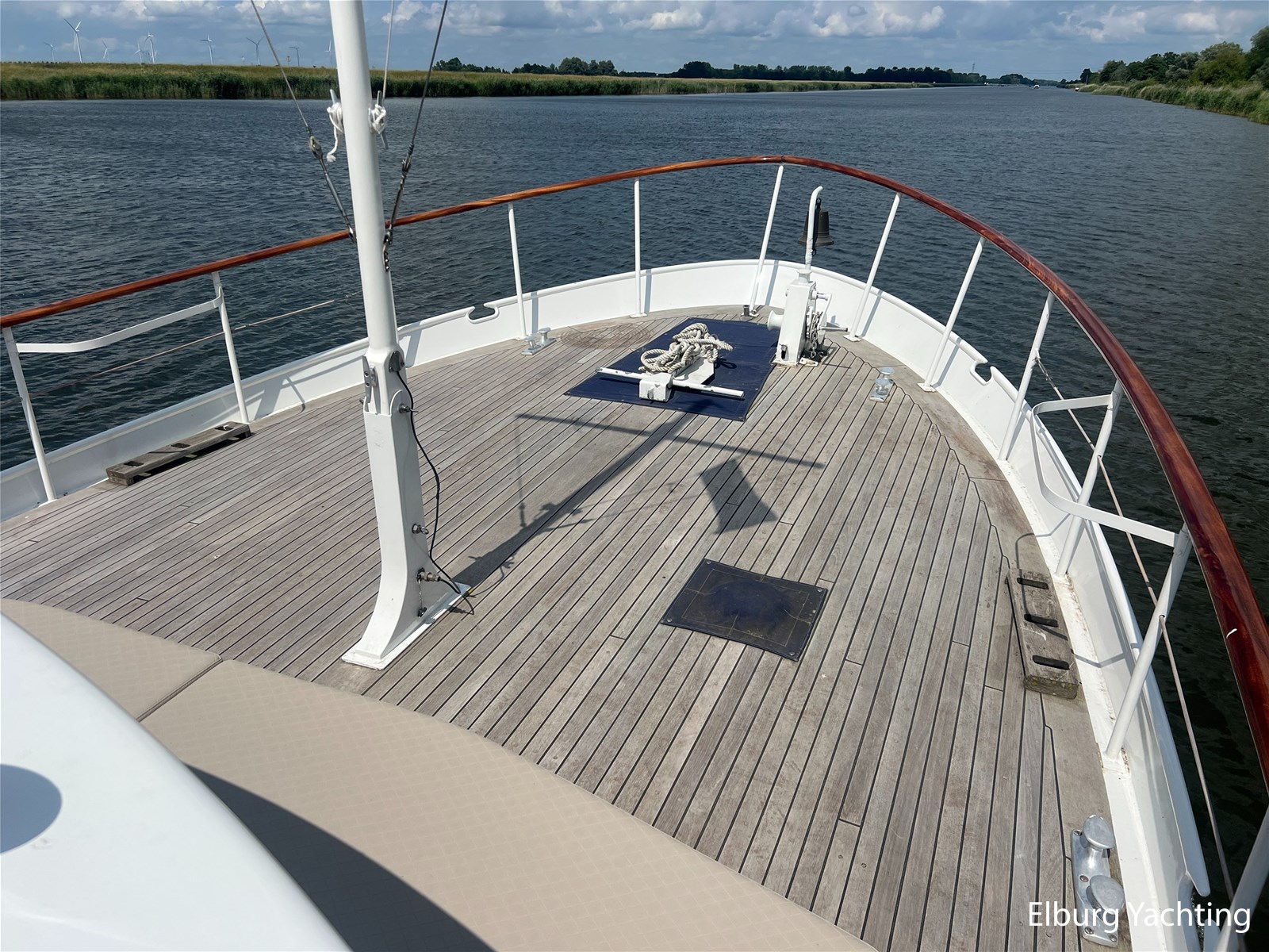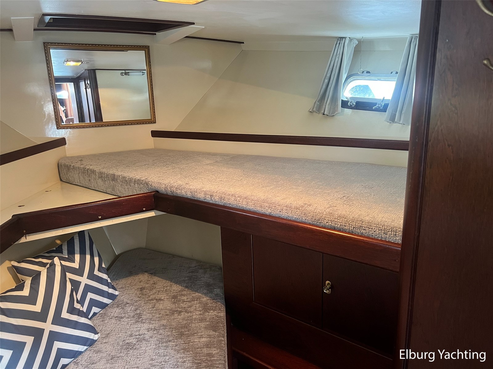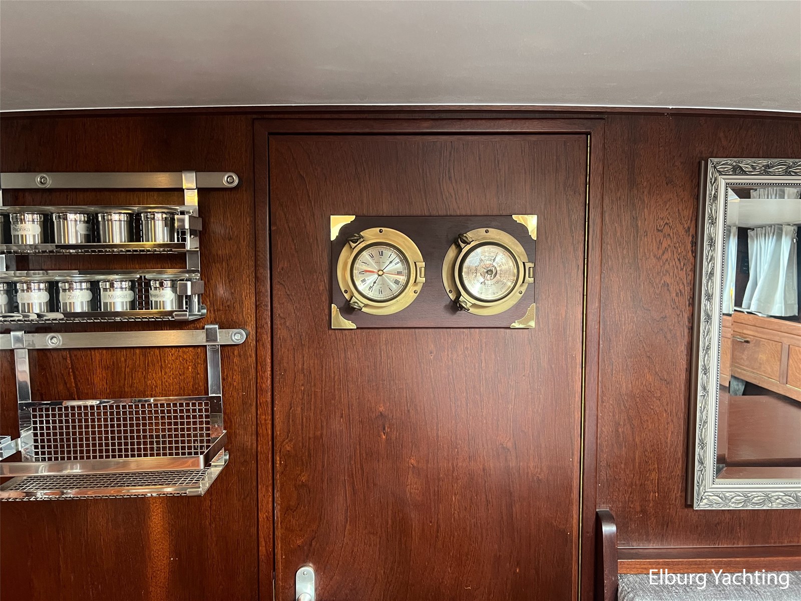 This beautiful Super van Craft 13.80 with her beautiful classic line is an elegant appearance on the water. Due to her low crawl height, the ship is suitable for sailing through the French canals. The Super van Craft 13.80 has a spacious L-dinette in the saloon with 2 chairs, sliding hatch in saloon, ship's wooden interior, U-dinette opposite the galley, two beds in the owner's cabin with recently renewed mattresses, electric cooking, guest cabin with a separate toilet, complete with bow and stern thruster, recently renewed upholstery and carpeting, recently renewed tent over the aft deck, complete winter tent for over the superstructure available. For questions and/or to make an appointment, you are welcome 7 days a week at Elburg Yachting.