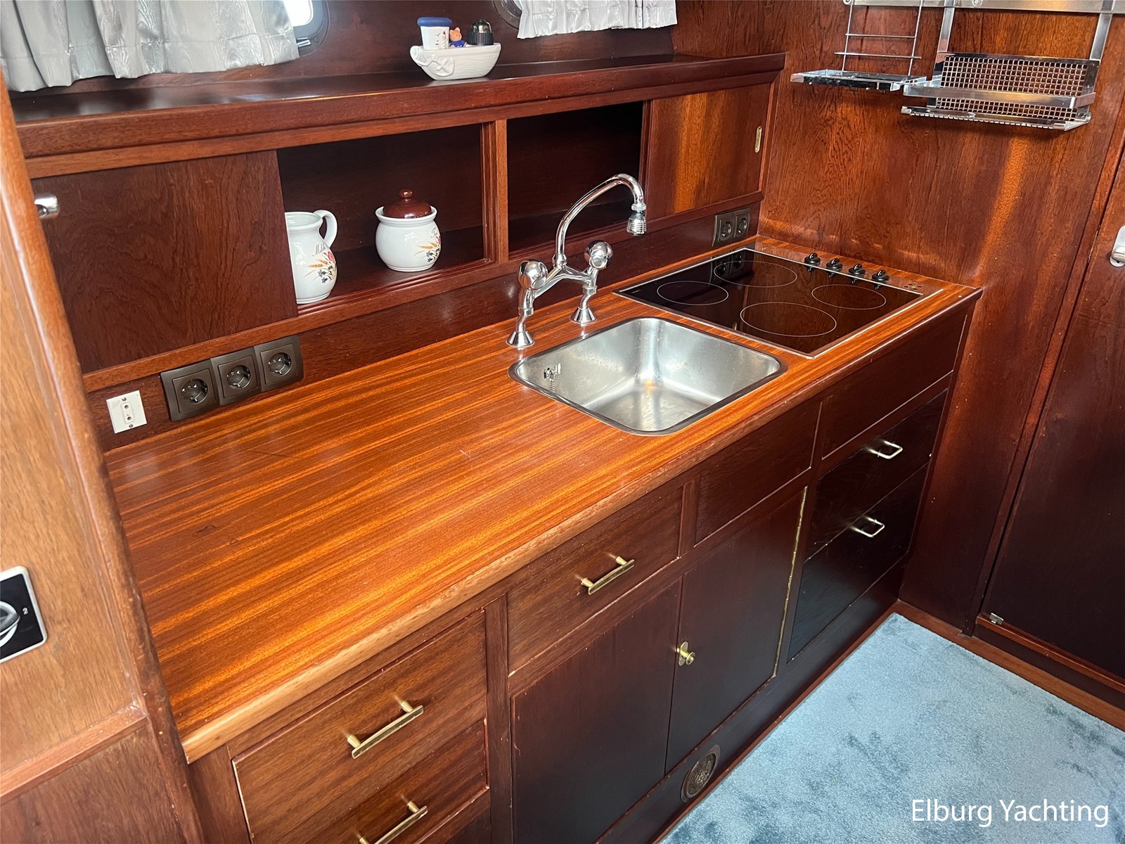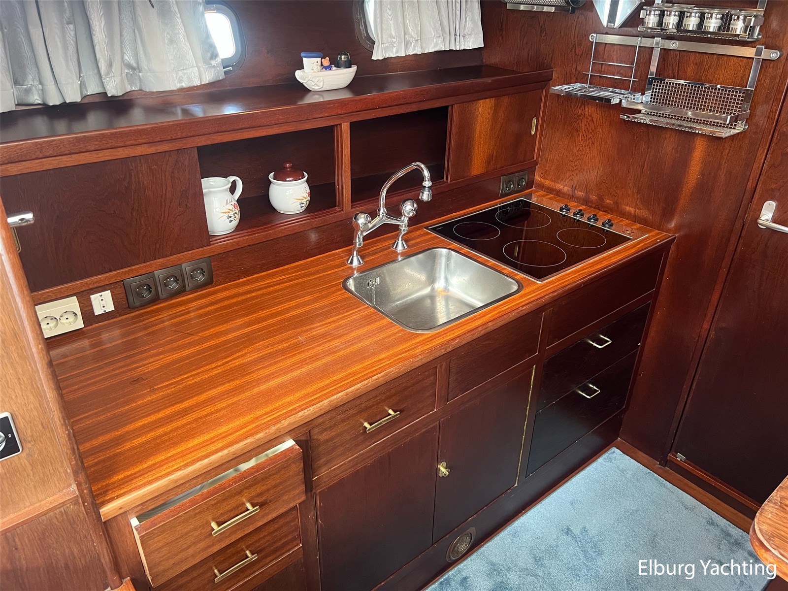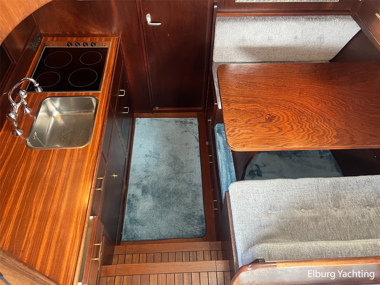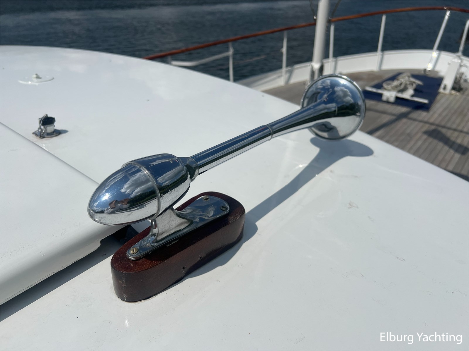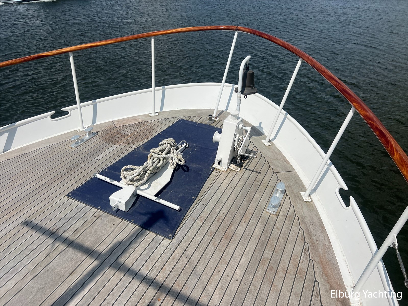 This beautiful Super van Craft 13.80 with her beautiful classic line is an elegant appearance on the water. Due to her low crawl height, the ship is suitable for sailing through the French canals. The Super van Craft 13.80 has a spacious L-dinette in the saloon with 2 chairs, sliding hatch in saloon, ship's wooden interior, U-dinette opposite the galley, two beds in the owner's cabin with recently renewed mattresses, electric cooking, guest cabin with a separate toilet, complete with bow and stern thruster, recently renewed upholstery and carpeting, recently renewed tent over the aft deck, complete winter tent for over the superstructure available. For questions and/or to make an appointment, you are welcome 7 days a week at Elburg Yachting.
