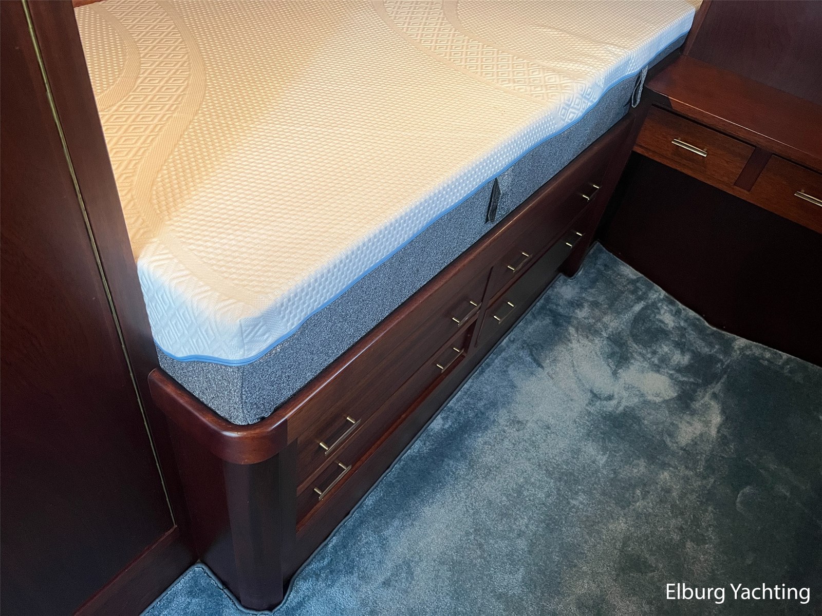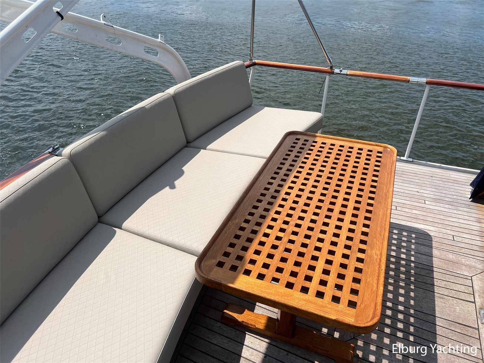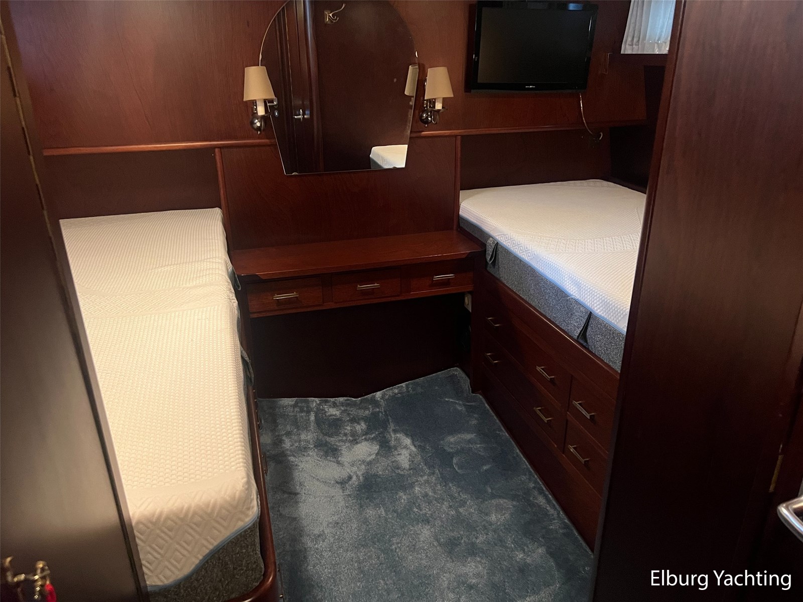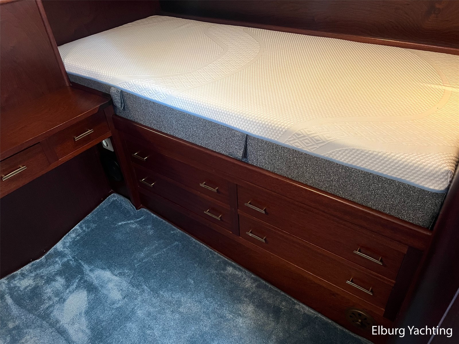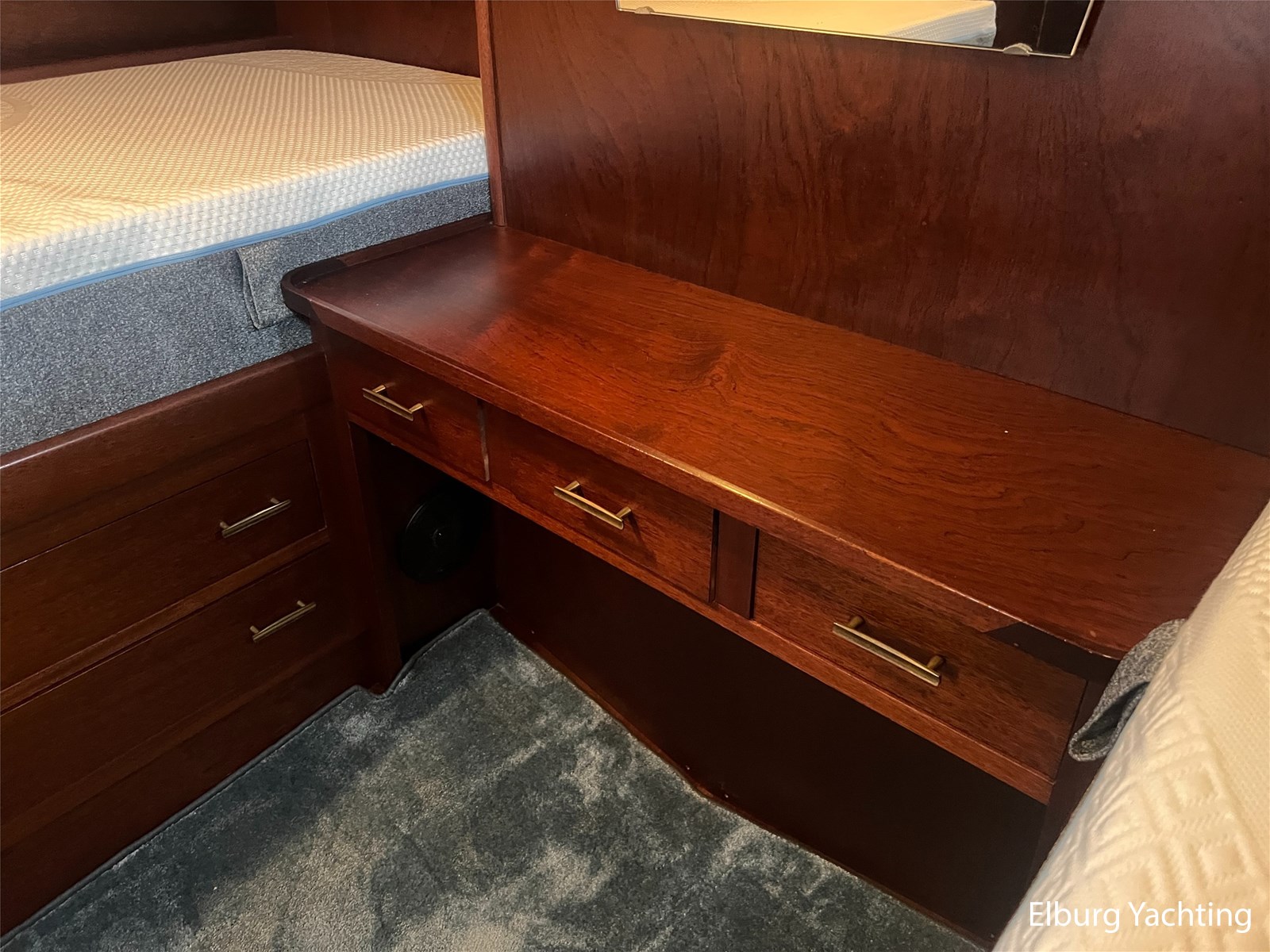This beautiful Super van Craft 13.80 with her beautiful classic line is an elegant appearance on the water. Due to her low crawl height, the ship is suitable for sailing through the French canals. The Super van Craft 13.80 has a spacious L-dinette in the saloon with 2 chairs, sliding hatch in saloon, ship's wooden interior, U-dinette opposite the galley, two beds in the owner's cabin with recently renewed mattresses, electric cooking, guest cabin with a separate toilet, complete with bow and stern thruster, recently renewed upholstery and carpeting, recently renewed tent over the aft deck, complete winter tent for over the superstructure available. For questions and/or to make an appointment, you are welcome 7 days a week at Elburg Yachting.