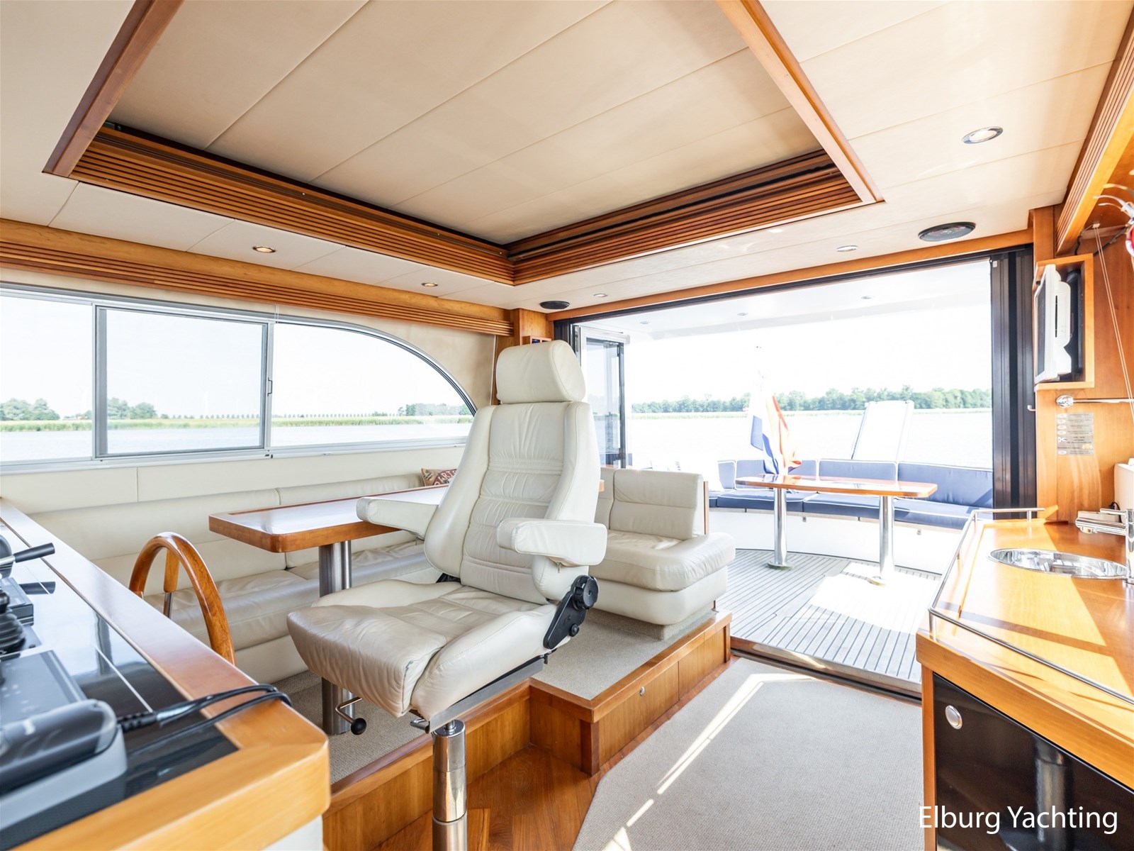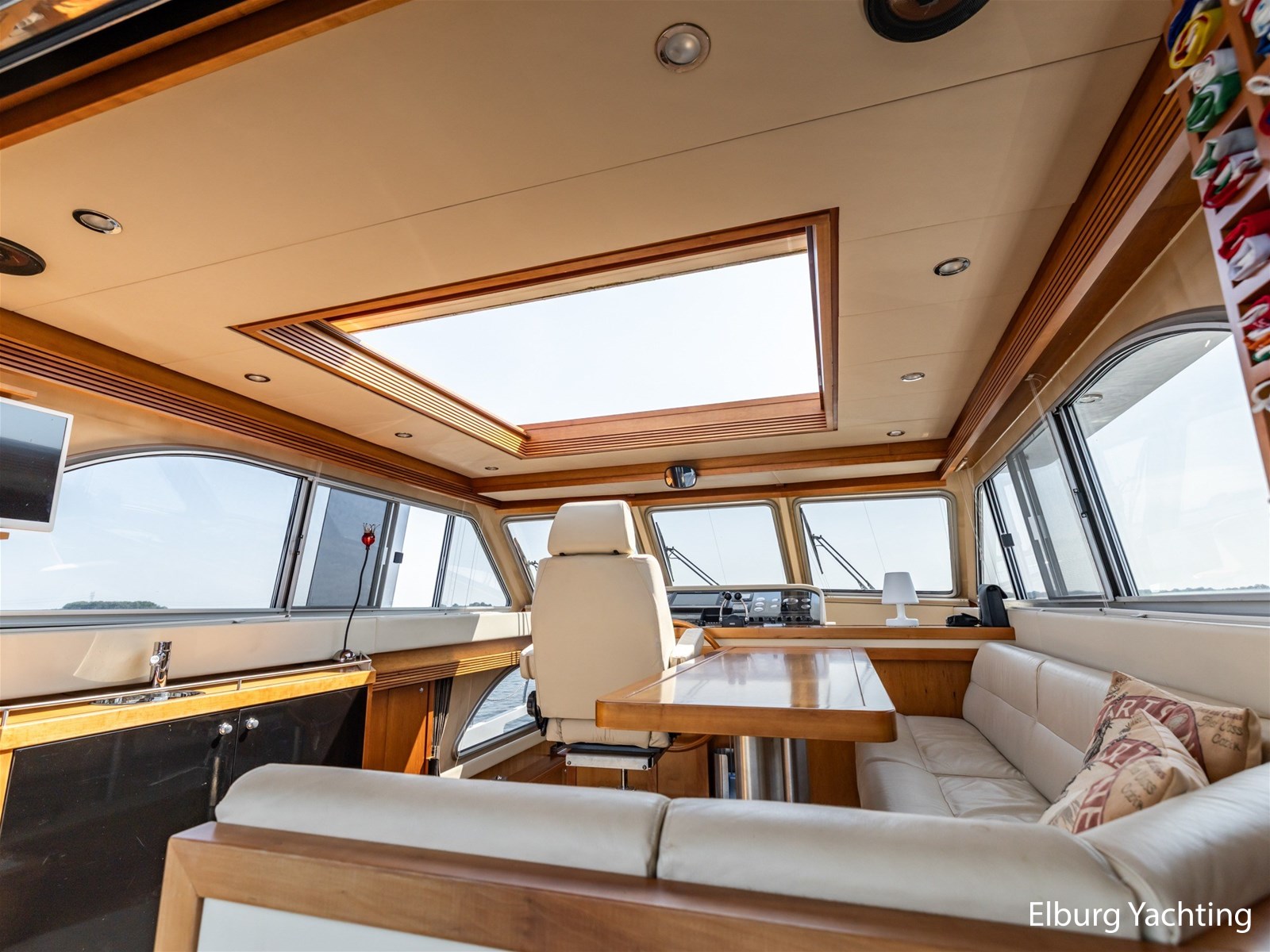 On board this Valk Continental 1900, you will experience an exceptional sense of space and connection to the outdoors. The spacious wheelhouse forms the heart of the yacht, with the helm station forward and a comfortable dinette directly behind it. Thanks to the panoramic view, this is an ideal place while cruising as well as when staying on board. Four-part stainless steel doors connect the aft deck seamlessly to the wheelhouse. The sliding sunroof and two side sliding windows provide an open-air feeling, even when you are inside.