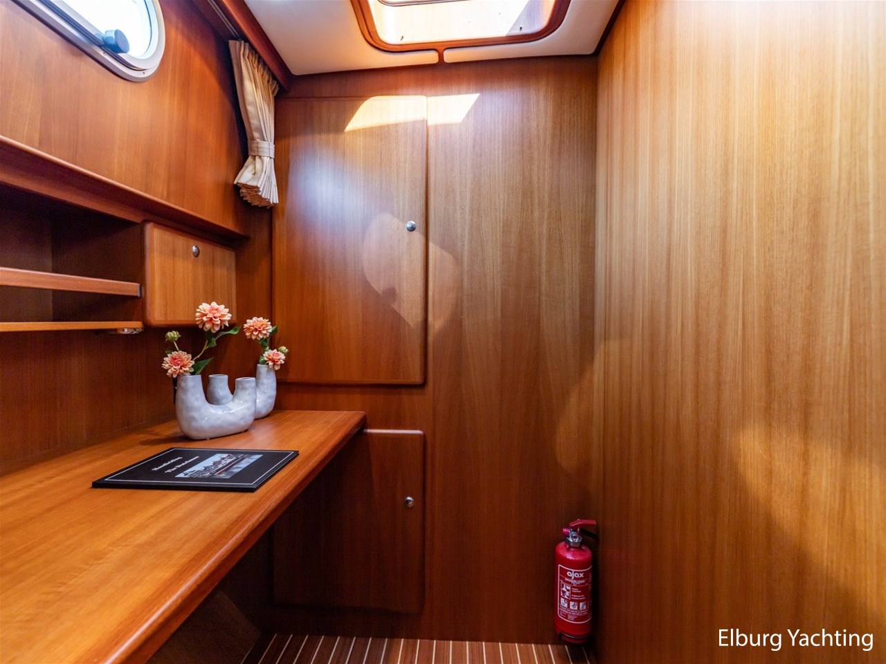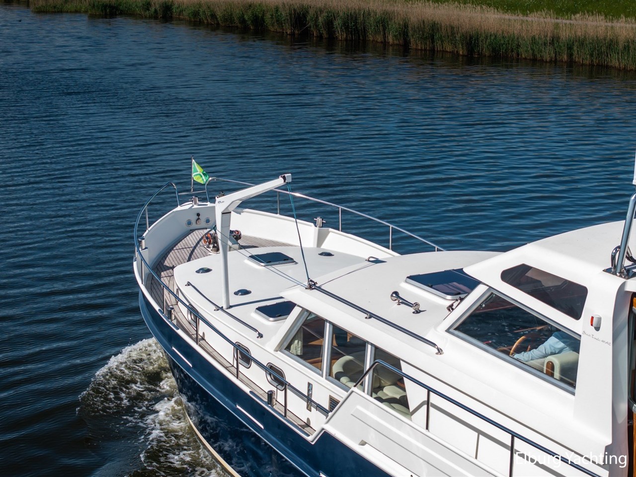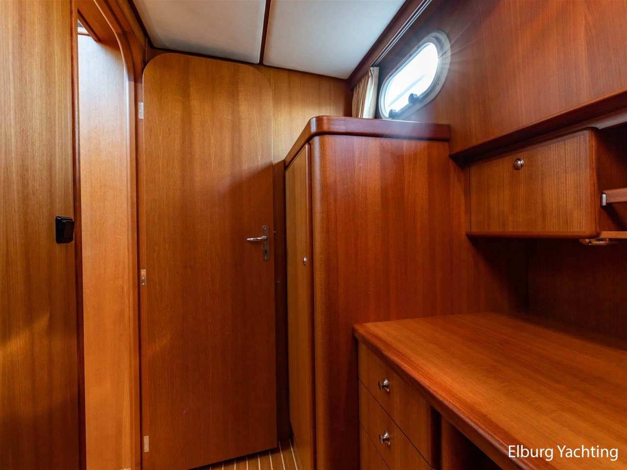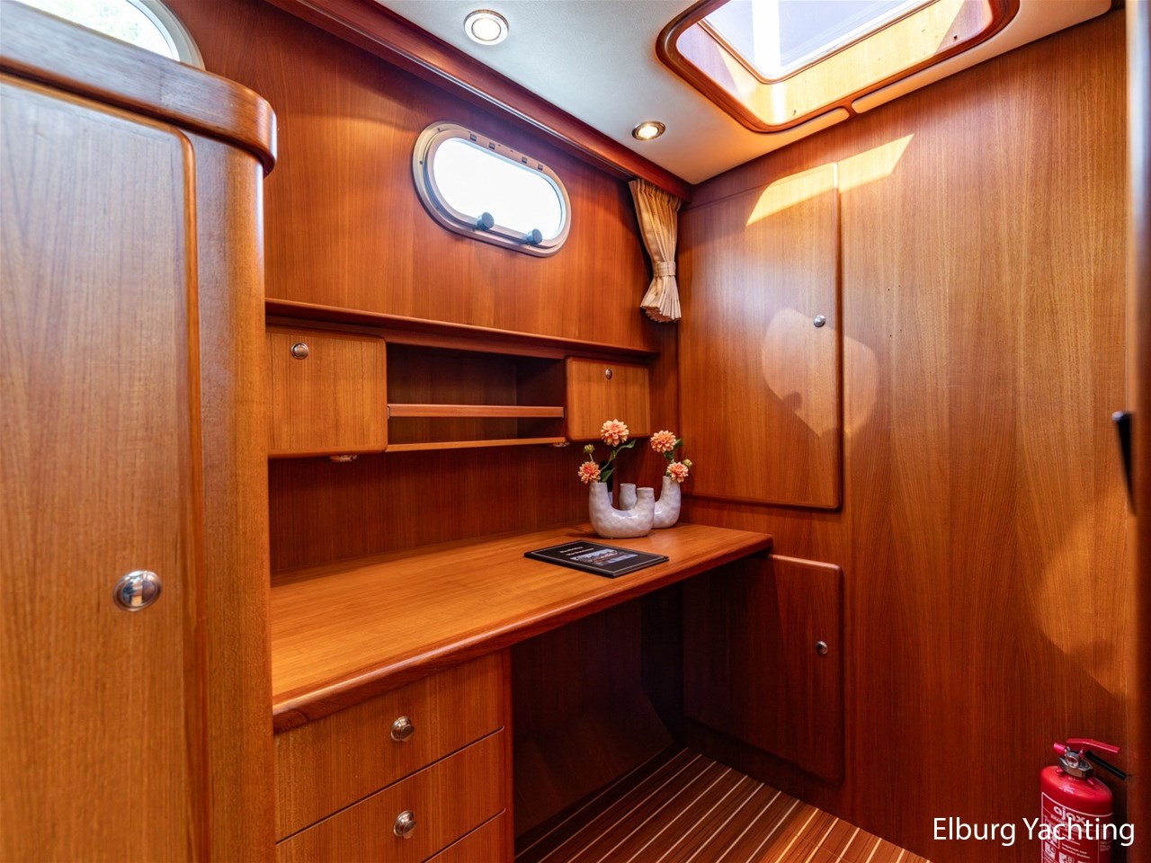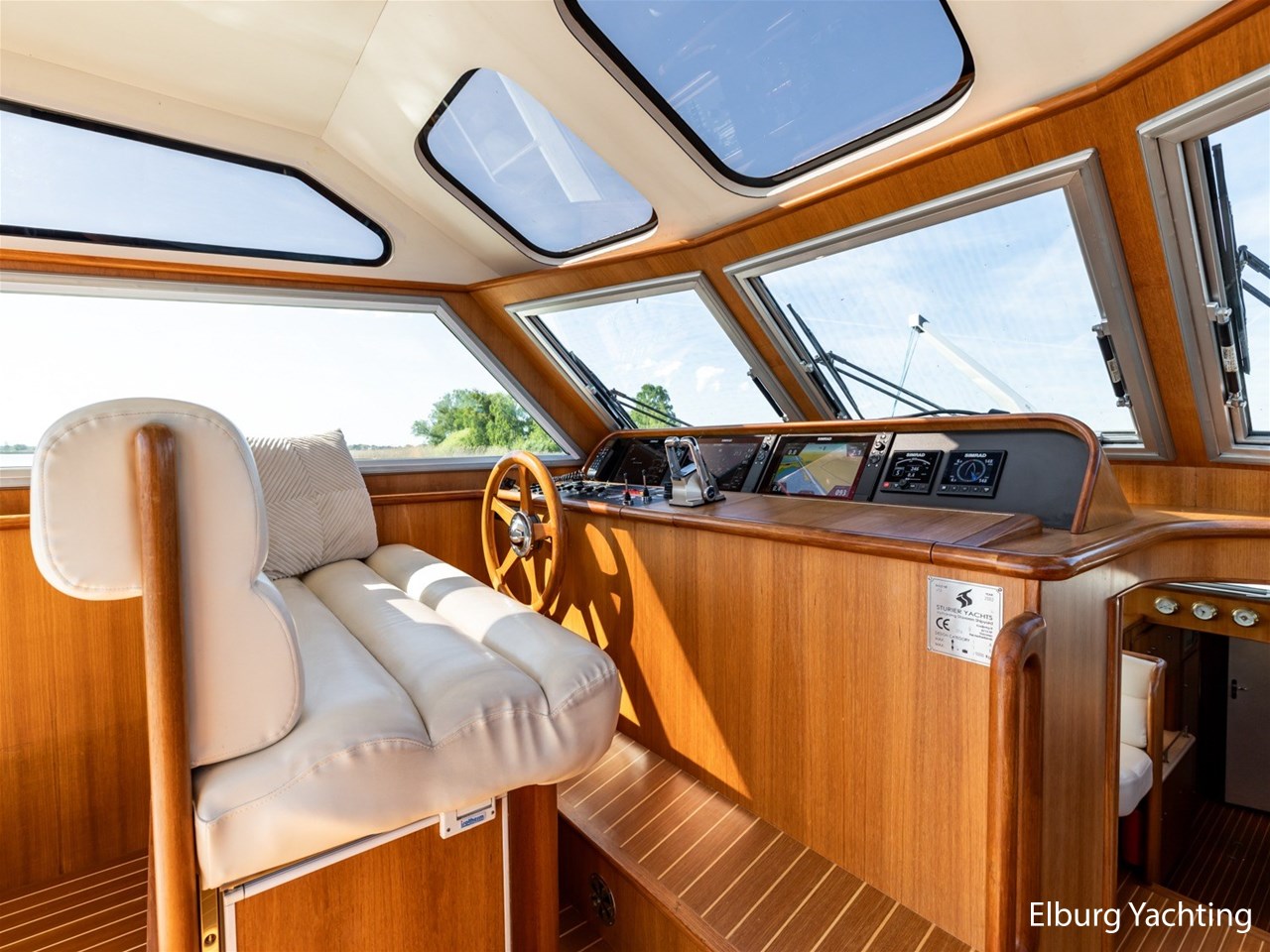 This beautiful Sturiër 480 AC - Fixed Wheelhouse - Stabilisers is offered by a true lover of the brand with an eye for detail. Originally, this yacht was called the Sturiër Trawler 480 AC. The solid Teak panelling combined with the white artificial leather upholstery gives this yacht a classic yet modern look. The yacht is equipped with 2 spacious cabins, the forward cabin is fitted with 4 single beds in V-shape and the aft cabin is fitted with a diagonally placed spacious double bed. The yacht is equipped with two wet rooms and to port side an office area with desk.