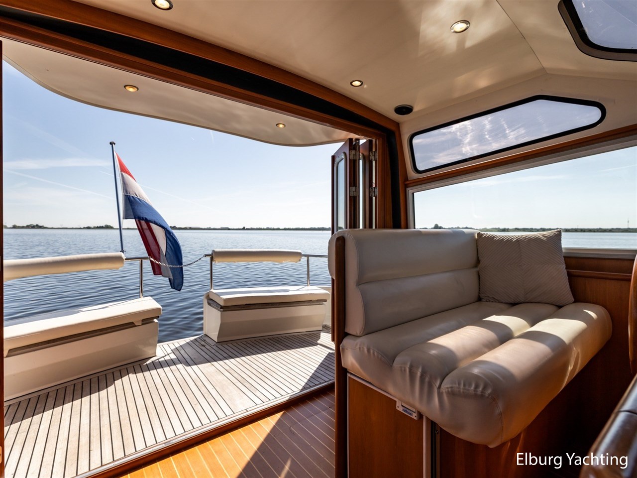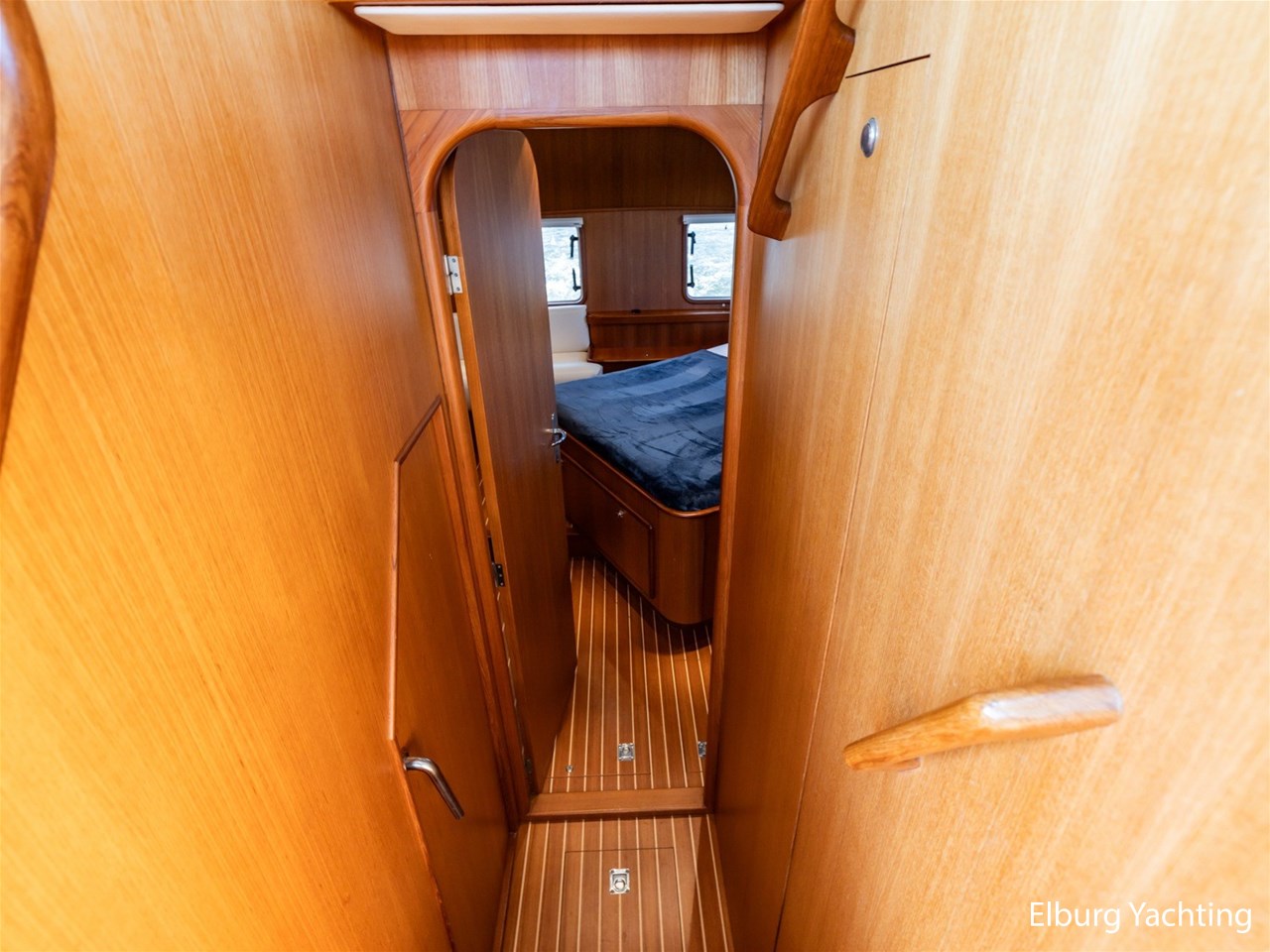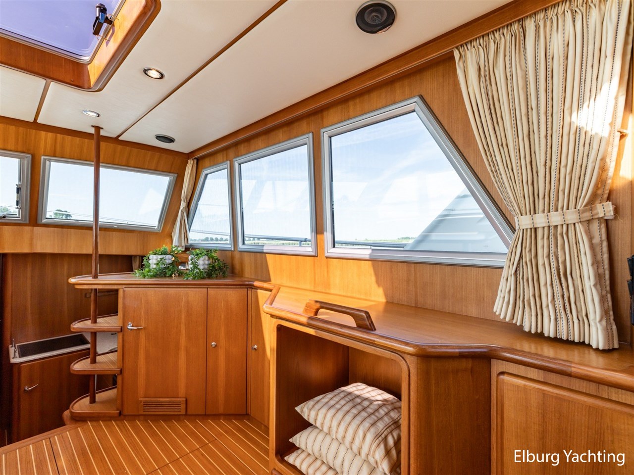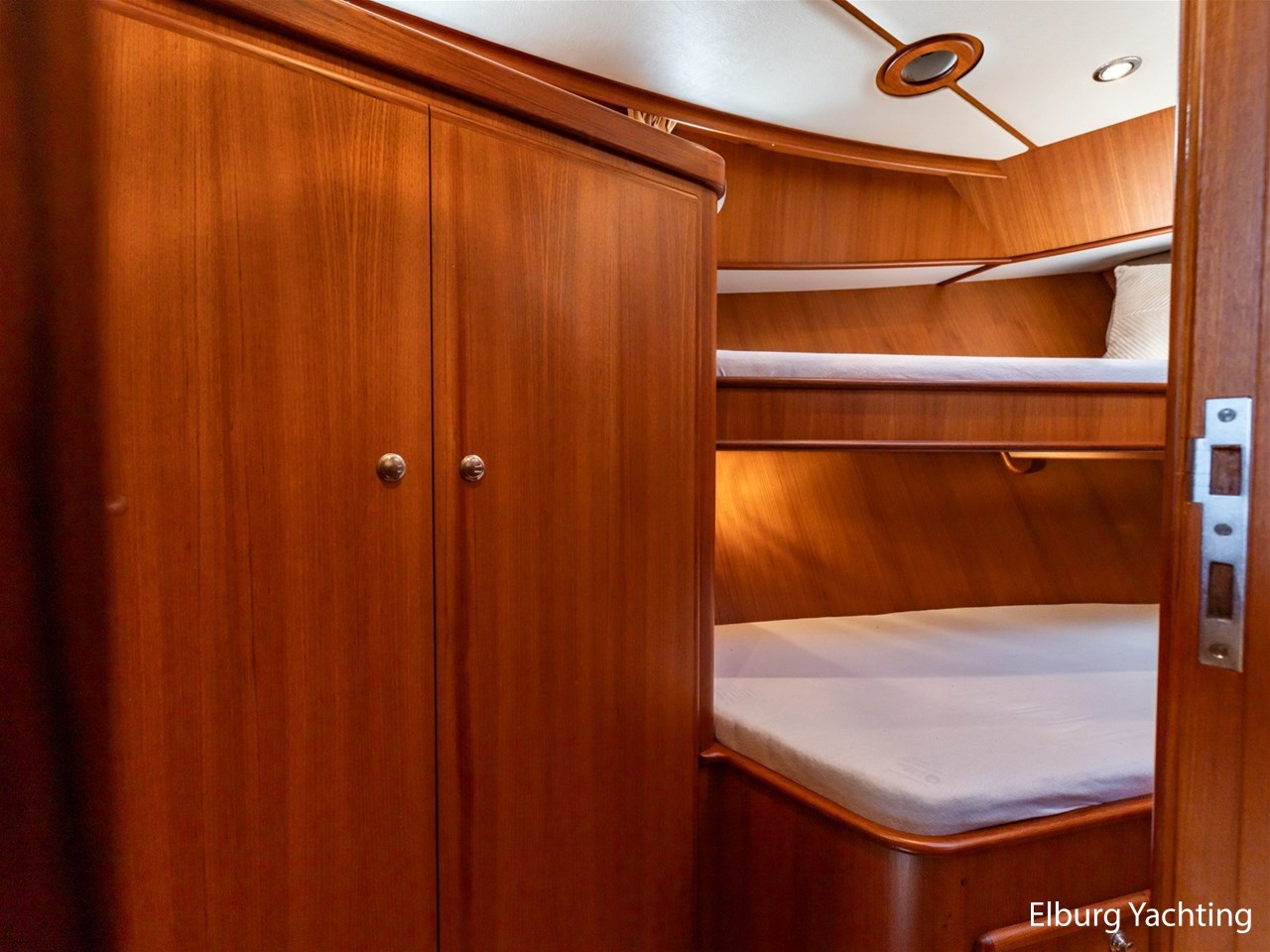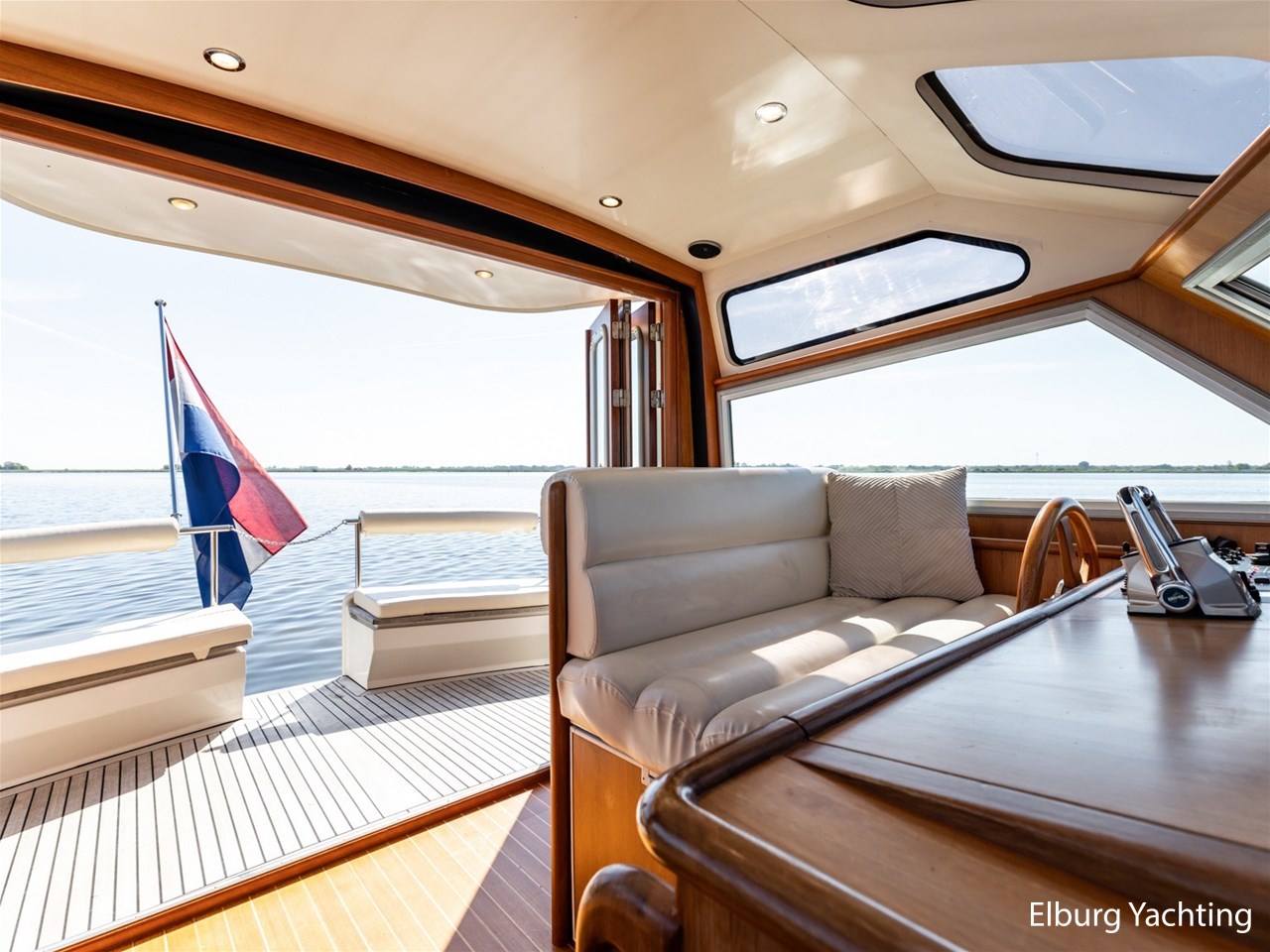 This beautiful Sturiër 480 AC - Fixed Wheelhouse - Stabilisers is offered by a true lover of the brand with an eye for detail. Originally, this yacht was called the Sturiër Trawler 480 AC. The solid Teak panelling combined with the white artificial leather upholstery gives this yacht a classic yet modern look. The yacht is equipped with 2 spacious cabins, the forward cabin is fitted with 4 single beds in V-shape and the aft cabin is fitted with a diagonally placed spacious double bed. The yacht is equipped with two wet rooms and to port side an office area with desk.