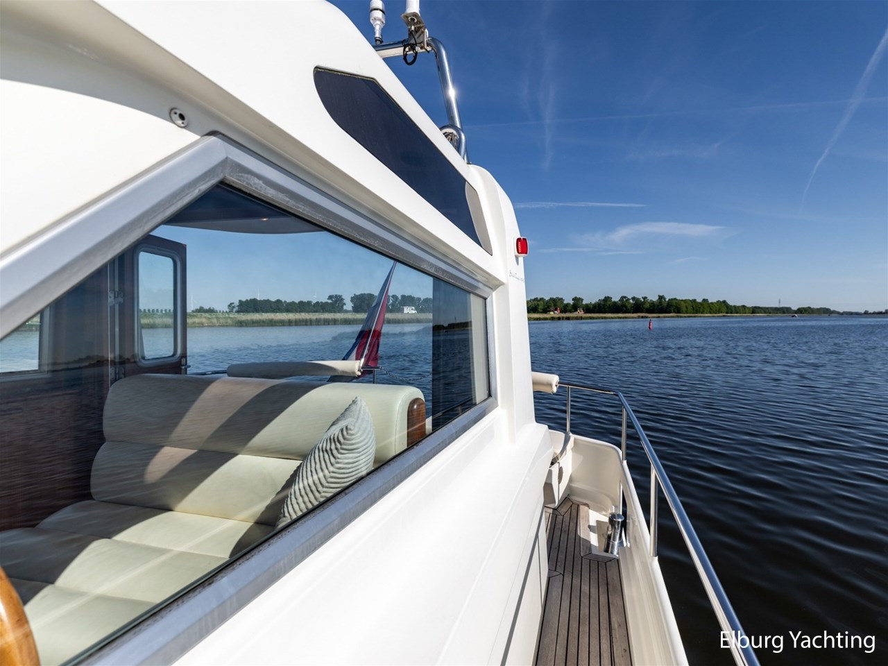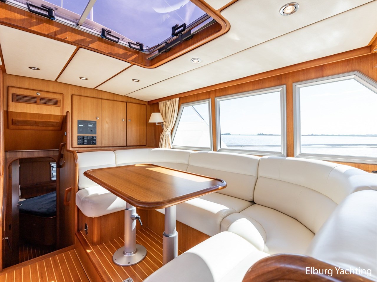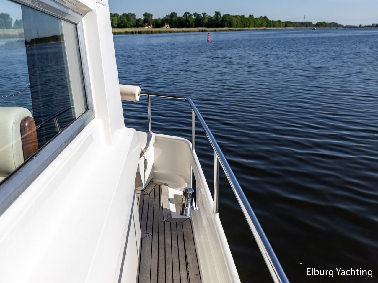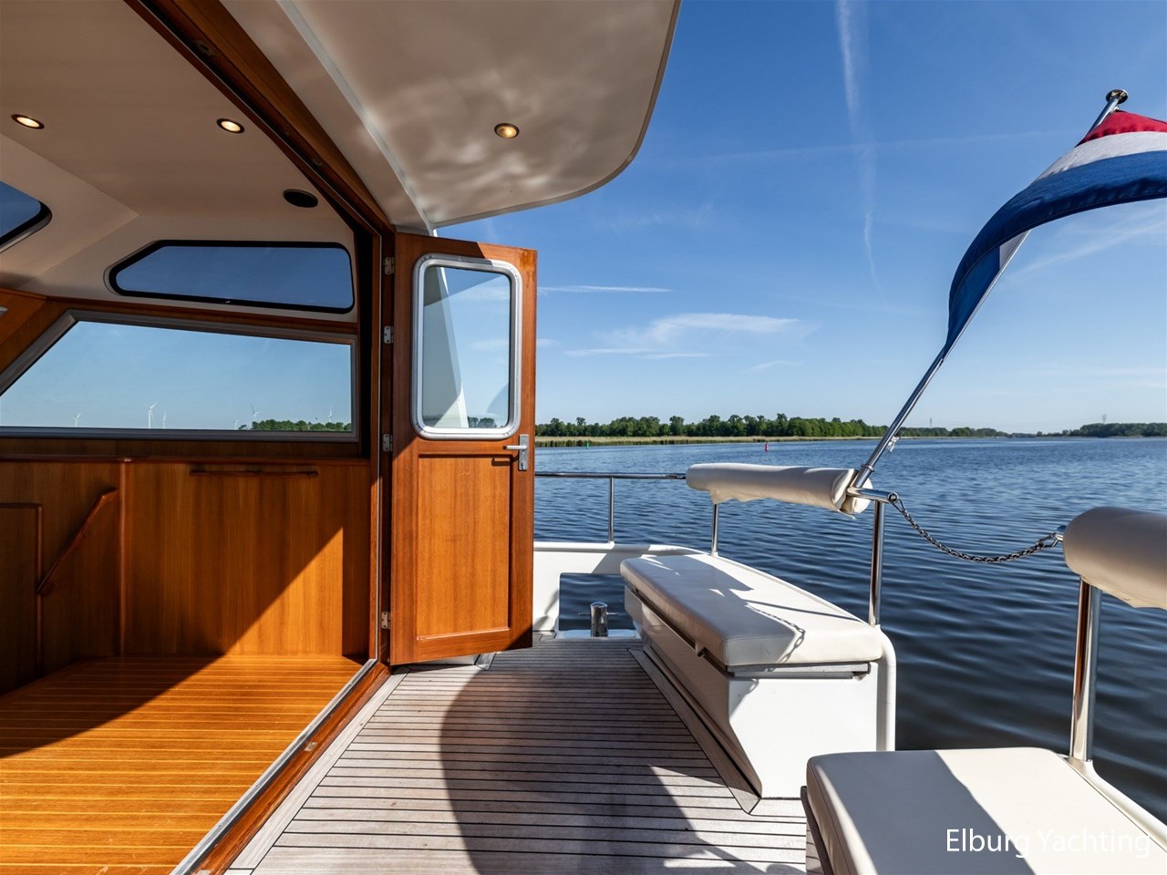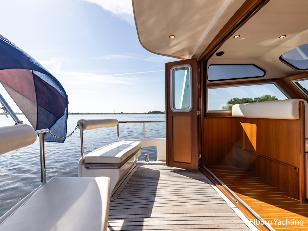 This beautiful Sturiër 480 AC - Fixed Wheelhouse - Stabilisers is offered by a true lover of the brand with an eye for detail. Originally, this yacht was called the Sturiër Trawler 480 AC. The solid Teak panelling combined with the white artificial leather upholstery gives this yacht a classic yet modern look. The yacht is equipped with 2 spacious cabins, the forward cabin is fitted with 4 single beds in V-shape and the aft cabin is fitted with a diagonally placed spacious double bed. The yacht is equipped with two wet rooms and to port side an office area with desk.