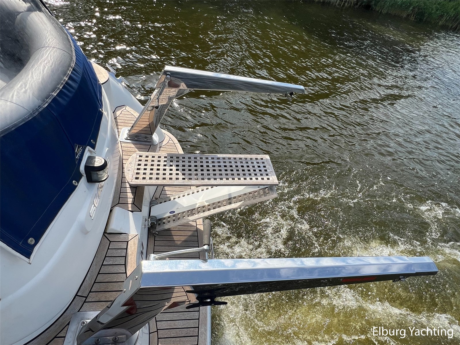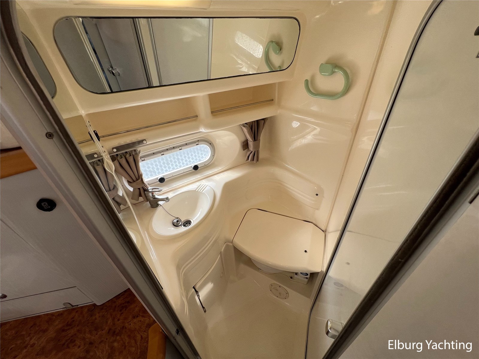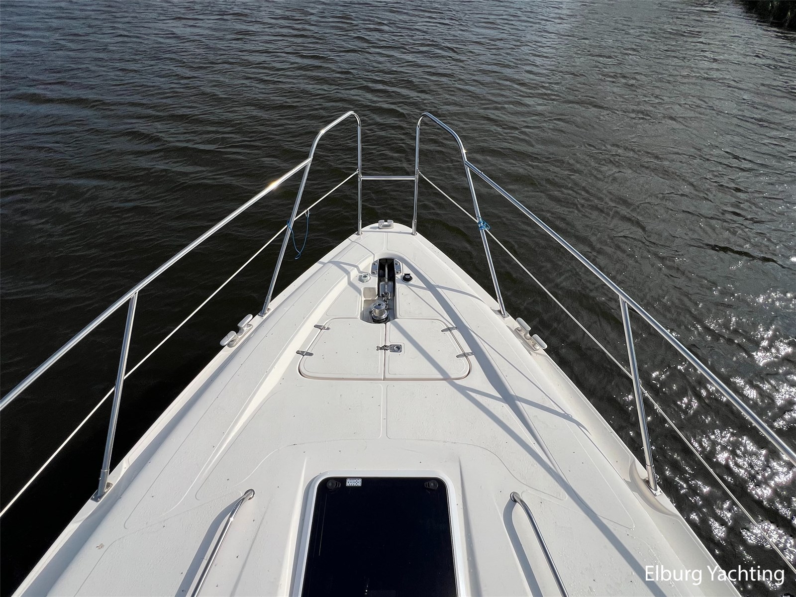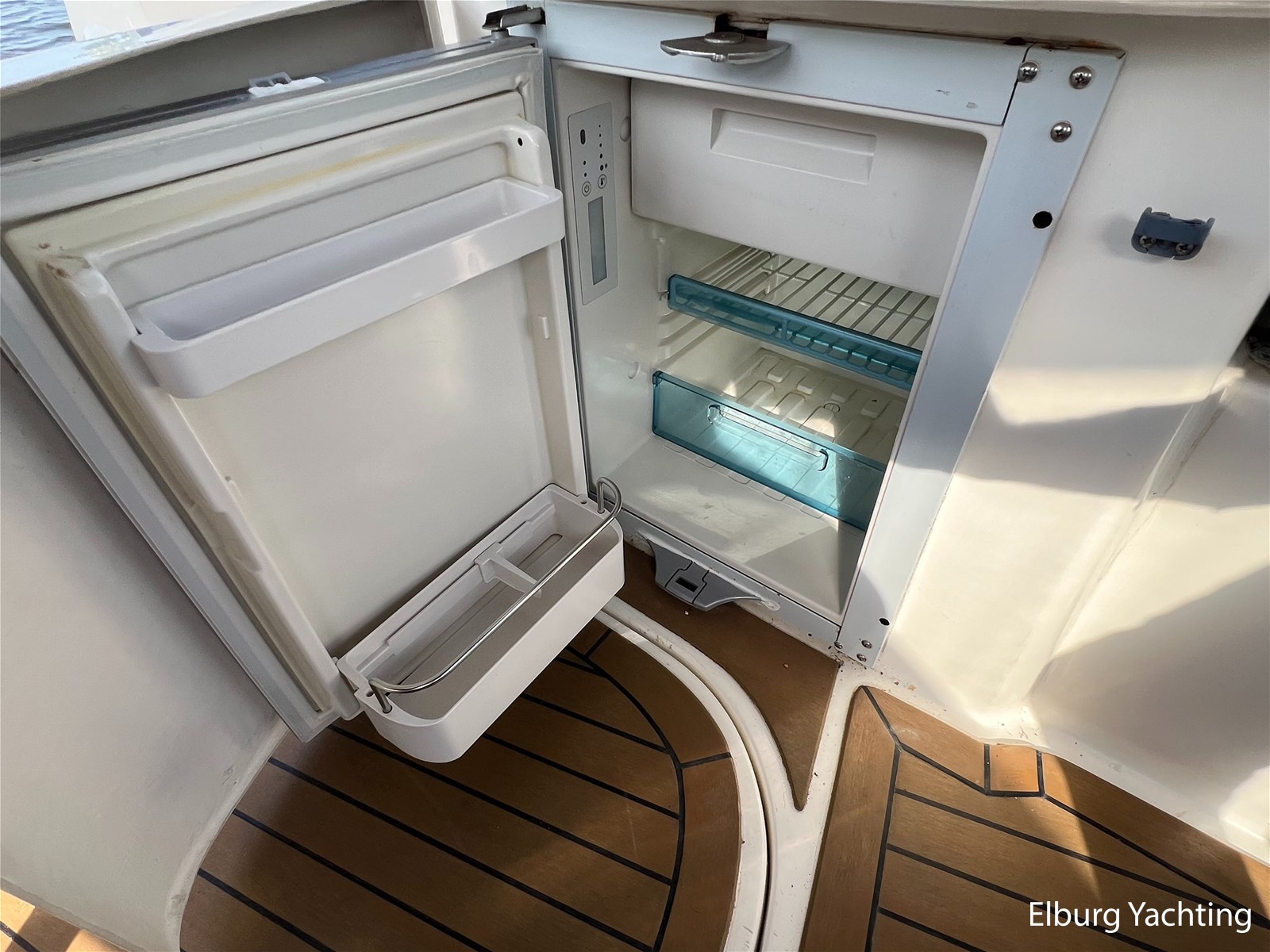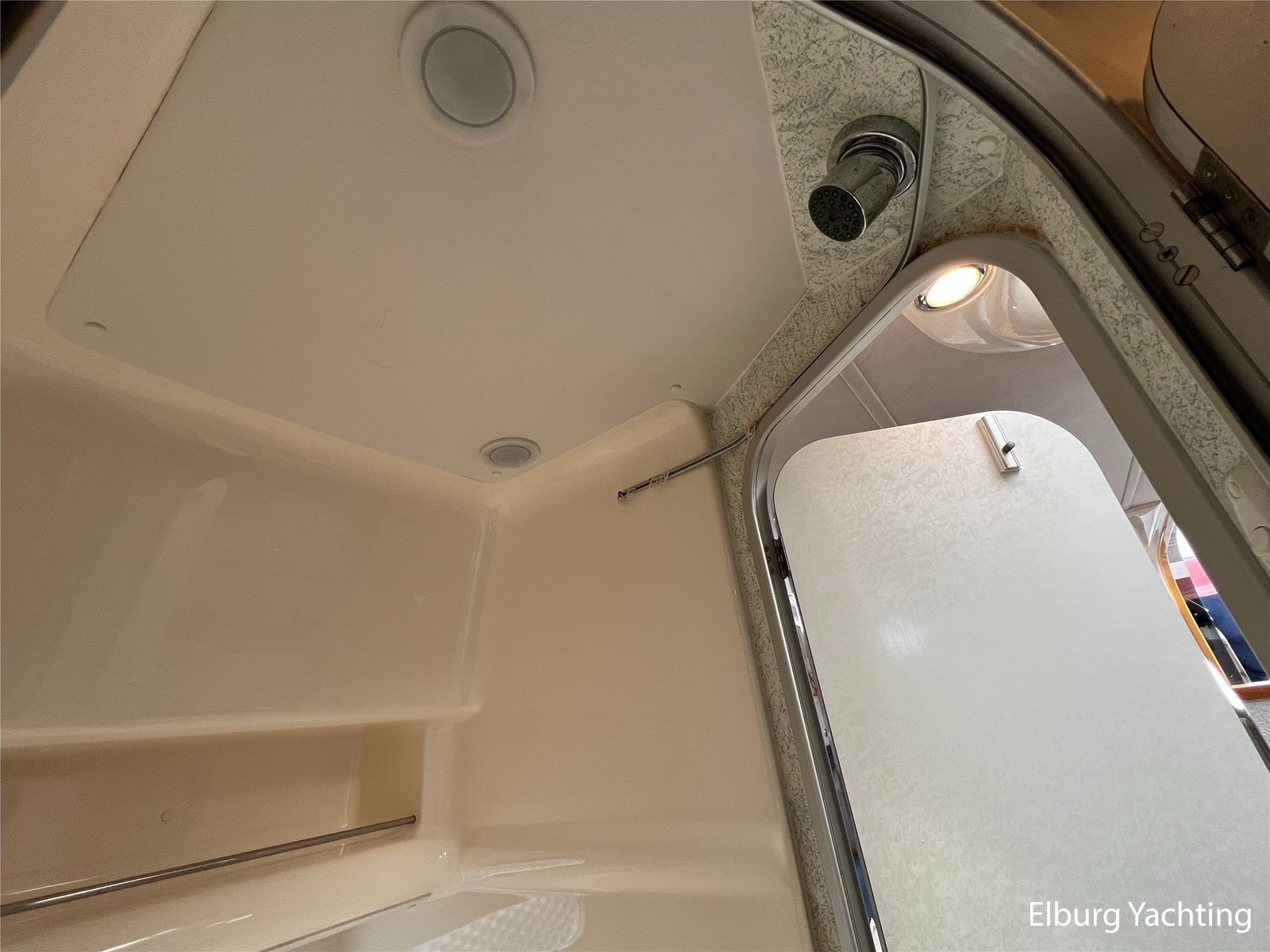 This 1996 Sealine S37 is a fast going motoryacht with a spacious living area on deck level and a comfortable saloon below deck. In the open cockpit there is a U-shaped fixed bench with removable cushions. The cockpit table can be lowered to create a large sunbed. Opposite there is an outdoor refrigerator with sink (hot/cold). The steering position has a 2-person pilot seat from where you have a clear view on the instruments. The entire cockpit is equipped with a low-maintenance synthetic teak deck. The ship has a two-cabin layout with the owner's cabin in the foreship equipped with a 2-person French bed and the 2-person guest cabin amidships. In recent years, much has been invested in the ship in service and improvements on board. The latest renovations were carried out in 2023, including a new teak floor in the saloon, upholstery inside + outside, multiple 230V sockets type F, carpeting and curtains, cockpit tent, maintenance on both engines and Z-drives. This Sealine S37 is furthermore equipped with: Lighting in open cockpit, many stainless steel details on deck, pilot seat for 2 persons, full tent around open cockpit with removable parts, leather upholstery in cockpit, sunbed on the foredeck, wetbar in cockpit with refrigerator and sink, integrated cup holders, foldable table at the outdoor seating area so that it can be converted into a sunbed, TV in saloon (2023), Sony radio (2023), foldable/removable gangway on the bathing platform. For questions and/or to make an appointment, you are welcome at Elburg Yachting 7 days a week.