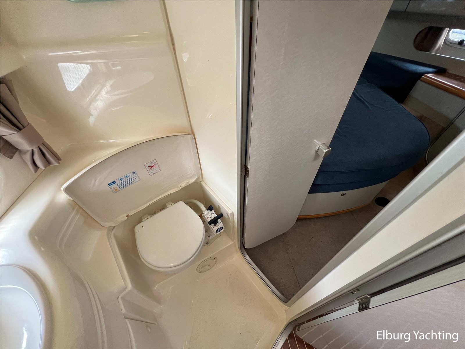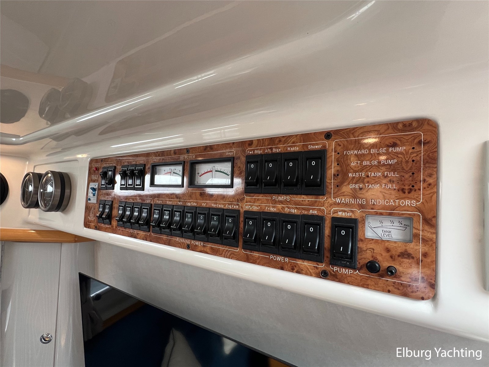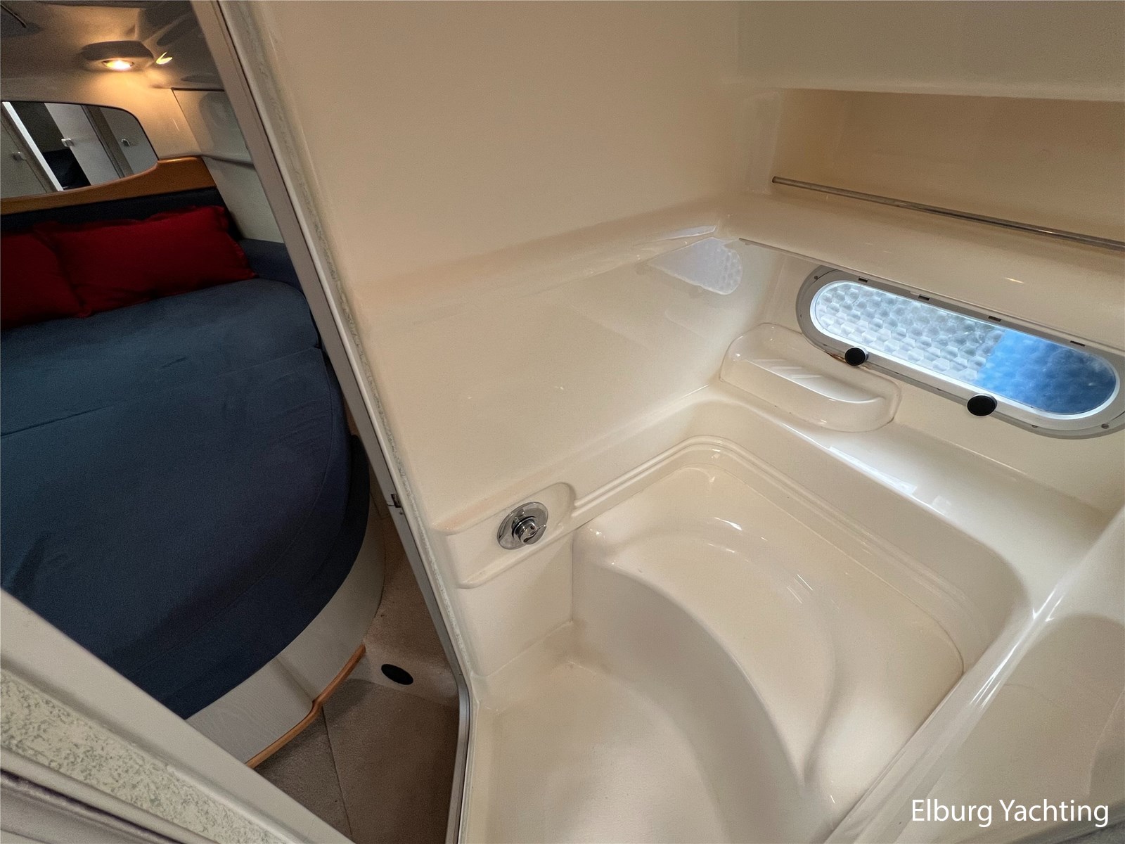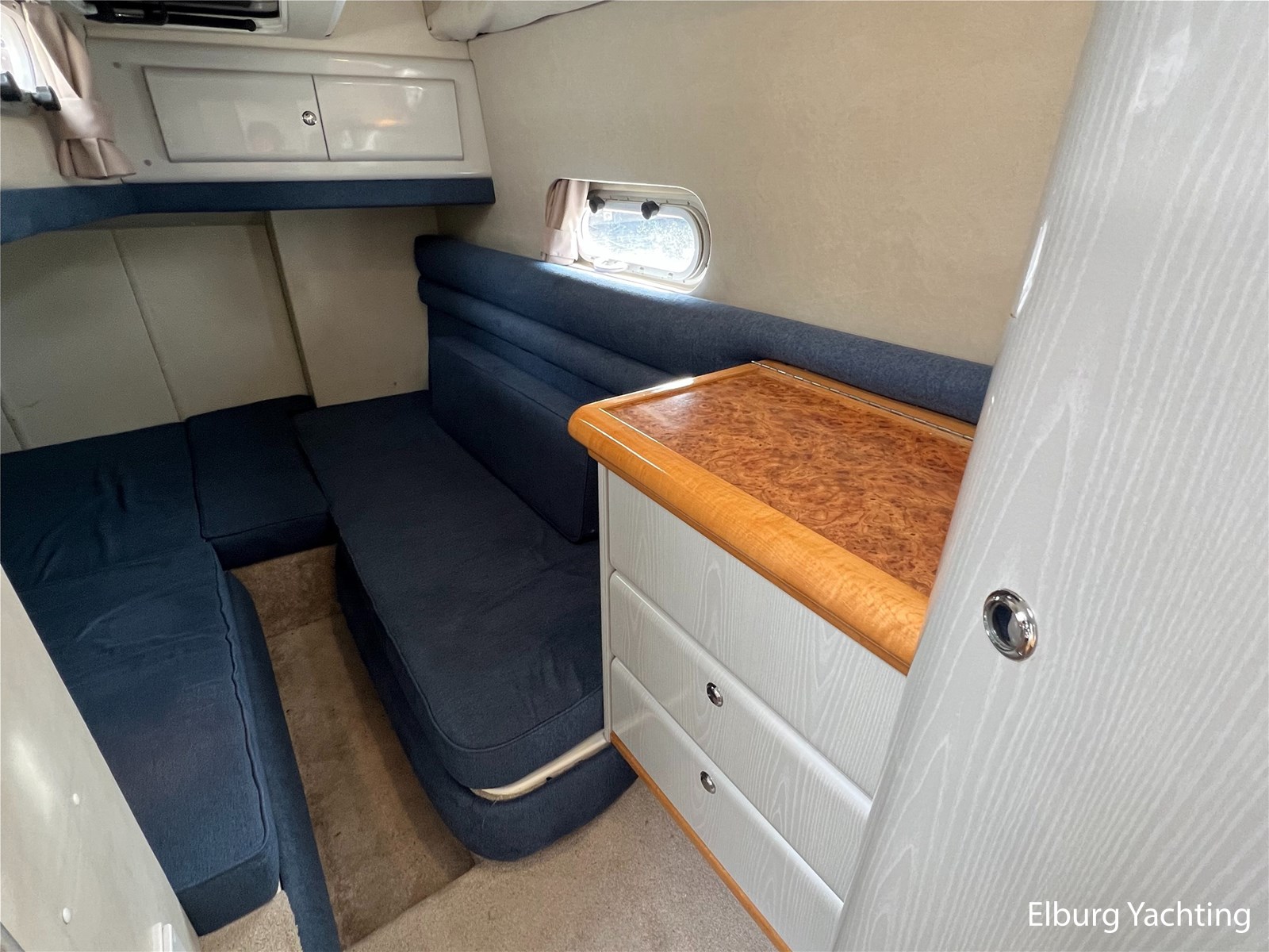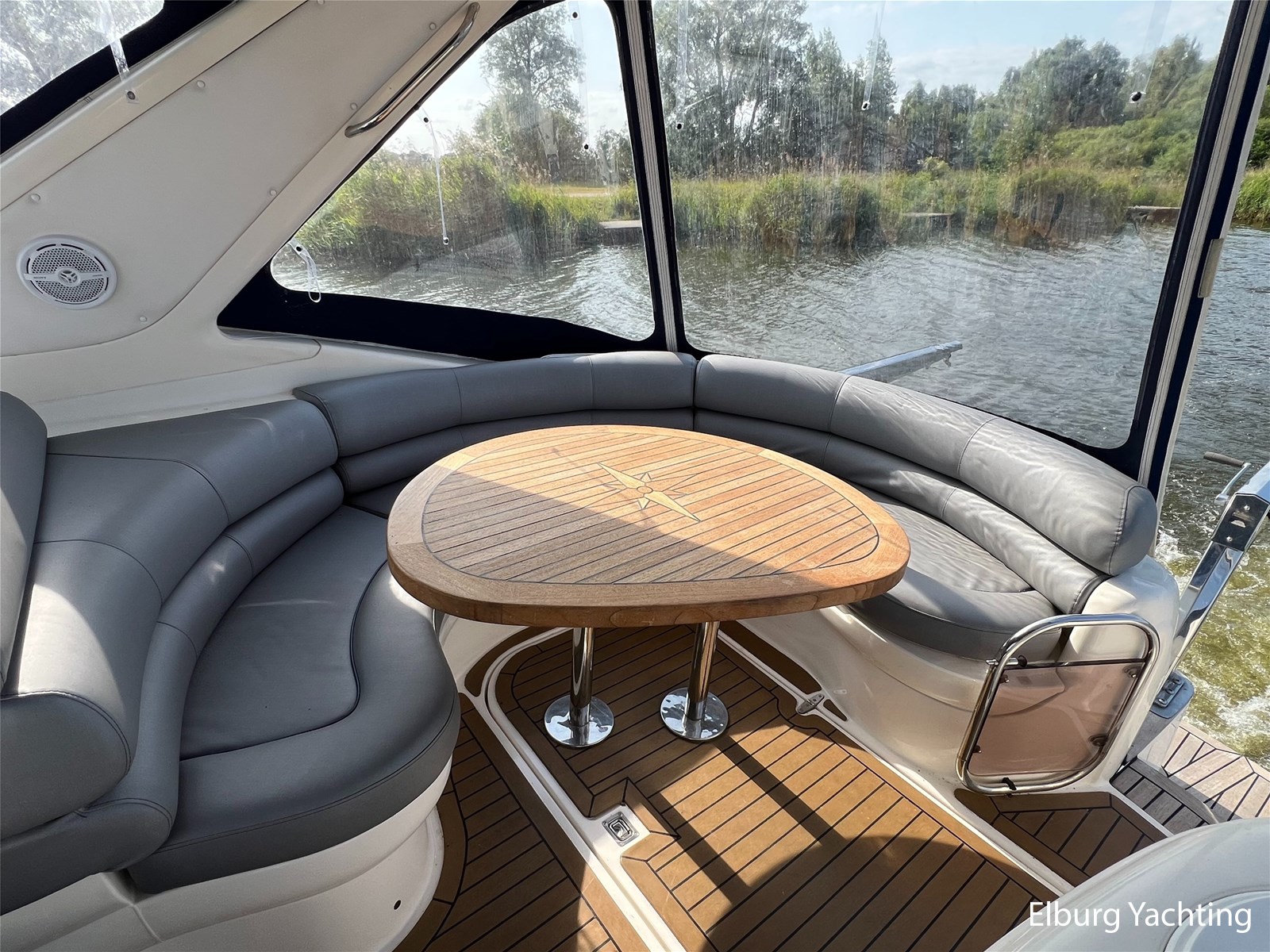 This 1996 Sealine S37 is a fast going motoryacht with a spacious living area on deck level and a comfortable saloon below deck. In the open cockpit there is a U-shaped fixed bench with removable cushions. The cockpit table can be lowered to create a large sunbed. Opposite there is an outdoor refrigerator with sink (hot/cold). The steering position has a 2-person pilot seat from where you have a clear view on the instruments. The entire cockpit is equipped with a low-maintenance synthetic teak deck. The ship has a two-cabin layout with the owner's cabin in the foreship equipped with a 2-person French bed and the 2-person guest cabin amidships. In recent years, much has been invested in the ship in service and improvements on board. The latest renovations were carried out in 2023, including a new teak floor in the saloon, upholstery inside + outside, multiple 230V sockets type F, carpeting and curtains, cockpit tent, maintenance on both engines and Z-drives. This Sealine S37 is furthermore equipped with: Lighting in open cockpit, many stainless steel details on deck, pilot seat for 2 persons, full tent around open cockpit with removable parts, leather upholstery in cockpit, sunbed on the foredeck, wetbar in cockpit with refrigerator and sink, integrated cup holders, foldable table at the outdoor seating area so that it can be converted into a sunbed, TV in saloon (2023), Sony radio (2023), foldable/removable gangway on the bathing platform. For questions and/or to make an appointment, you are welcome at Elburg Yachting 7 days a week.