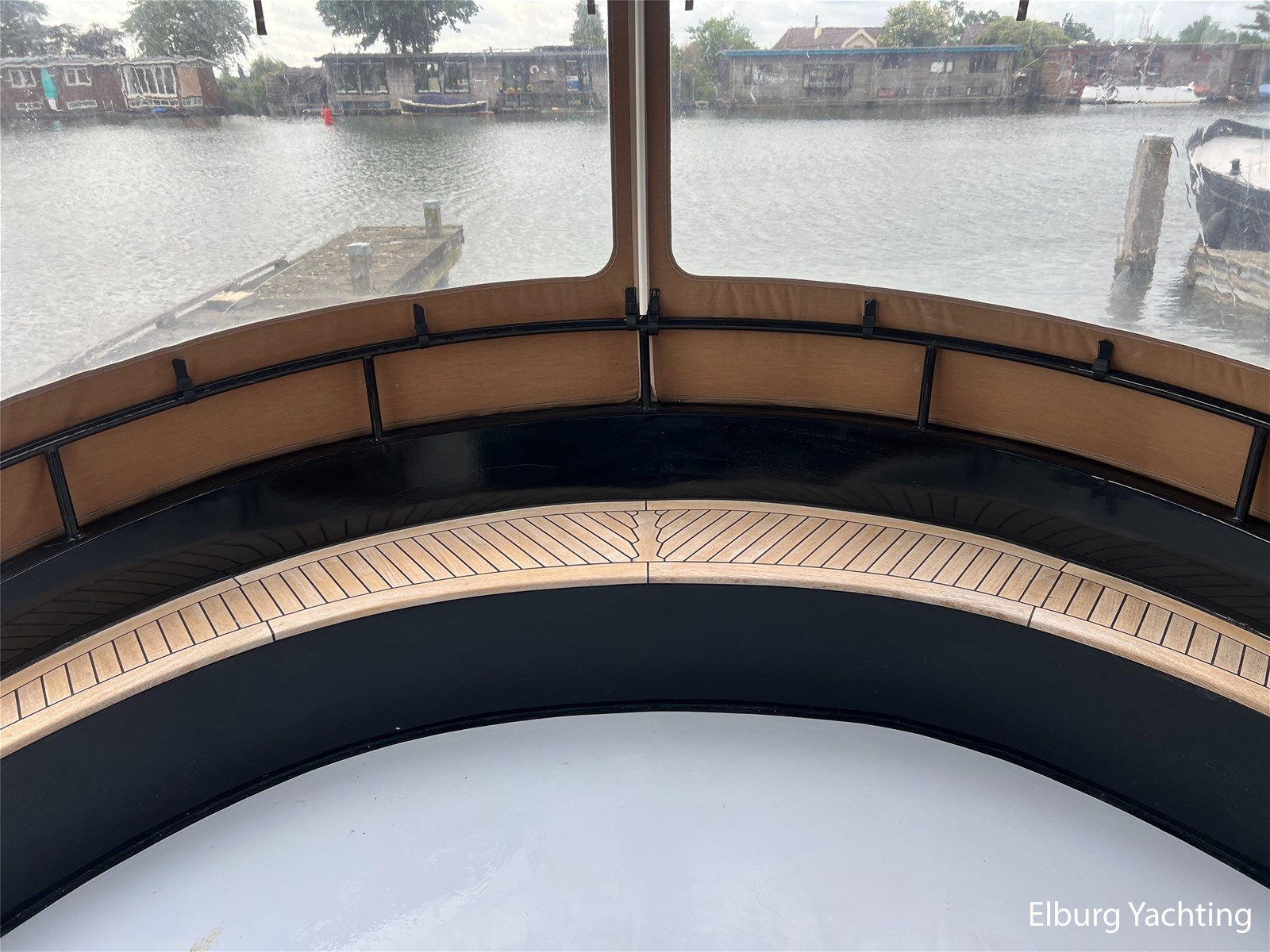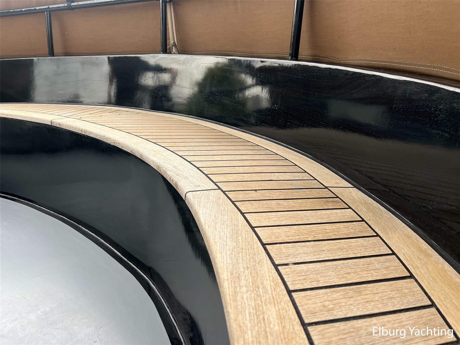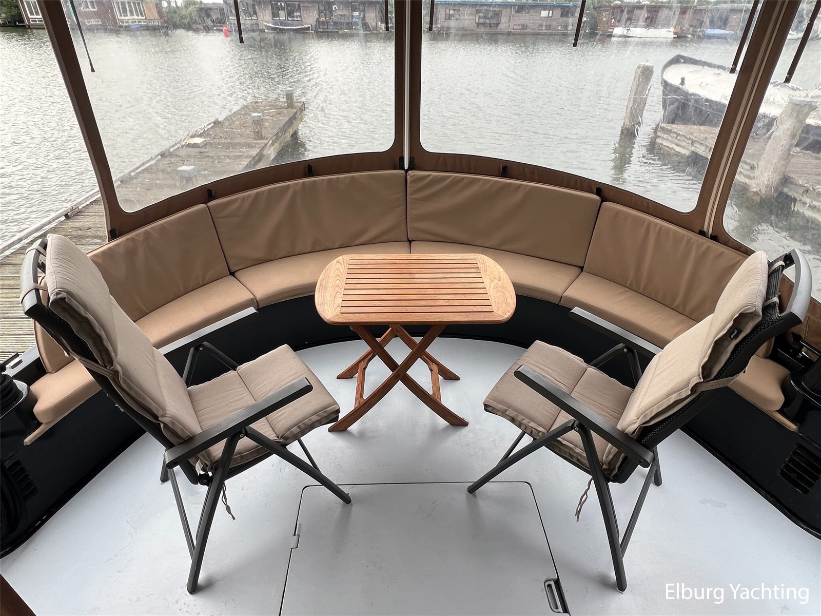 Very complete Euroship Luxury Motor 13.50. The vessel is ideal for longer stays on board, long journeys or residence and is equipped with double glazing, portholes in owner's cabin, deck wash pump, tank meter, cockpit cushions, solar panels, stainless steel. bollards. Euroship Luxury Motor 13.50 France proof. The ship has a spacious open cockpit with stainless steel frame, tent, view from salon over railing, open cockpit can be closed all around with a cockpit tent. Hull painted (2024), decks painted (2024), roof painted (2025), batteries (2023), dynamo (2023), Candy washing machine.