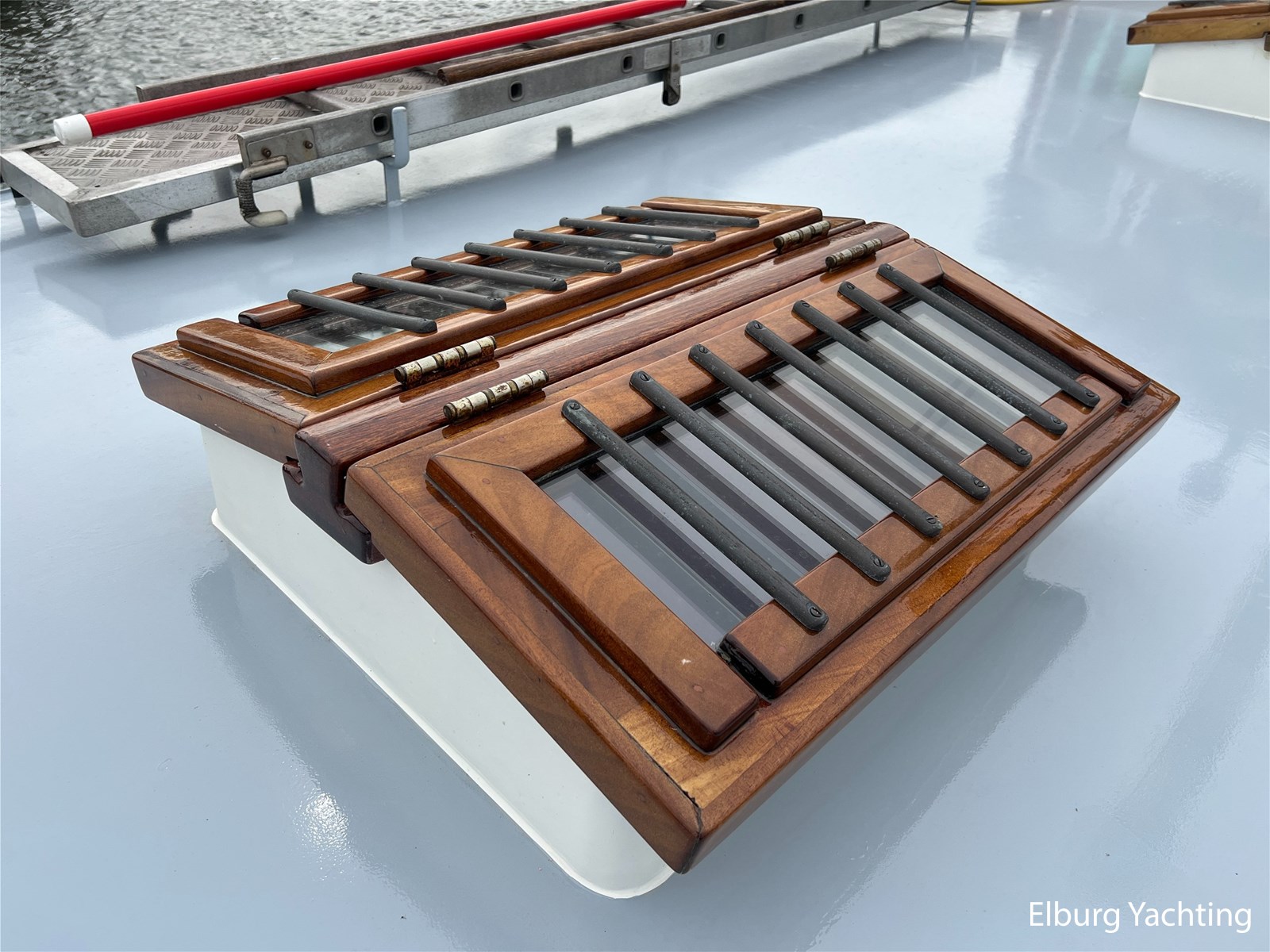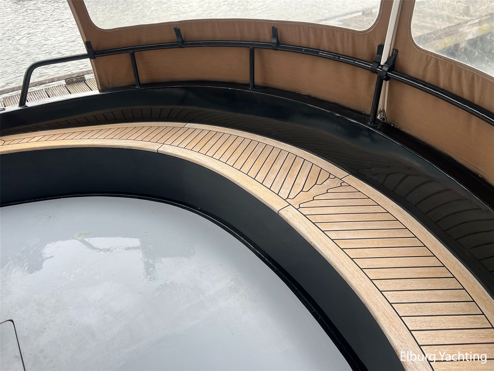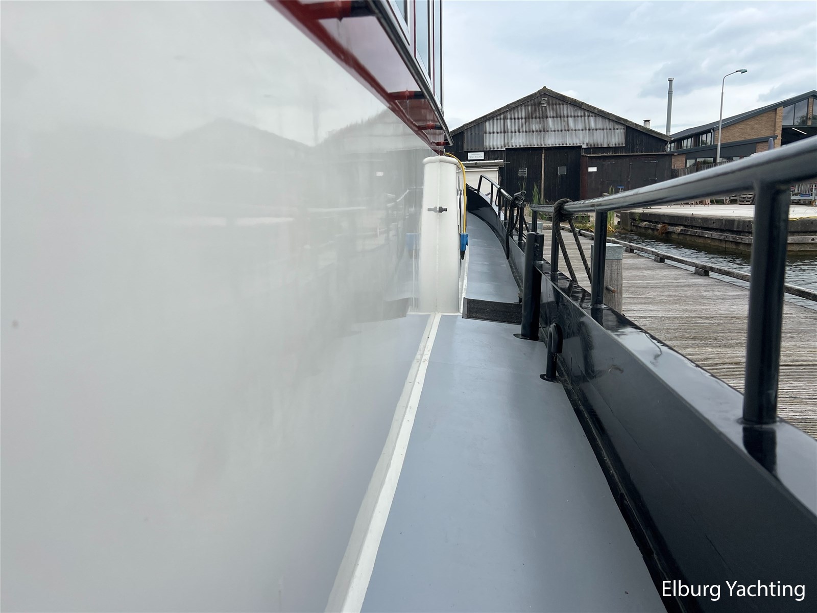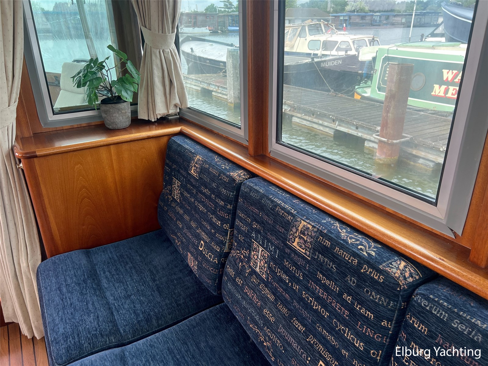 Very complete Euroship Luxury Motor 13.50. The vessel is ideal for longer stays on board, long journeys or residence and is equipped with double glazing, portholes in owner's cabin, deck wash pump, tank meter, cockpit cushions, solar panels, stainless steel. bollards. Euroship Luxury Motor 13.50 France proof. The ship has a spacious open cockpit with stainless steel frame, tent, view from salon over railing, open cockpit can be closed all around with a cockpit tent. Hull painted (2024), decks painted (2024), roof painted (2025), batteries (2023), dynamo (2023), Candy washing machine.