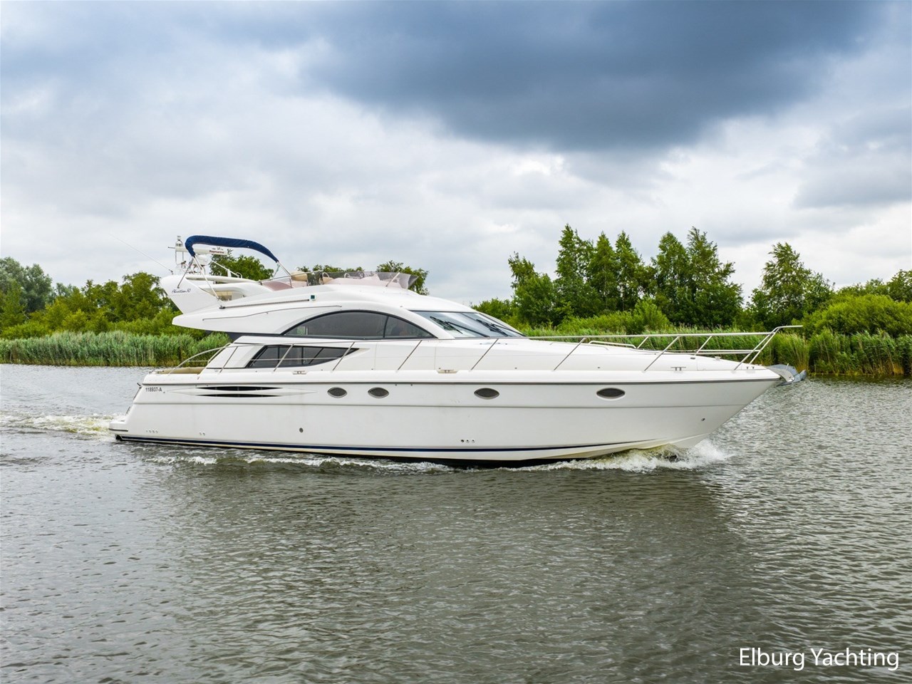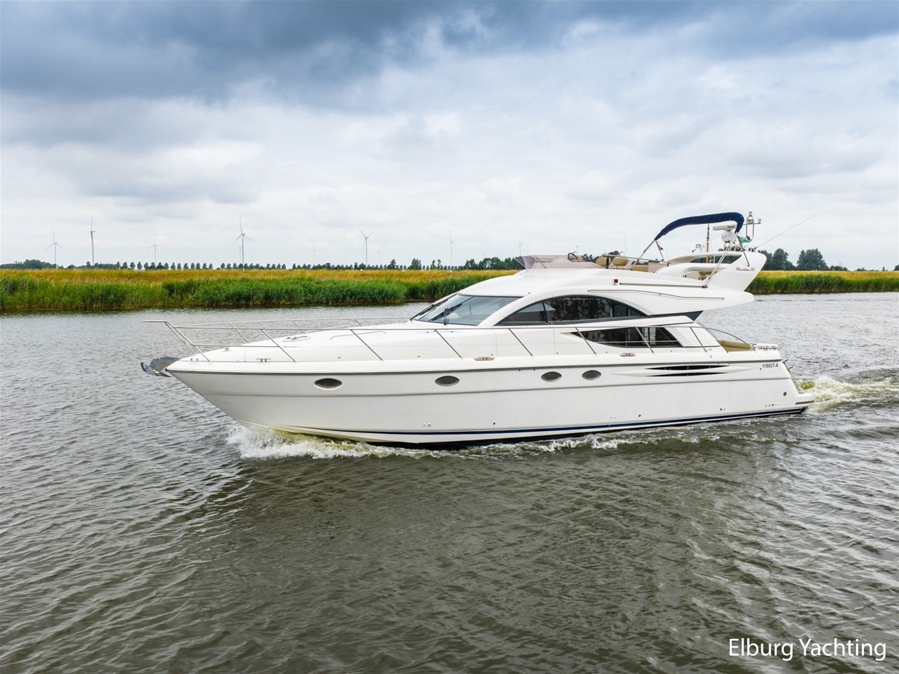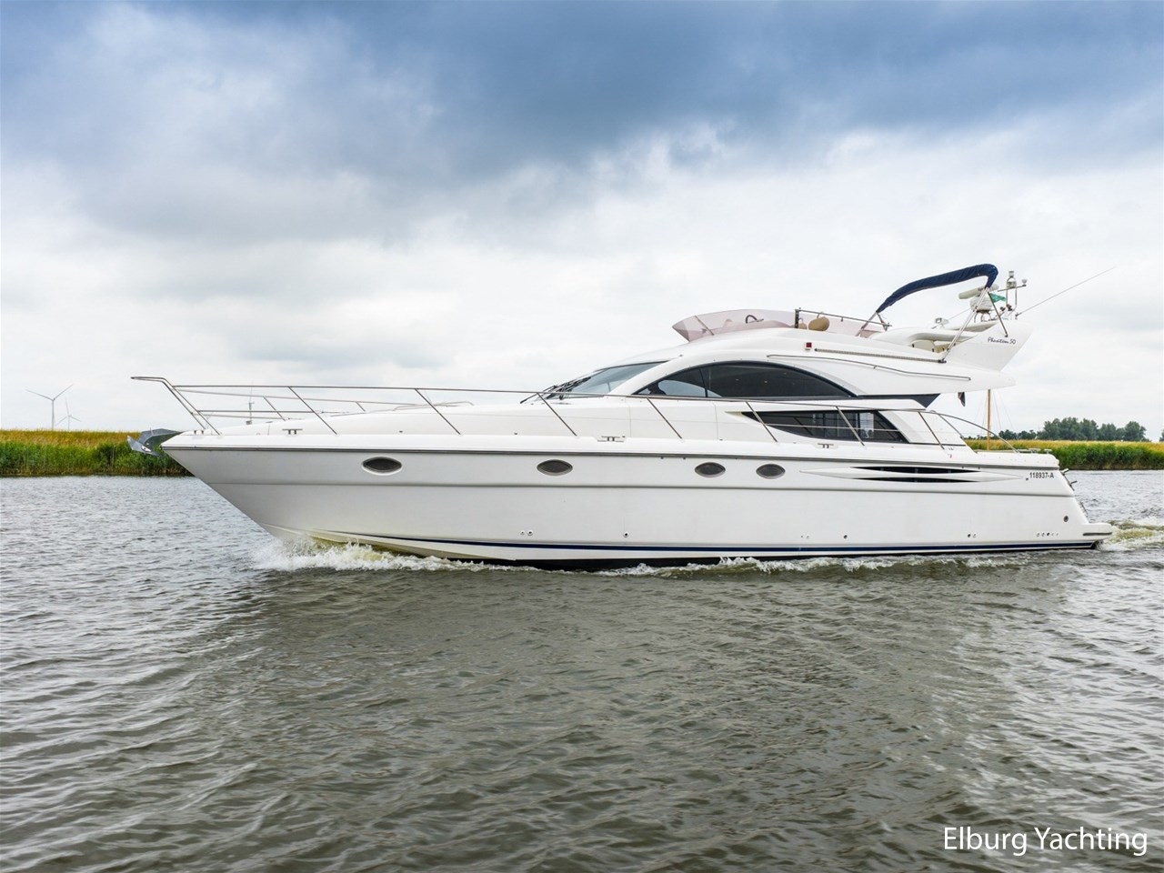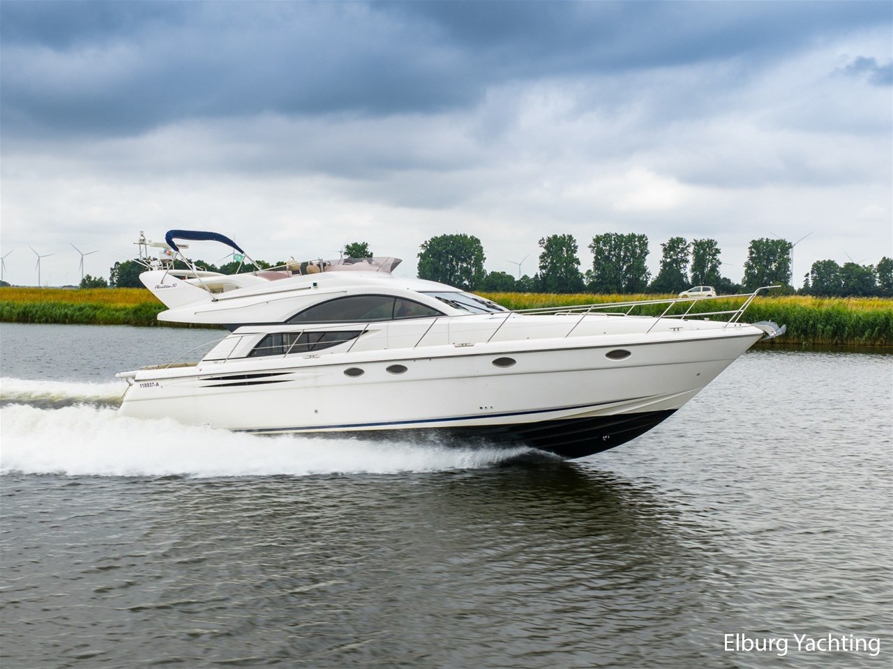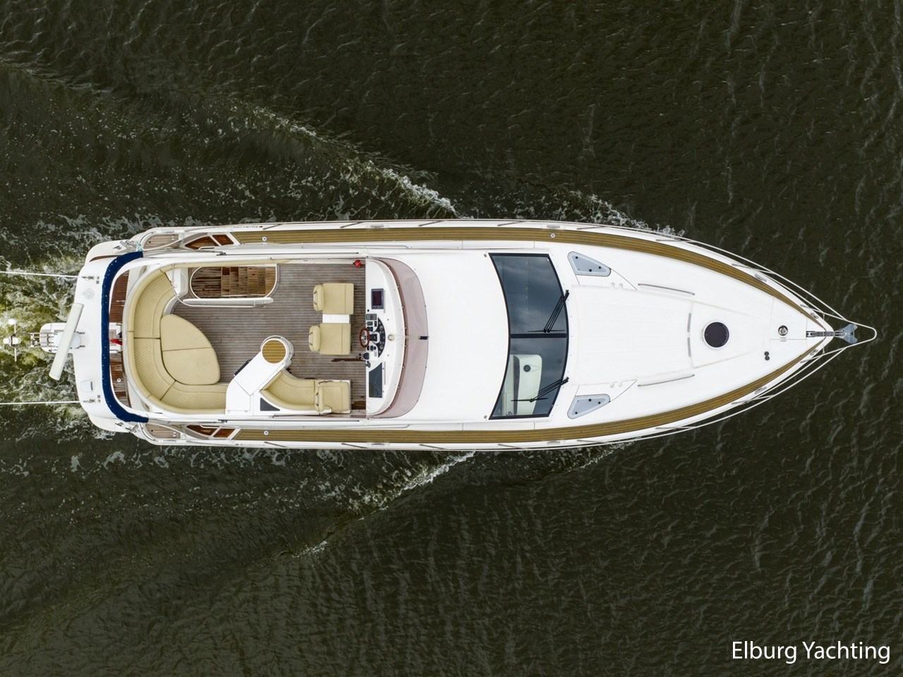 Refined and elegant, the Fairline Phantom 50 offers ultimate comfort combined with sport performance. With three full-size cabins, the vessel offers sleeping accommodation for six crew + 1 x crew cabin. This Fairline Phantom 50 is very full equipped including: Fixed bench seat in open cockpit with matching cushions (2022), cockpit and saloon on single level, stainless steel sliding door to saloon, "lazy" stairs to flybridge, U-shaped dinette on flybridge also to be used as sun bed, 2 x sailing chair at inside helm station and on flybridge, bimini top, outside lighting (blue), Zanussi washing machine, access engine room via open cockpit with spacious storage, kitchen at same level as saloon, mosquito nets for portholes, crew cabin with private entrance through open cockpit, trim tabs, cushions on foredeck, sunscreens around saloon windows, full tent (2021) around open cockpit, covers for benches on flybridge (2021) + full cover, stainless steel outside railing all around. 2 x diesel tanks cleaned in 2022, major engine maintenance (engines and generator) carried out in 2024.