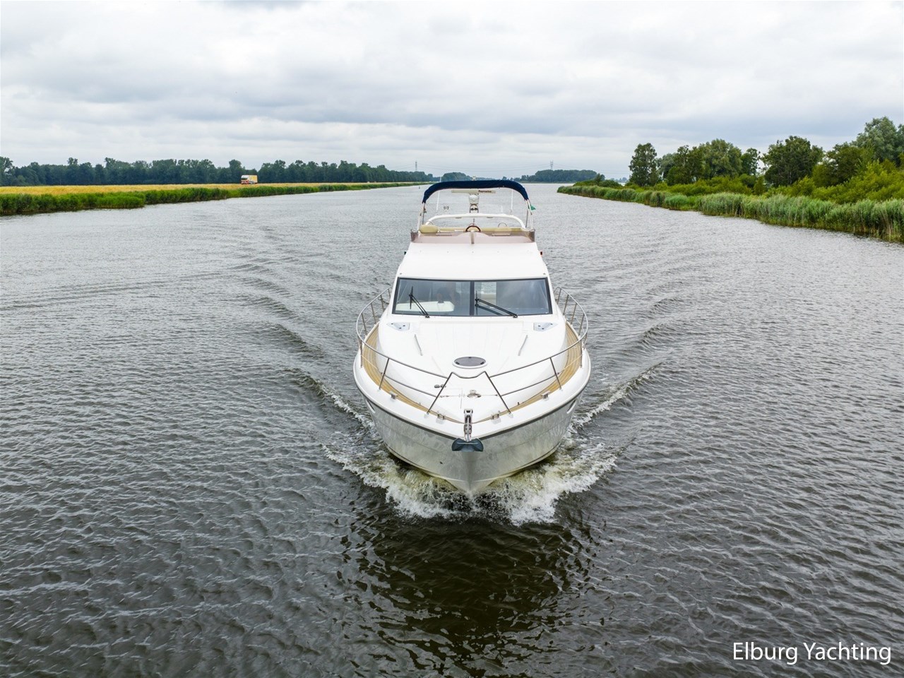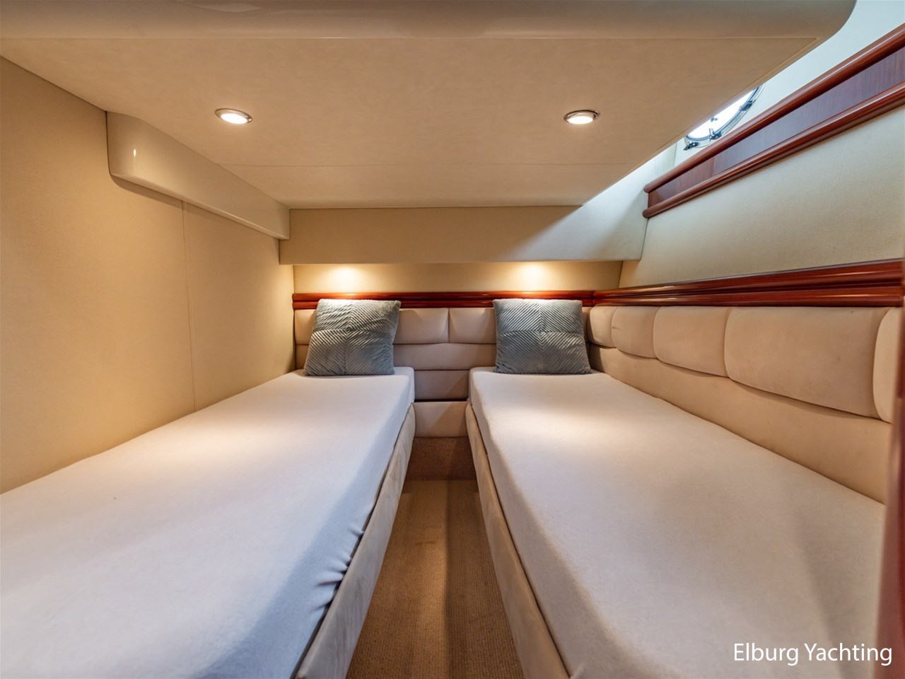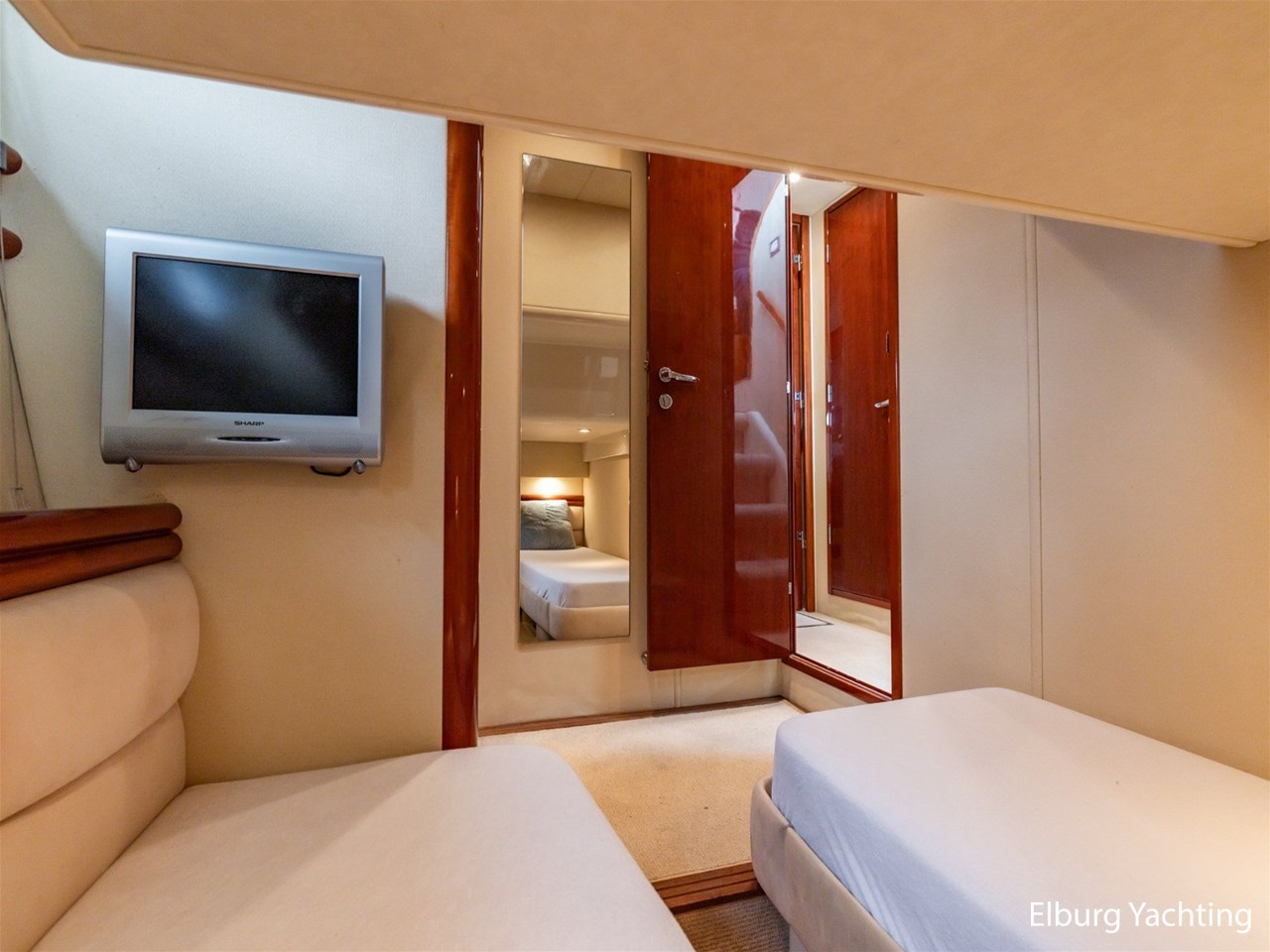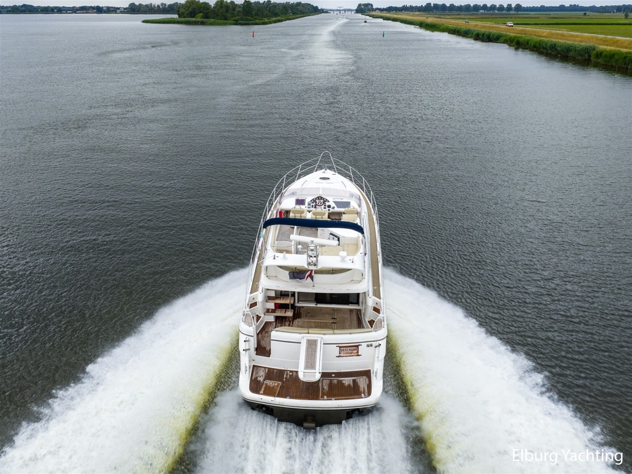 Refined and elegant, the Fairline Phantom 50 offers ultimate comfort combined with sport performance. With three full-size cabins, the vessel offers sleeping accommodation for six crew + 1 x crew cabin. This Fairline Phantom 50 is very full equipped including: Fixed bench seat in open cockpit with matching cushions (2022), cockpit and saloon on single level, stainless steel sliding door to saloon, "lazy" stairs to flybridge, U-shaped dinette on flybridge also to be used as sun bed, 2 x sailing chair at inside helm station and on flybridge, bimini top, outside lighting (blue), Zanussi washing machine, access engine room via open cockpit with spacious storage, kitchen at same level as saloon, mosquito nets for portholes, crew cabin with private entrance through open cockpit, trim tabs, cushions on foredeck, sunscreens around saloon windows, full tent (2021) around open cockpit, covers for benches on flybridge (2021) + full cover, stainless steel outside railing all around. 2 x diesel tanks cleaned in 2022, major engine maintenance (engines and generator) carried out in 2024.