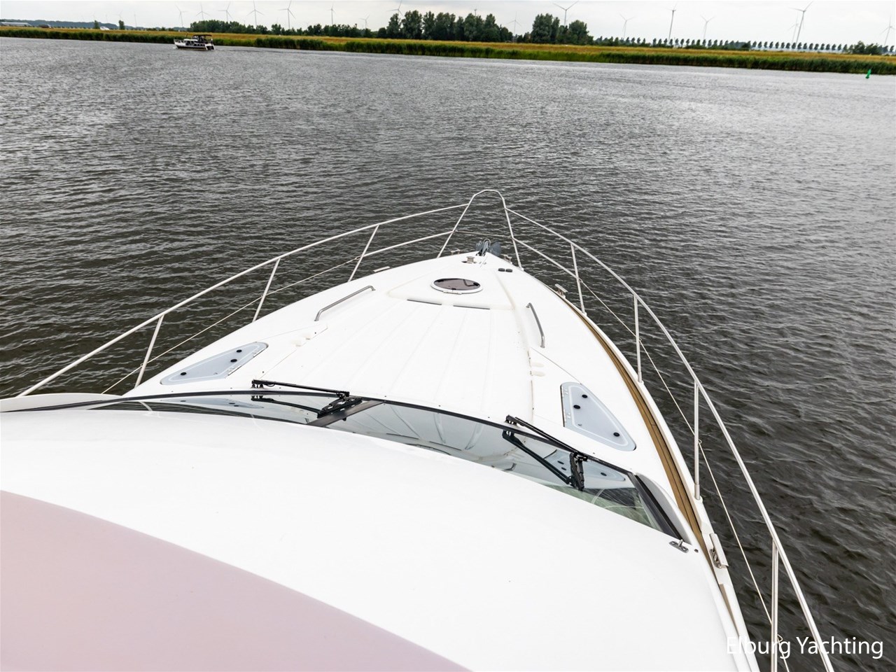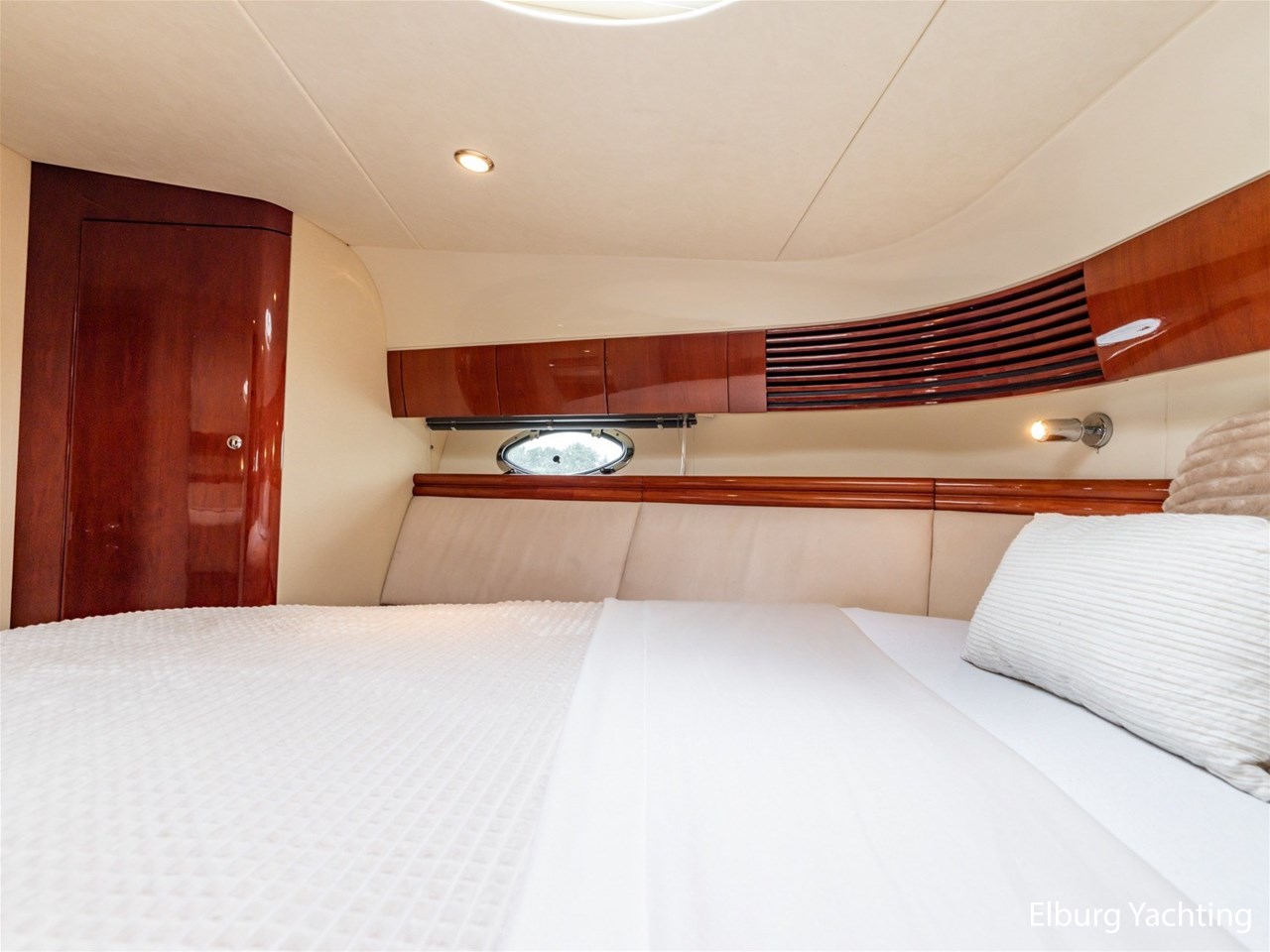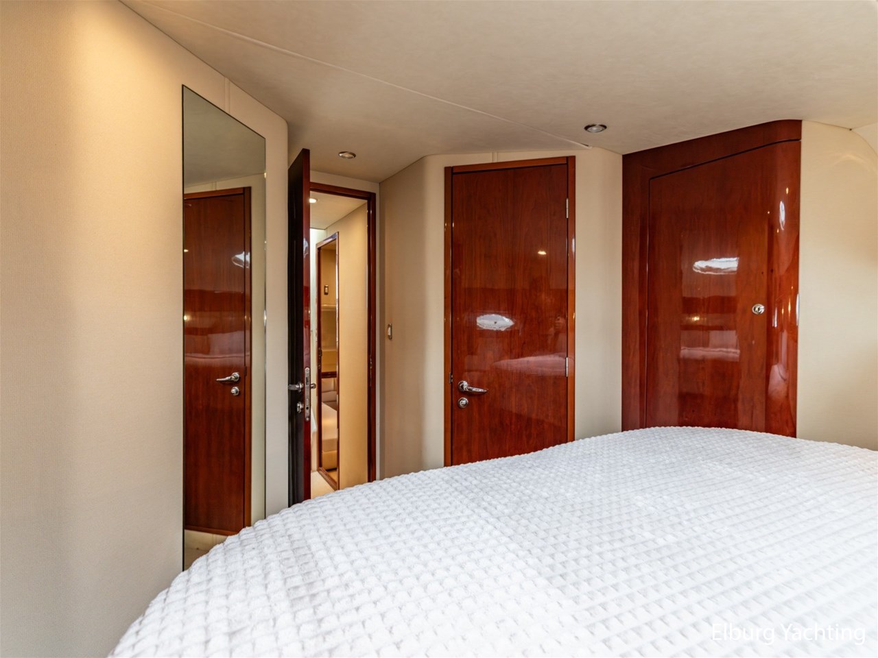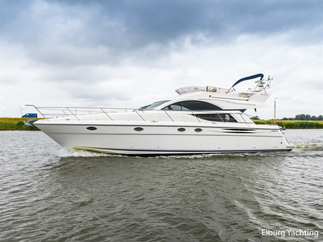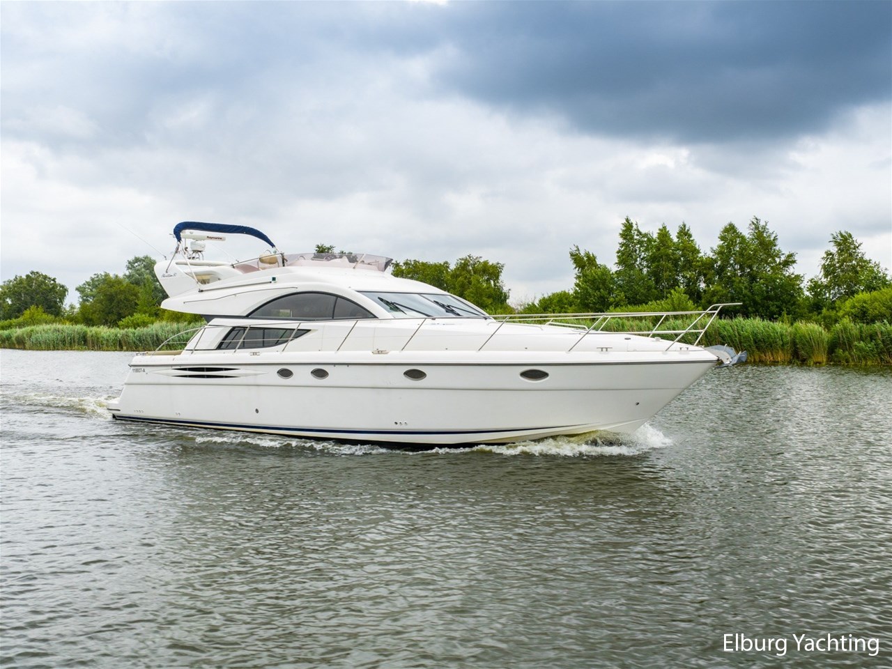 Refined and elegant, the Fairline Phantom 50 offers ultimate comfort combined with sport performance. With three full-size cabins, the vessel offers sleeping accommodation for six crew + 1 x crew cabin. This Fairline Phantom 50 is very full equipped including: Fixed bench seat in open cockpit with matching cushions (2022), cockpit and saloon on single level, stainless steel sliding door to saloon, "lazy" stairs to flybridge, U-shaped dinette on flybridge also to be used as sun bed, 2 x sailing chair at inside helm station and on flybridge, bimini top, outside lighting (blue), Zanussi washing machine, access engine room via open cockpit with spacious storage, kitchen at same level as saloon, mosquito nets for portholes, crew cabin with private entrance through open cockpit, trim tabs, cushions on foredeck, sunscreens around saloon windows, full tent (2021) around open cockpit, covers for benches on flybridge (2021) + full cover, stainless steel outside railing all around. 2 x diesel tanks cleaned in 2022, major engine maintenance (engines and generator) carried out in 2024.