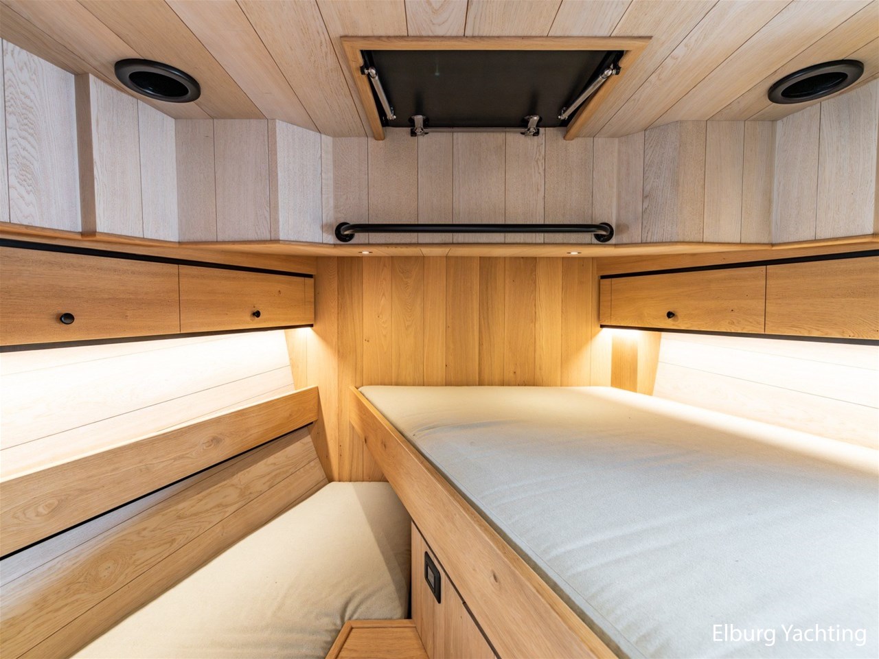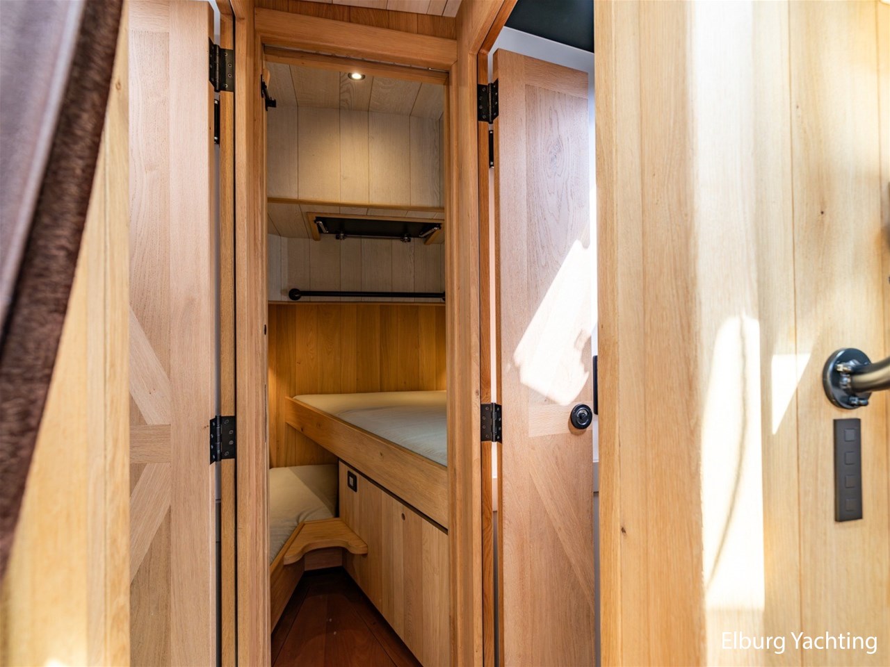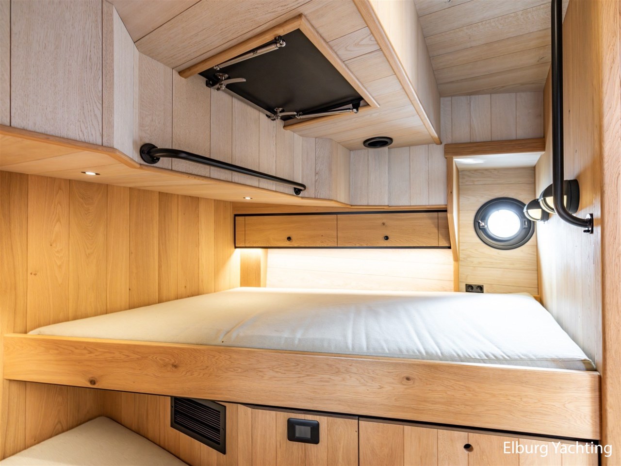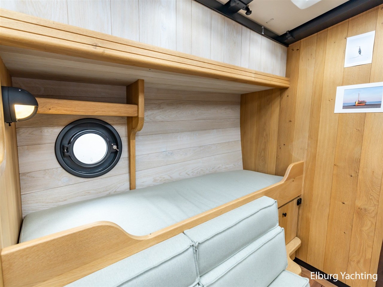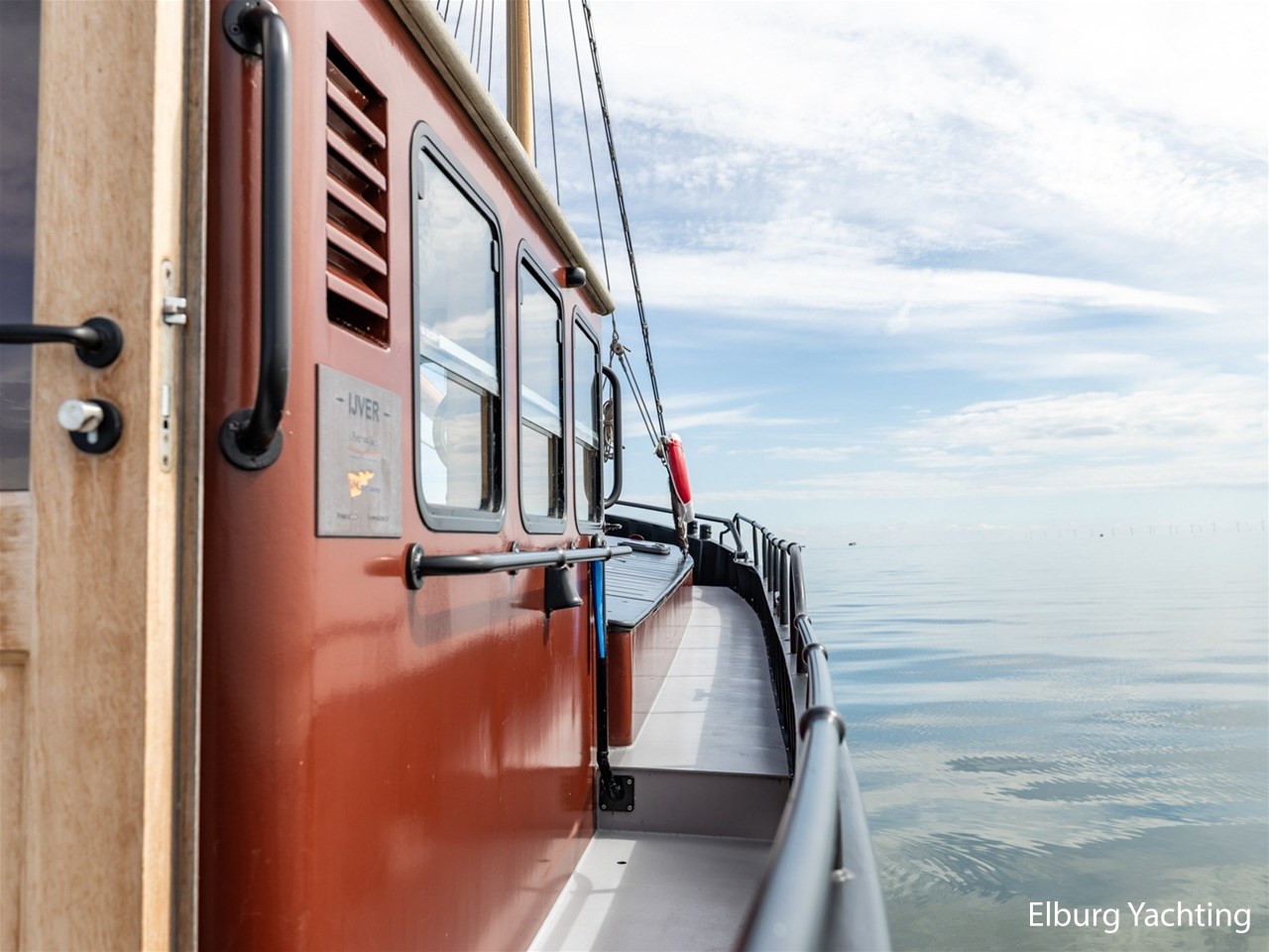 In 2020, a unique journey began at VMG Yachtbuilders with the creation of a truly exceptional yacht, originally known as the “Waddenboot.” The vessel, now named IJver since her christening, laid the foundation for the entire IJver Class fleet. As enthusiasm grew among all involved during the construction process, VMG Yachtbuilders and Olivier van Meer made the decision to establish a dedicated fleet under this name. Throughout the entire process, passion and dedication transformed a vision into a remarkable yacht: The IJver. This yacht is more than just a vessel; it carries childhood memories of sailing through the Dutch, German, and Danish Wadden Sea and coastal waters, woven into its very design. The result is a yacht with the sturdy appearance of a workboat, echoing the lines of a fishing cutter, yet combined with the luxury and comfort of a motor yacht. IJver has a steep bow that gives her presence, yet she doesn’t resemble a purebred cutter, nor does she mirror the polished look of a high-end motor yacht. She is a unique blend of both worlds. Her lines are refined but not overly rounded, giving her a distinctive identity of her own. The interior was designed with both comfort and practicality in mind. The main saloon features removable composite hatches, allowing the space to open up and serve as a generous living area. The owner’s cabin is private and serene, offering a quiet retreat. There is also a dedicated bunk space for children, complete with portholes offering views over the water evoking the spirit of adventure at sea. The fully insulated wheelhouse is ideal for summer cruising, with a retractable roof that invites fresh air and sunlight. For added comfort, the owner’s cabin includes a separate shower and toilet area, as well as air conditioning to ensure a pleasant stay under all conditions. The interior is crafted from high-quality oak, combining both solid wood and veneer, giving the space a warm, timeless character. The combination of natural materials and thoughtful detailing creates an inviting and refined atmosphere throughout the yacht. The sensation of being outside can be fully embraced by removing the roof hatches. Ten removable composite hatches in the saloon provide light, ventilation, and access, while three more above the helm add to the open feel. Six integrated portholes in the hull can be opened to further improve natural airflow and enhance comfort on board. Built to the highest standards of Dutch craftsmanship, the IJver has a hull made of 8 mm aluminum plating, with precisely CNC-cut frames spaced every 400 mm for optimal structural integrity. The deck and superstructure are constructed from 6 mm aluminum, and the structural bulkheads share the same thickness for enhanced rigidity. A solid 50 mm keel beam runs from the skeg to the bow, forming the spine of the yacht. Reinforcements of 10 mm plating support the mast and anchor winch, while a fully insulated stainless steel anchor chain pipe is integrated into the hull for durability and sound reduction. The rudder stock is crafted from solid 60 mm aluminum, and a robust 60 x 30 mm half-round rubbing strake runs the full length of the hull to provide additional protection. IJver is equipped with Seakeeper 9 Zero Speed stabilizers that deliver exceptional stability even when the yacht is stationary. These advanced systems significantly reduce rolling motion, enhancing onboard comfort whether cruising or anchored. The Seakeeper ensures a smooth, stable experience, allowing passengers to relax and enjoy their time on board. The mast is traditionally built from laminated Oregon pine by SRF and freshly painted in 2024. It features an electric lowering system, allowing the yacht to pass under bridges with a minimum clearance height of just 3.09 meters, while the full mast height reaches 11.5 meters. This makes the vessel highly versatile for inland and coastal cruising. The yacht is powered by a high-quality propulsion system, featuring an oil-lubricated propeller shaft from Blokland and a 25” five-blade bronze propeller with a rope cutter. A robust Blokland keel cooler and closed-loop cooling systems contribute to the vessel’s reliability and low maintenance profile. Sustainability and smart engineering go hand in hand. Two solar panels charge the alarm and monitoring systems, while the onboard systems are managed by a JSM Medemblik PLC control system, offering full operational oversight and safety. The yacht features Neptune Excellent mattresses with slatted bases, atmospheric strip and spot lighting in 24V (fully dimmable), a galley finished with a Corian countertop, and floors constructed on aluminum frames with mahogany finishes. This vessel also includes practical comforts such as an electrically operated transom door and swim ladder, fore and aft deck wash pumps, and extensive ventilation options including Lewmar hatches, multiple portholes, and composite hatches throughout. Whether you’re setting out on long European voyages with your family or enjoying a weekend getaway with friends, IJver offers everything needed for unforgettable journeys. This yacht is offered for sale in exclusive collaboration with Yachtfull International For inquiries or to arrange a visit, you are welcome 7 days a week at Elburg Yachting.