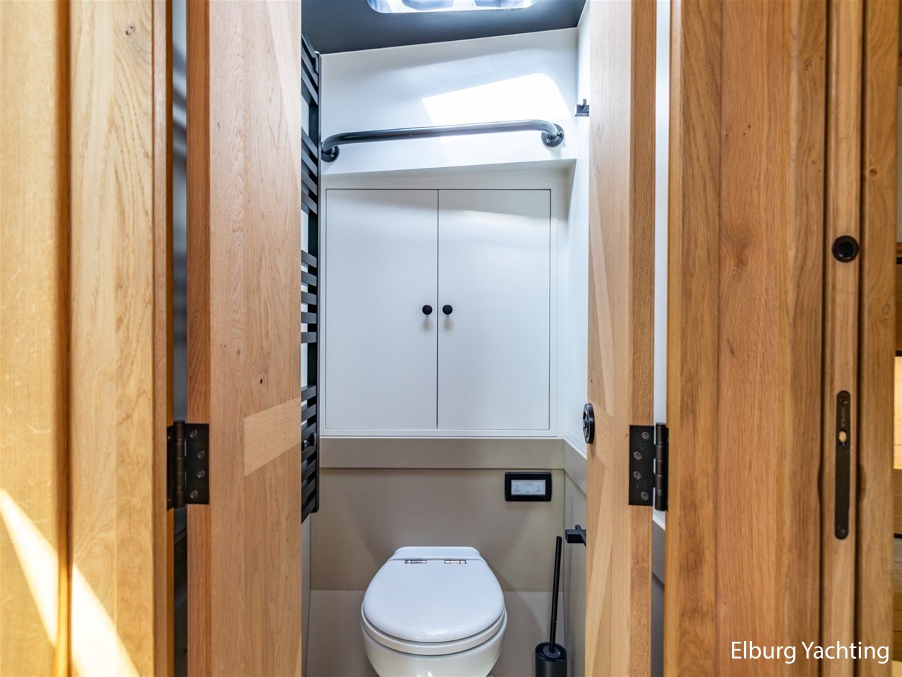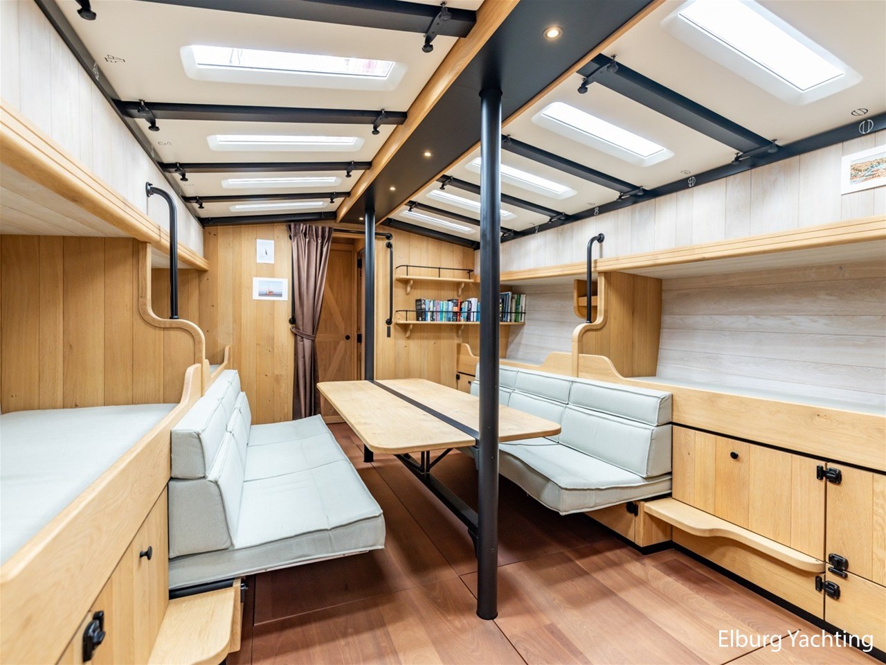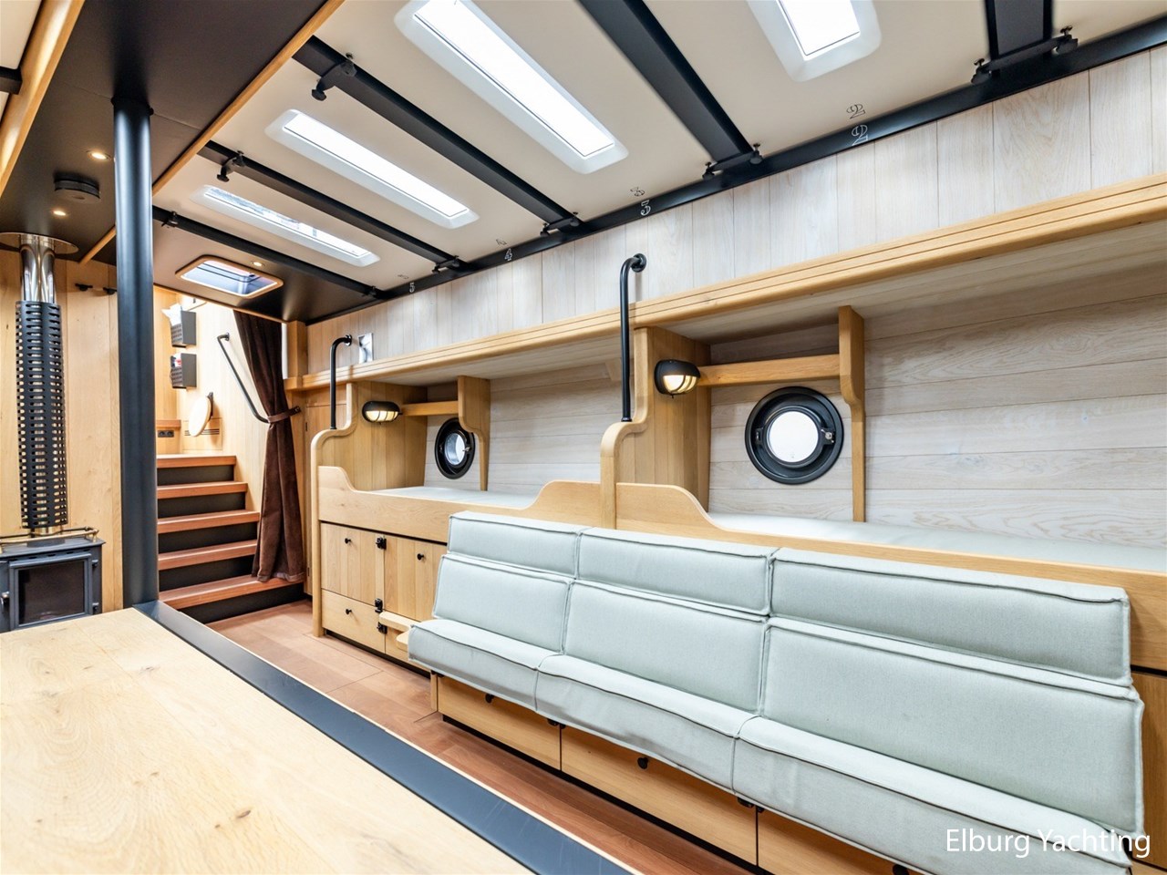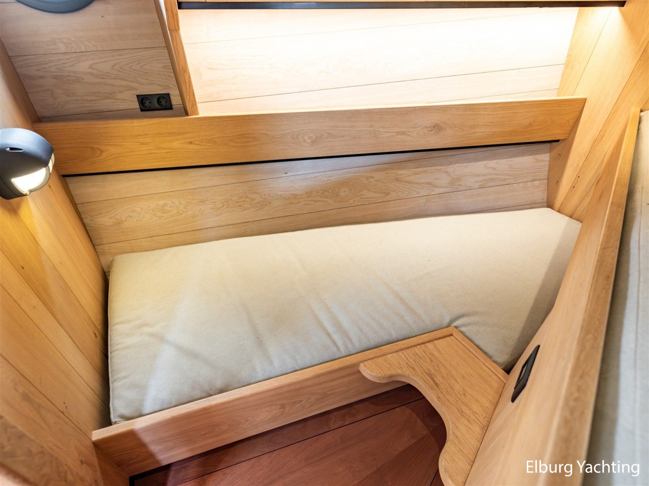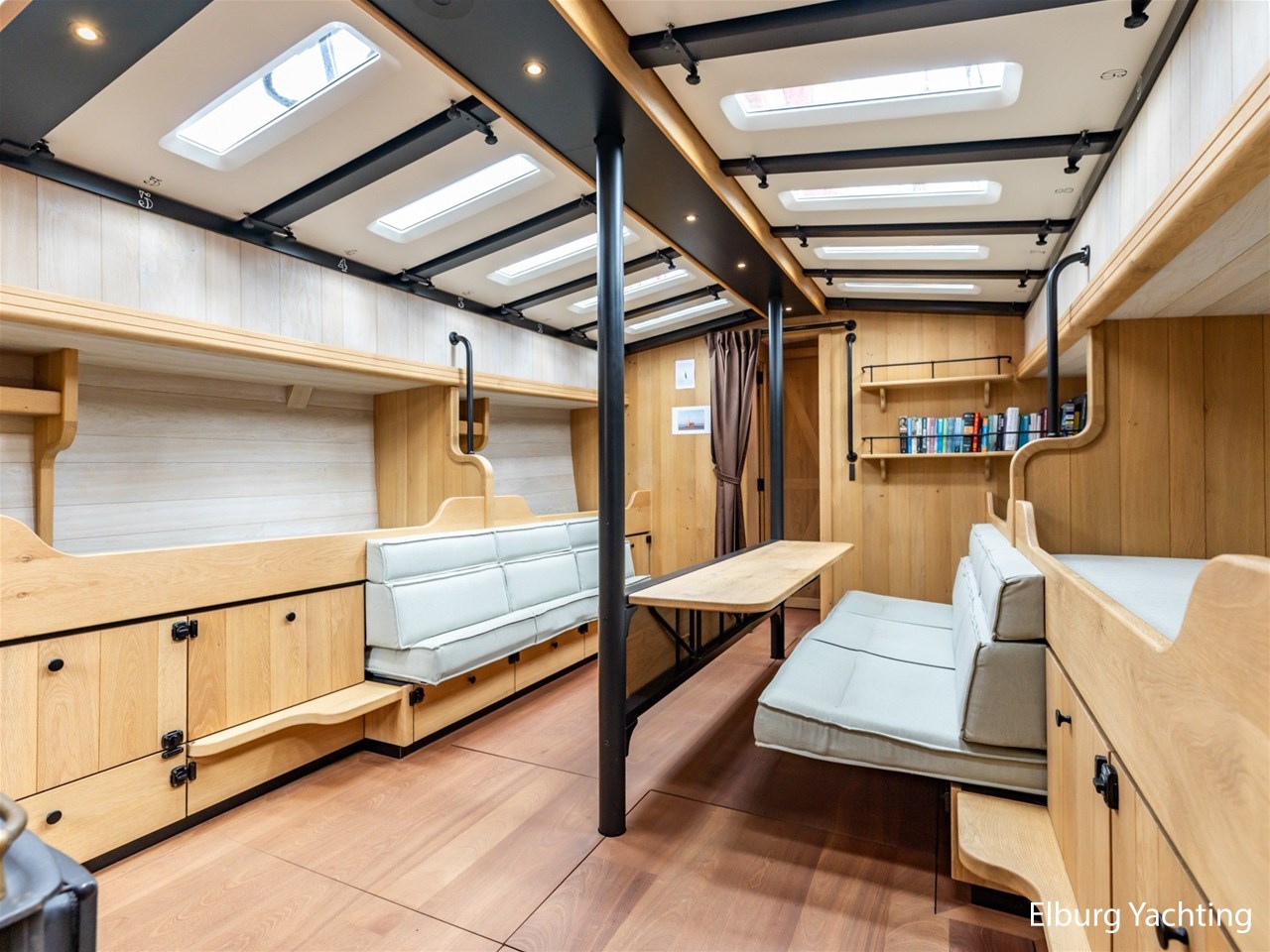 In 2020, a unique journey began at VMG Yachtbuilders with the creation of a truly exceptional yacht, originally known as the “Waddenboot.” The vessel, now named IJver since her christening, laid the foundation for the entire IJver Class fleet. As enthusiasm grew among all involved during the construction process, VMG Yachtbuilders and Olivier van Meer made the decision to establish a dedicated fleet under this name. Throughout the entire process, passion and dedication transformed a vision into a remarkable yacht: The IJver. This yacht is more than just a vessel; it carries childhood memories of sailing through the Dutch, German, and Danish Wadden Sea and coastal waters, woven into its very design. The result is a yacht with the sturdy appearance of a workboat, echoing the lines of a fishing cutter, yet combined with the luxury and comfort of a motor yacht. IJver has a steep bow that gives her presence, yet she doesn’t resemble a purebred cutter, nor does she mirror the polished look of a high-end motor yacht. She is a unique blend of both worlds. Her lines are refined but not overly rounded, giving her a distinctive identity of her own. The interior was designed with both comfort and practicality in mind. The main saloon features removable composite hatches, allowing the space to open up and serve as a generous living area. The owner’s cabin is private and serene, offering a quiet retreat. There is also a dedicated bunk space for children, complete with portholes offering views over the water evoking the spirit of adventure at sea. The fully insulated wheelhouse is ideal for summer cruising, with a retractable roof that invites fresh air and sunlight. For added comfort, the owner’s cabin includes a separate shower and toilet area, as well as air conditioning to ensure a pleasant stay under all conditions. The interior is crafted from high-quality oak, combining both solid wood and veneer, giving the space a warm, timeless character. The combination of natural materials and thoughtful detailing creates an inviting and refined atmosphere throughout the yacht. The sensation of being outside can be fully embraced by removing the roof hatches. Ten removable composite hatches in the saloon provide light, ventilation, and access, while three more above the helm add to the open feel. Six integrated portholes in the hull can be opened to further improve natural airflow and enhance comfort on board. Built to the highest standards of Dutch craftsmanship, the IJver has a hull made of 8 mm aluminum plating, with precisely CNC-cut frames spaced every 400 mm for optimal structural integrity. The deck and superstructure are constructed from 6 mm aluminum, and the structural bulkheads share the same thickness for enhanced rigidity. A solid 50 mm keel beam runs from the skeg to the bow, forming the spine of the yacht. Reinforcements of 10 mm plating support the mast and anchor winch, while a fully insulated stainless steel anchor chain pipe is integrated into the hull for durability and sound reduction. The rudder stock is crafted from solid 60 mm aluminum, and a robust 60 x 30 mm half-round rubbing strake runs the full length of the hull to provide additional protection. IJver is equipped with Seakeeper 9 Zero Speed stabilizers that deliver exceptional stability even when the yacht is stationary. These advanced systems significantly reduce rolling motion, enhancing onboard comfort whether cruising or anchored. The Seakeeper ensures a smooth, stable experience, allowing passengers to relax and enjoy their time on board. The mast is traditionally built from laminated Oregon pine by SRF and freshly painted in 2024. It features an electric lowering system, allowing the yacht to pass under bridges with a minimum clearance height of just 3.09 meters, while the full mast height reaches 11.5 meters. This makes the vessel highly versatile for inland and coastal cruising. The yacht is powered by a high-quality propulsion system, featuring an oil-lubricated propeller shaft from Blokland and a 25” five-blade bronze propeller with a rope cutter. A robust Blokland keel cooler and closed-loop cooling systems contribute to the vessel’s reliability and low maintenance profile. Sustainability and smart engineering go hand in hand. Two solar panels charge the alarm and monitoring systems, while the onboard systems are managed by a JSM Medemblik PLC control system, offering full operational oversight and safety. The yacht features Neptune Excellent mattresses with slatted bases, atmospheric strip and spot lighting in 24V (fully dimmable), a galley finished with a Corian countertop, and floors constructed on aluminum frames with mahogany finishes. This vessel also includes practical comforts such as an electrically operated transom door and swim ladder, fore and aft deck wash pumps, and extensive ventilation options including Lewmar hatches, multiple portholes, and composite hatches throughout. Whether you’re setting out on long European voyages with your family or enjoying a weekend getaway with friends, IJver offers everything needed for unforgettable journeys. This yacht is offered for sale in exclusive collaboration with Yachtfull International For inquiries or to arrange a visit, you are welcome 7 days a week at Elburg Yachting.