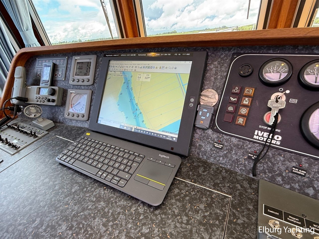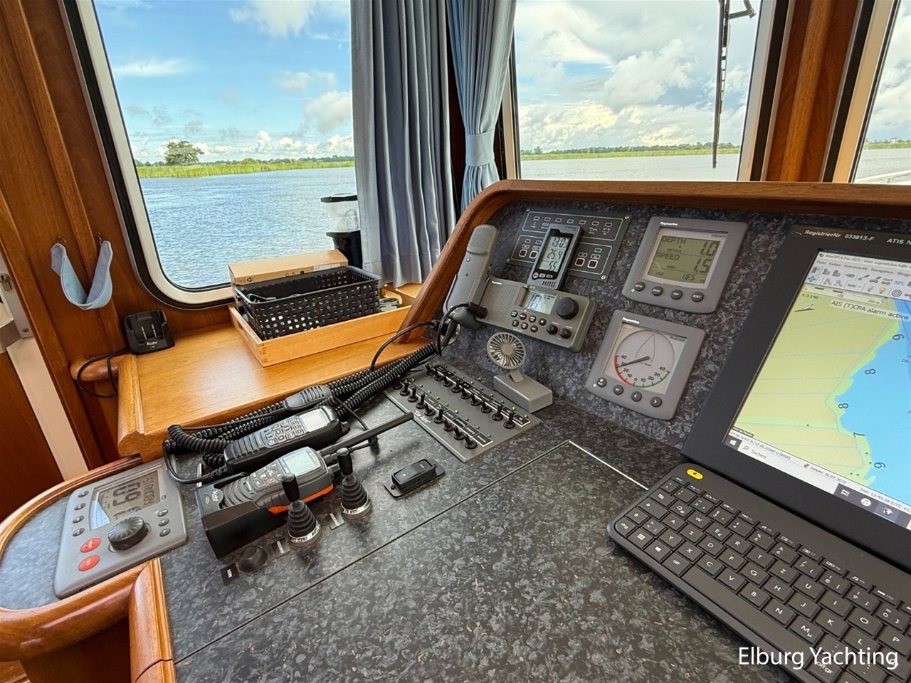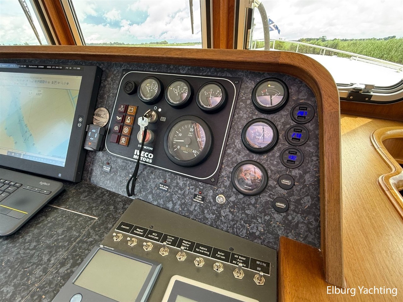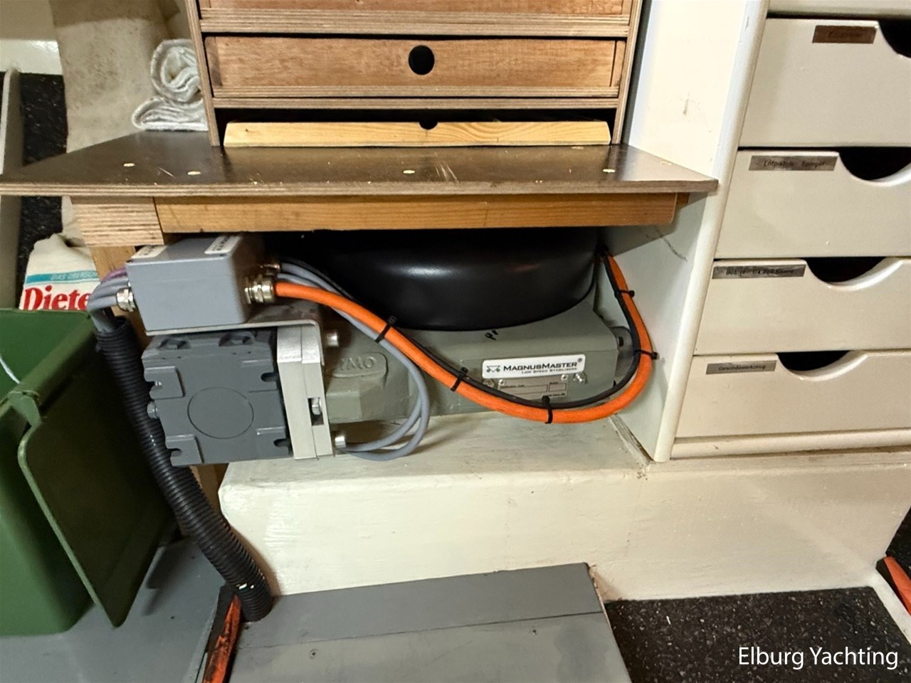 The boat features include a Kabola central heating system, 2 x DMS electric stabilisers, Electric bow and stern thruster, Stentec, PC-Navigo navigation software, Nauticast AIS, Electric anchor winch with approx. 50m of chain and a 35kg heavy stainless steel anchor, Fisher Panda 8Kw generator.