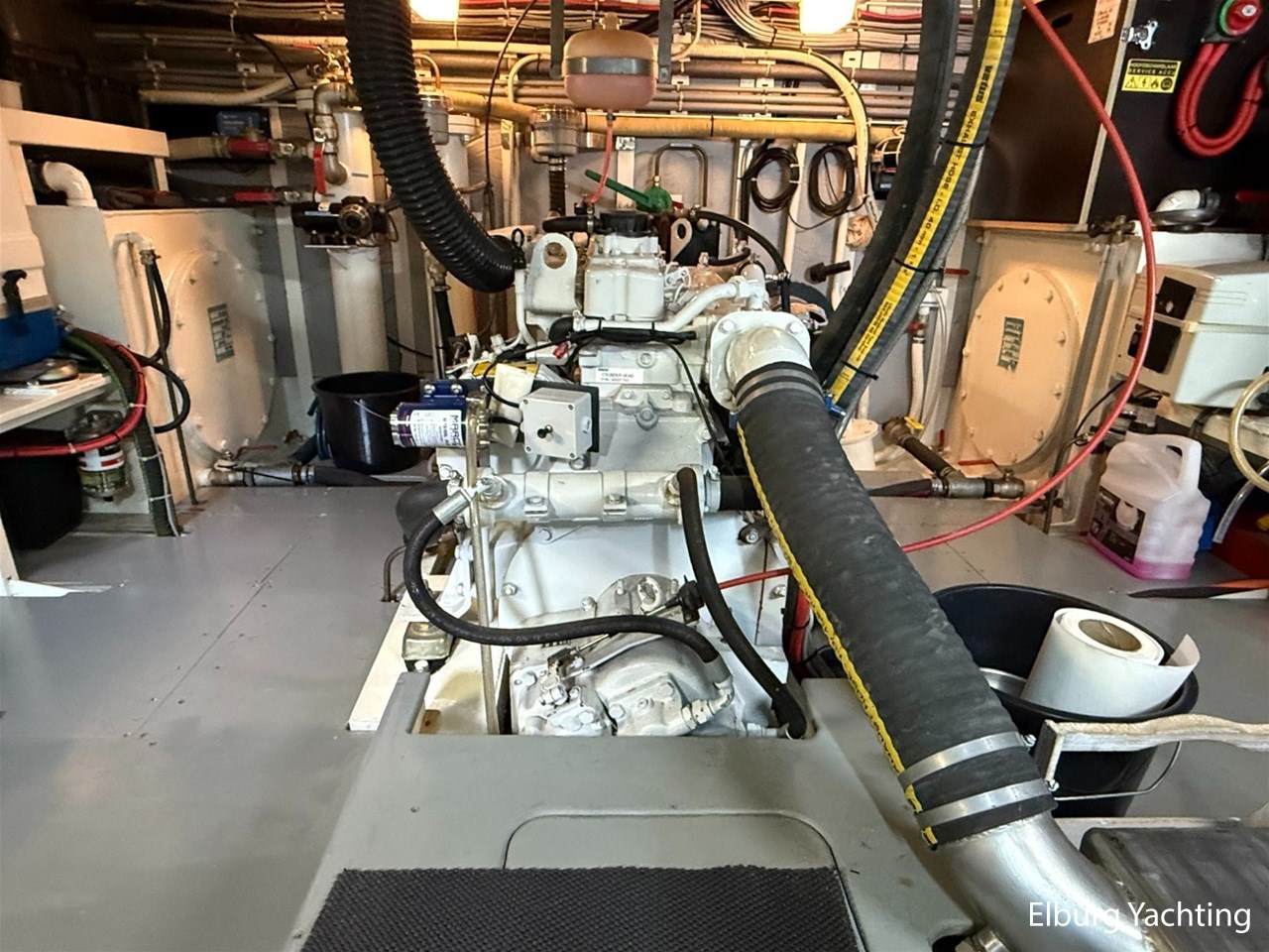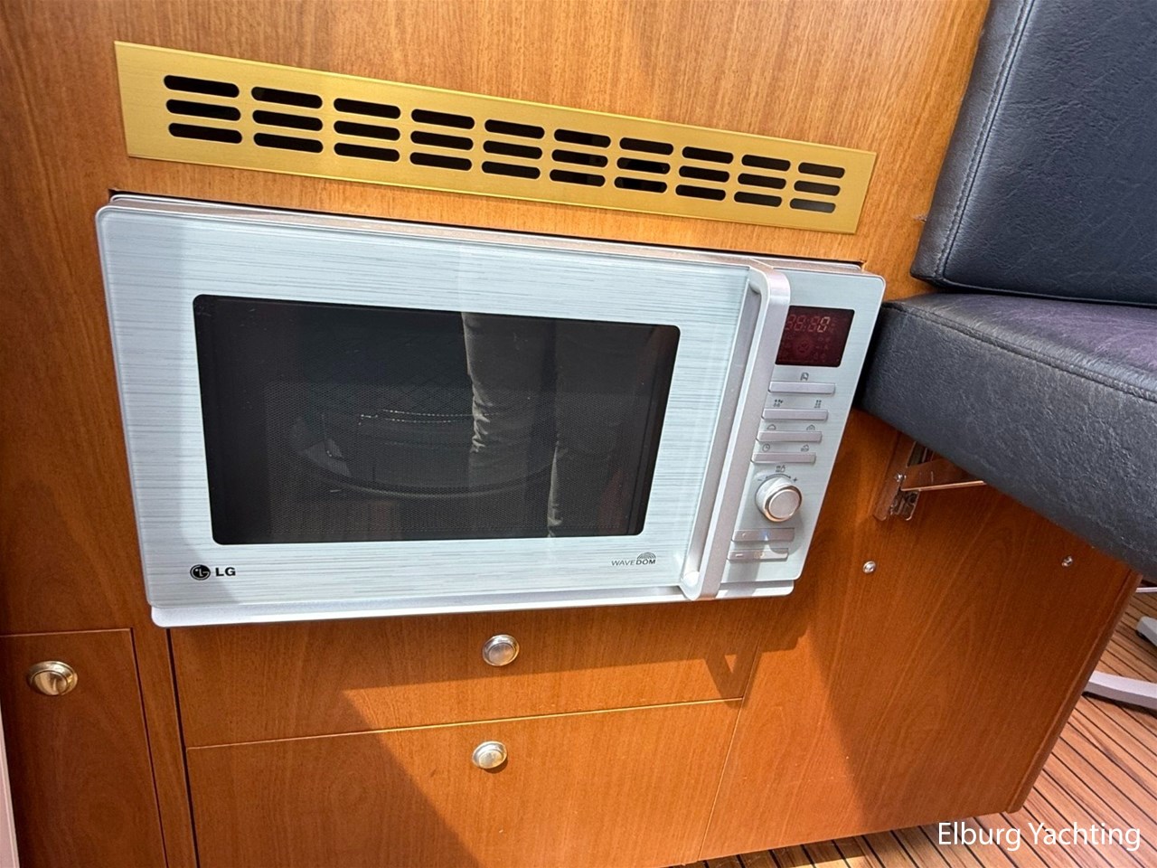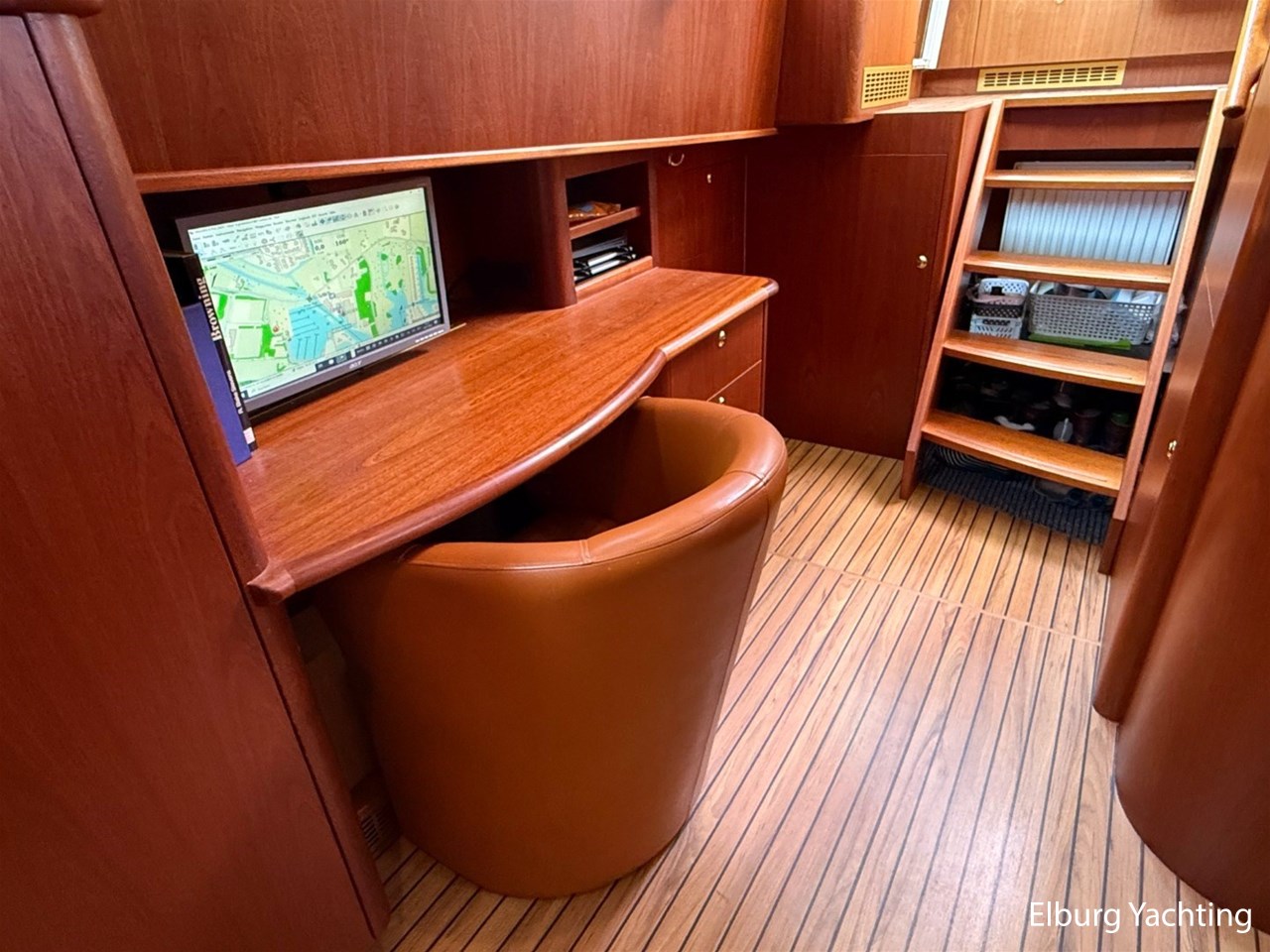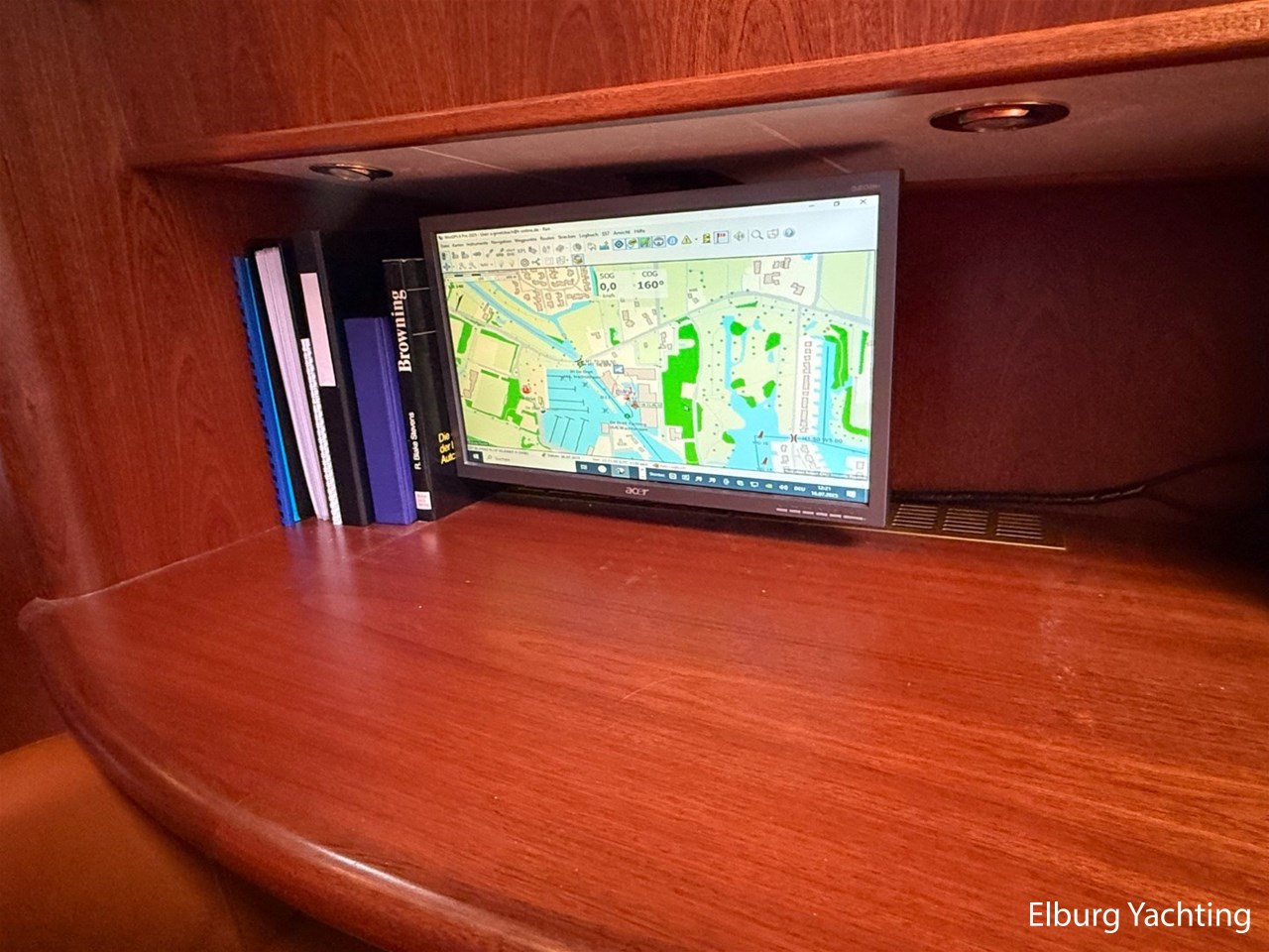 The boat features include a Kabola central heating system, 2 x DMS electric stabilisers, Electric bow and stern thruster, Stentec, PC-Navigo navigation software, Nauticast AIS, Electric anchor winch with approx. 50m of chain and a 35kg heavy stainless steel anchor, Fisher Panda 8Kw generator.