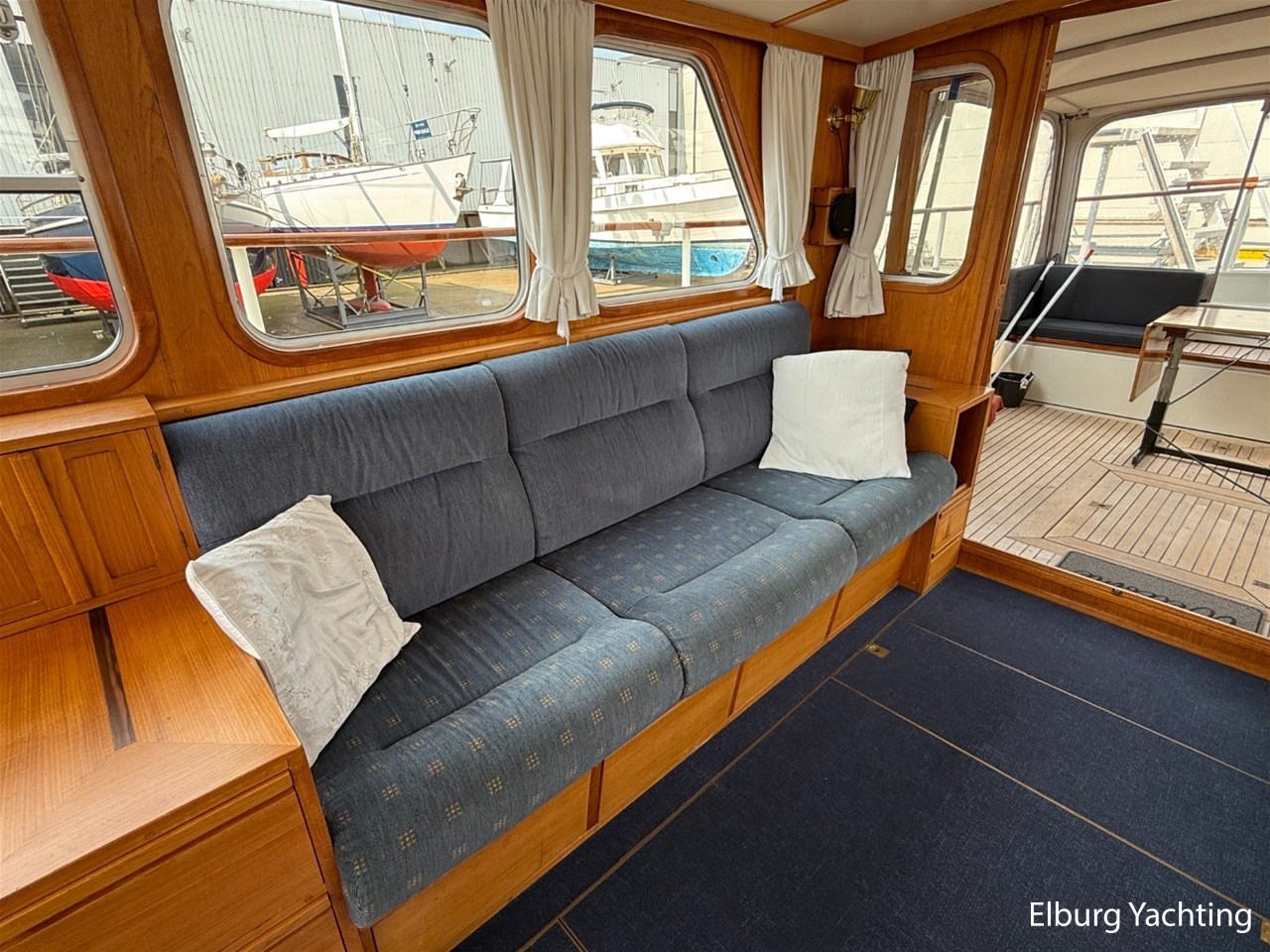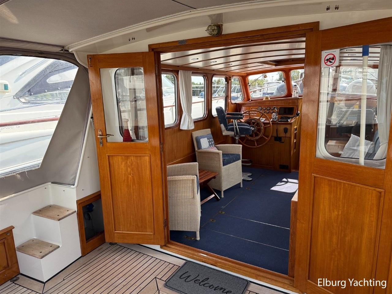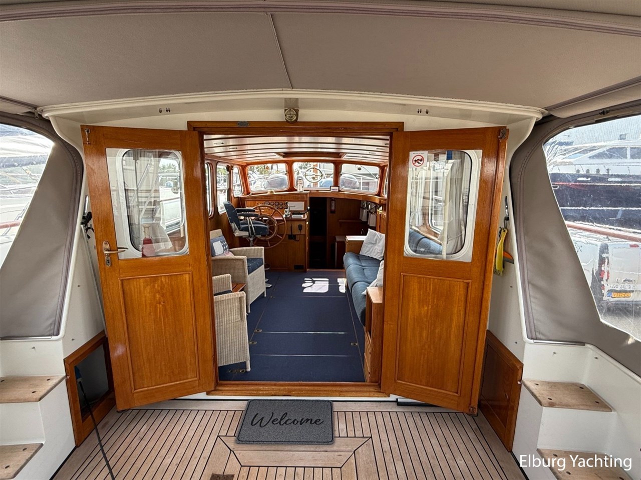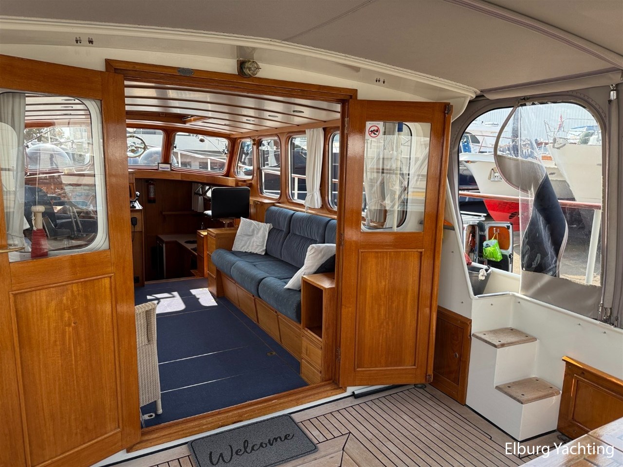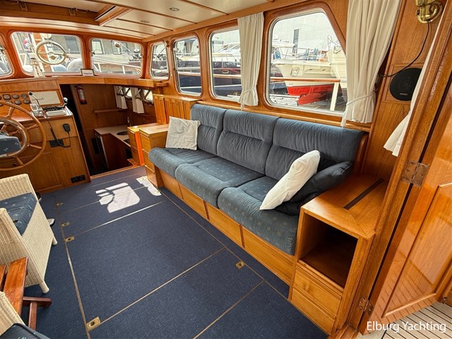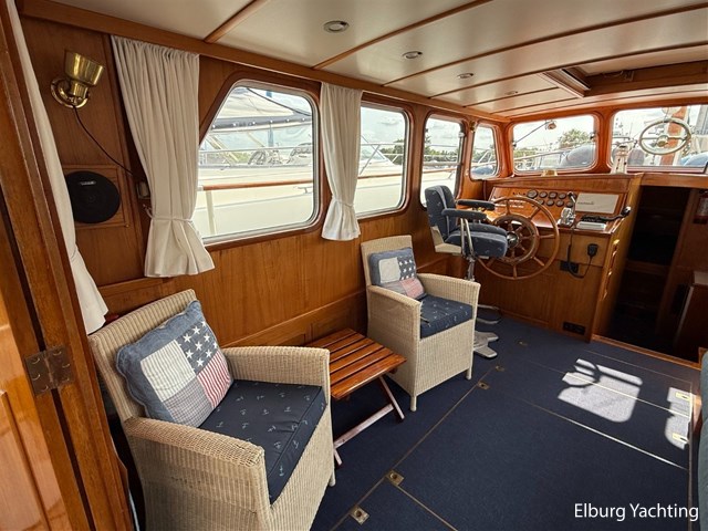 Beautiful classic De Ruiter Kruiser 12.50 Open Cockpit offered by an owner who has put a lot of love into the yacht. This De Ruiter Kruiser was built in 1979 in Hoogeveen by the renowned De Ruiter shipyard. The yacht is equipped with a powerful 6-cylinder Ford diesel engine that delivers 110 hp. In 2006, the diesel engine underwent a professional overhaul and the engine has been professionally maintained annually by a marine engineer. Due to the level connection between the saloon and the cockpit (open cockpit), the yacht has a clearance height of appr. 2.45 metres, allowing it to access a large sailing area. In recent years, considerable investments have been made in the yacht. Among other things, a new boiler was installed in 2018, the hull was completely painted in a 2k system in 2019, the superstructure was completely painted in a 2k system in 2020, and the woodwork outside and in the cockpit was varnished. In 2020, a new cockpit tent with stainless steel frame (with mosquito nets and sunshade) was installed, in 2021 new carpet was laid inside, in 2022 a new winter tent will be installed and the yacht's gas installation is inspected every three years. For questions and/or to make an appointment, you are welcome at Elburg Yachting 7 days a week.