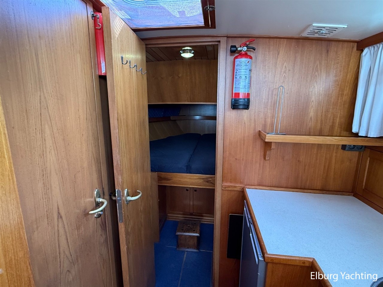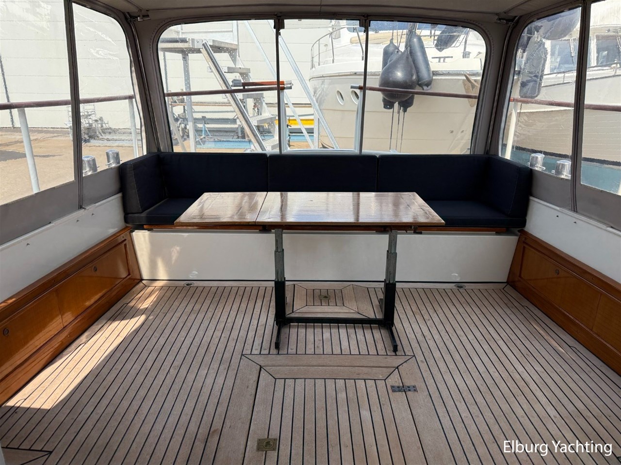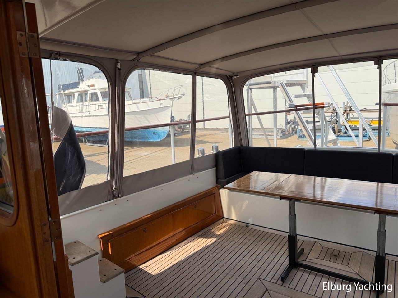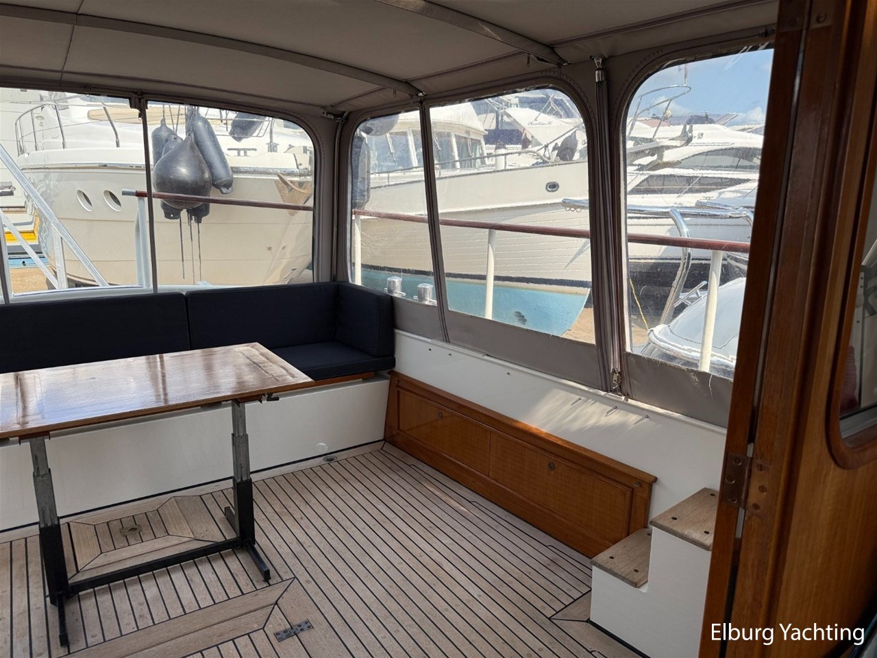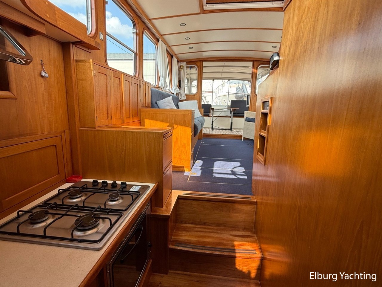 Beautiful classic De Ruiter Kruiser 12.50 Open Cockpit offered by an owner who has put a lot of love into the yacht. This De Ruiter Kruiser was built in 1979 in Hoogeveen by the renowned De Ruiter shipyard. The yacht is equipped with a powerful 6-cylinder Ford diesel engine that delivers 110 hp. In 2006, the diesel engine underwent a professional overhaul and the engine has been professionally maintained annually by a marine engineer. Due to the level connection between the saloon and the cockpit (open cockpit), the yacht has a clearance height of appr. 2.45 metres, allowing it to access a large sailing area. In recent years, considerable investments have been made in the yacht. Among other things, a new boiler was installed in 2018, the hull was completely painted in a 2k system in 2019, the superstructure was completely painted in a 2k system in 2020, and the woodwork outside and in the cockpit was varnished. In 2020, a new cockpit tent with stainless steel frame (with mosquito nets and sunshade) was installed, in 2021 new carpet was laid inside, in 2022 a new winter tent will be installed and the yacht's gas installation is inspected every three years. For questions and/or to make an appointment, you are welcome at Elburg Yachting 7 days a week.