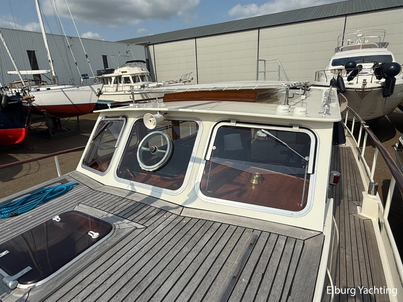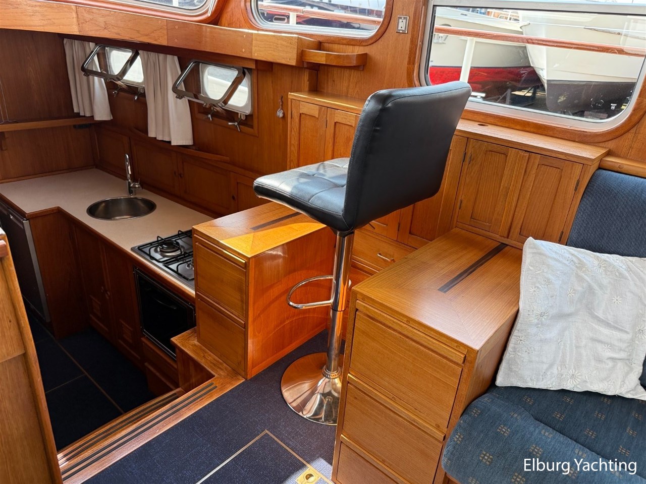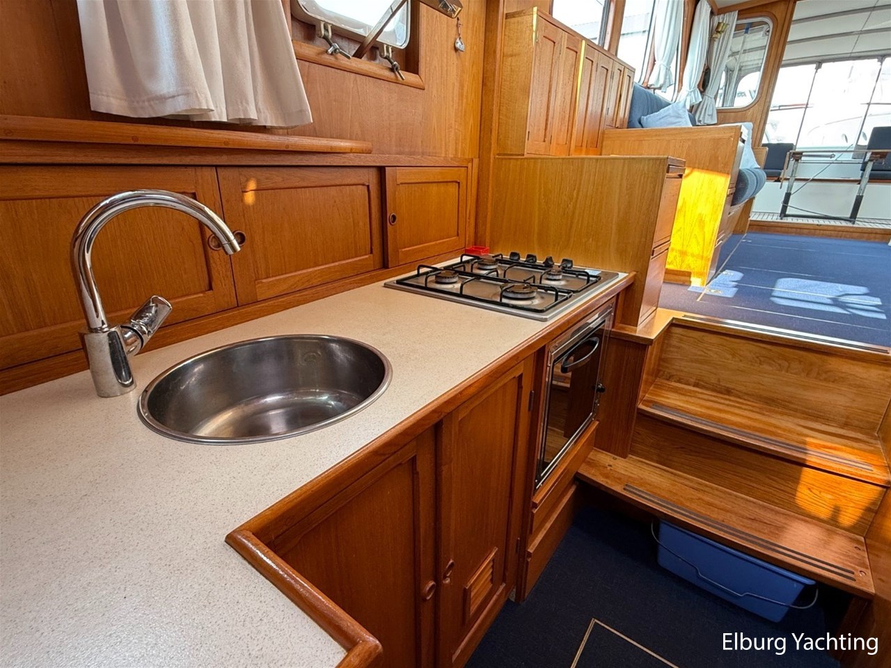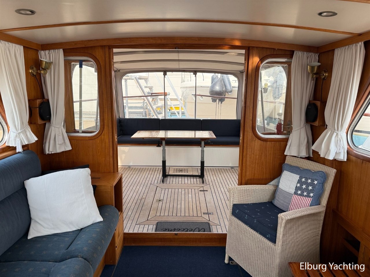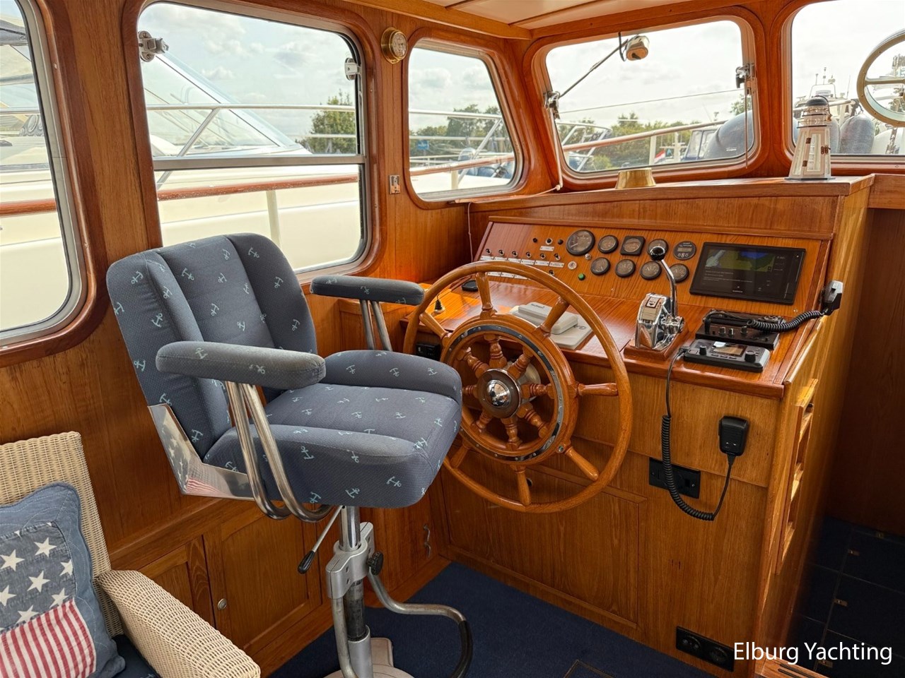Beautiful classic De Ruiter Kruiser 12.50 Open Cockpit offered by an owner who has put a lot of love into the yacht. This De Ruiter Kruiser was built in 1979 in Hoogeveen by the renowned De Ruiter shipyard. The yacht is equipped with a powerful 6-cylinder Ford diesel engine that delivers 110 hp. In 2006, the diesel engine underwent a professional overhaul and the engine has been professionally maintained annually by a marine engineer. Due to the level connection between the saloon and the cockpit (open cockpit), the yacht has a clearance height of appr. 2.45 metres, allowing it to access a large sailing area. In recent years, considerable investments have been made in the yacht. Among other things, a new boiler was installed in 2018, the hull was completely painted in a 2k system in 2019, the superstructure was completely painted in a 2k system in 2020, and the woodwork outside and in the cockpit was varnished. In 2020, a new cockpit tent with stainless steel frame (with mosquito nets and sunshade) was installed, in 2021 new carpet was laid inside, in 2022 a new winter tent will be installed and the yacht's gas installation is inspected every three years. For questions and/or to make an appointment, you are welcome at Elburg Yachting 7 days a week.