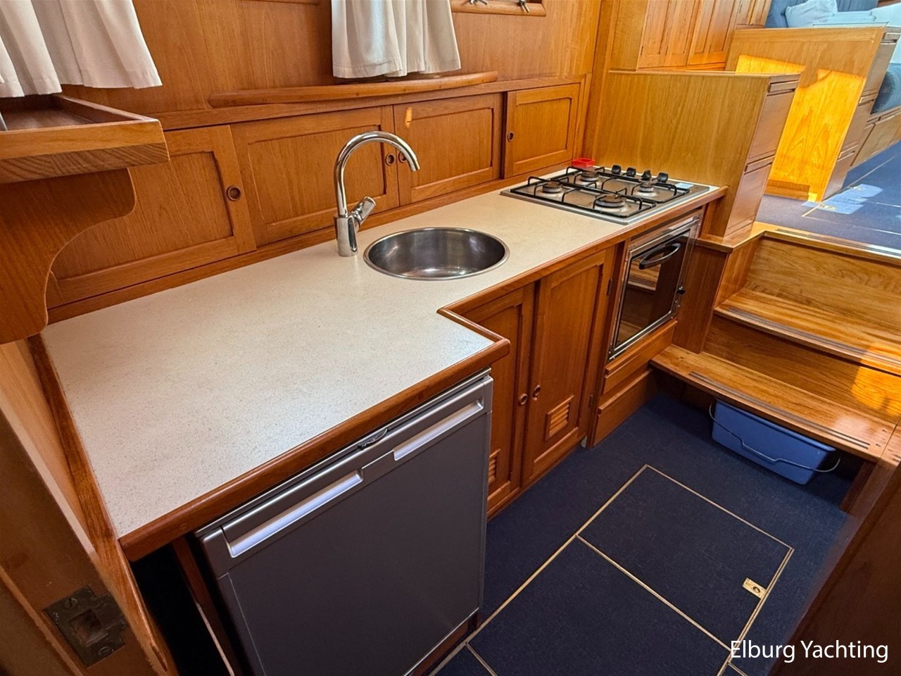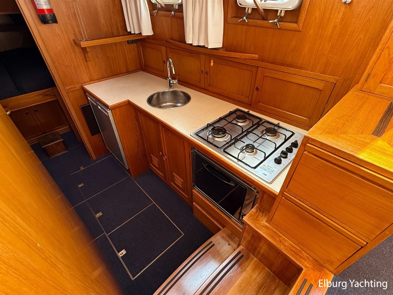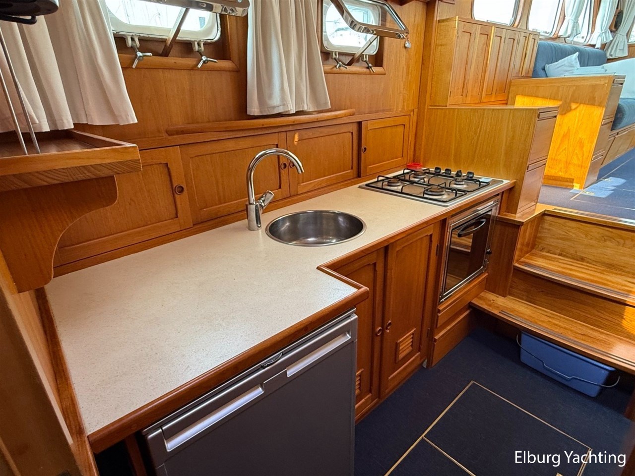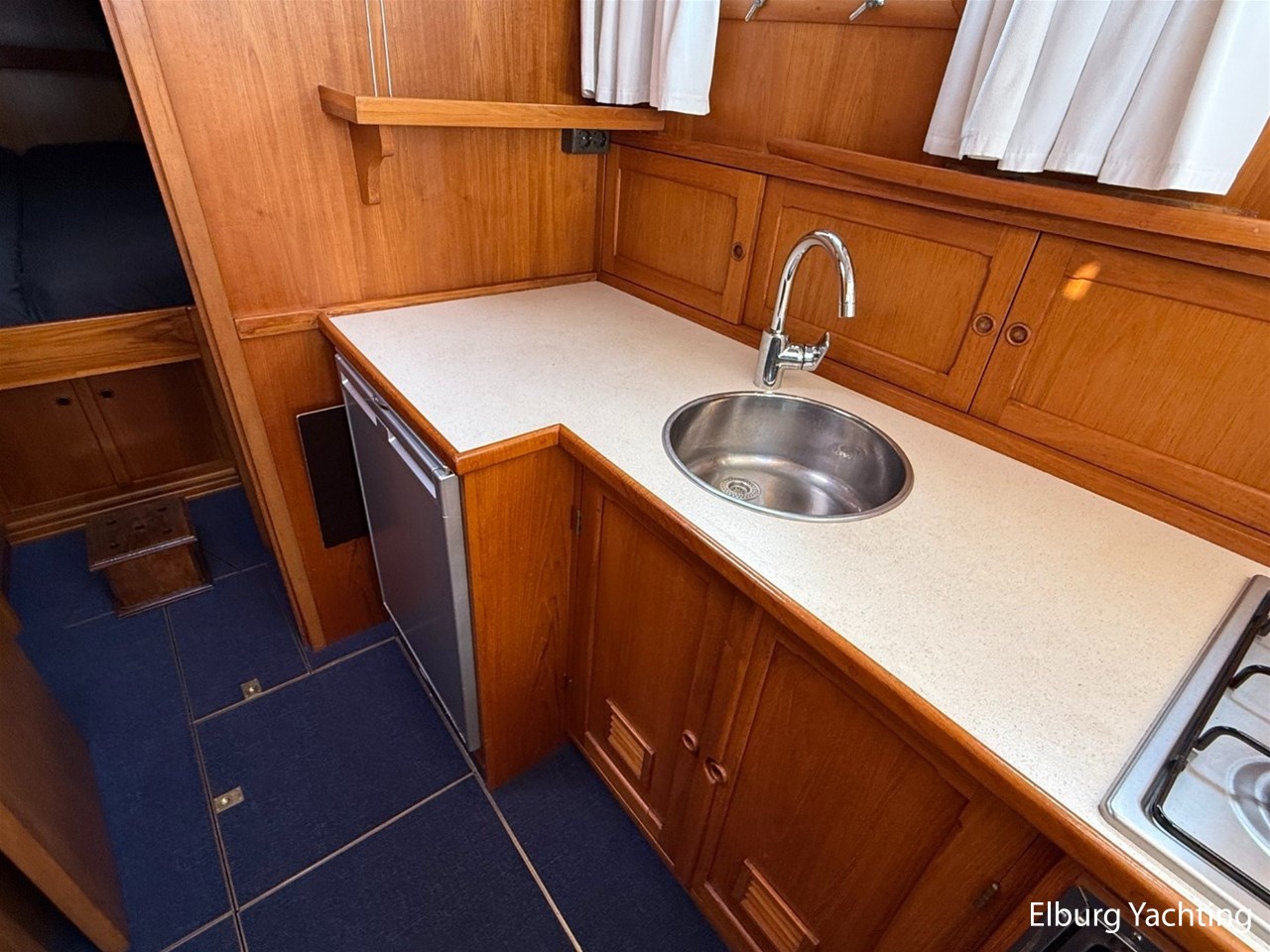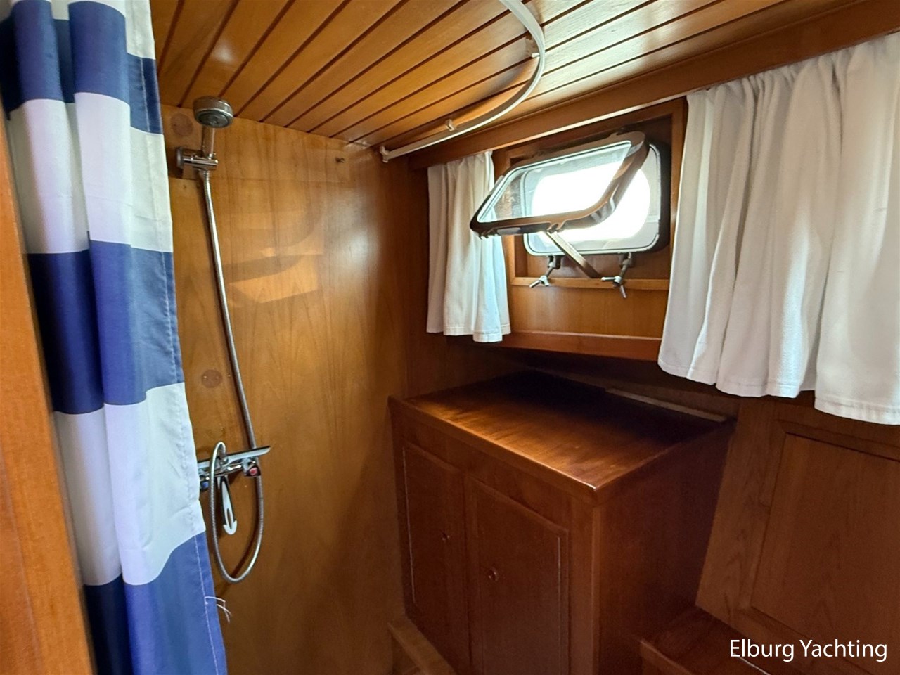 Beautiful classic De Ruiter Kruiser 12.50 Open Cockpit offered by an owner who has put a lot of love into the yacht. This De Ruiter Kruiser was built in 1979 in Hoogeveen by the renowned De Ruiter shipyard. The yacht is equipped with a powerful 6-cylinder Ford diesel engine that delivers 110 hp. In 2006, the diesel engine underwent a professional overhaul and the engine has been professionally maintained annually by a marine engineer. Due to the level connection between the saloon and the cockpit (open cockpit), the yacht has a clearance height of appr. 2.45 metres, allowing it to access a large sailing area. In recent years, considerable investments have been made in the yacht. Among other things, a new boiler was installed in 2018, the hull was completely painted in a 2k system in 2019, the superstructure was completely painted in a 2k system in 2020, and the woodwork outside and in the cockpit was varnished. In 2020, a new cockpit tent with stainless steel frame (with mosquito nets and sunshade) was installed, in 2021 new carpet was laid inside, in 2022 a new winter tent will be installed and the yacht's gas installation is inspected every three years. For questions and/or to make an appointment, you are welcome at Elburg Yachting 7 days a week.
