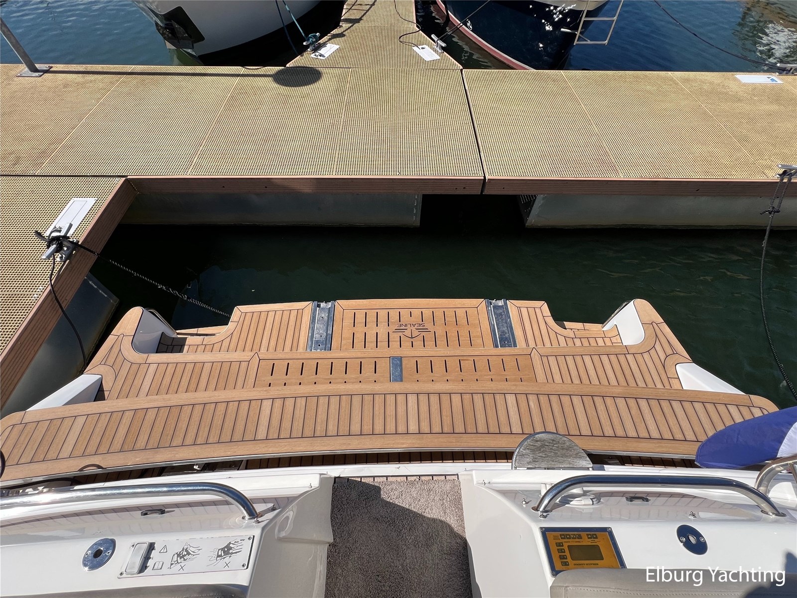 - Teak in open cockpit + synthetic teak on bathing platform and side decks (2024)