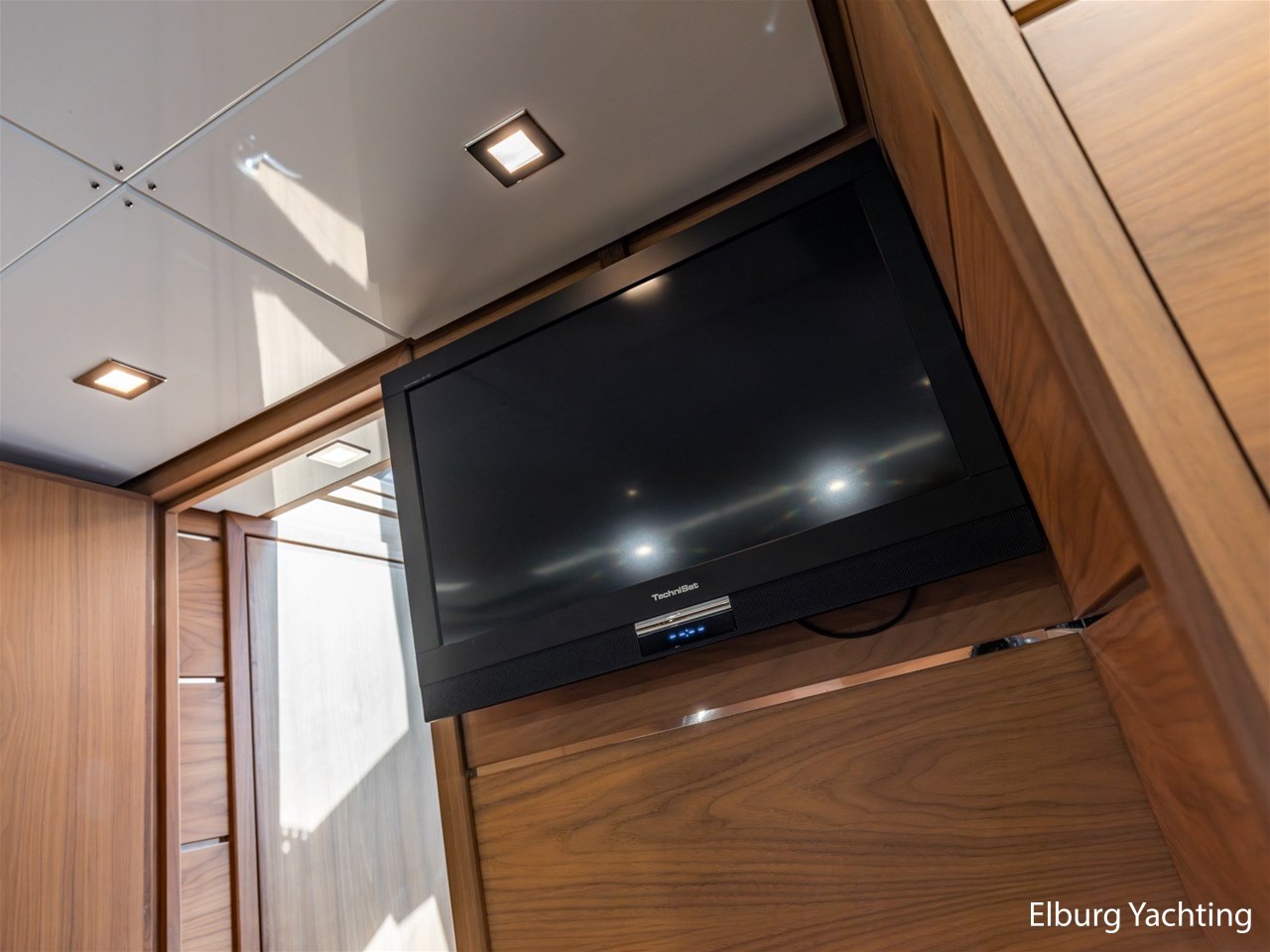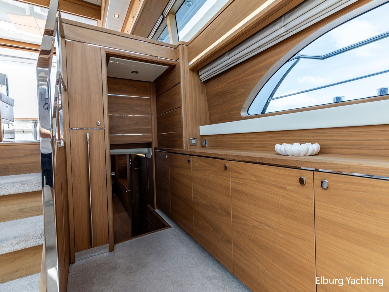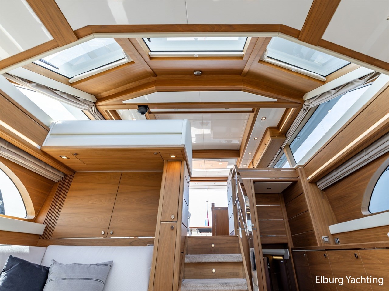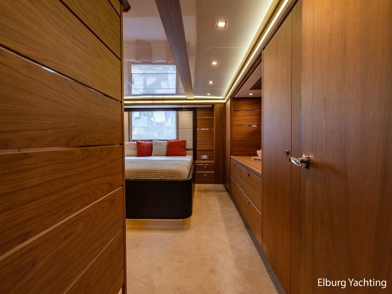 - Modern interior with Nutwood veneer with stainless steel trim and high gloss ceiling panels