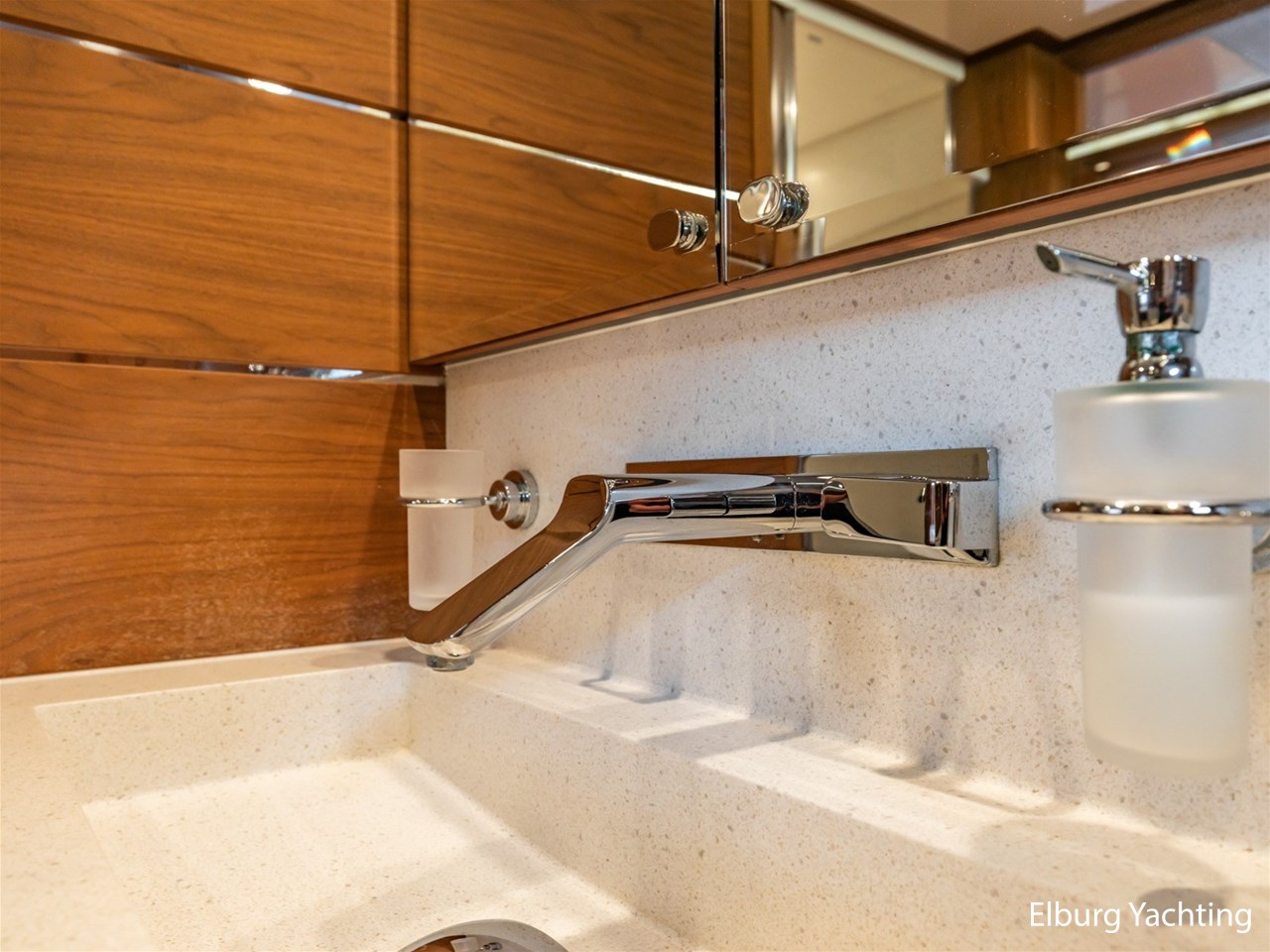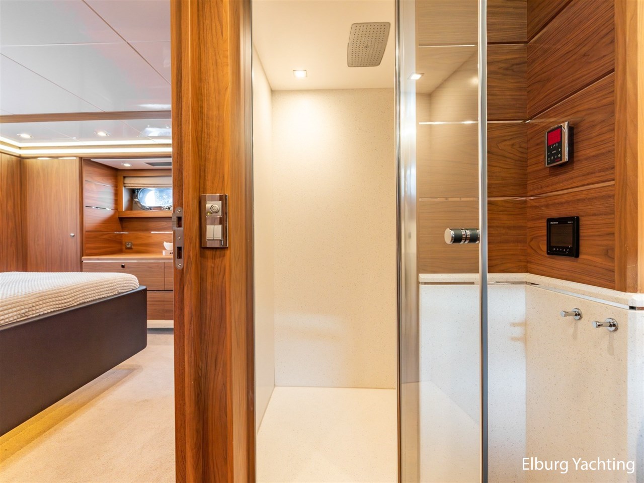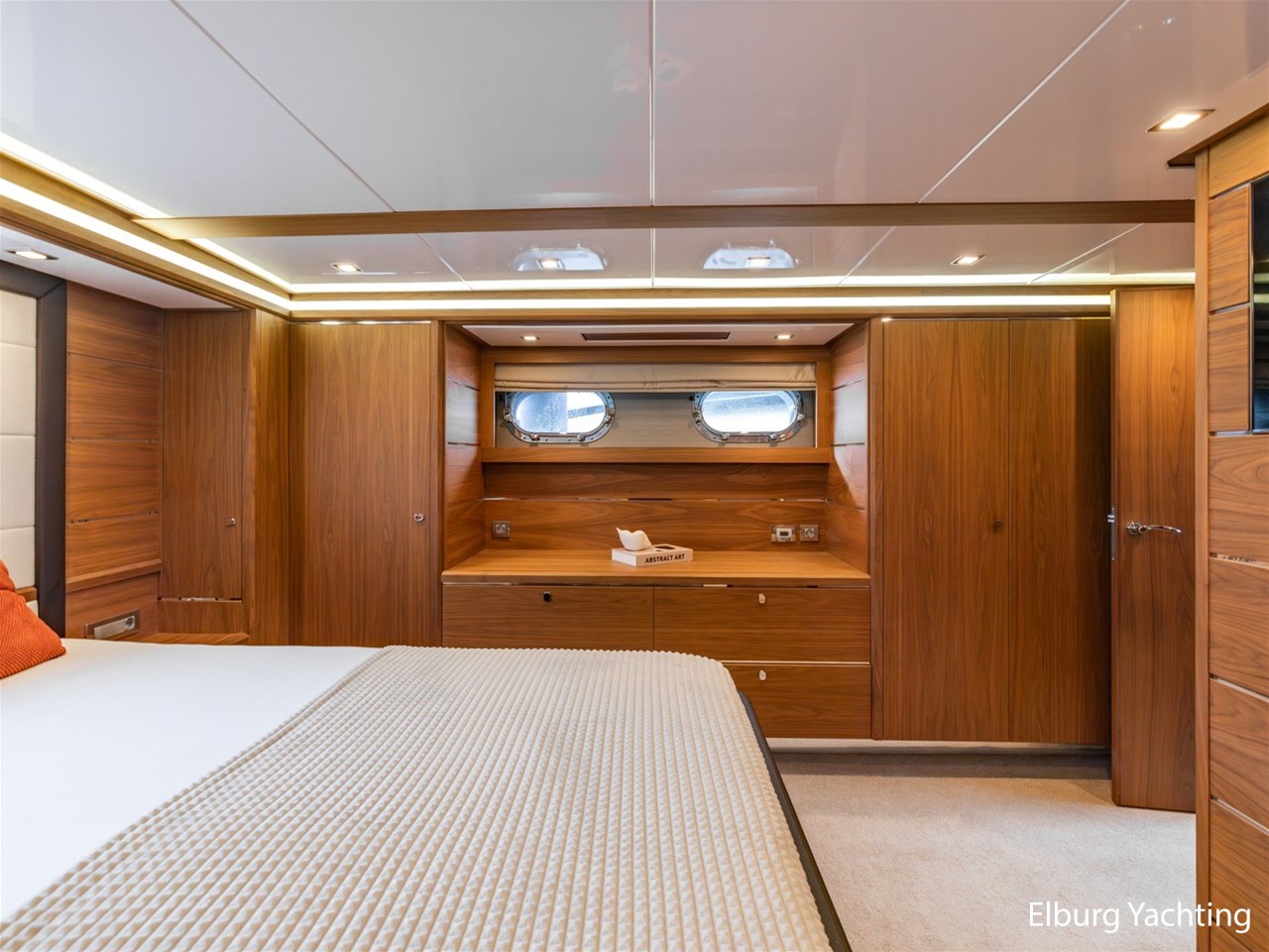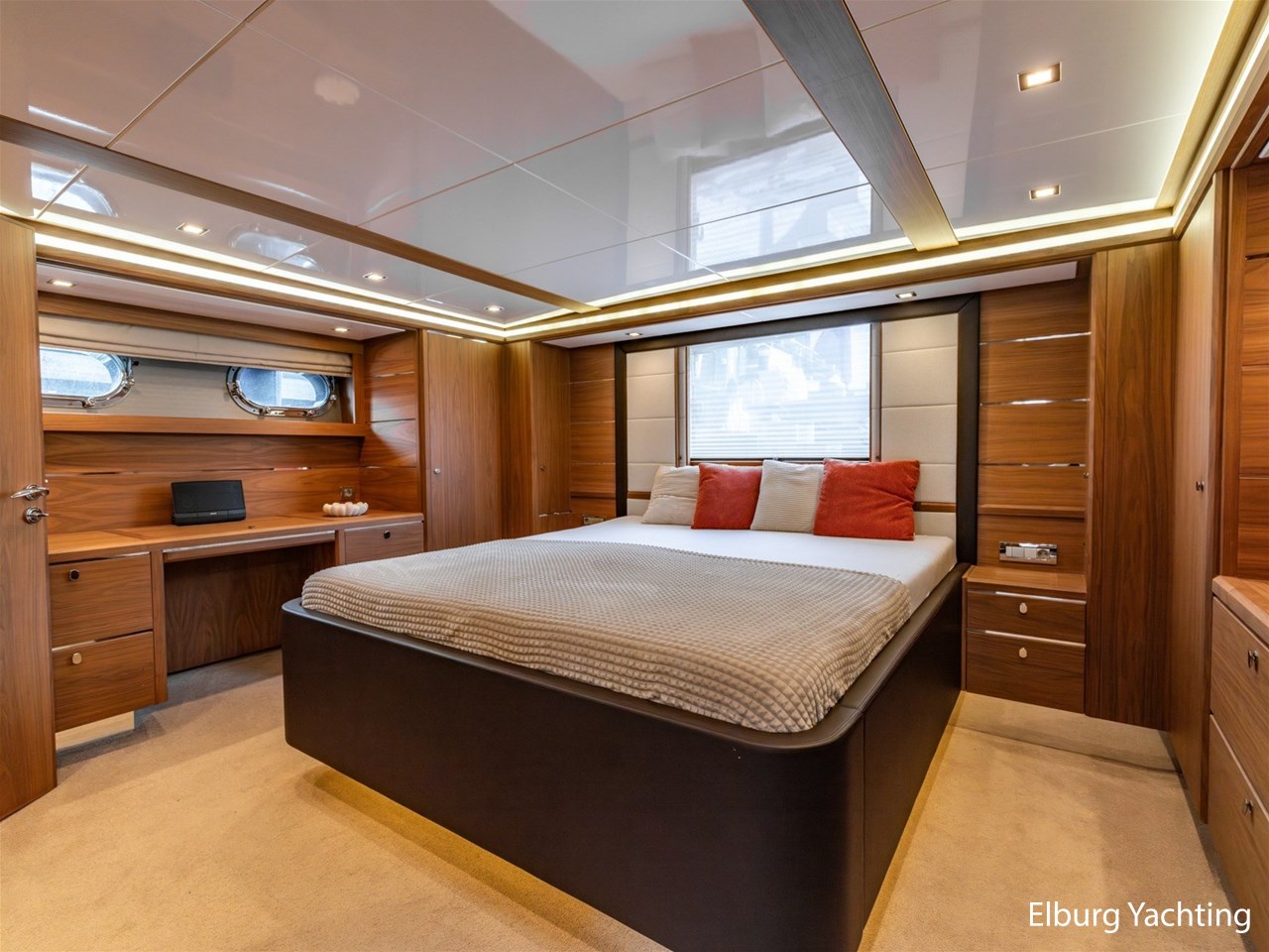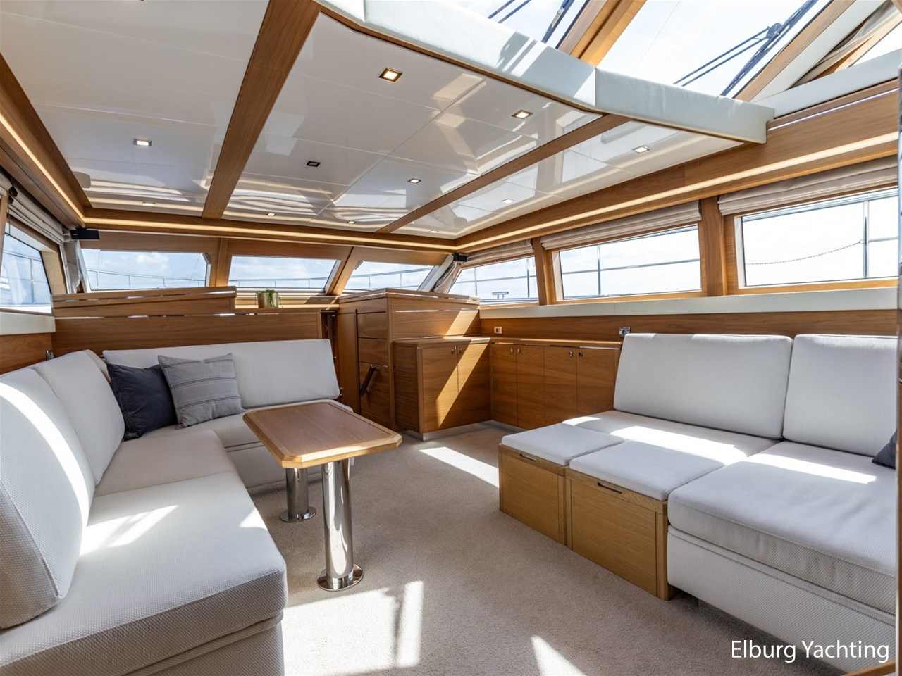 - Modern interior with Nutwood veneer with stainless steel trim and high gloss ceiling panels