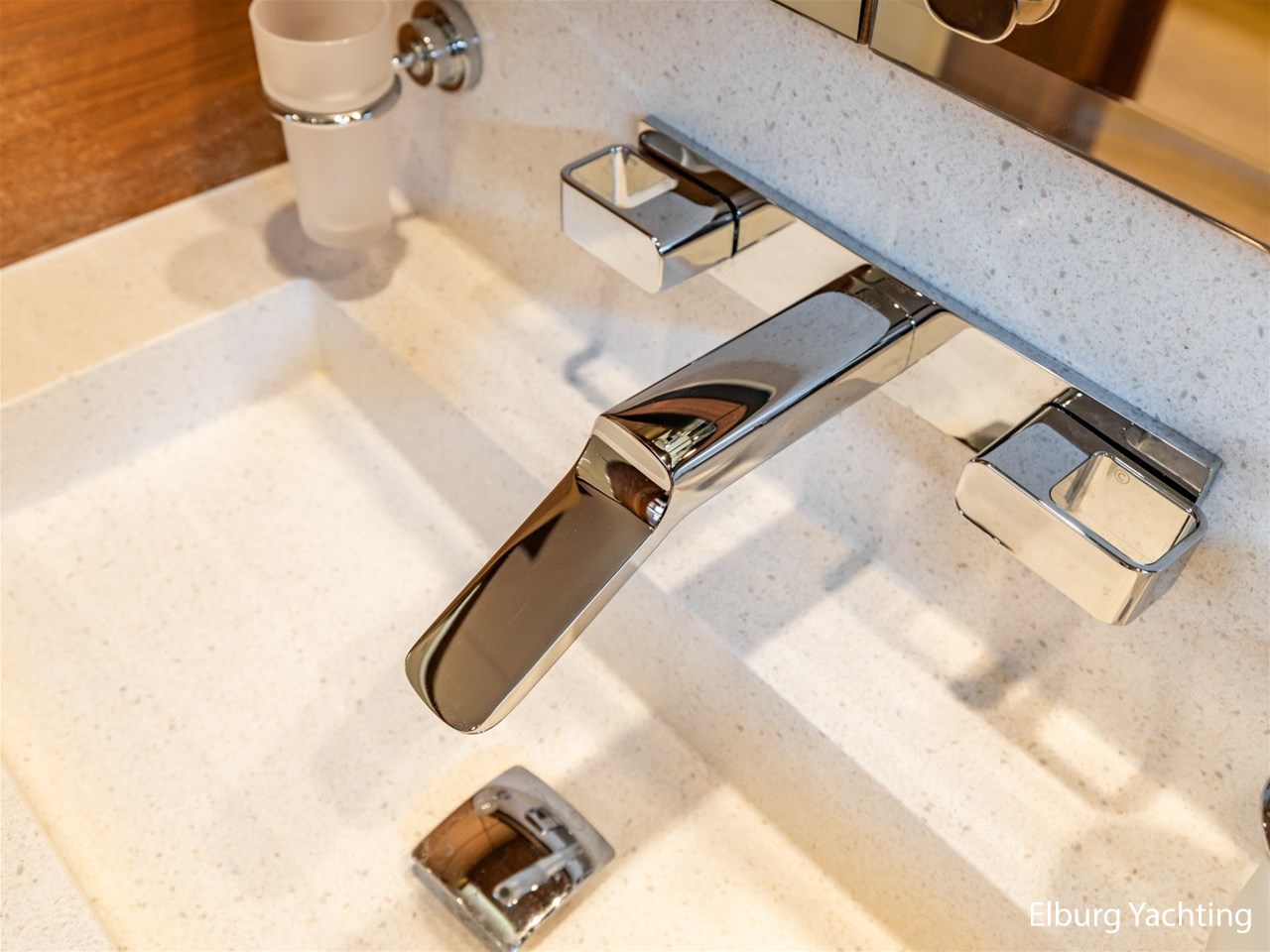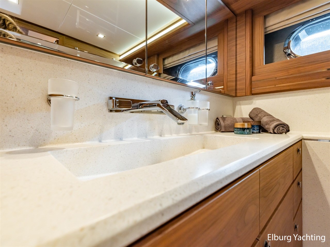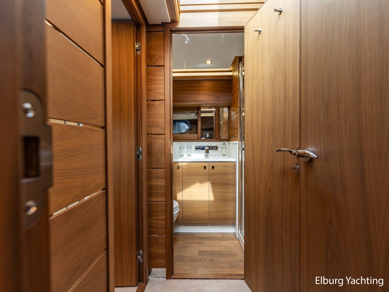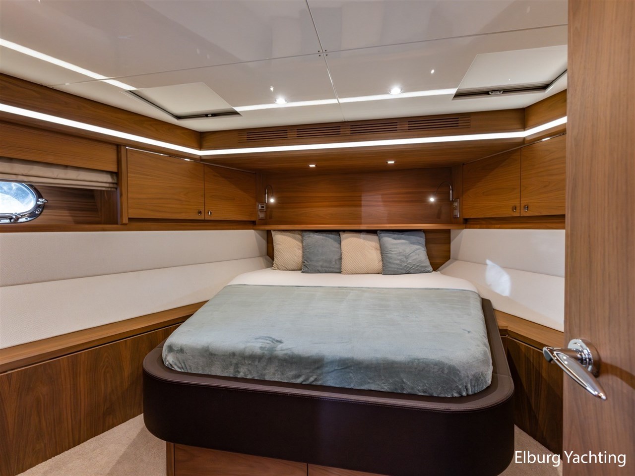 - Modern interior with Nutwood veneer with stainless steel trim and high gloss ceiling panels
