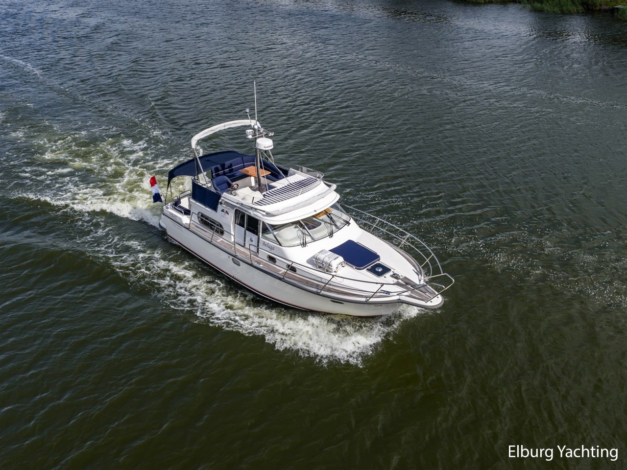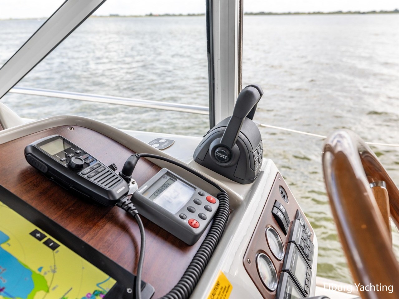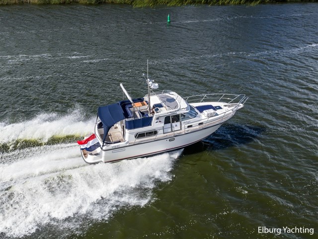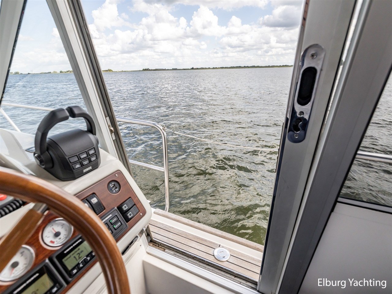 Nimbus 380 Commander – Stylish and Well-Designed Motor Yacht. This very complete Nimbus 380 Commander offers a thoughtfully designed layout with an interior passage to the flybridge, three sliding doors, generous storage, and a practical interior. This high-quality Swedish yacht is built with attention to space, finish, and functionality – ideal for extended cruising on both inland and coastal waters. Equipped with a fixed staircase to the flybridge, solid helm seats, bimini top, cockpit tent, double stainless steel railing, trim tabs, and dual anchors. Propulsion via shaft drives with Volvo Penta EVC system. The flybridge can be accessed both internally and externally. Annual engine servicing has been carried out. Air draft approximately 3.40 m (with radar arch and bimini folded), approx. 5.00 m fully upright.