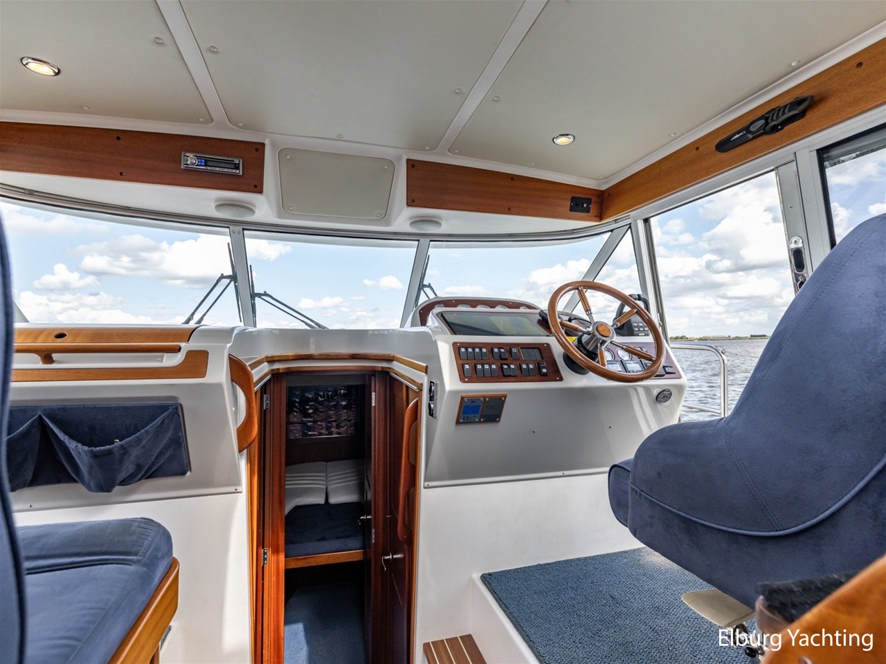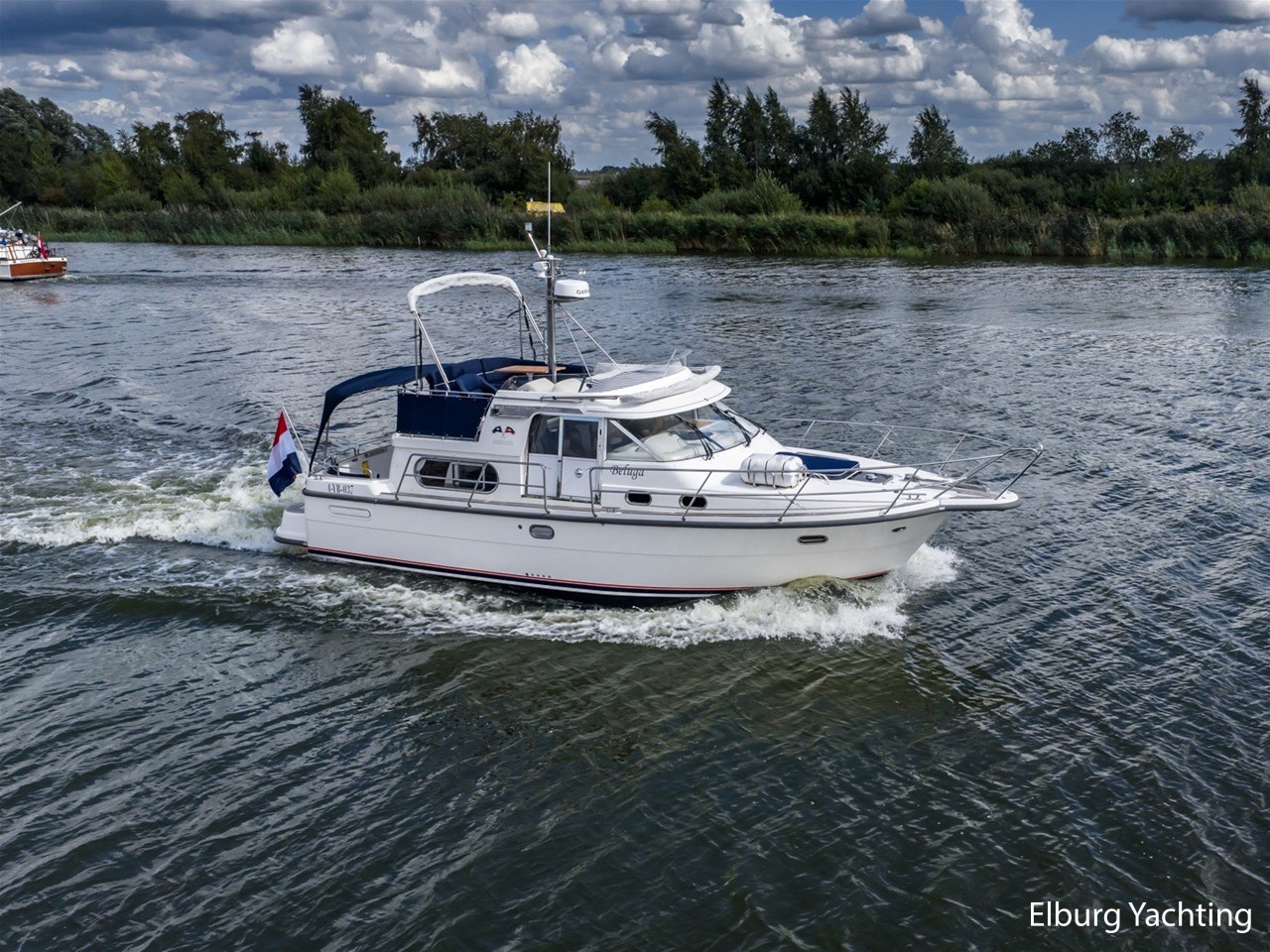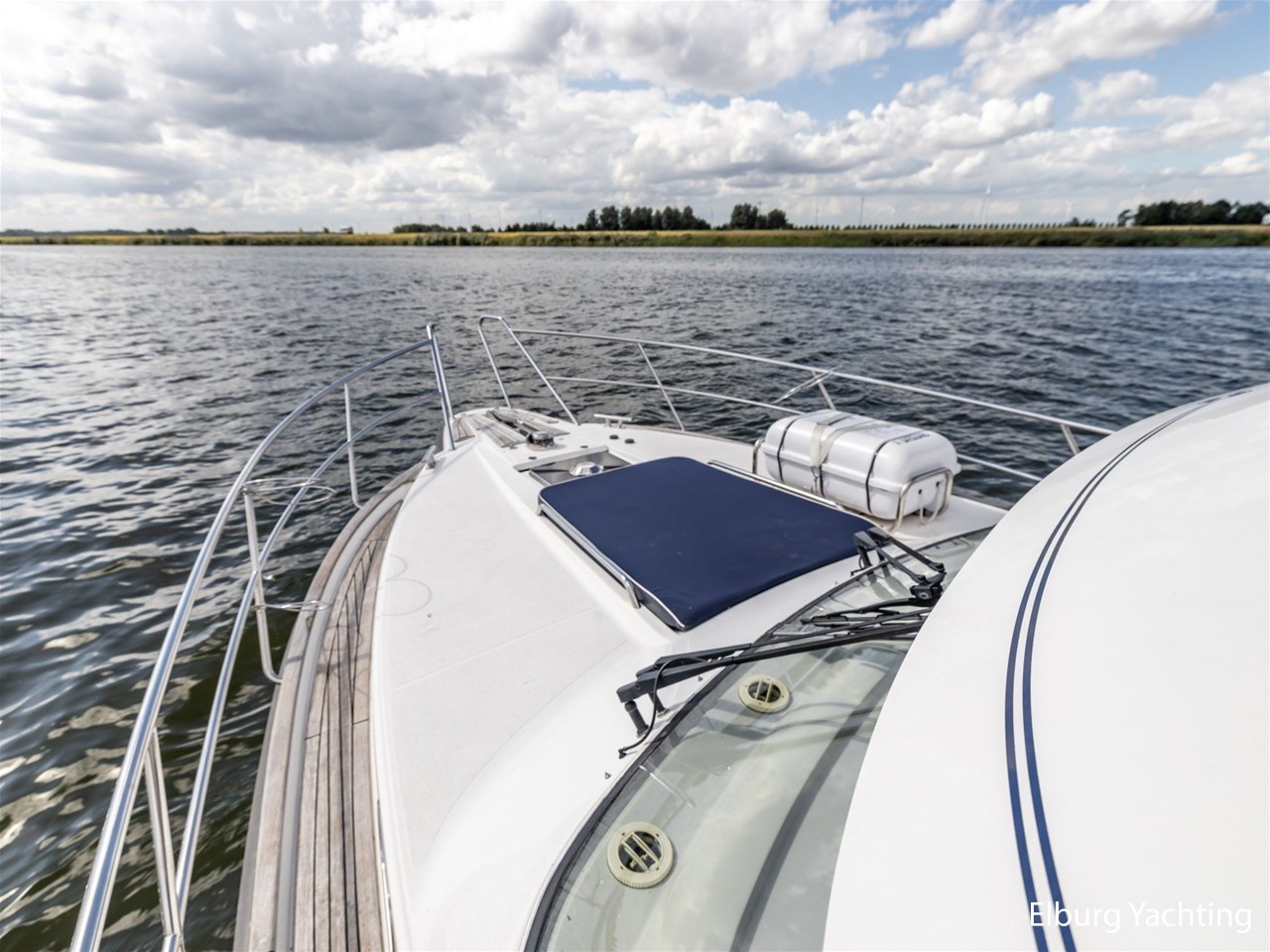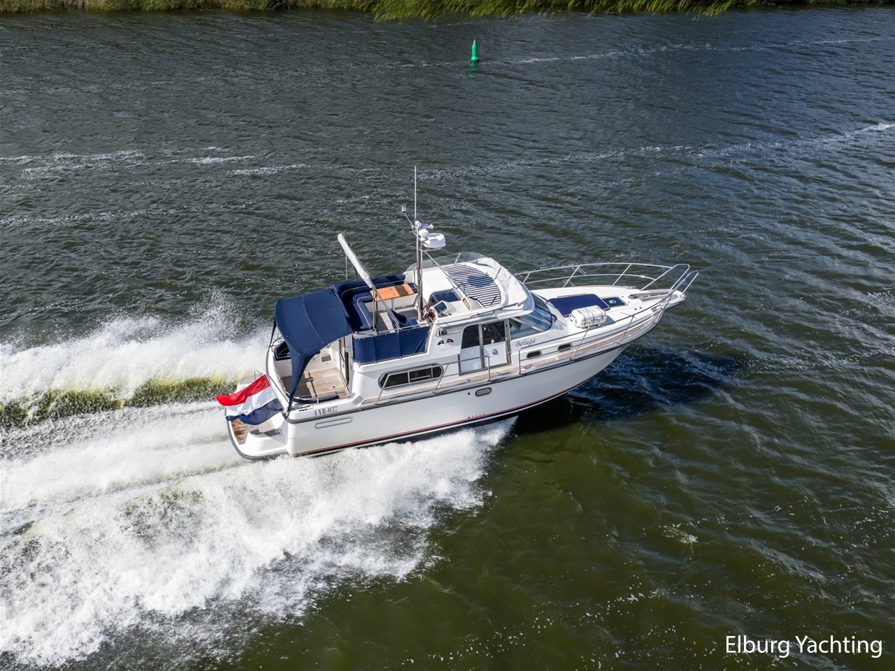 Nimbus 380 Commander – Stylish and Well-Designed Motor Yacht. This very complete Nimbus 380 Commander offers a thoughtfully designed layout with an interior passage to the flybridge, three sliding doors, generous storage, and a practical interior. This high-quality Swedish yacht is built with attention to space, finish, and functionality – ideal for extended cruising on both inland and coastal waters. Equipped with a fixed staircase to the flybridge, solid helm seats, bimini top, cockpit tent, double stainless steel railing, trim tabs, and dual anchors. Propulsion via shaft drives with Volvo Penta EVC system. The flybridge can be accessed both internally and externally. Annual engine servicing has been carried out. Air draft approximately 3.40 m (with radar arch and bimini folded), approx. 5.00 m fully upright.