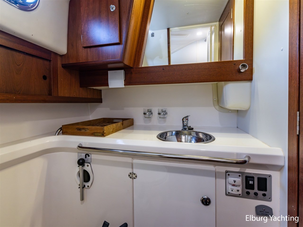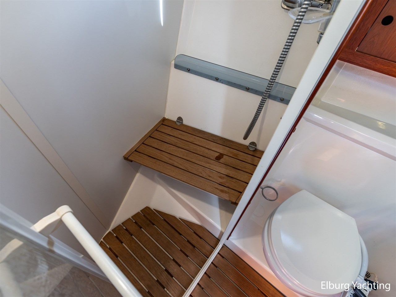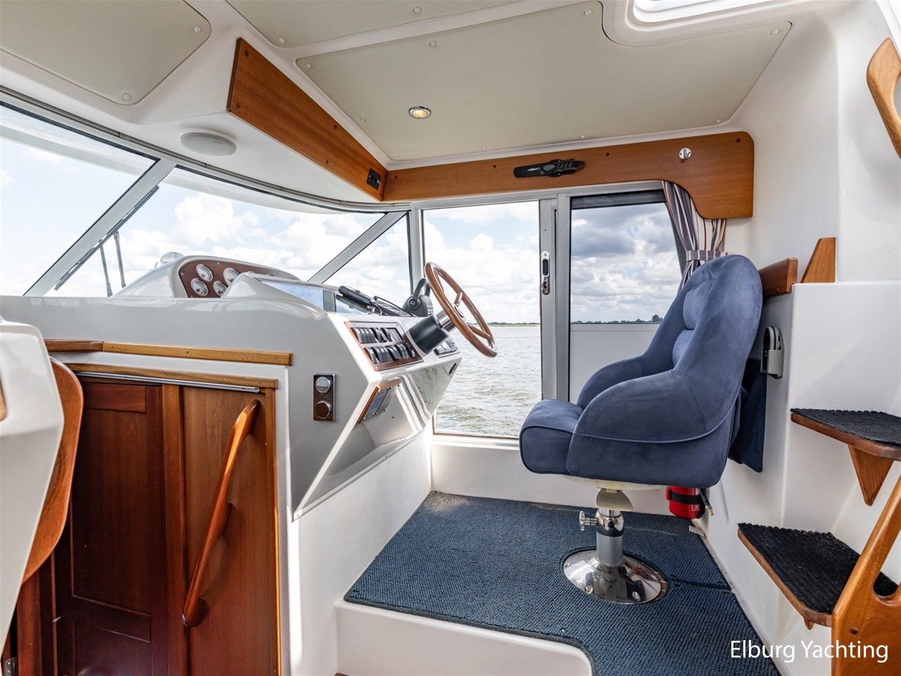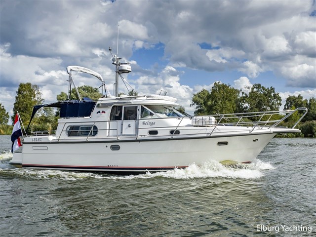 Nimbus 380 Commander – Stylish and Well-Designed Motor Yacht. This very complete Nimbus 380 Commander offers a thoughtfully designed layout with an interior passage to the flybridge, three sliding doors, generous storage, and a practical interior. This high-quality Swedish yacht is built with attention to space, finish, and functionality – ideal for extended cruising on both inland and coastal waters. Equipped with a fixed staircase to the flybridge, solid helm seats, bimini top, cockpit tent, double stainless steel railing, trim tabs, and dual anchors. Propulsion via shaft drives with Volvo Penta EVC system. The flybridge can be accessed both internally and externally. Annual engine servicing has been carried out. Air draft approximately 3.40 m (with radar arch and bimini folded), approx. 5.00 m fully upright.