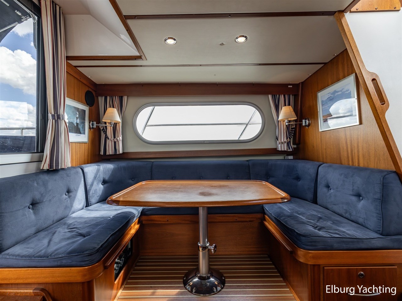 - Spacious U-shaped dinette opposite galley + fixed dinette bench on flybridge