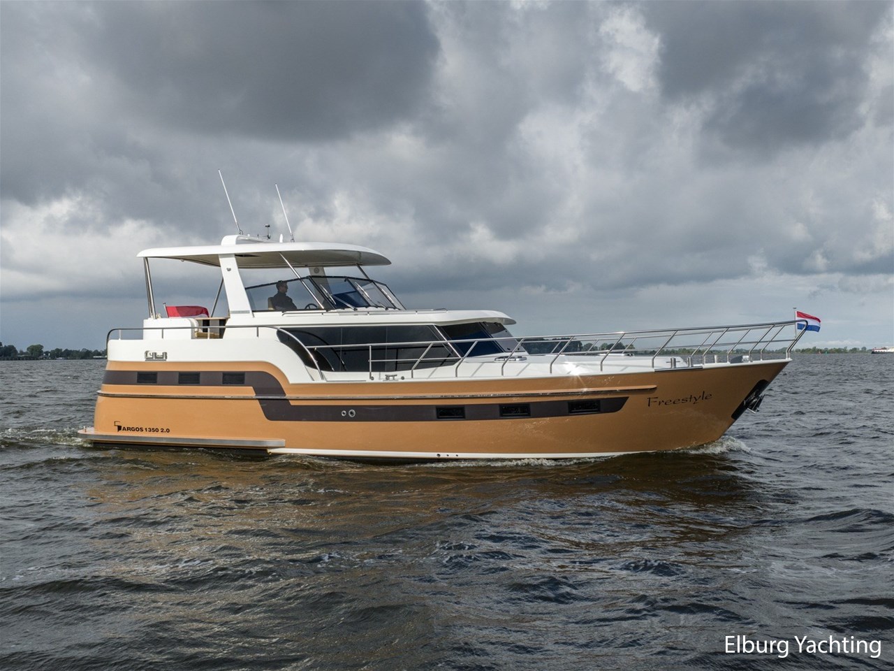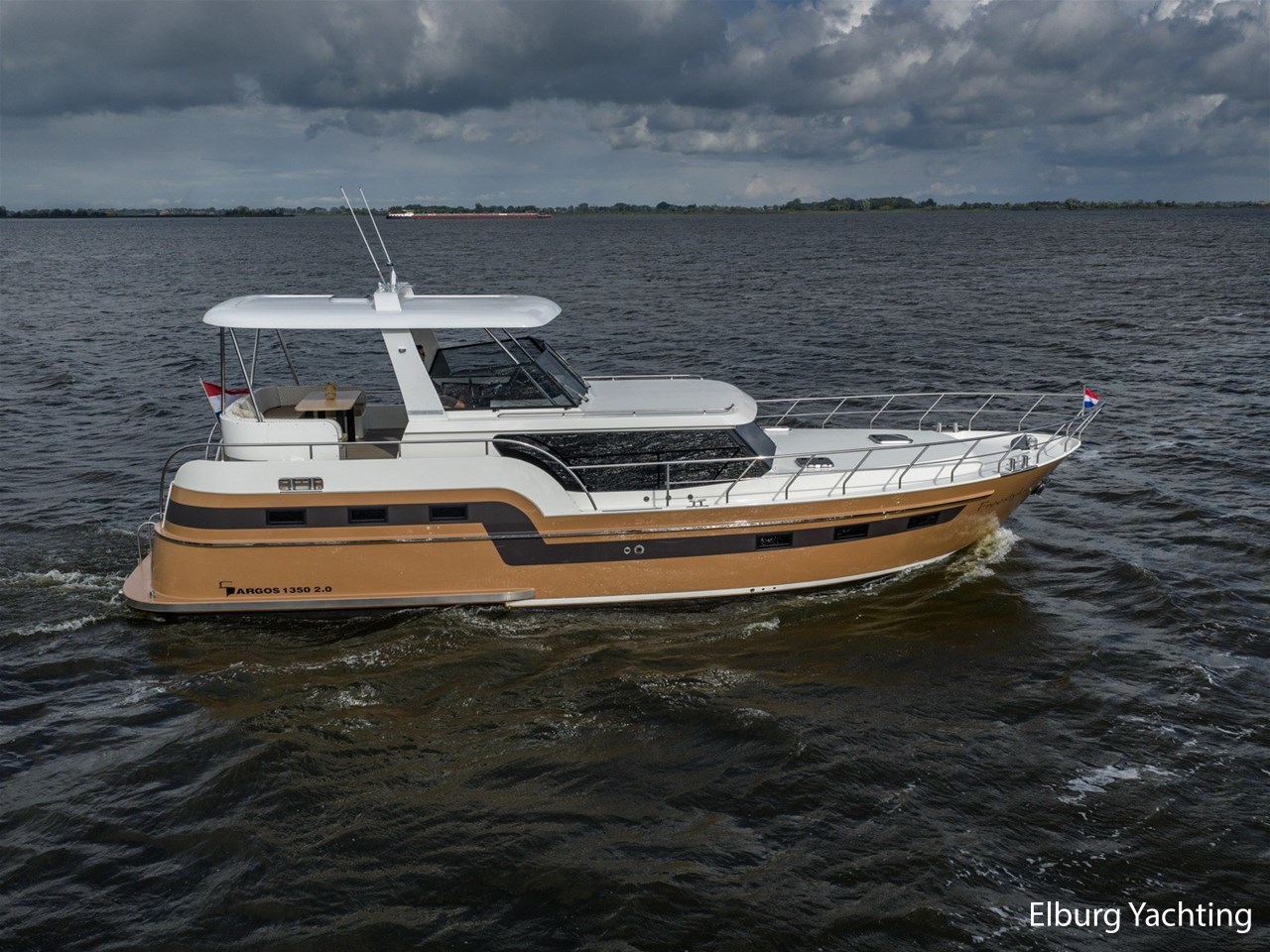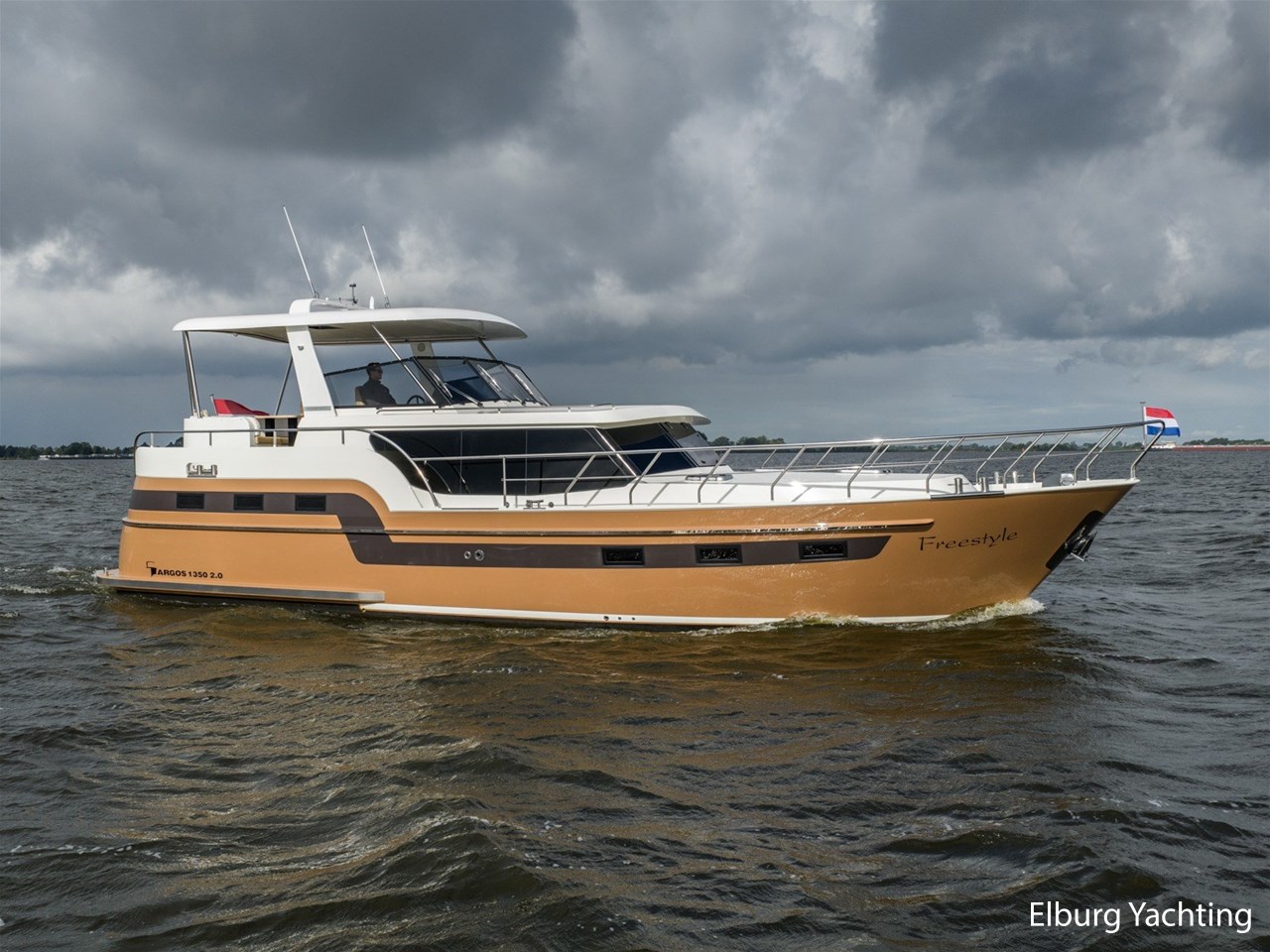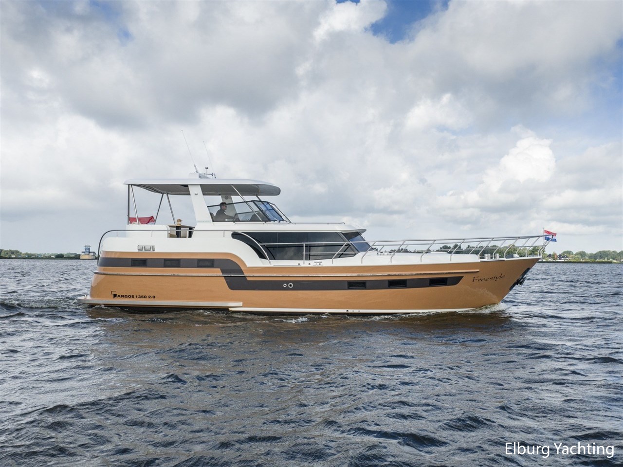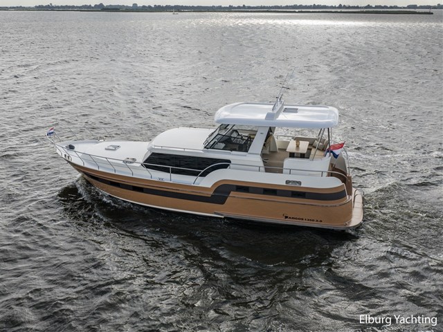 Beautiful, modern Argos Line 13.50 2.0 offered by its first Dutch owner. This beautiful example was built by the Argos shipyard in Sneek and designed by Vripack design, also from Sneek. Many factors were taken into account during the construction process: the yacht had to be modern with a practical layout (including three full cabins and various comfortable seats). The yacht also had to be suitable for longer stays on board, so double glazing was installed along with efficient central heating. It was also important that the yacht had a warm appearance, so it was given a beautiful two-tone hull in combination with an extremely modern interior using only high-quality materials. The yacht is equipped with a “floating hardtop” over the afterdeck where one can sit comfortably out of the sun. The saloon has two attractive seating areas with a practical open kitchen. At the front are two sleeping areas with sanitary facilities, and at the stern is the owner's cabin with its own sanitary facilities. The yacht has been chartered for a short period of time, exclusively to VIP customers selected by the shipyard who have experience in recreational boating. As a result, any delivery issues are known and have been professionally resolved by the shipyard. The asking price of the yacht includes 21% VAT, but the yacht can also be delivered excluding VAT. If you have any questions and/or would like to make an appointment, you are welcome to visit Elburg Yachting 7 days a week.