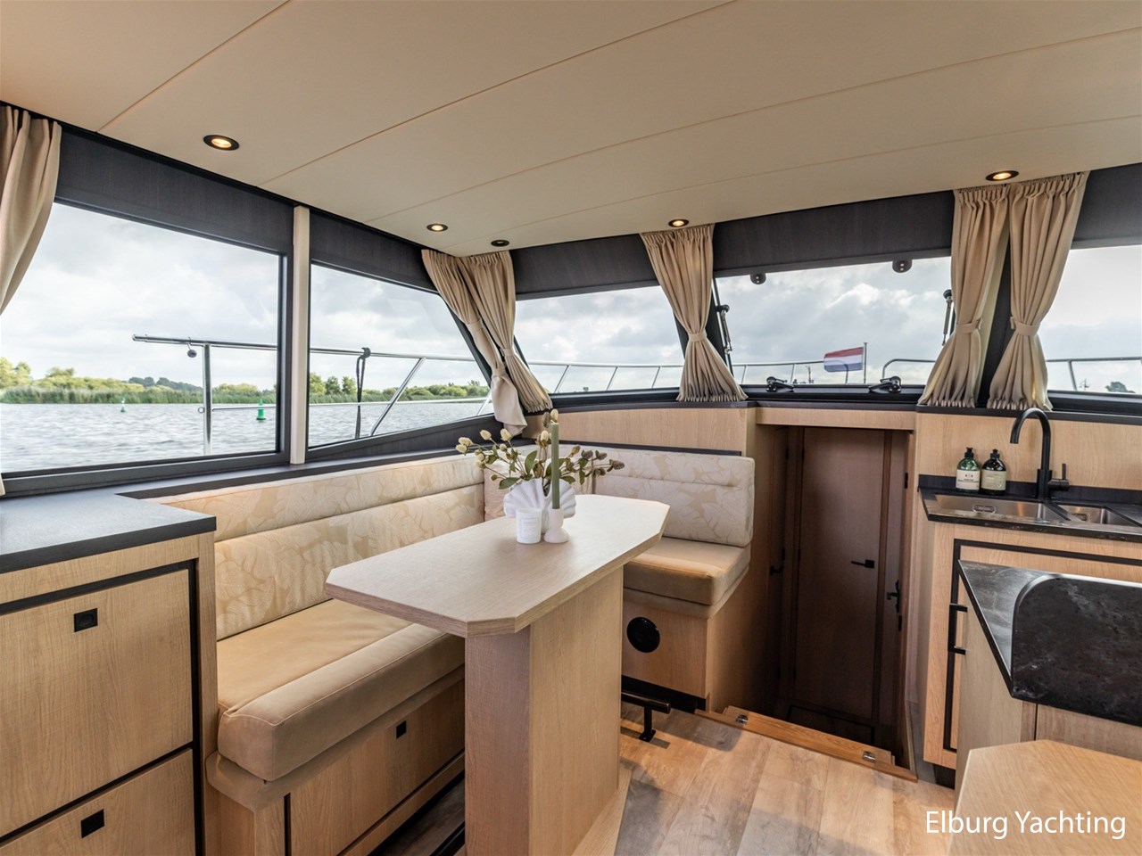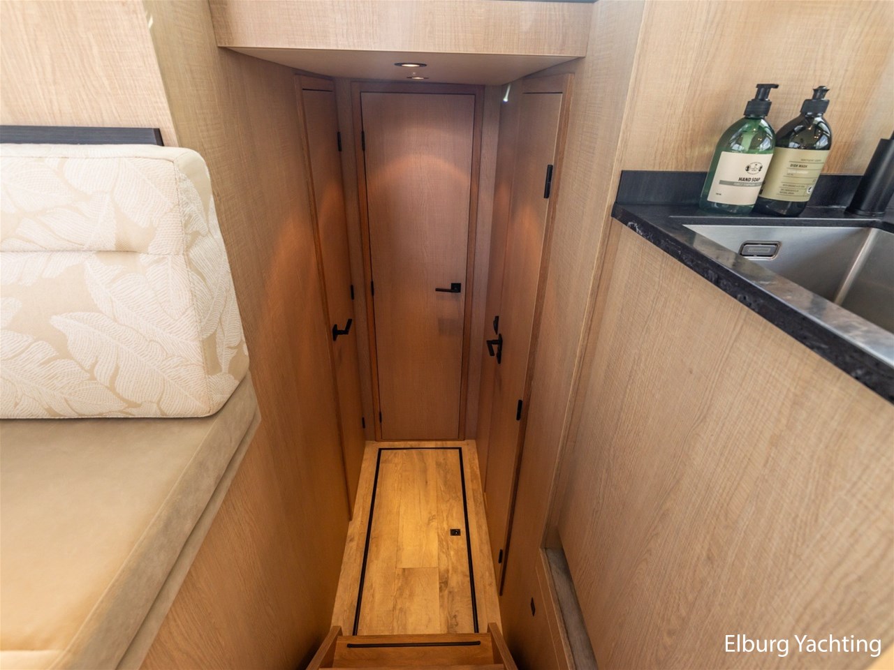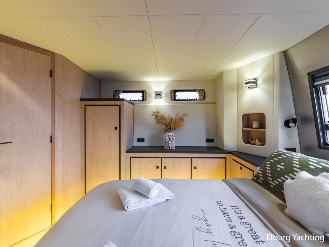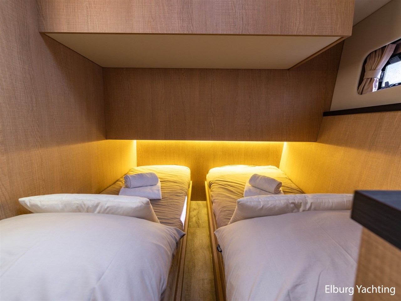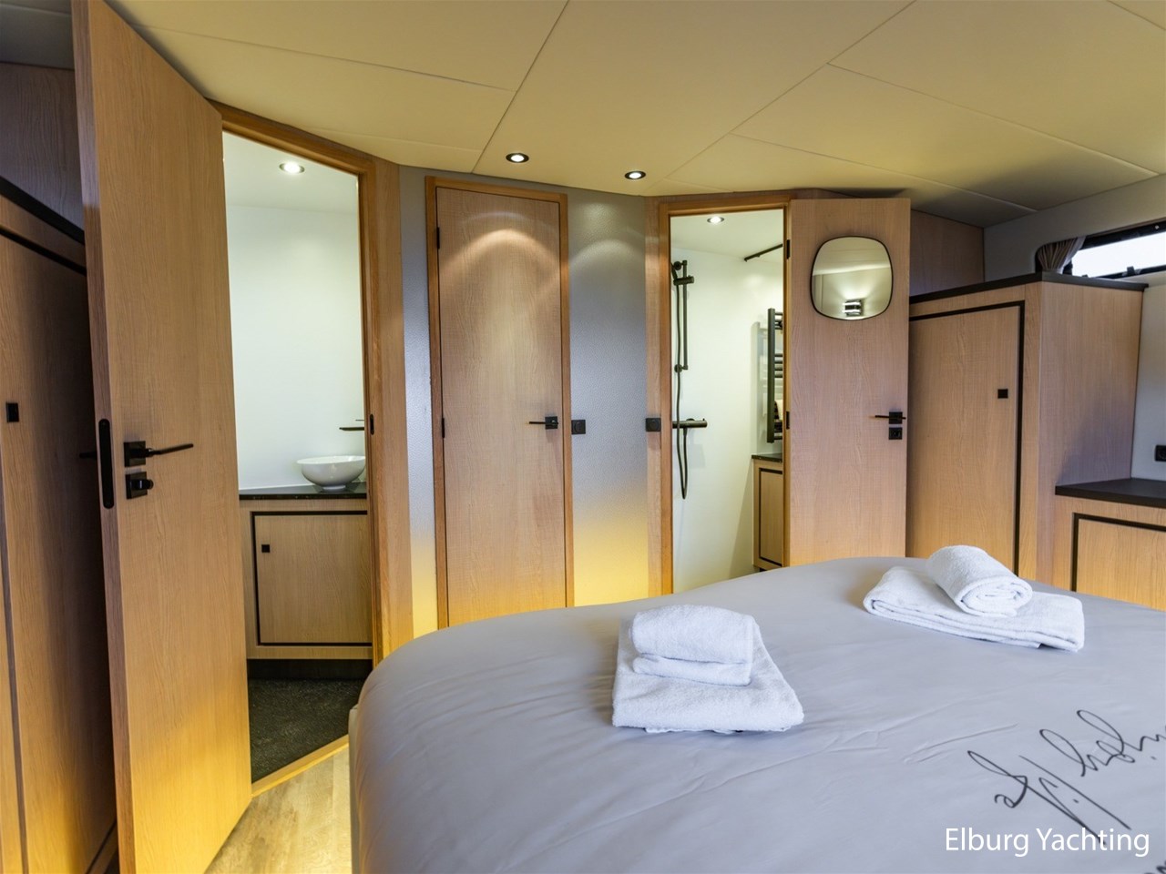 Beautiful, modern Argos Line 13.50 2.0 offered by its first Dutch owner. This beautiful example was built by the Argos shipyard in Sneek and designed by Vripack design, also from Sneek. Many factors were taken into account during the construction process: the yacht had to be modern with a practical layout (including three full cabins and various comfortable seats). The yacht also had to be suitable for longer stays on board, so double glazing was installed along with efficient central heating. It was also important that the yacht had a warm appearance, so it was given a beautiful two-tone hull in combination with an extremely modern interior using only high-quality materials. The yacht is equipped with a “floating hardtop” over the afterdeck where one can sit comfortably out of the sun. The saloon has two attractive seating areas with a practical open kitchen. At the front are two sleeping areas with sanitary facilities, and at the stern is the owner's cabin with its own sanitary facilities. The yacht has been chartered for a short period of time, exclusively to VIP customers selected by the shipyard who have experience in recreational boating. As a result, any delivery issues are known and have been professionally resolved by the shipyard. The asking price of the yacht includes 21% VAT, but the yacht can also be delivered excluding VAT. If you have any questions and/or would like to make an appointment, you are welcome to visit Elburg Yachting 7 days a week.