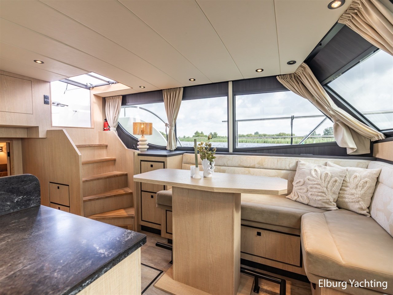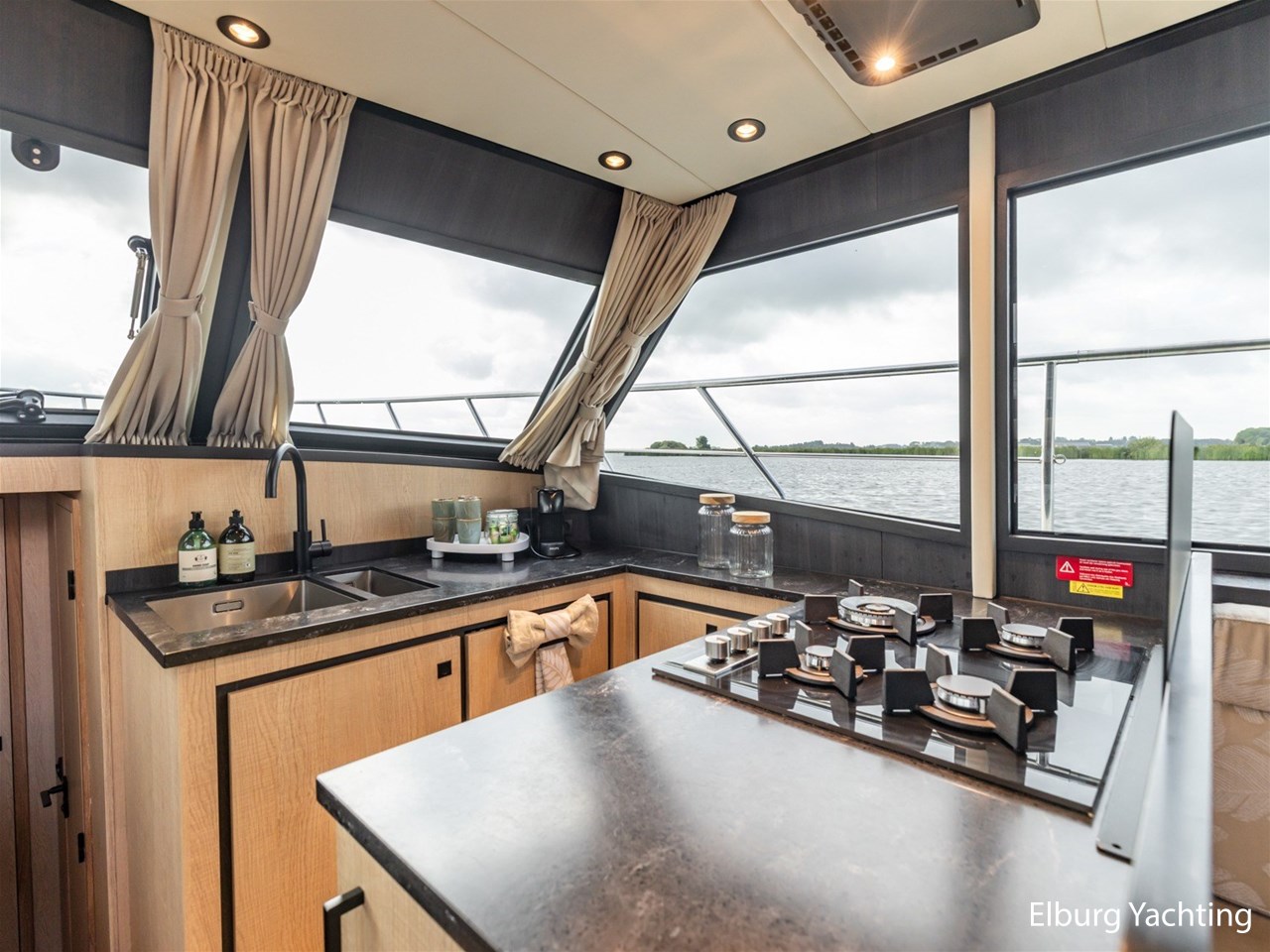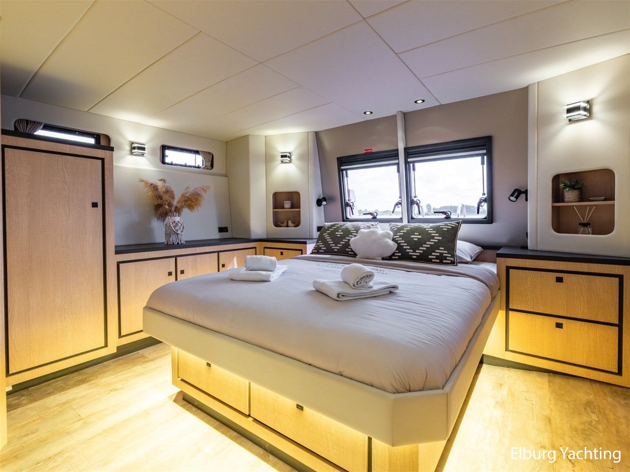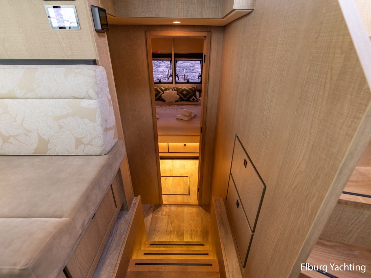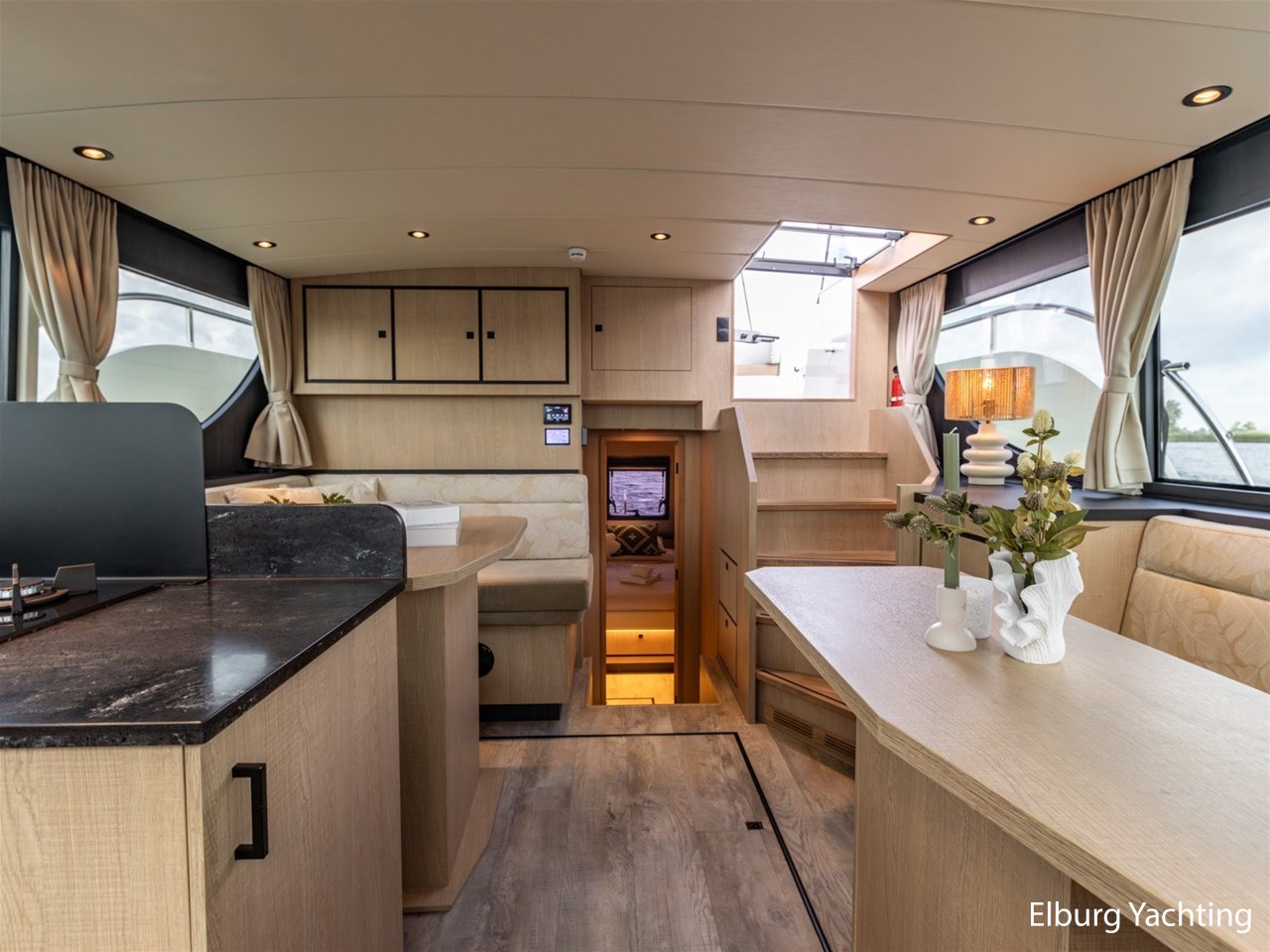 Beautiful, modern Argos Line 13.50 2.0 offered by its first Dutch owner. This beautiful example was built by the Argos shipyard in Sneek and designed by Vripack design, also from Sneek. Many factors were taken into account during the construction process: the yacht had to be modern with a practical layout (including three full cabins and various comfortable seats). The yacht also had to be suitable for longer stays on board, so double glazing was installed along with efficient central heating. It was also important that the yacht had a warm appearance, so it was given a beautiful two-tone hull in combination with an extremely modern interior using only high-quality materials. The yacht is equipped with a “floating hardtop” over the afterdeck where one can sit comfortably out of the sun. The saloon has two attractive seating areas with a practical open kitchen. At the front are two sleeping areas with sanitary facilities, and at the stern is the owner's cabin with its own sanitary facilities. The yacht has been chartered for a short period of time, exclusively to VIP customers selected by the shipyard who have experience in recreational boating. As a result, any delivery issues are known and have been professionally resolved by the shipyard. The asking price of the yacht includes 21% VAT, but the yacht can also be delivered excluding VAT. If you have any questions and/or would like to make an appointment, you are welcome to visit Elburg Yachting 7 days a week.