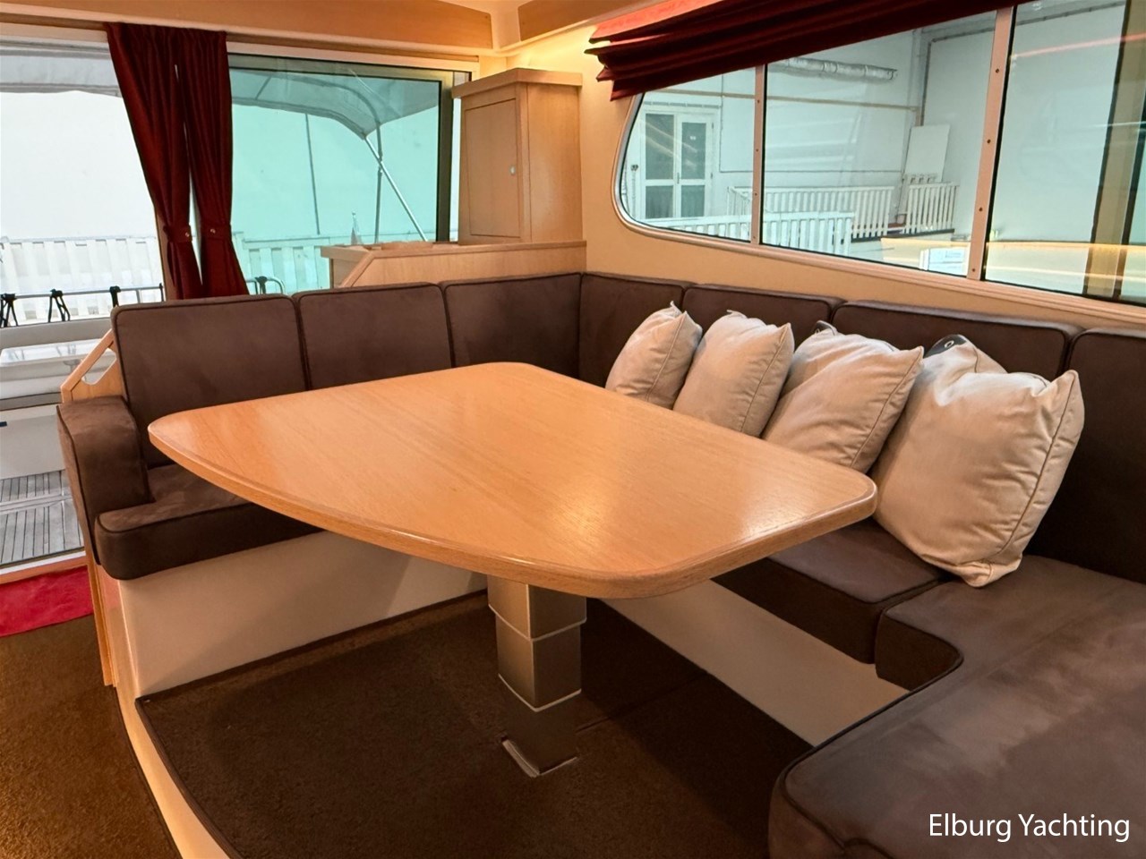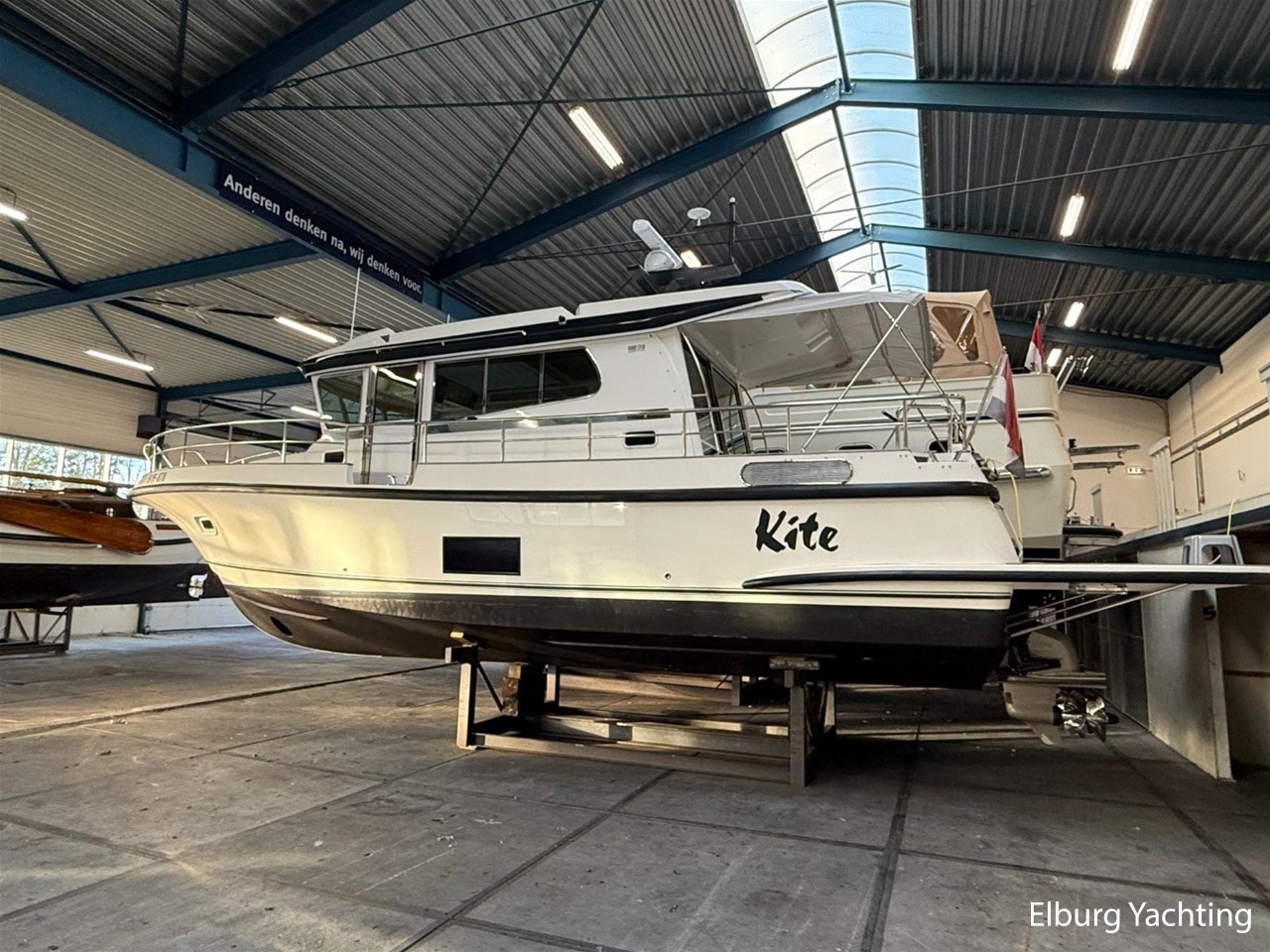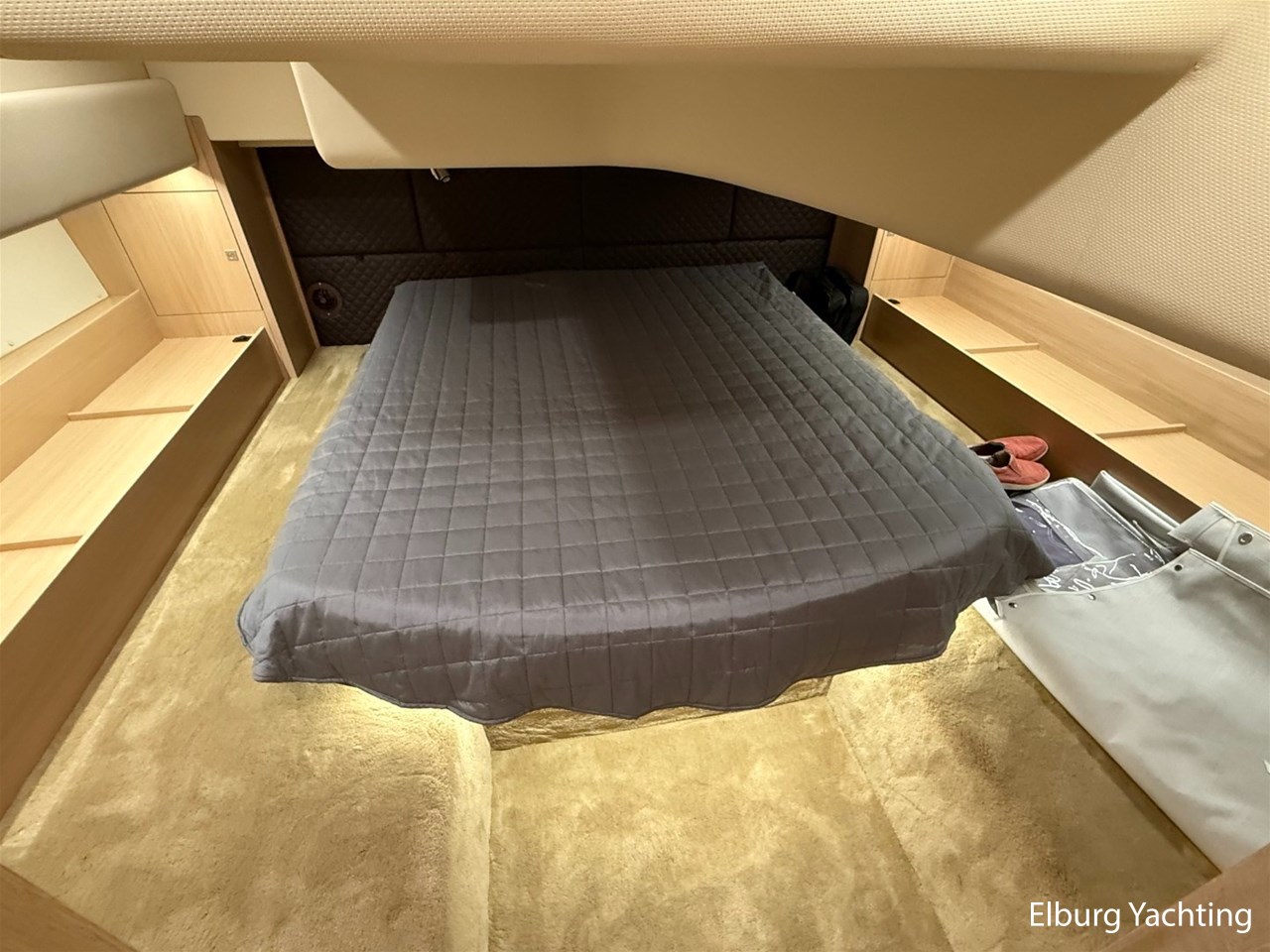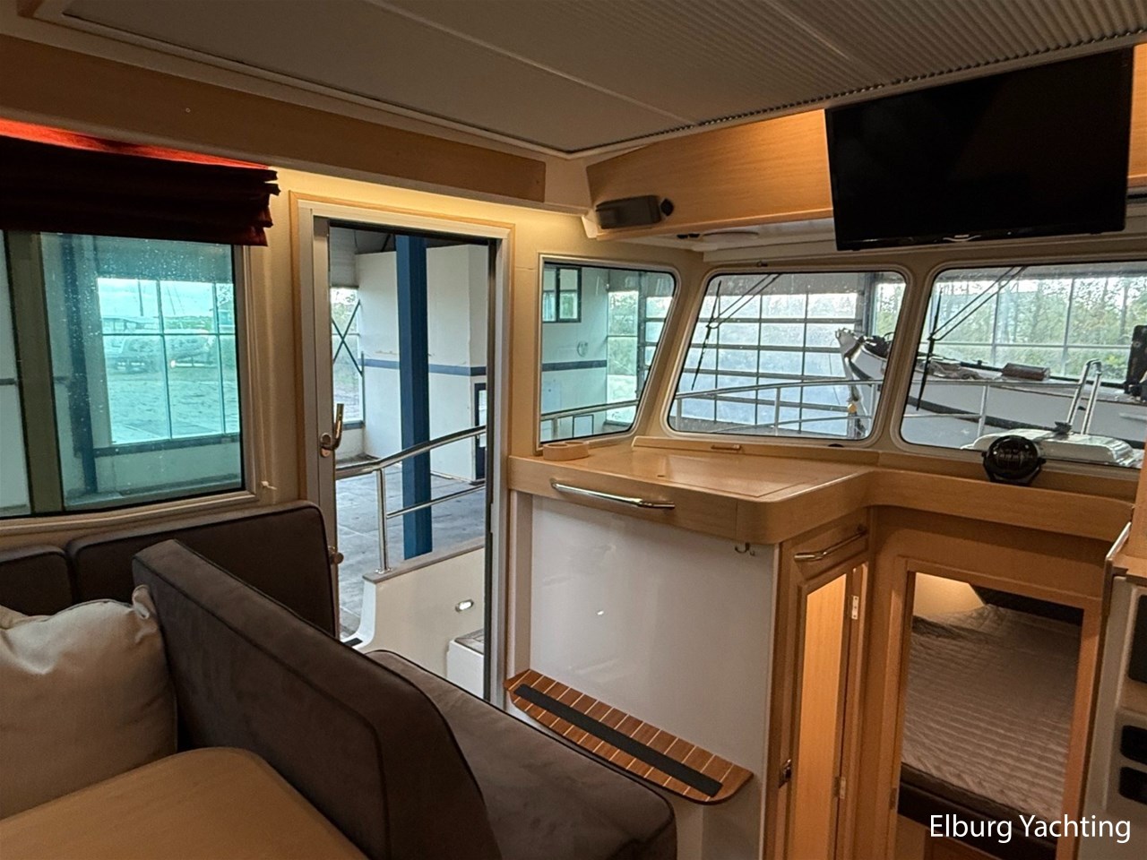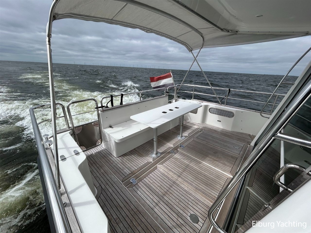 Sporty and highly seaworthy Nord Star Patrol 42 offered by its first owner. This fully equipped Scandinavian Nord Star is a true quality yacht with luxurious features. Among other things, she is equipped with a teak deck all around + swimming platform with double stainless steel guardrails with railings, fender holders, electric sunroof and large spotlights on the wheelhouse. With seaworthiness in mind, the wheelhouse is equipped with negative windscreen angles, allowing spray to fall downwards in rough seas and thus ensuring good visibility. The wheelhouse is easily accessible from the spacious open cockpit with fixed bench, cockpit tent and cosy cockpit table via the stainless steel sliding doors. The wheelhouse is very efficiently laid out, with a spacious and, above all, very cosy dinette with a lowerable table (which can also be used as a bed), TV + stereo, galley with double sink, induction hob, combi oven and worktop, and, of course, the well-organised helm on the starboard side. The wheelhouse is easily accessible on both sides via the side doors from the gangways, which is very practical when mooring and unmooring. The forward cabin is equipped with a beautiful freestanding double bed and nearby sanitary facilities (separate toilet and shower). The aft cabin is accessible from the rear of the wheelhouse and has a spacious double bed amidships and a nearby toilet with washbasin.
